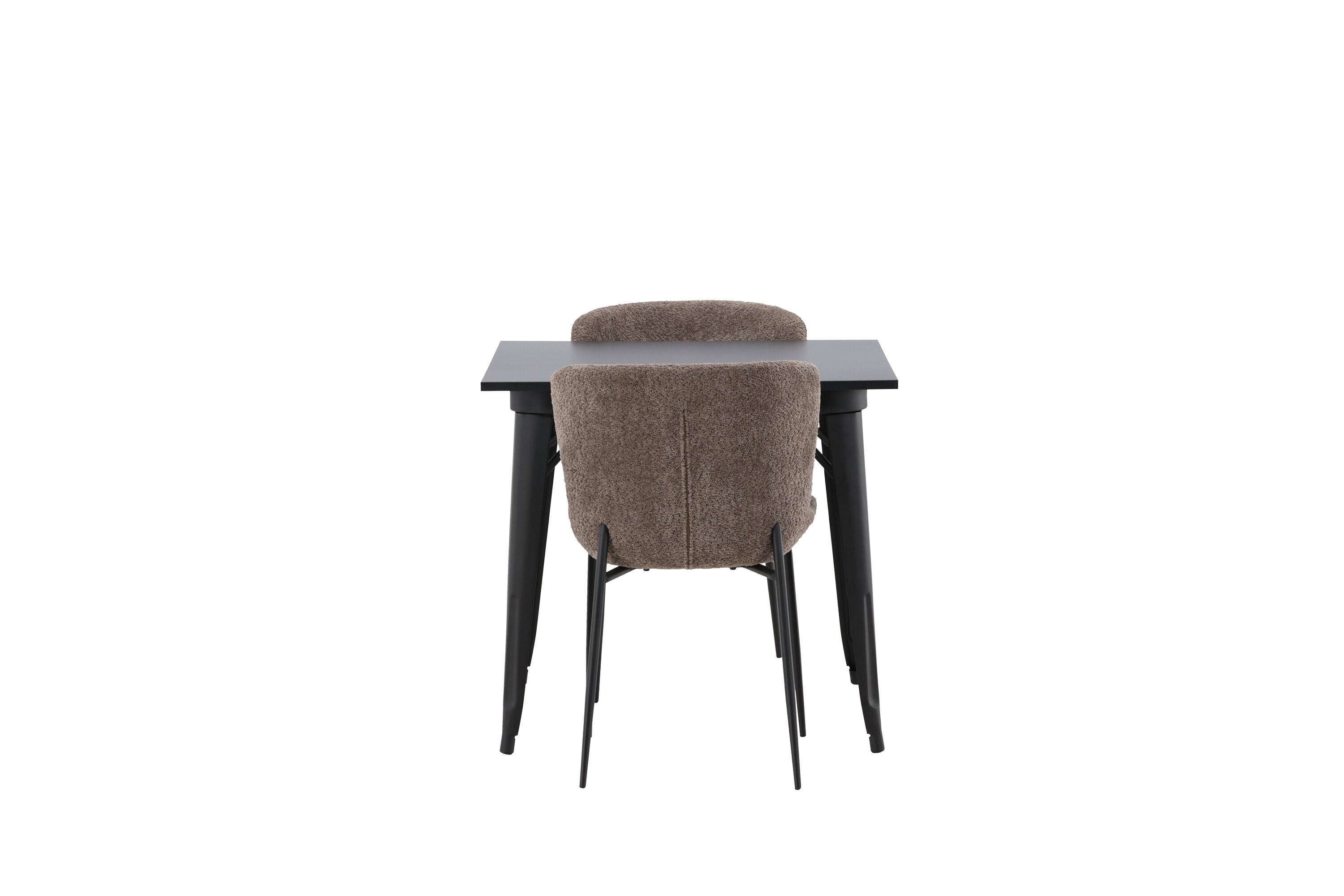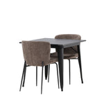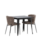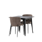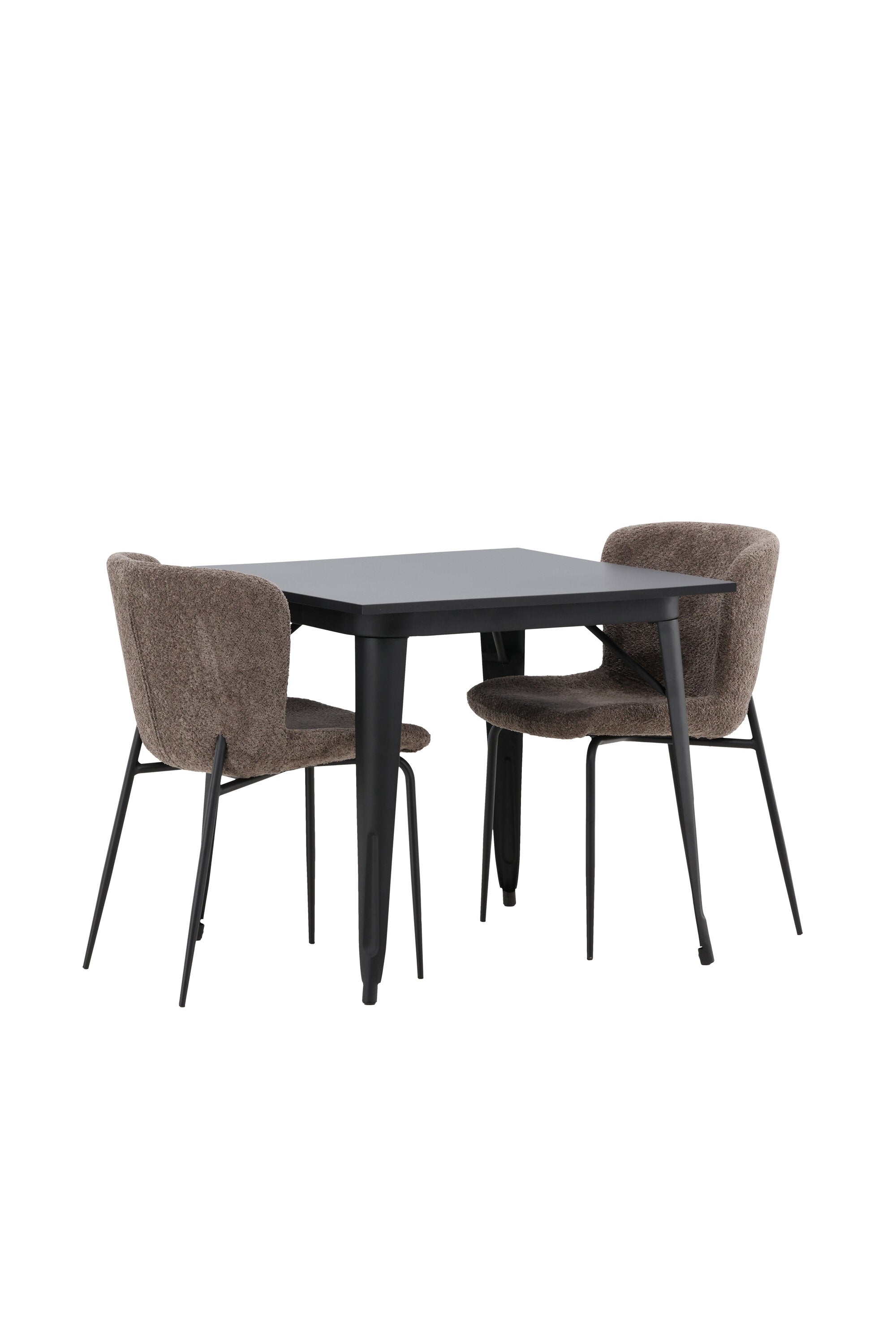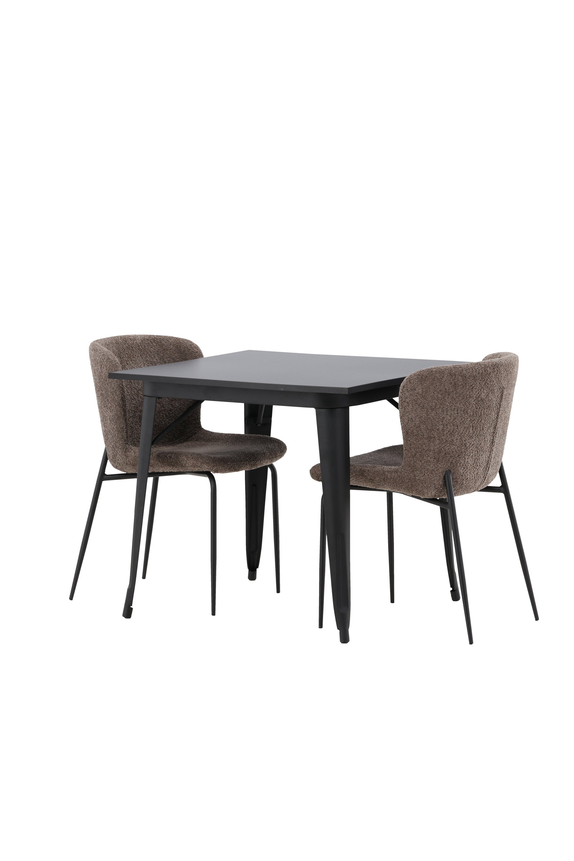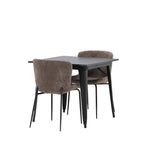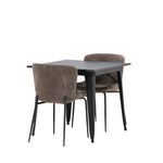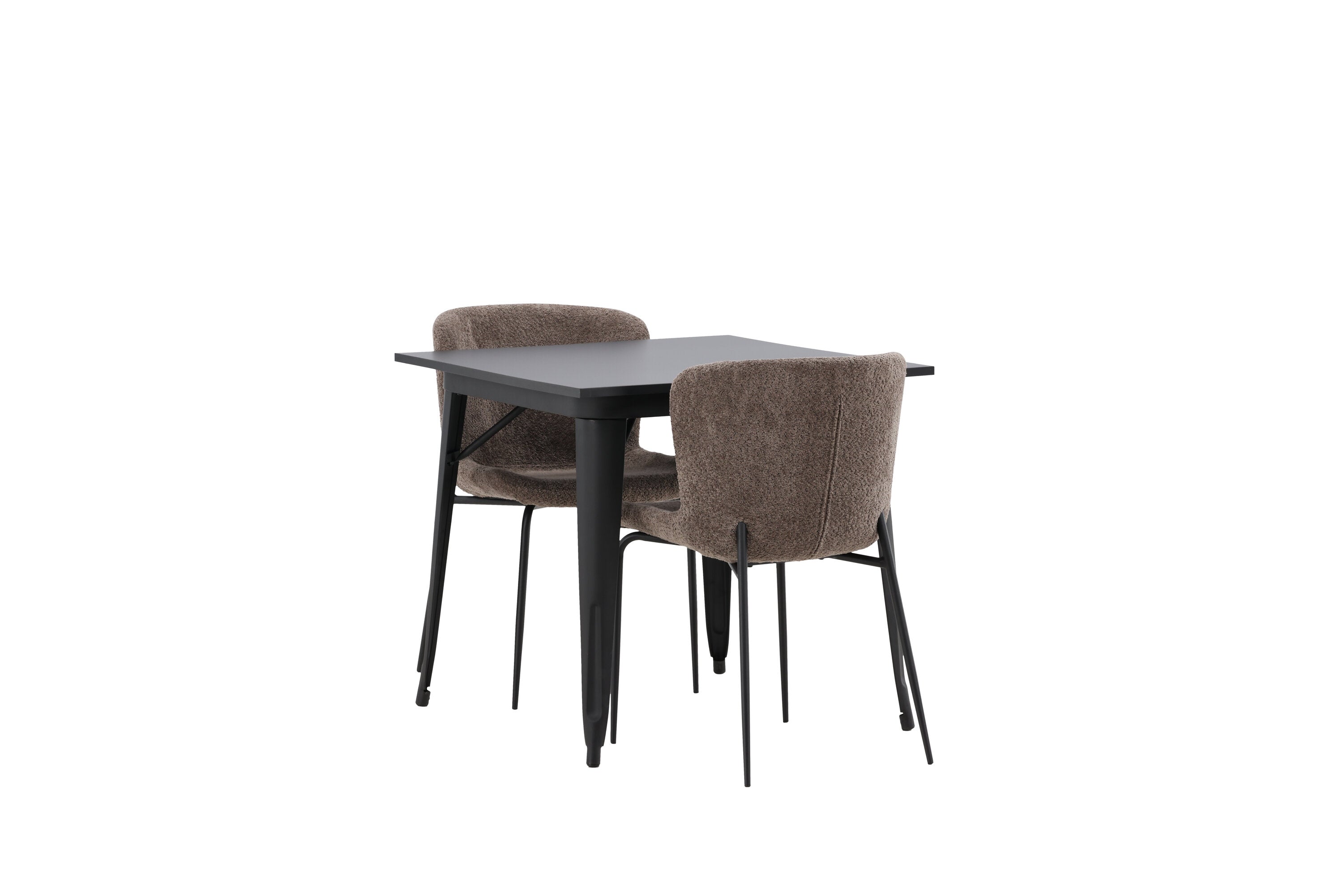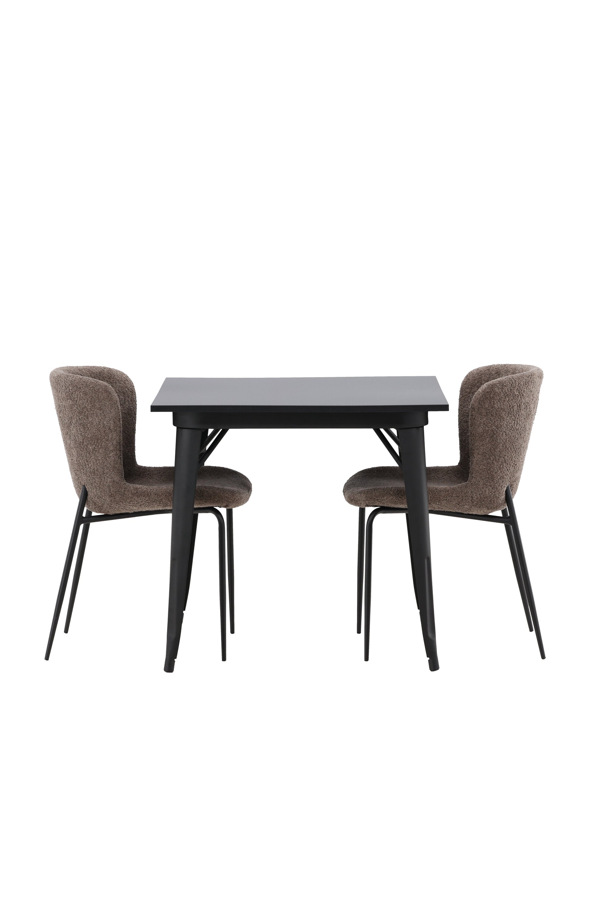 Moderní a okouzlující jídelní skupina – vybavte svůj domov chytře a stylově! Tento jídelní stůl ze série Tempe má klasický hranatý design a nadčasovou černou barvu. Deska stolu je z černé MDF a nohy z černého kovu. Zde v dokonalé kombinaci s našimi pohodlnými jídelními židlemi ze série Modesto ve skandinávském designu. Židle je celočalouněná šedou bouclé látkou se stylovými úzkými nohami v černém kovu. Mírně zaoblená záda a čalouněný sedák poskytují extra pohodlí a rozšiřují příjemné jídlo kolem jídelního stolu. Mělo by to být příjemné sedět u dobrého jídla!