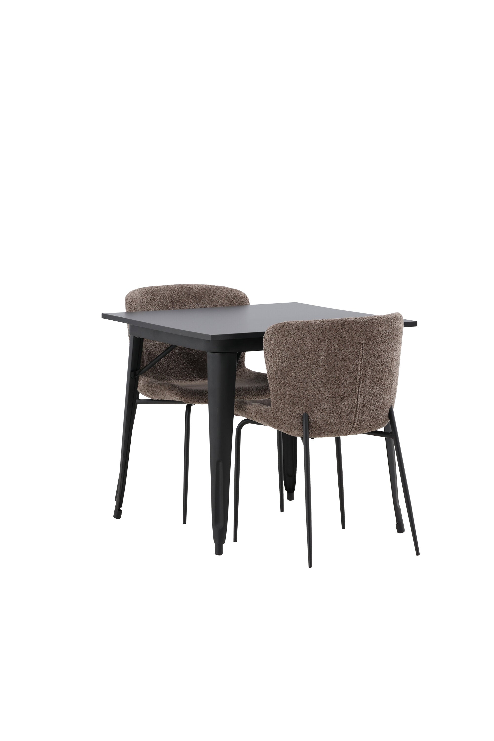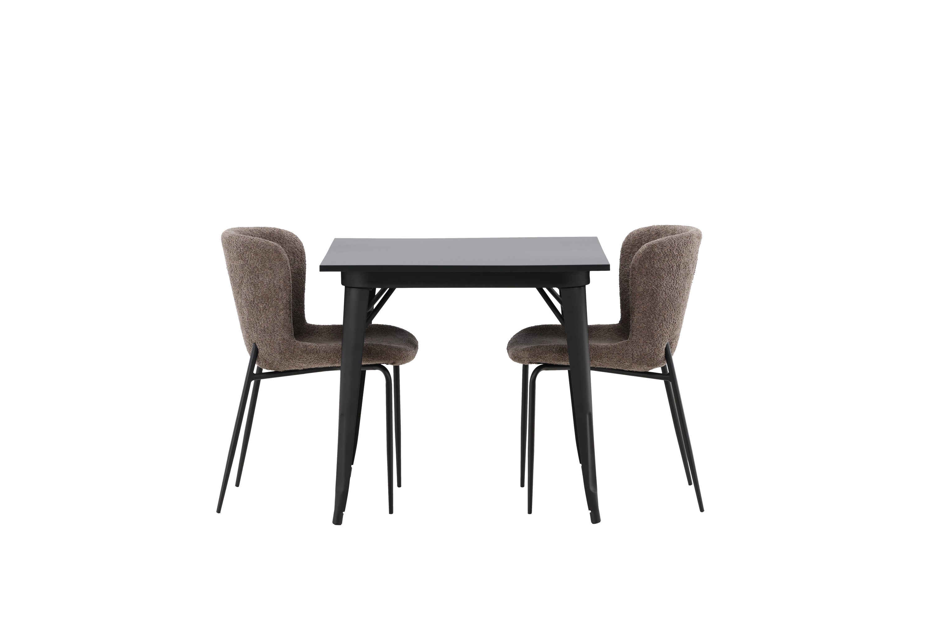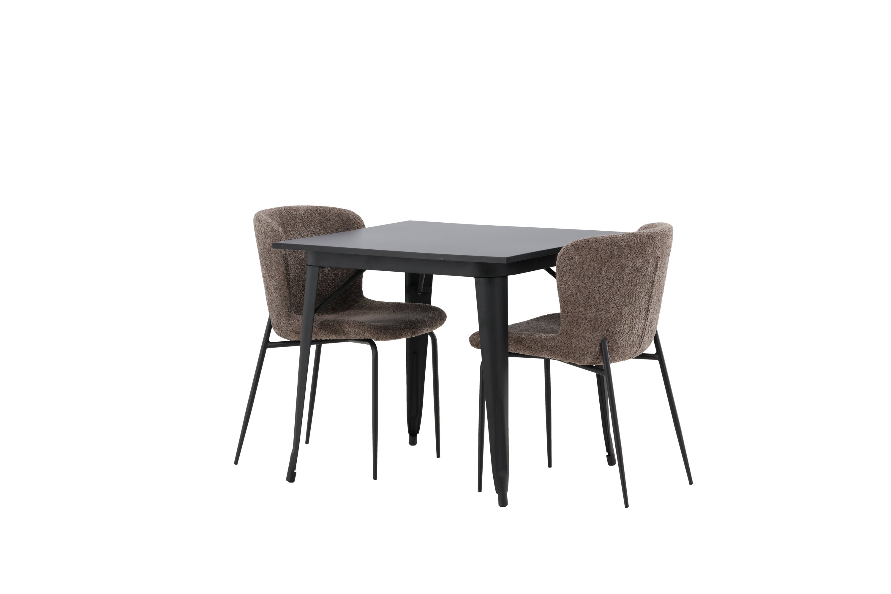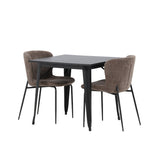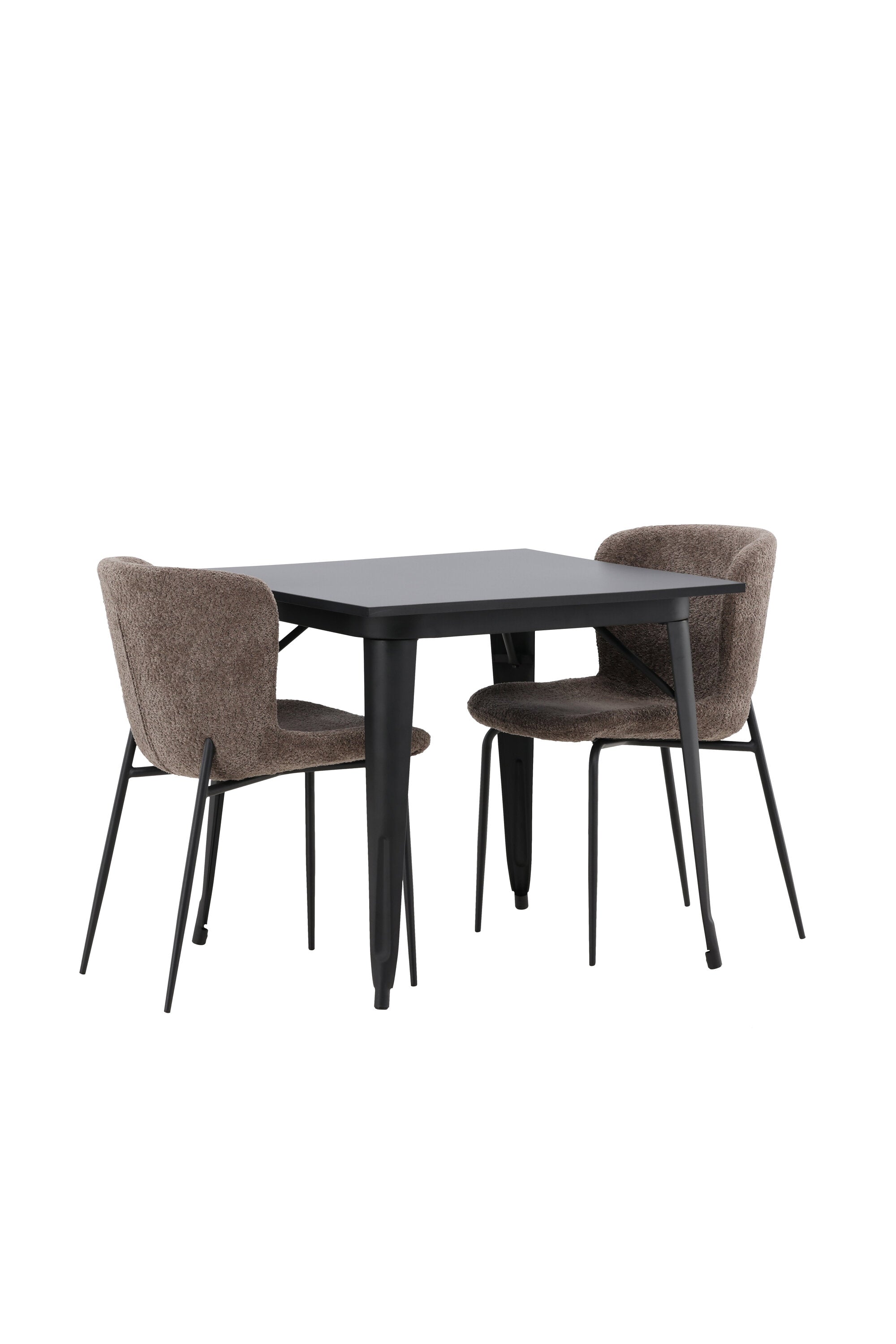 Moderní a okouzlující jídelní skupina – vybavte svůj domov chytře a stylově! Tento jídelní stůl ze série Tempe má klasický hranatý design a nadčasovou černou barvu. Deska stolu je z černé MDF a nohy z černého kovu. Zde v dokonalé kombinaci s našimi pohodlnými jídelními židlemi ze série Modesto ve skandinávském designu. Židle je celočalouněná šedou bouclé látkou se stylovými úzkými nohami v černém kovu. Mírně zaoblená záda a čalouněný sedák poskytují extra pohodlí a rozšiřují příjemné jídlo kolem jídelního stolu. Mělo by to být příjemné sedět u dobrého jídla!