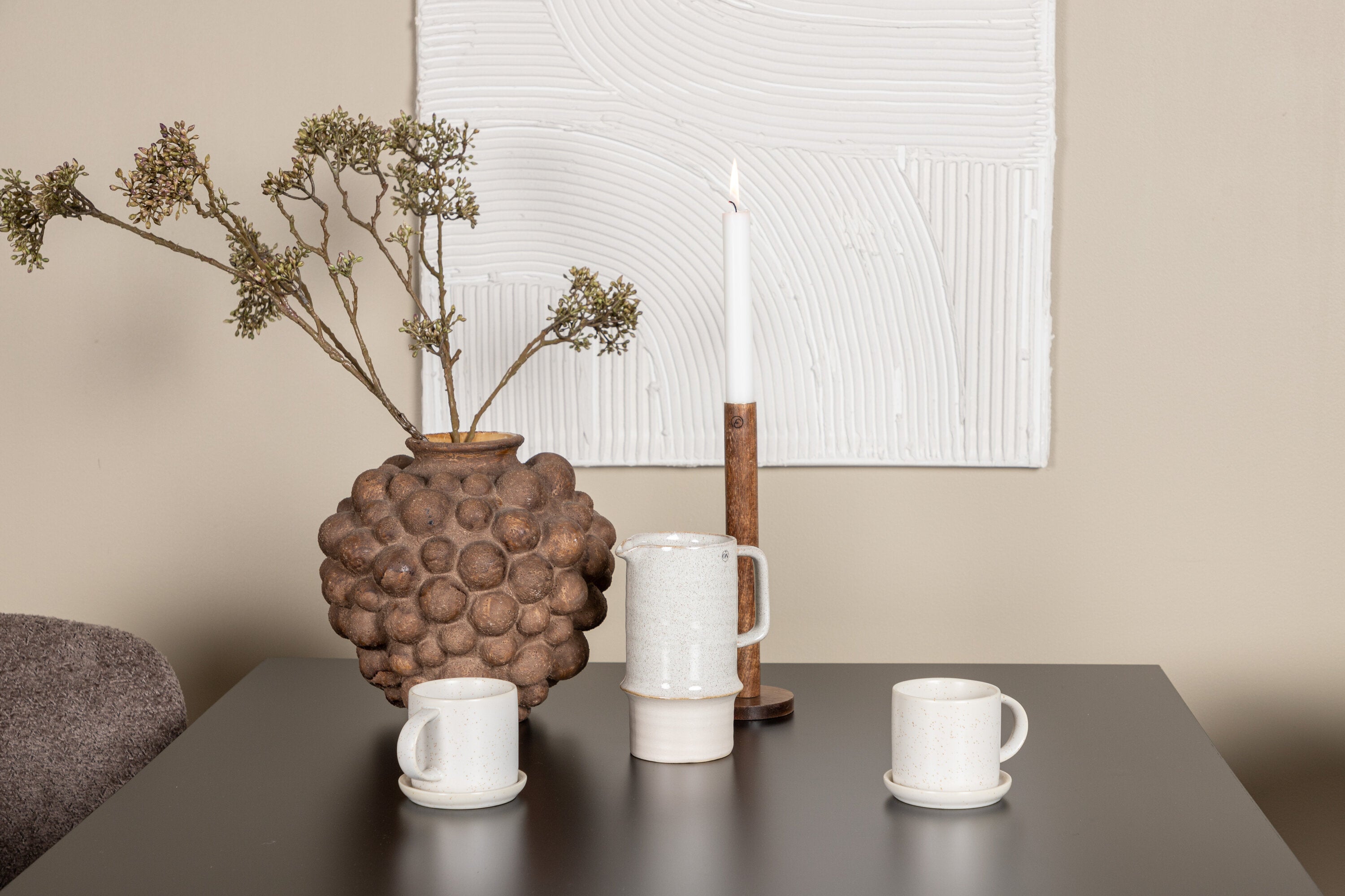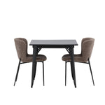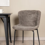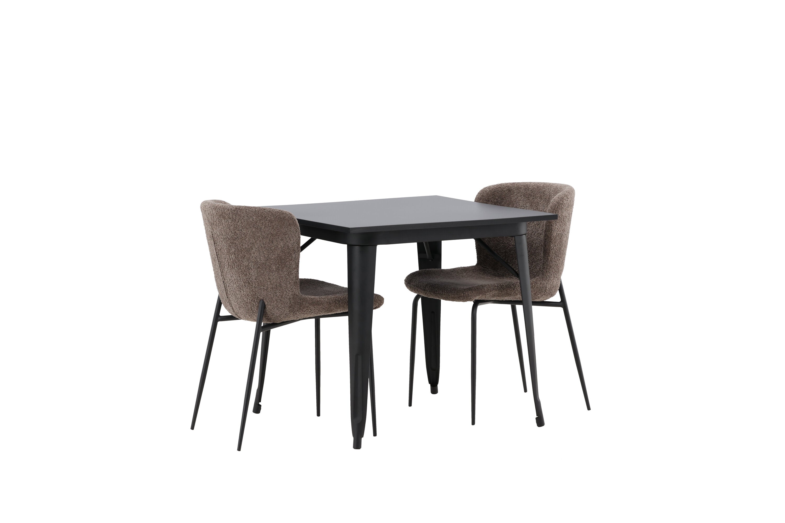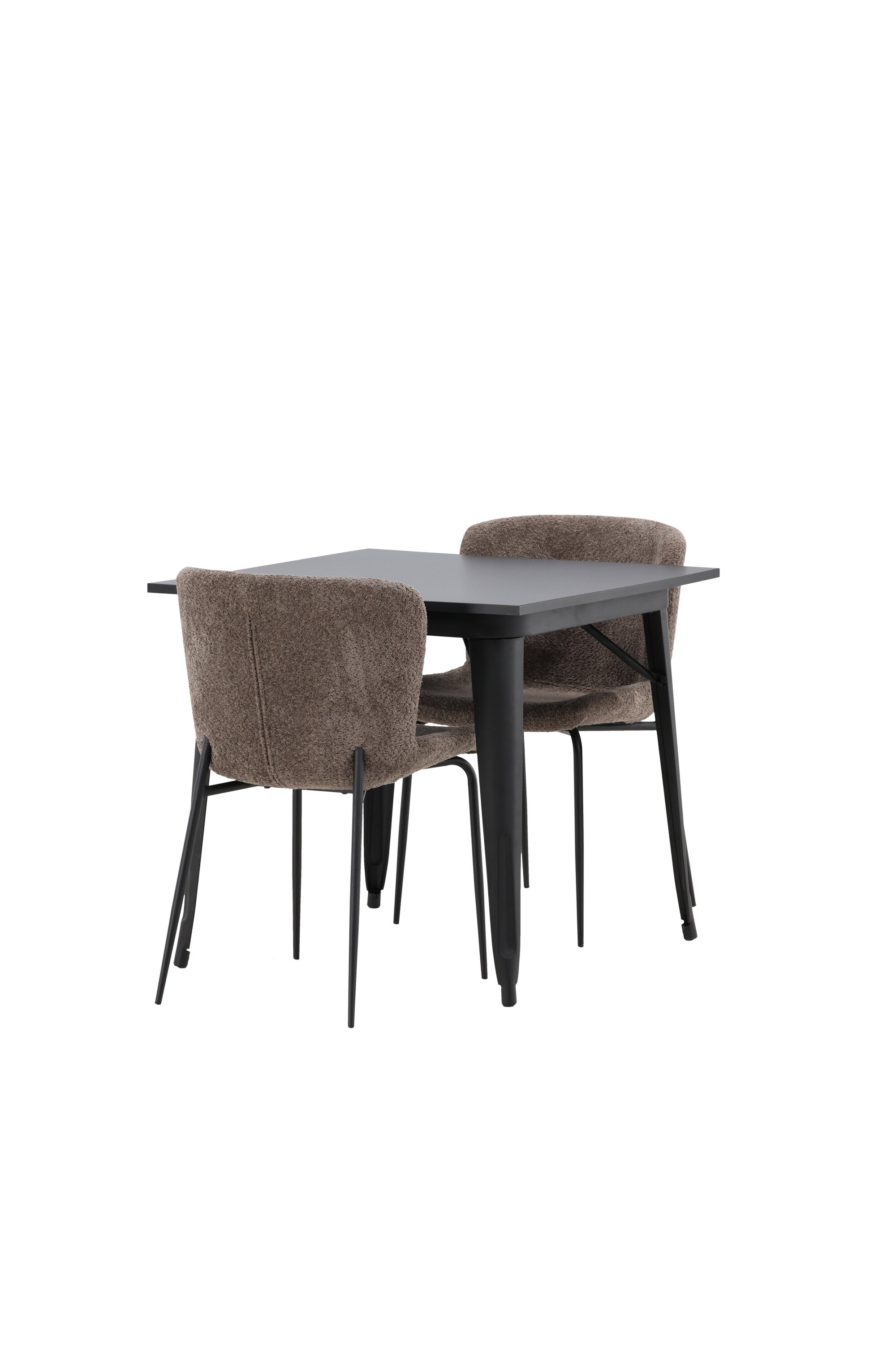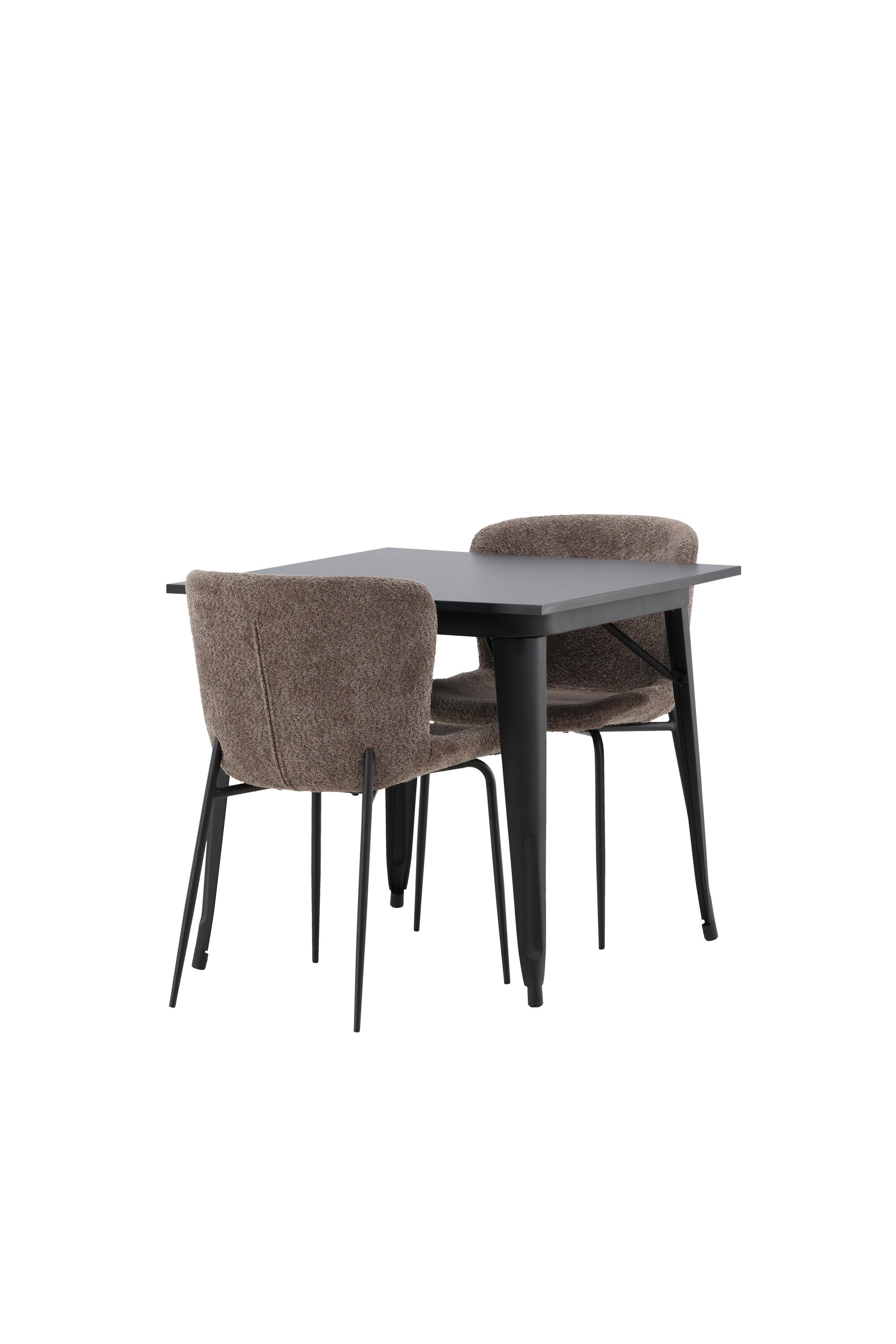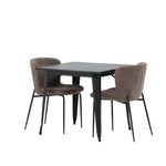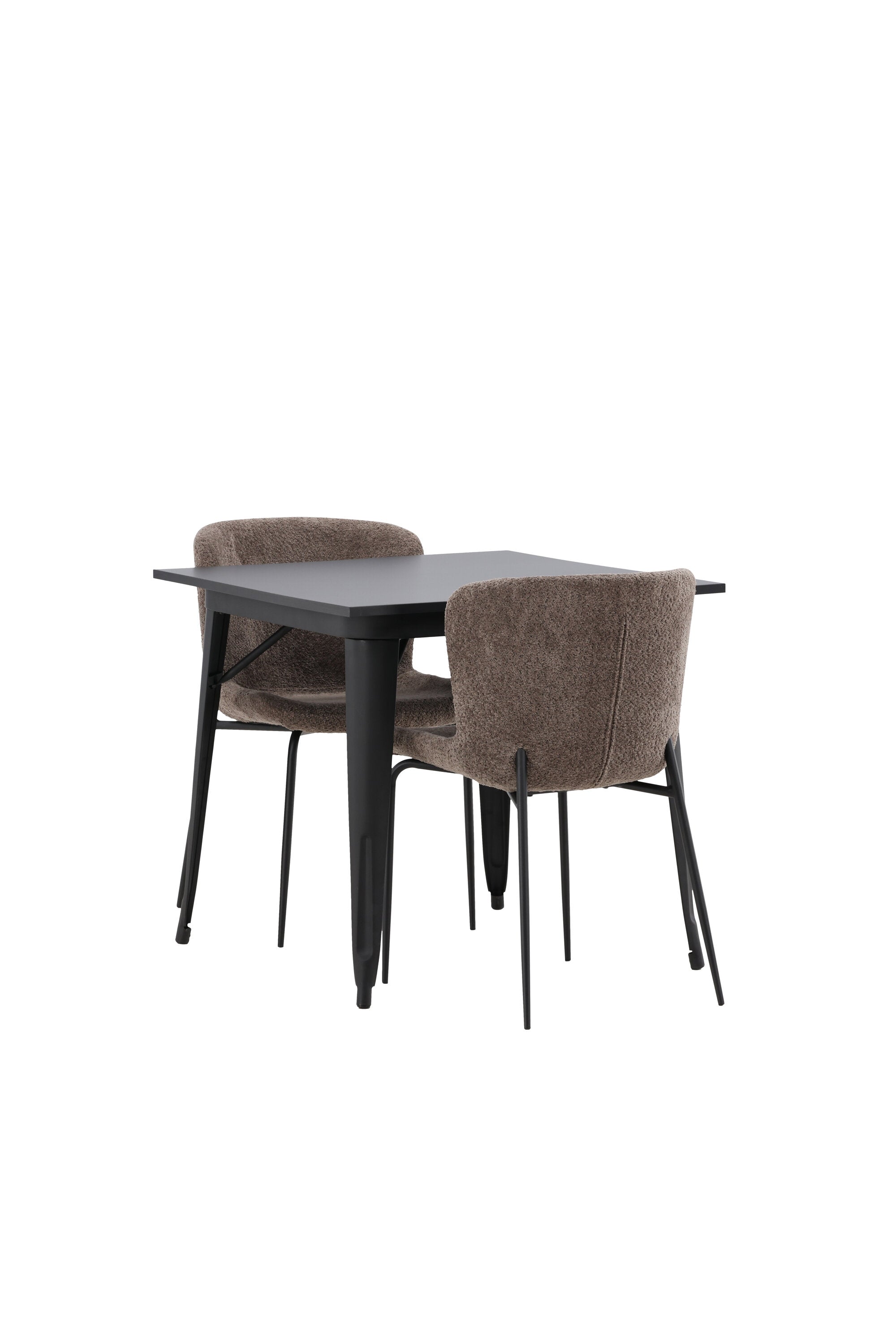 Moderní a okouzlující jídelní skupina – vybavte svůj domov chytře a stylově! Tento jídelní stůl ze série Tempe má klasický hranatý design a nadčasovou černou barvu. Deska stolu je z černé MDF a nohy z černého kovu. Zde v dokonalé kombinaci s našimi pohodlnými jídelními židlemi ze série Modesto ve skandinávském designu. Židle je celočalouněná šedou bouclé látkou se stylovými úzkými nohami v černém kovu. Mírně zaoblená záda a čalouněný sedák poskytují extra pohodlí a rozšiřují příjemné jídlo kolem jídelního stolu. Mělo by to být příjemné sedět u dobrého jídla!