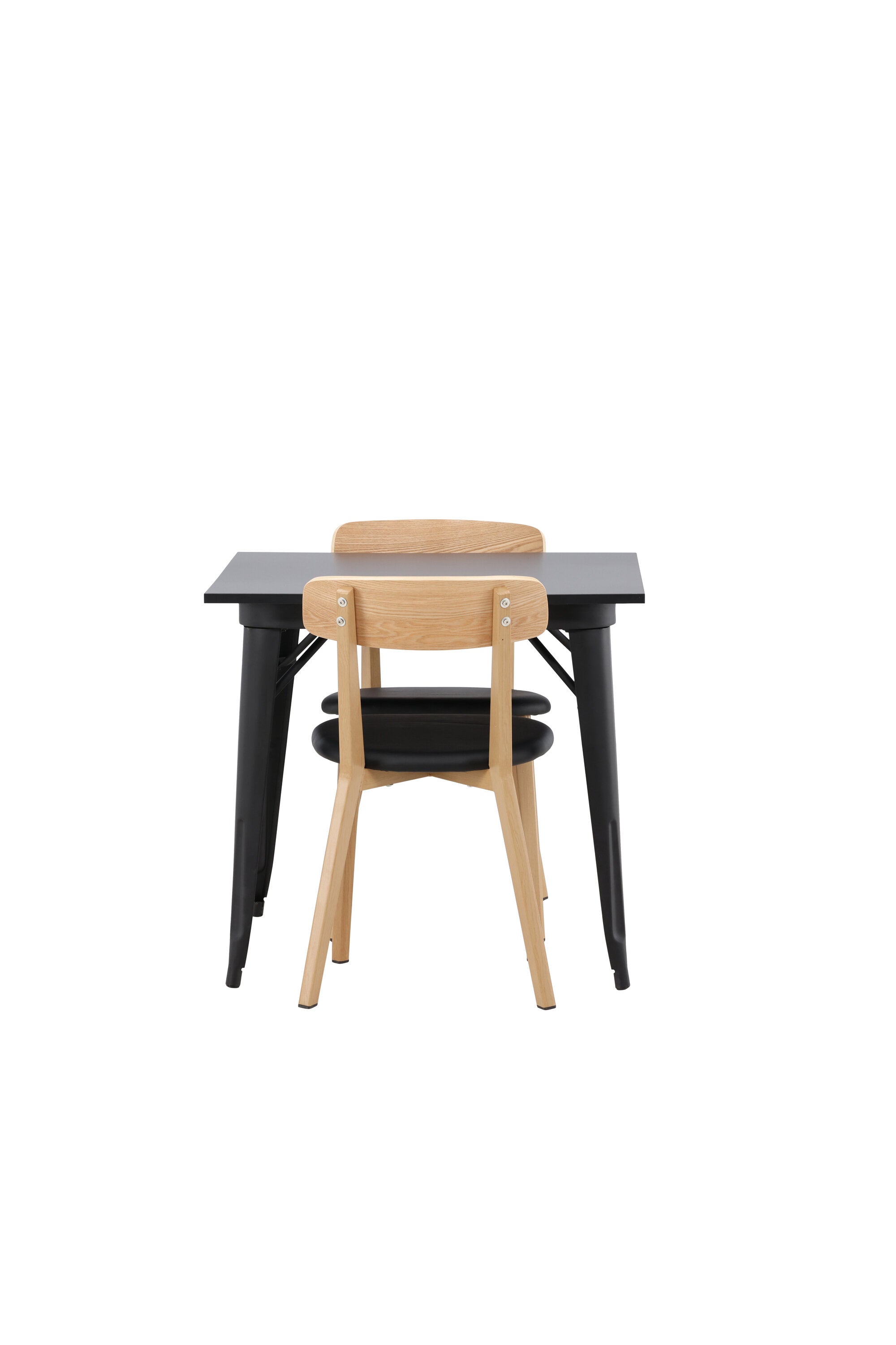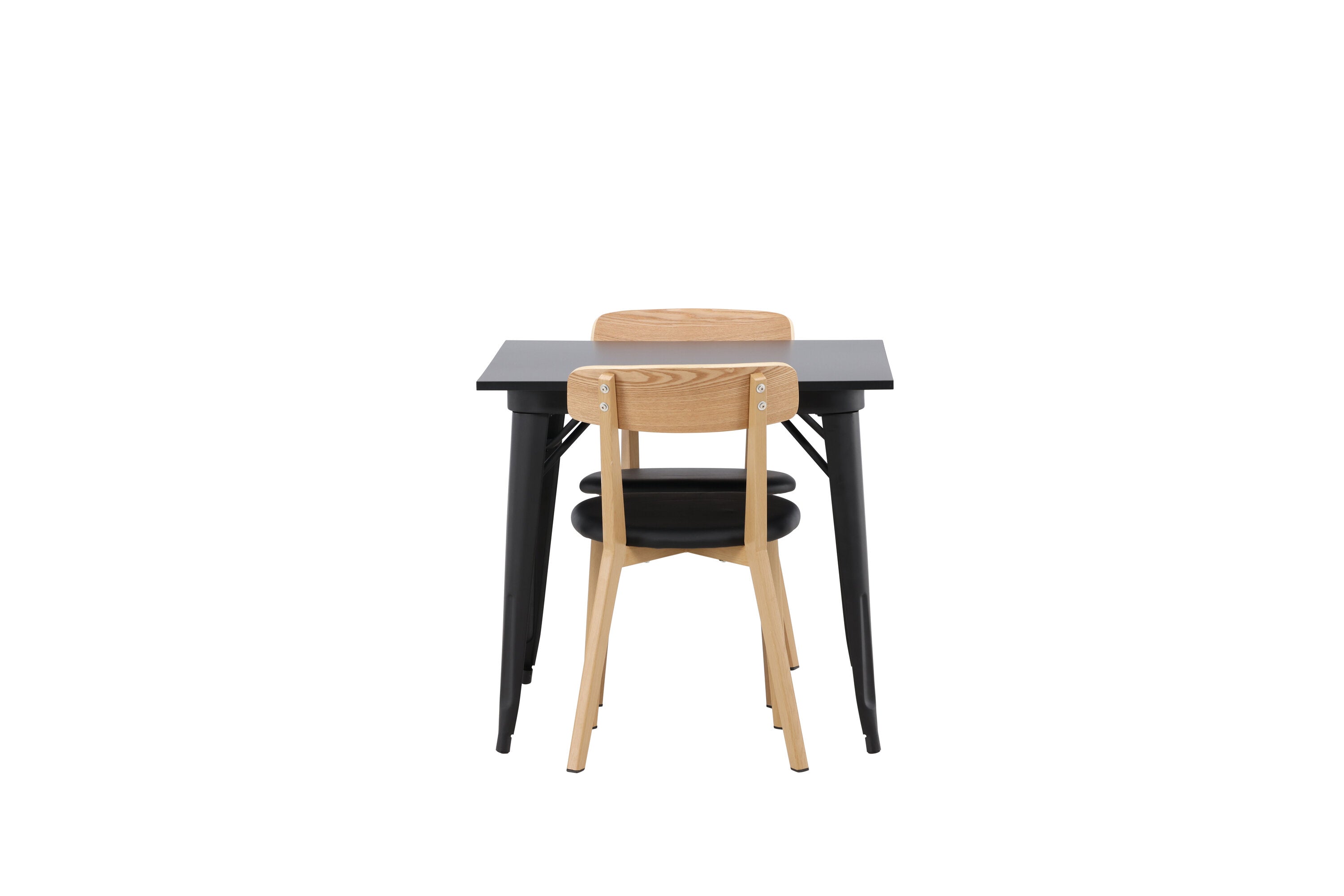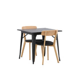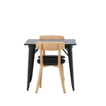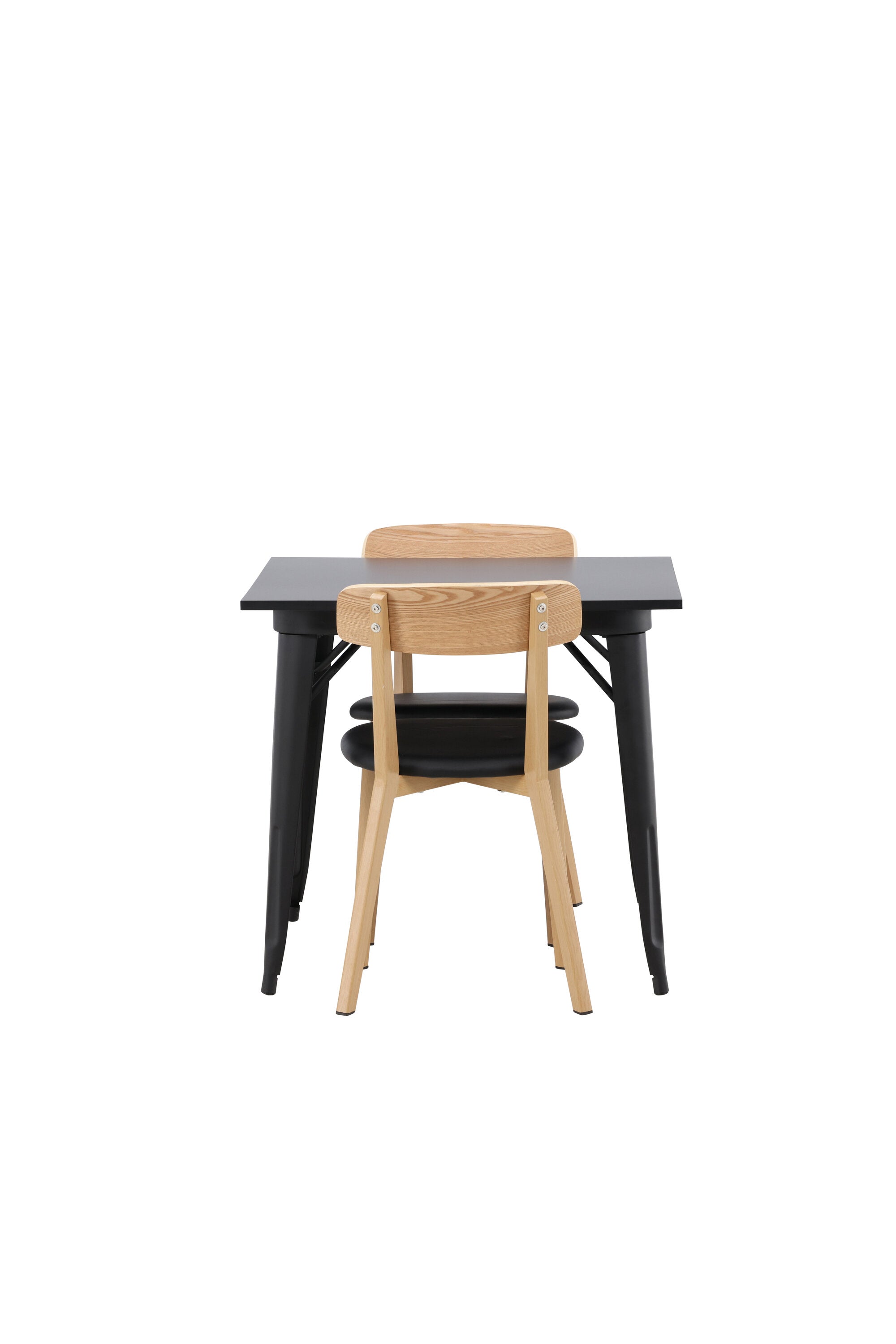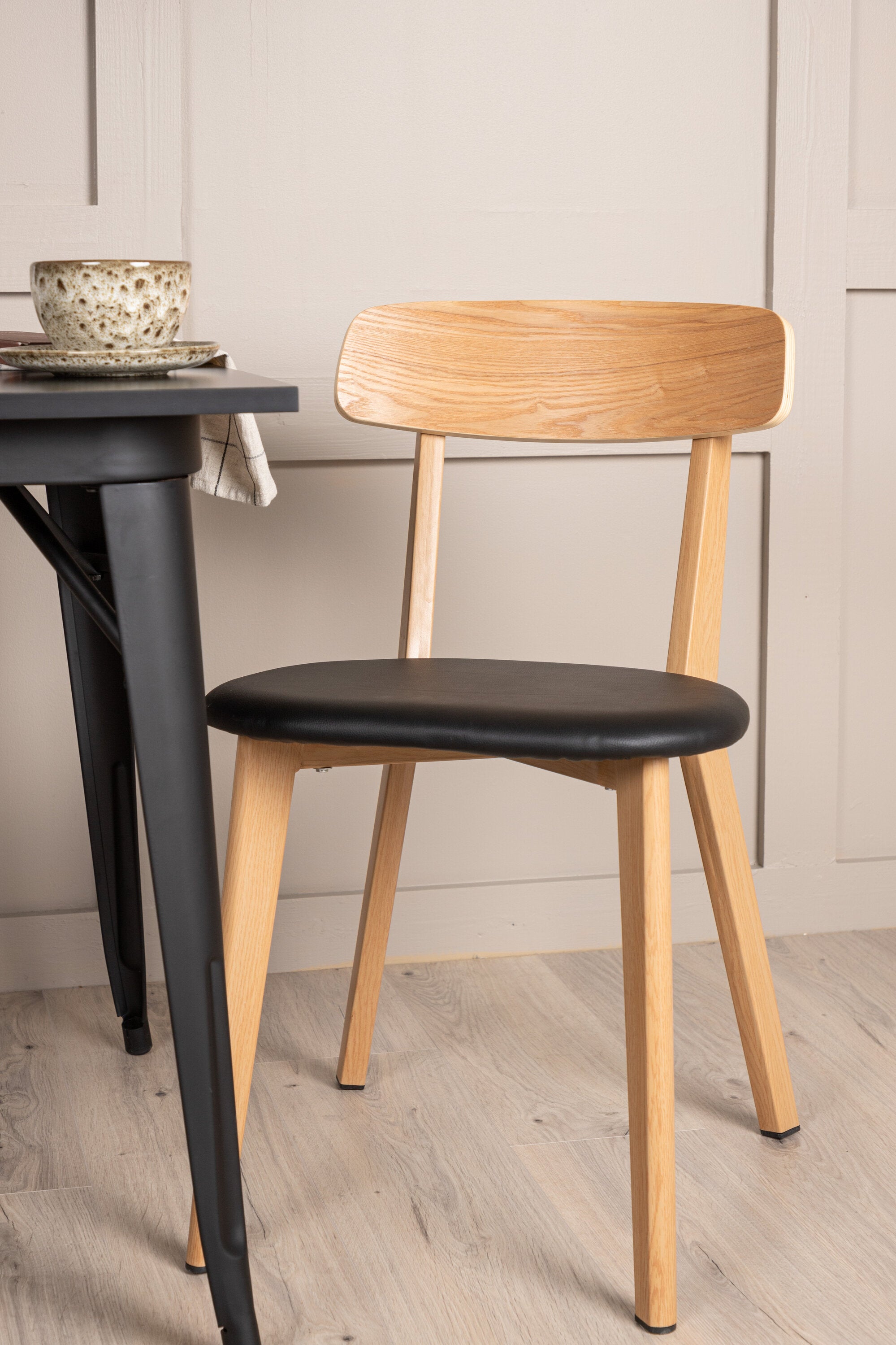 Zařiďte svůj domov chytře a stylově! Tento jídelní stůl ze série Tempe má klasický hranatý design a nadčasovou černou barvu. Deska stolu je z černé MDF a nohy stolu z černého kovu. Zde v dokonalé kombinaci s našimi vkusnými jídelními židlemi ze série Sanjos. Židle patří do kolekce Venture Home a má krásný design v barvách černá a přírodní dřevo. Měkké sedadlo je čalouněno pěnou pro větší pohodlí a má PU-kůži v černé barvě. Záda a nohy jsou ze světlého dřeva a působí dojmem klasického designu. Pohodlně se usaďte!