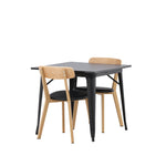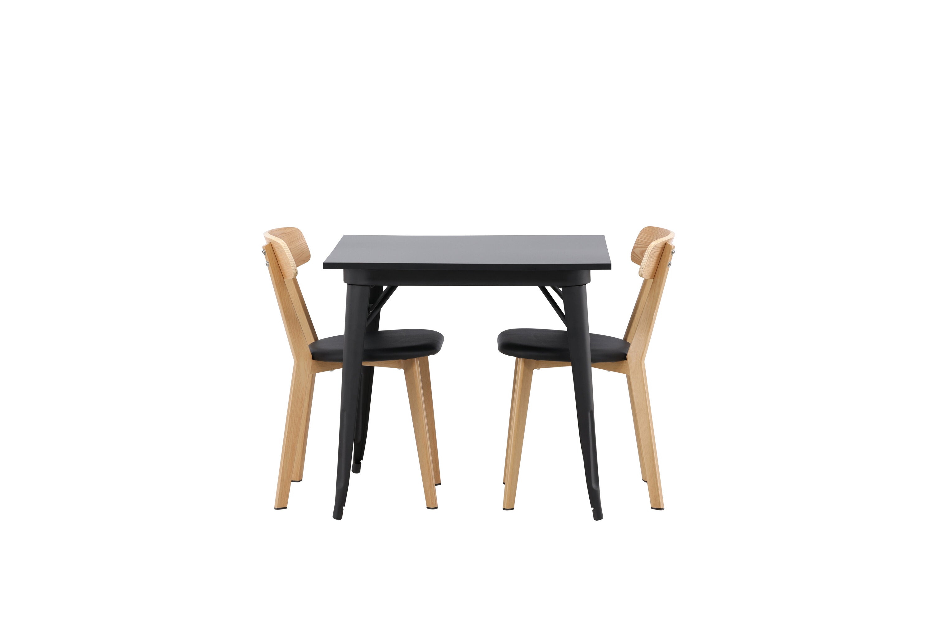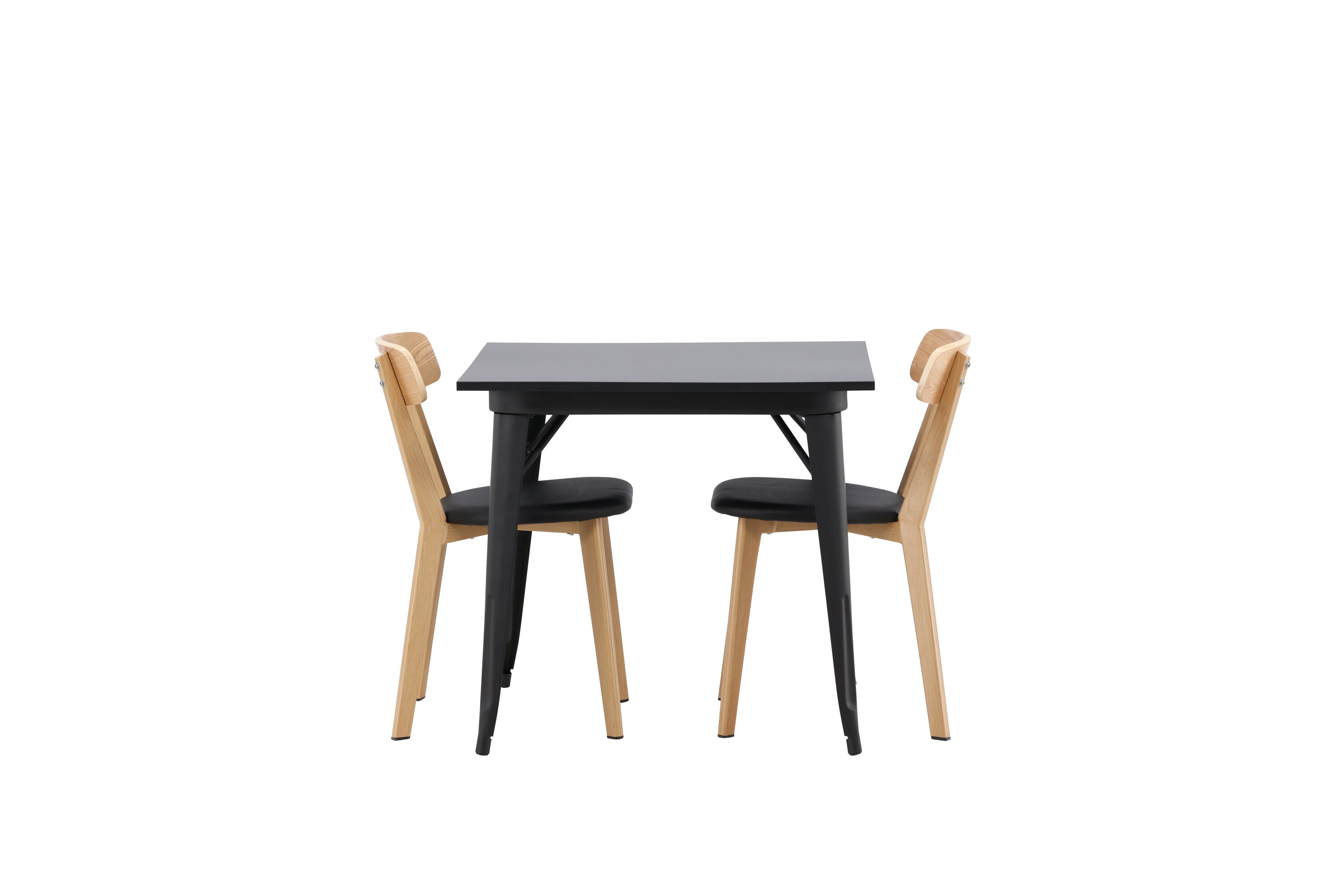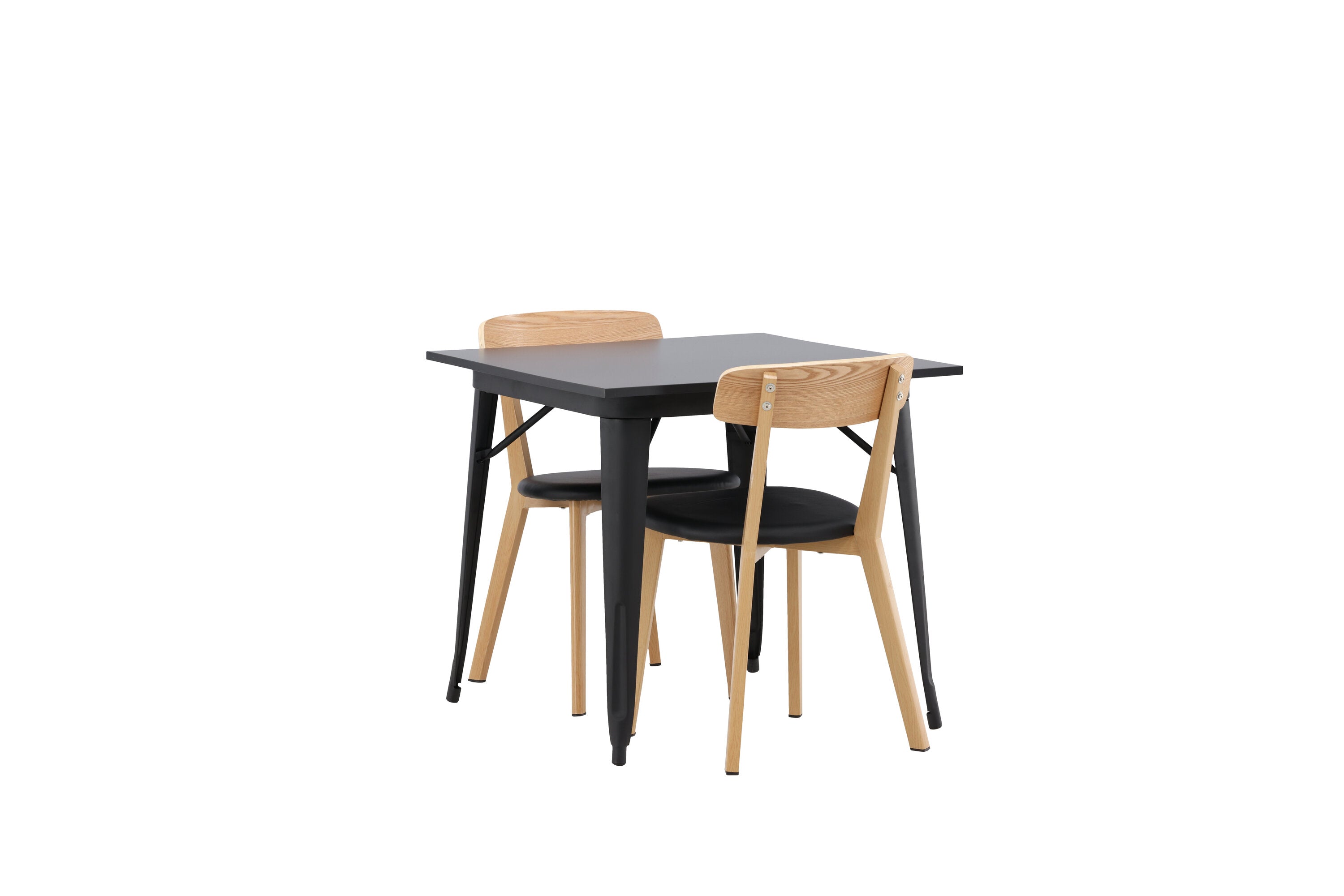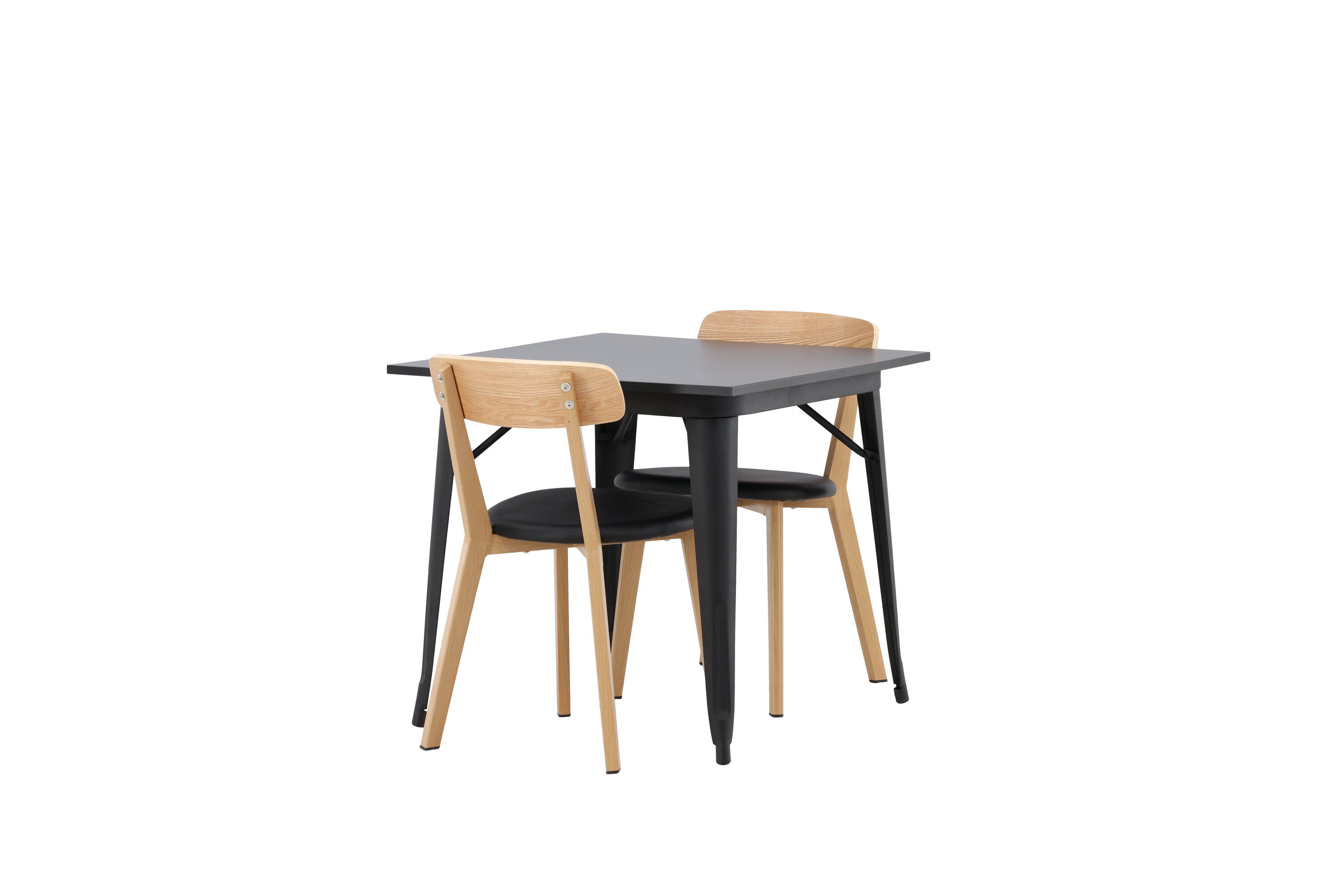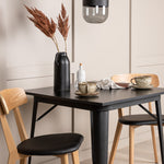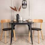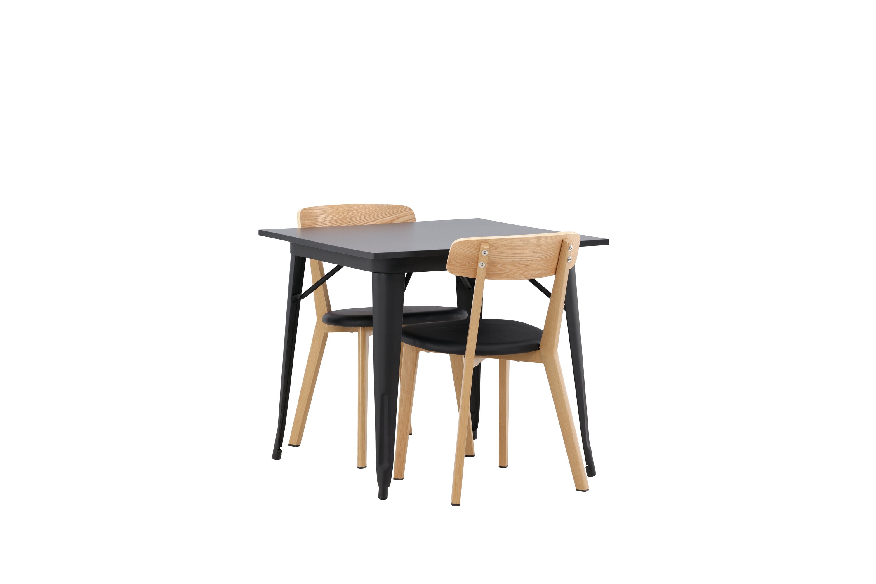 Zařiďte svůj domov chytře a stylově! Tento jídelní stůl ze série Tempe má klasický hranatý design a nadčasovou černou barvu. Deska stolu je z černé MDF a nohy stolu z černého kovu. Zde v dokonalé kombinaci s našimi vkusnými jídelními židlemi ze série Sanjos. Židle patří do kolekce Venture Home a má krásný design v barvách černá a přírodní dřevo. Měkké sedadlo je čalouněno pěnou pro větší pohodlí a má PU-kůži v černé barvě. Záda a nohy jsou ze světlého dřeva a působí dojmem klasického designu. Pohodlně se usaďte!