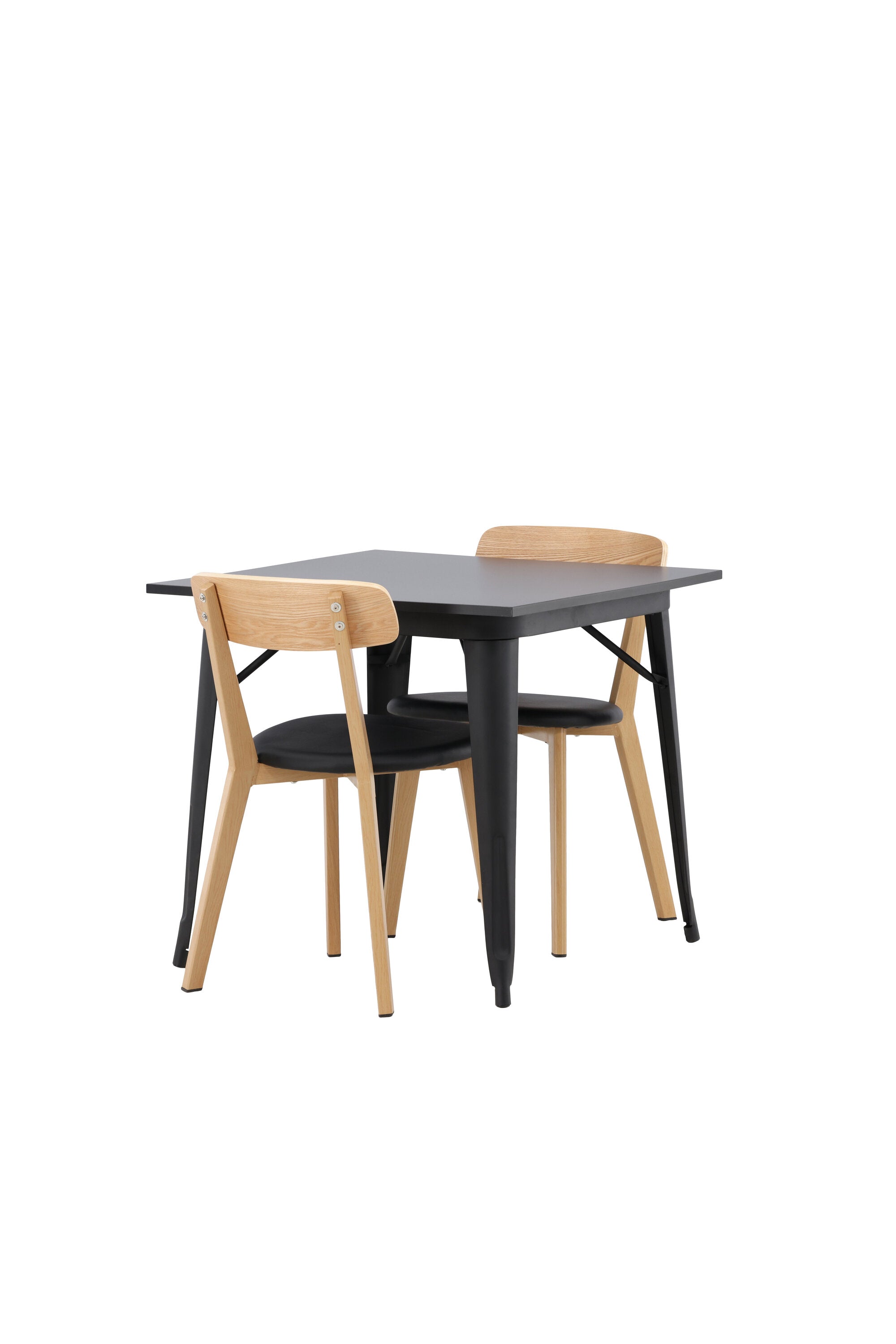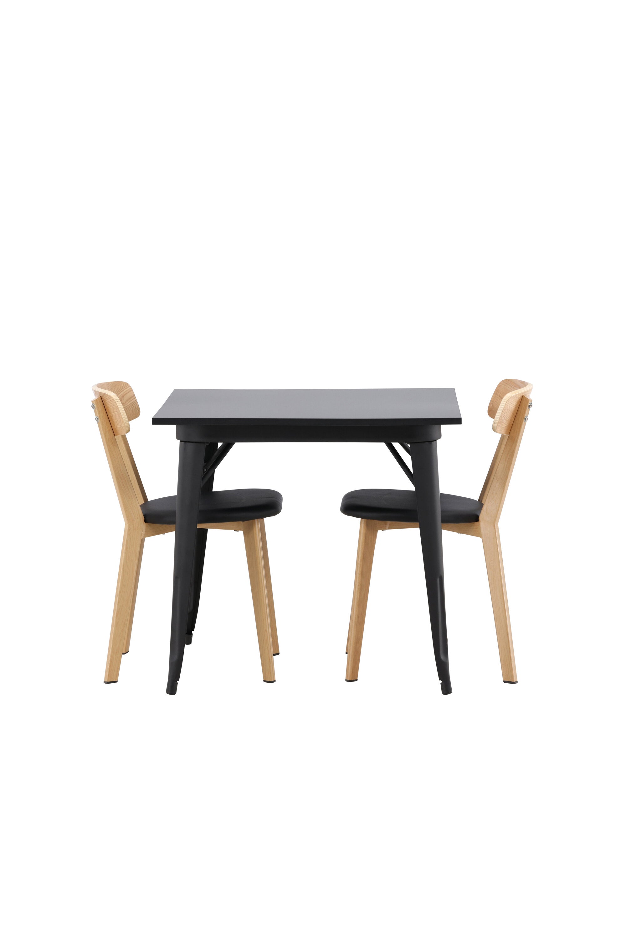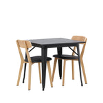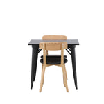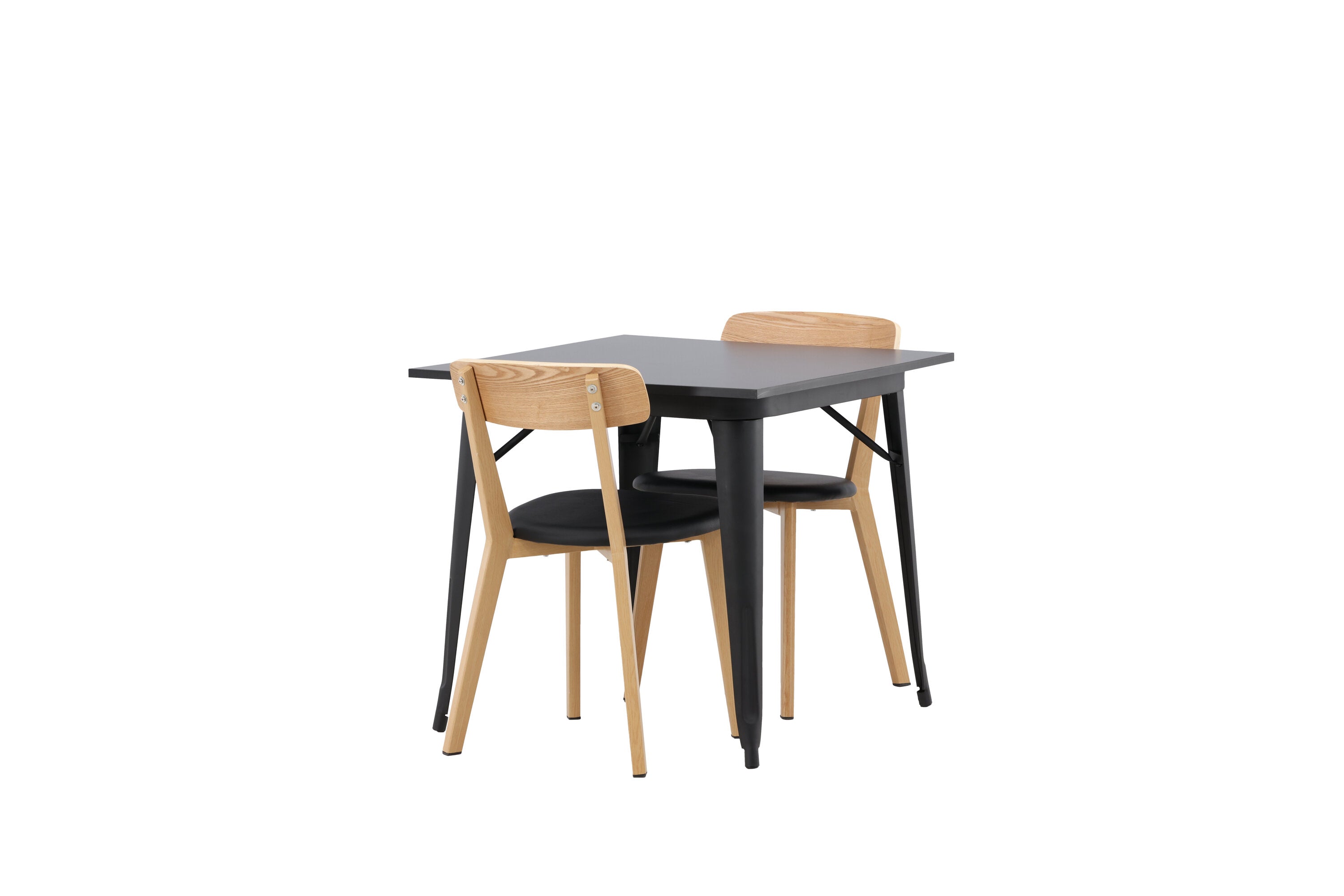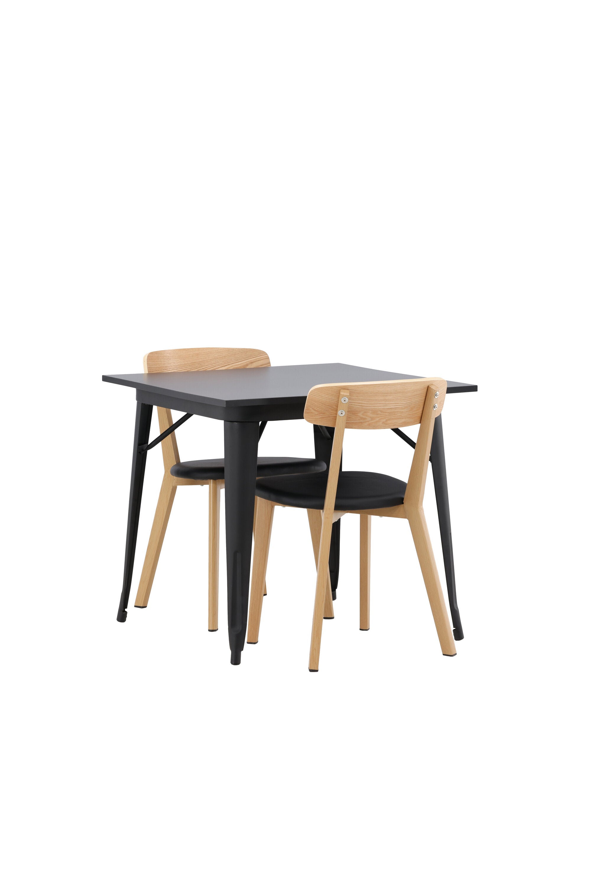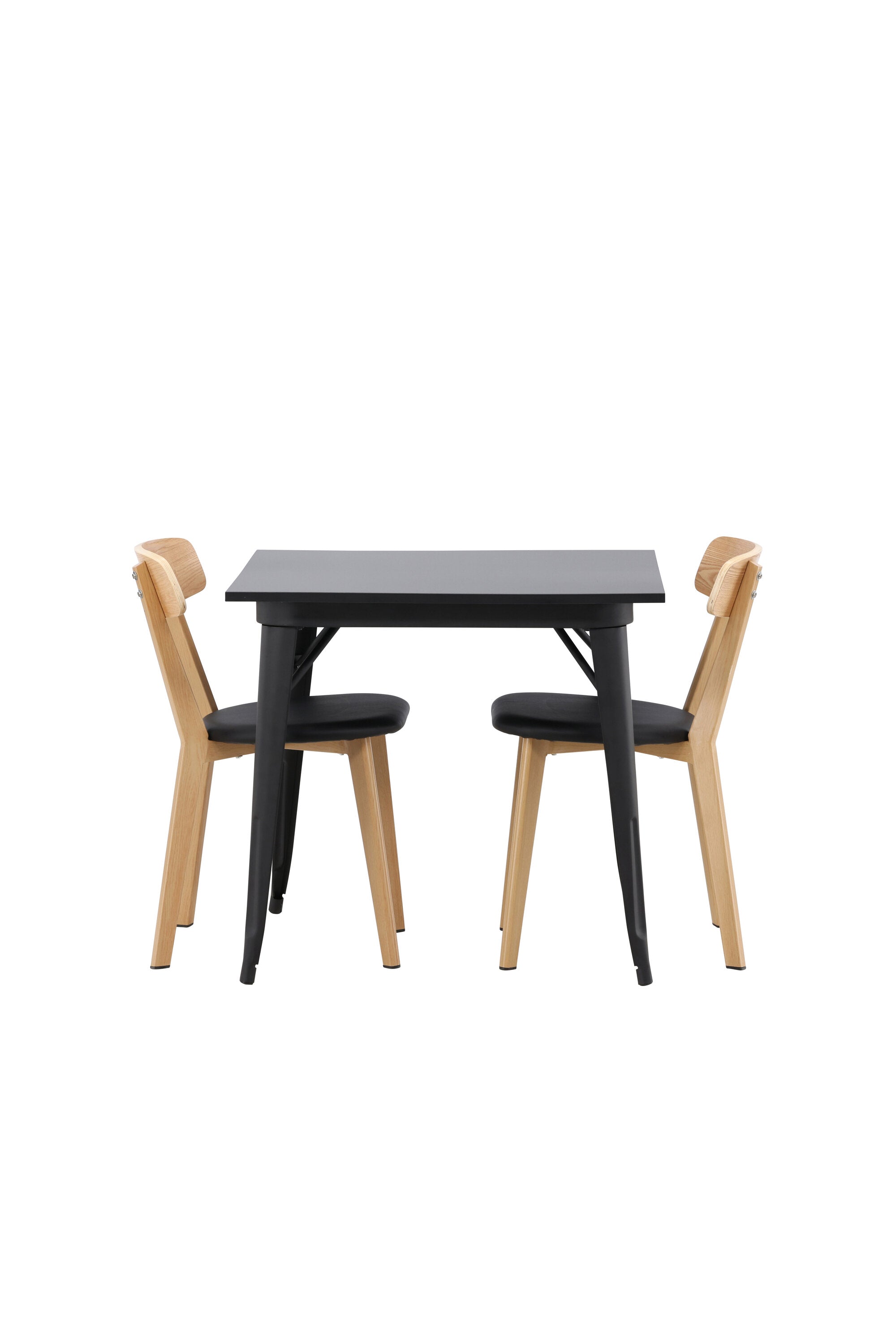 Zařiďte svůj domov chytře a stylově! Tento jídelní stůl ze série Tempe má klasický hranatý design a nadčasovou černou barvu. Deska stolu je z černé MDF a nohy stolu z černého kovu. Zde v dokonalé kombinaci s našimi vkusnými jídelními židlemi ze série Sanjos. Židle patří do kolekce Venture Home a má krásný design v barvách černá a přírodní dřevo. Měkké sedadlo je čalouněno pěnou pro větší pohodlí a má PU-kůži v černé barvě. Záda a nohy jsou ze světlého dřeva a působí dojmem klasického designu. Pohodlně se usaďte!