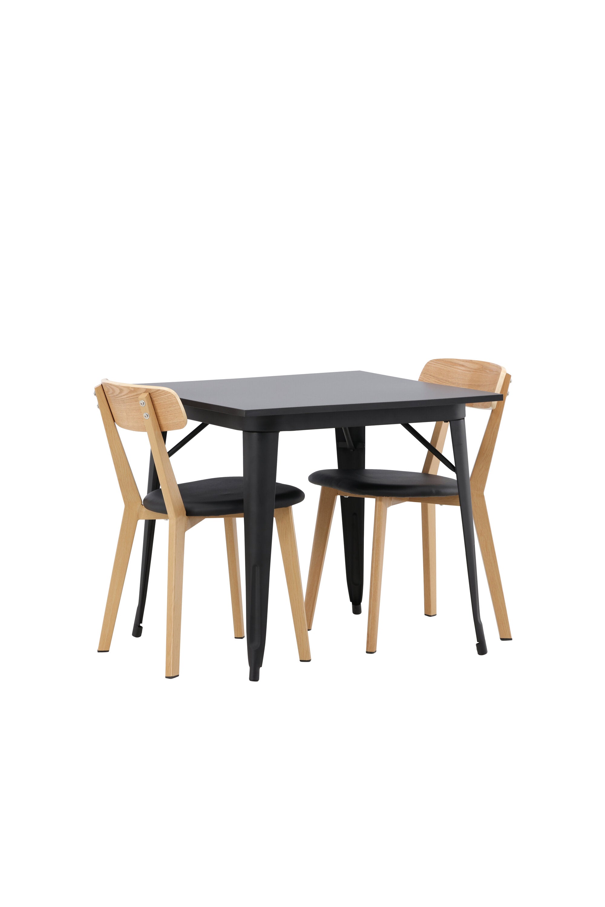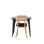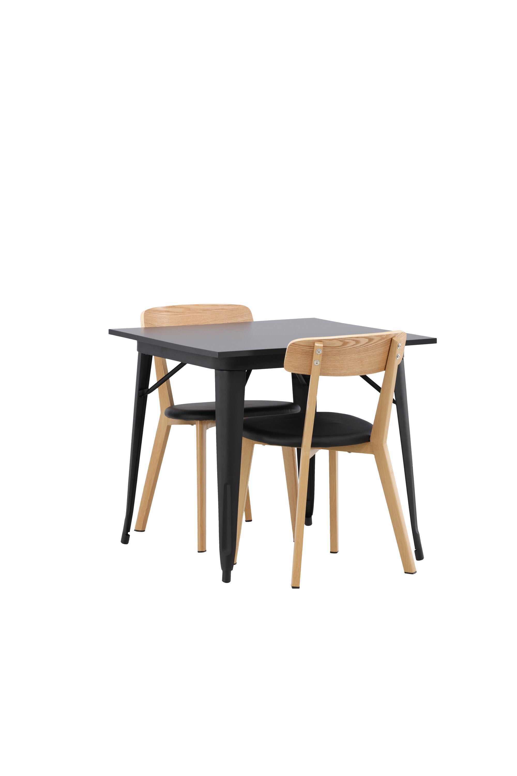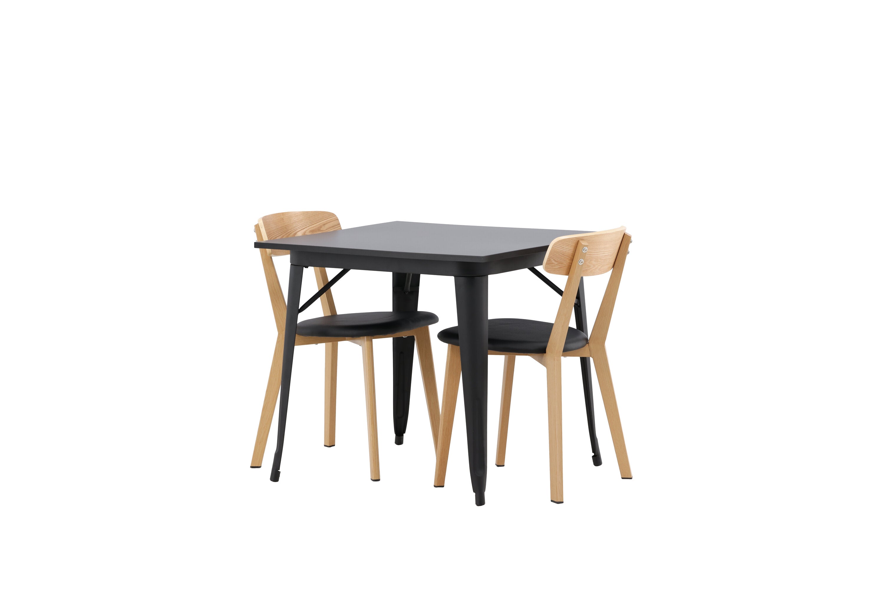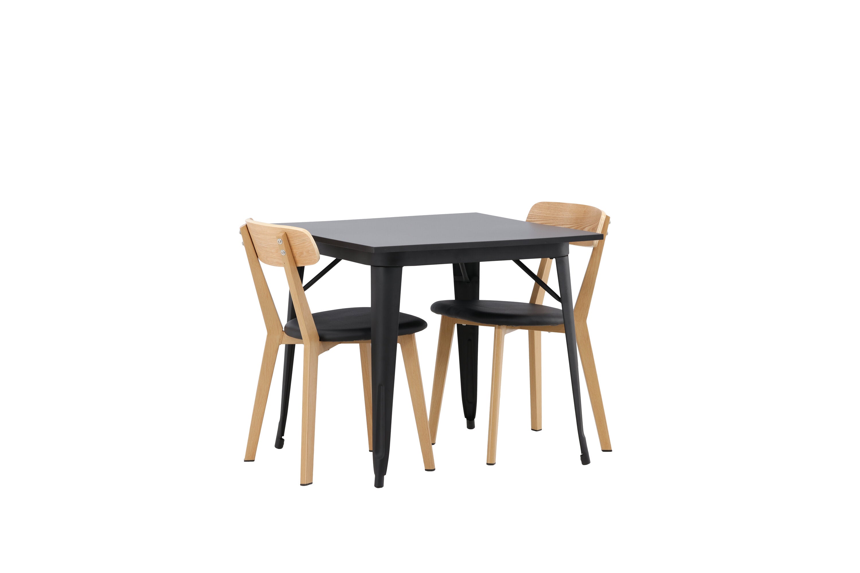 Zařiďte svůj domov chytře a stylově! Tento jídelní stůl ze série Tempe má klasický hranatý design a nadčasovou černou barvu. Deska stolu je z černé MDF a nohy stolu z černého kovu. Zde v dokonalé kombinaci s našimi vkusnými jídelními židlemi ze série Sanjos. Židle patří do kolekce Venture Home a má krásný design v barvách černá a přírodní dřevo. Měkké sedadlo je čalouněno pěnou pro větší pohodlí a má PU-kůži v černé barvě. Záda a nohy jsou ze světlého dřeva a působí dojmem klasického designu. Pohodlně se usaďte!