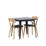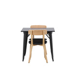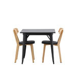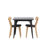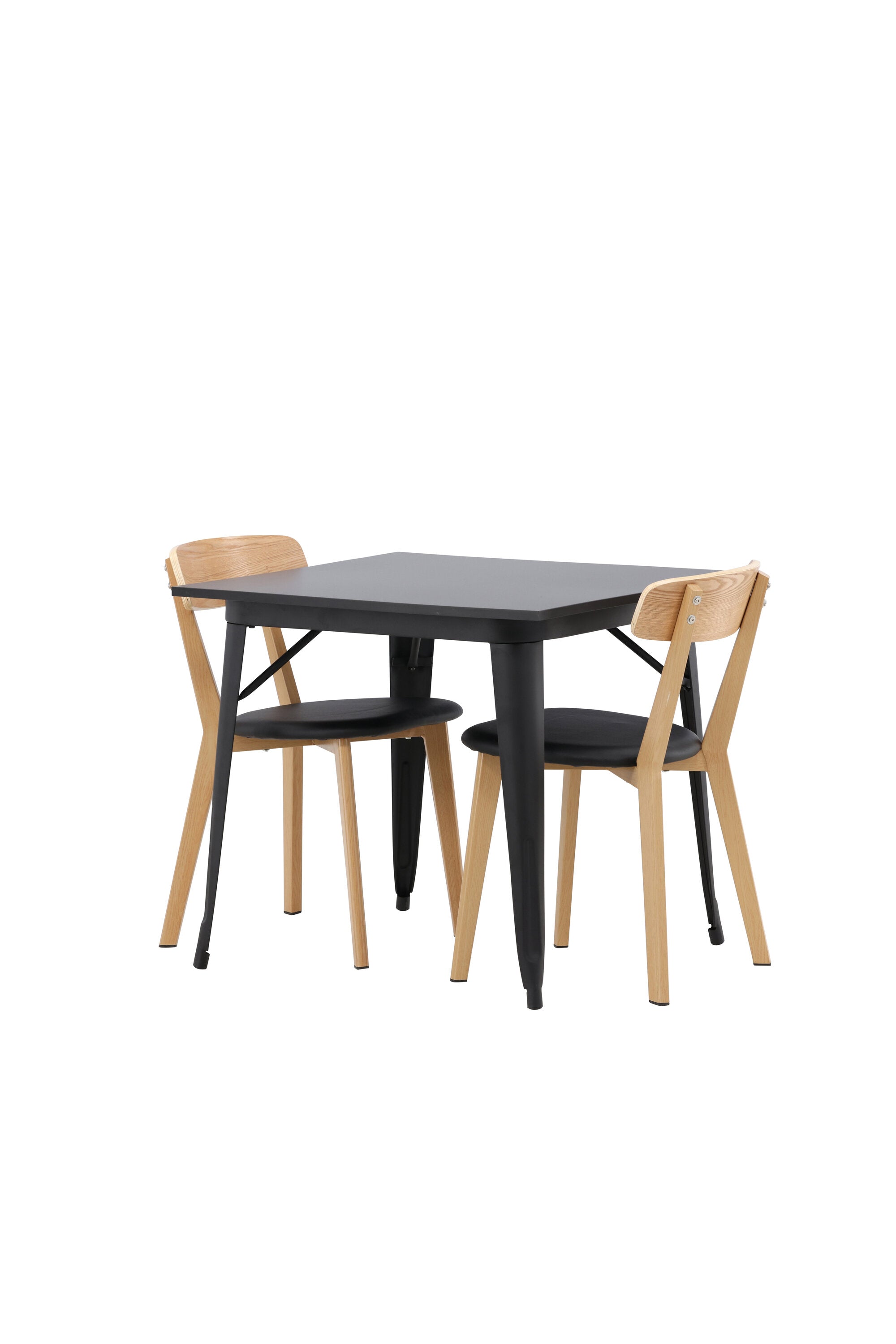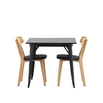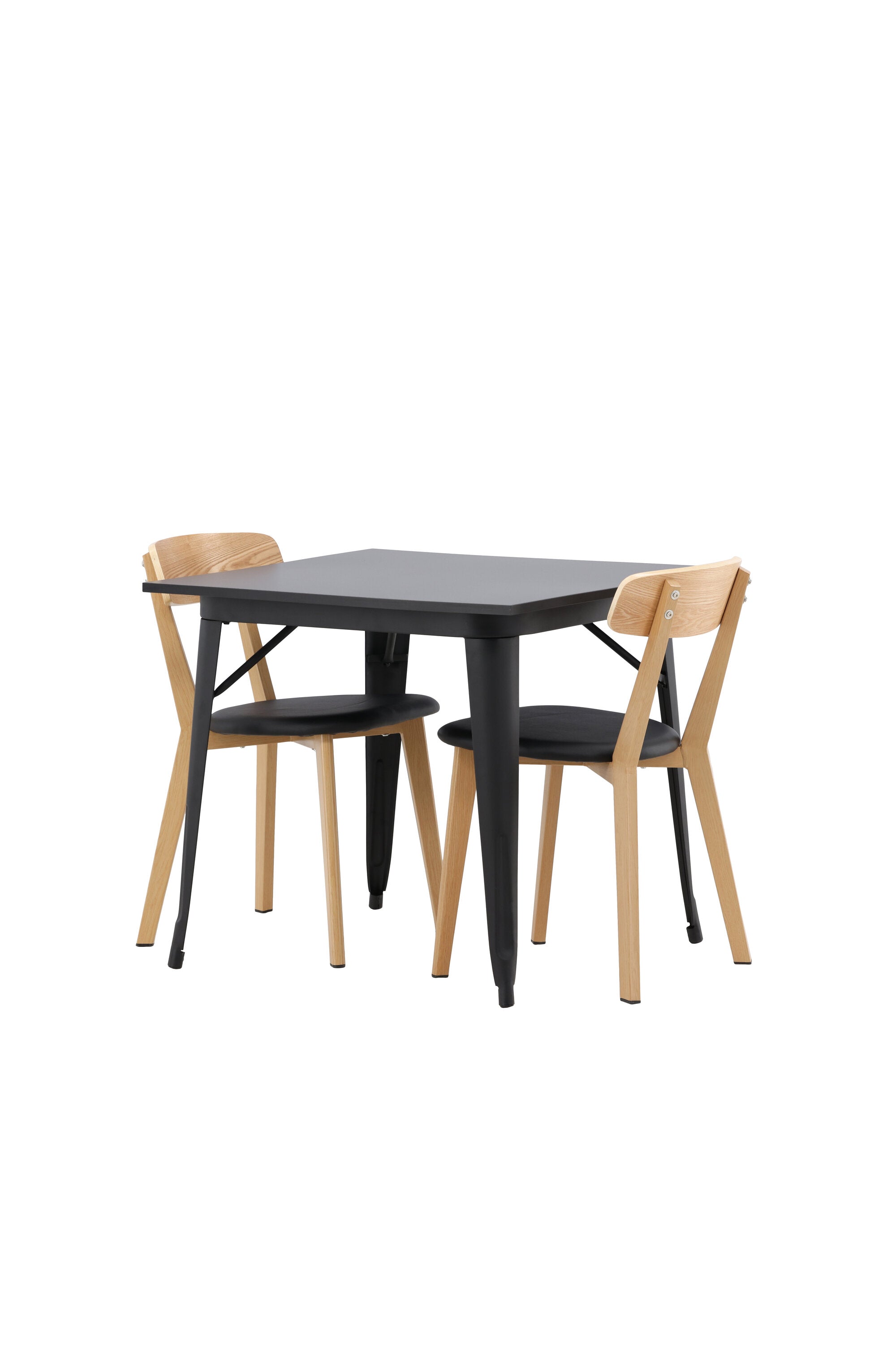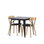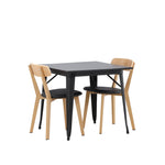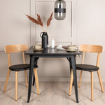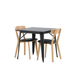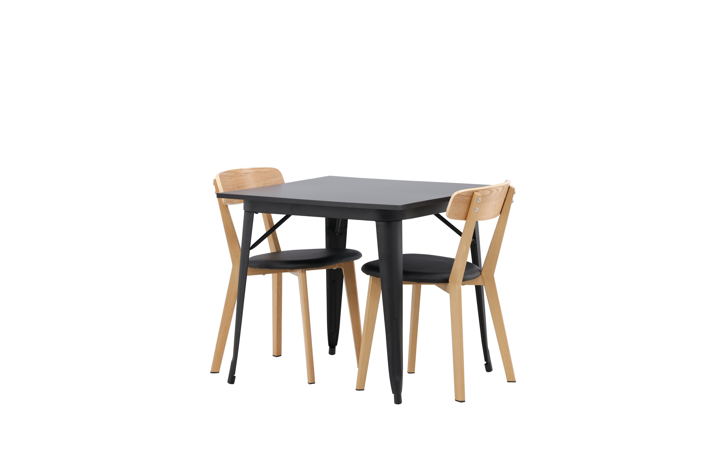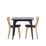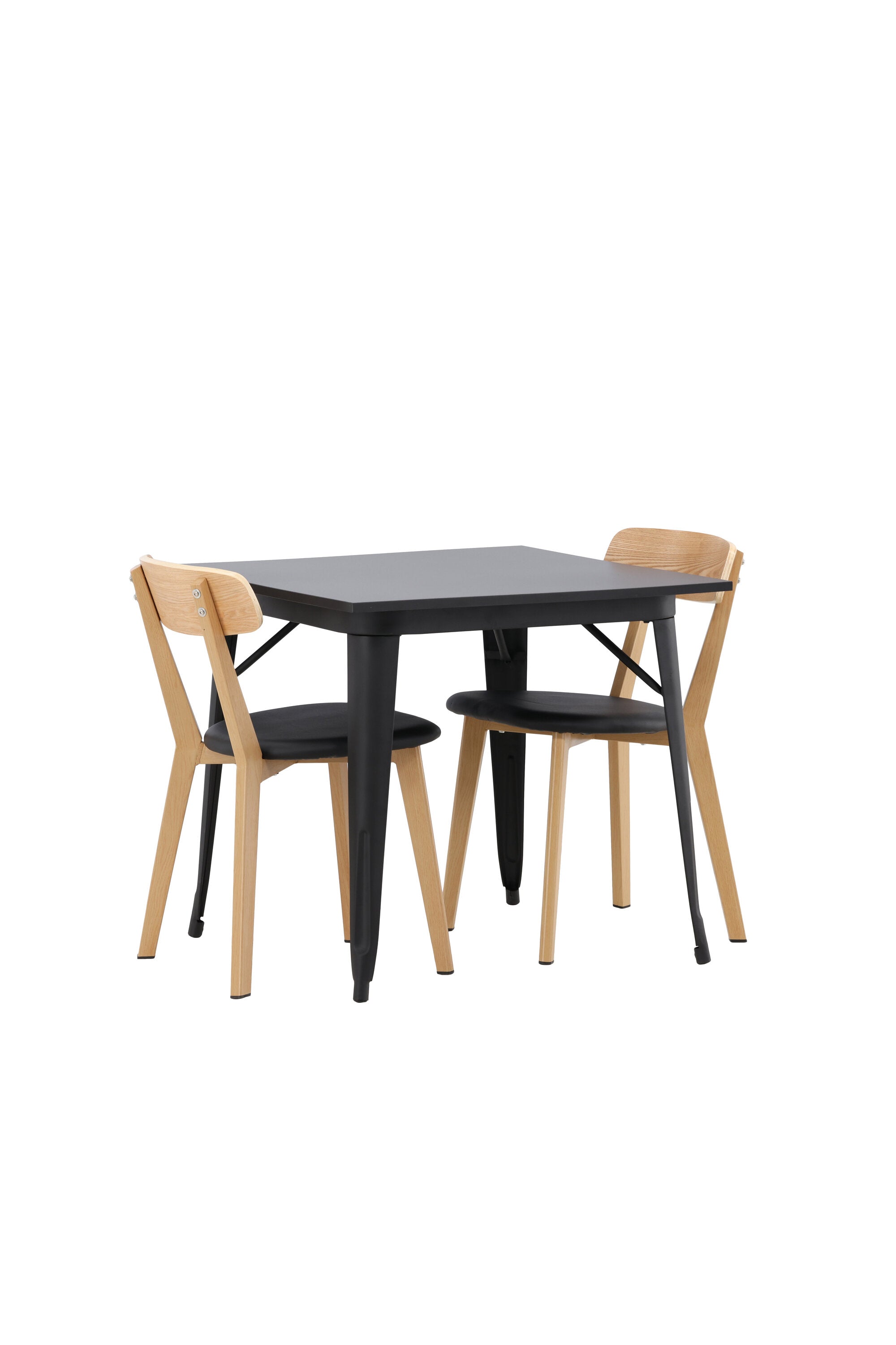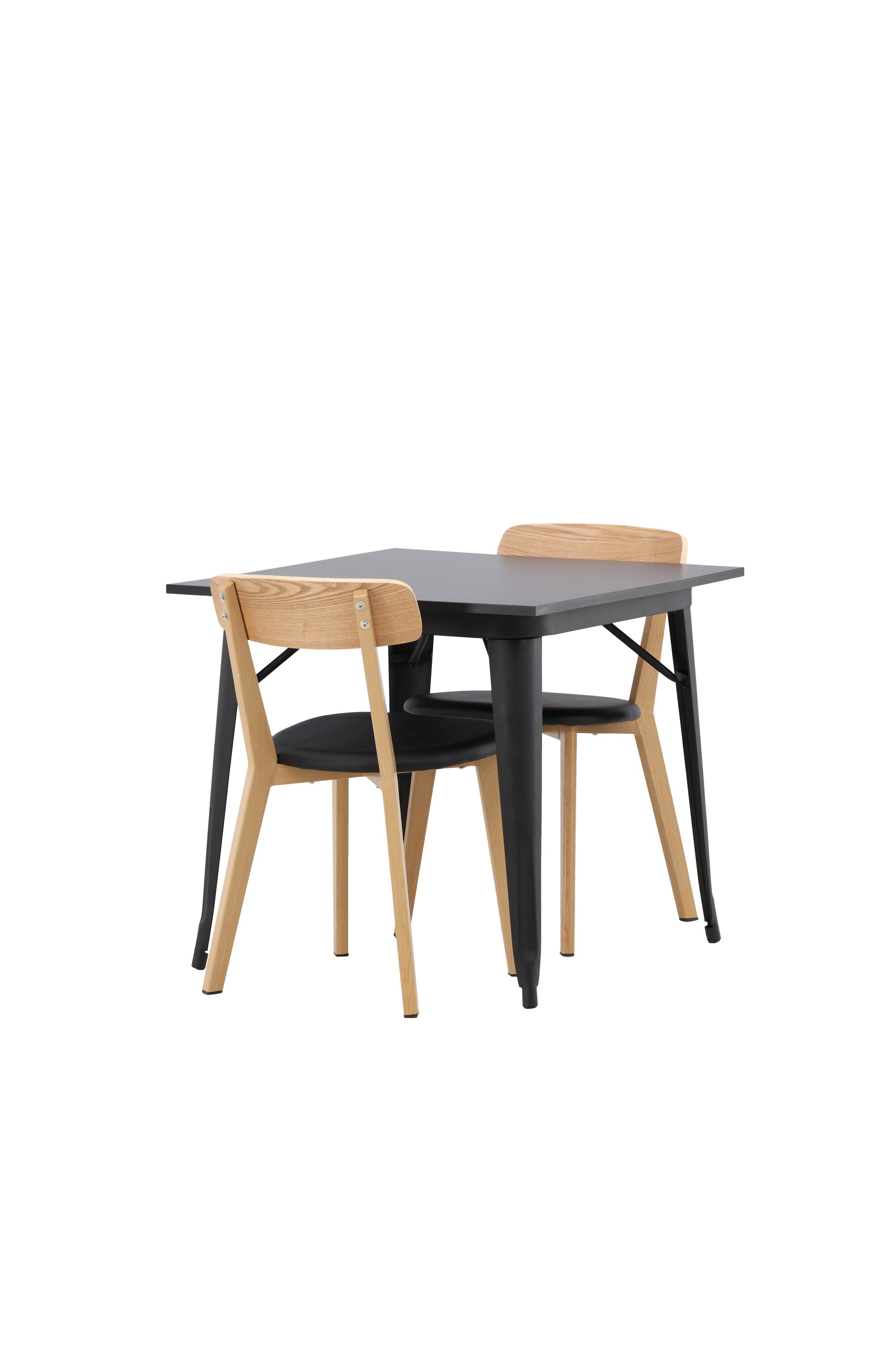 Zařiďte svůj domov chytře a stylově! Tento jídelní stůl ze série Tempe má klasický hranatý design a nadčasovou černou barvu. Deska stolu je z černé MDF a nohy stolu z černého kovu. Zde v dokonalé kombinaci s našimi vkusnými jídelními židlemi ze série Sanjos. Židle patří do kolekce Venture Home a má krásný design v barvách černá a přírodní dřevo. Měkké sedadlo je čalouněno pěnou pro větší pohodlí a má PU-kůži v černé barvě. Záda a nohy jsou ze světlého dřeva a působí dojmem klasického designu. Pohodlně se usaďte!
