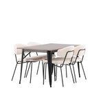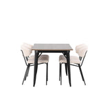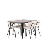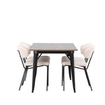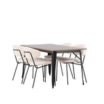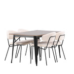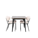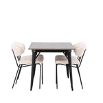 Dokonalá shoda – tato skupina potravin imponuje! Jídelní stůl ze série Tempe patří do kolekce Venture Home a má poutavý, skandinávský design. Vyrobeno ze čtvercové desky stolu z černé MDF a nohou stolu z černého kovu. Zde společně s našimi trendy jídelními židlemi ze série Chico. Židle mají minimalistický a pohodlný design s opěradlem a sedákem z bílé tkaniny a úzkým rámem z černé oceli. Zde získáte útulný poutač do vašeho domova!
