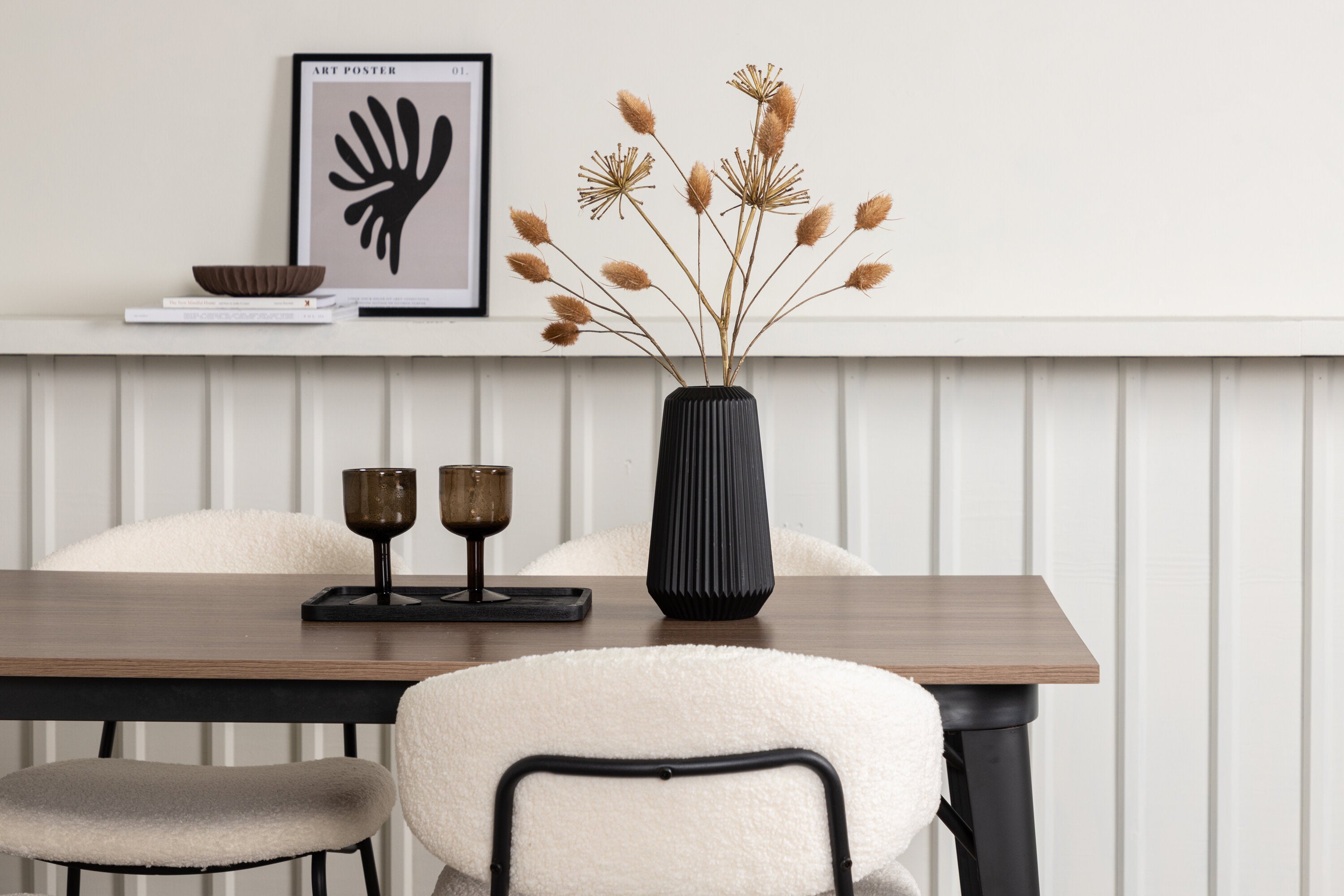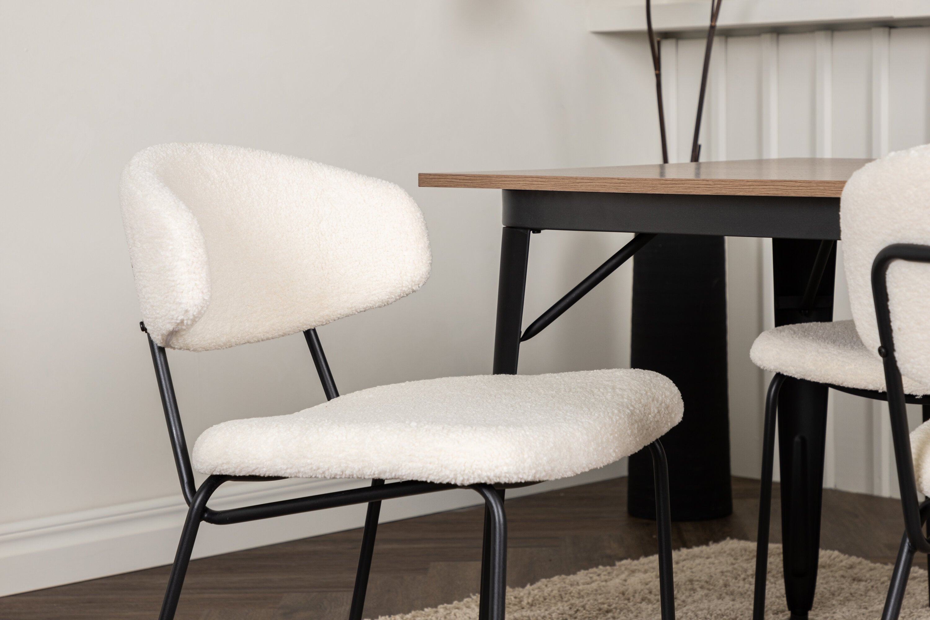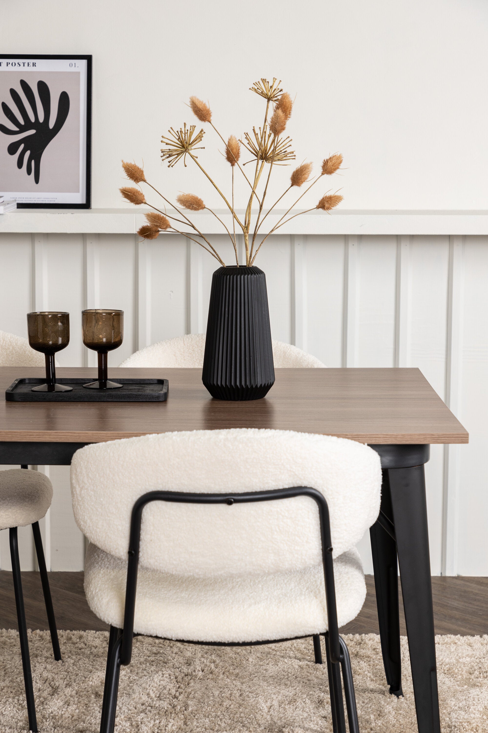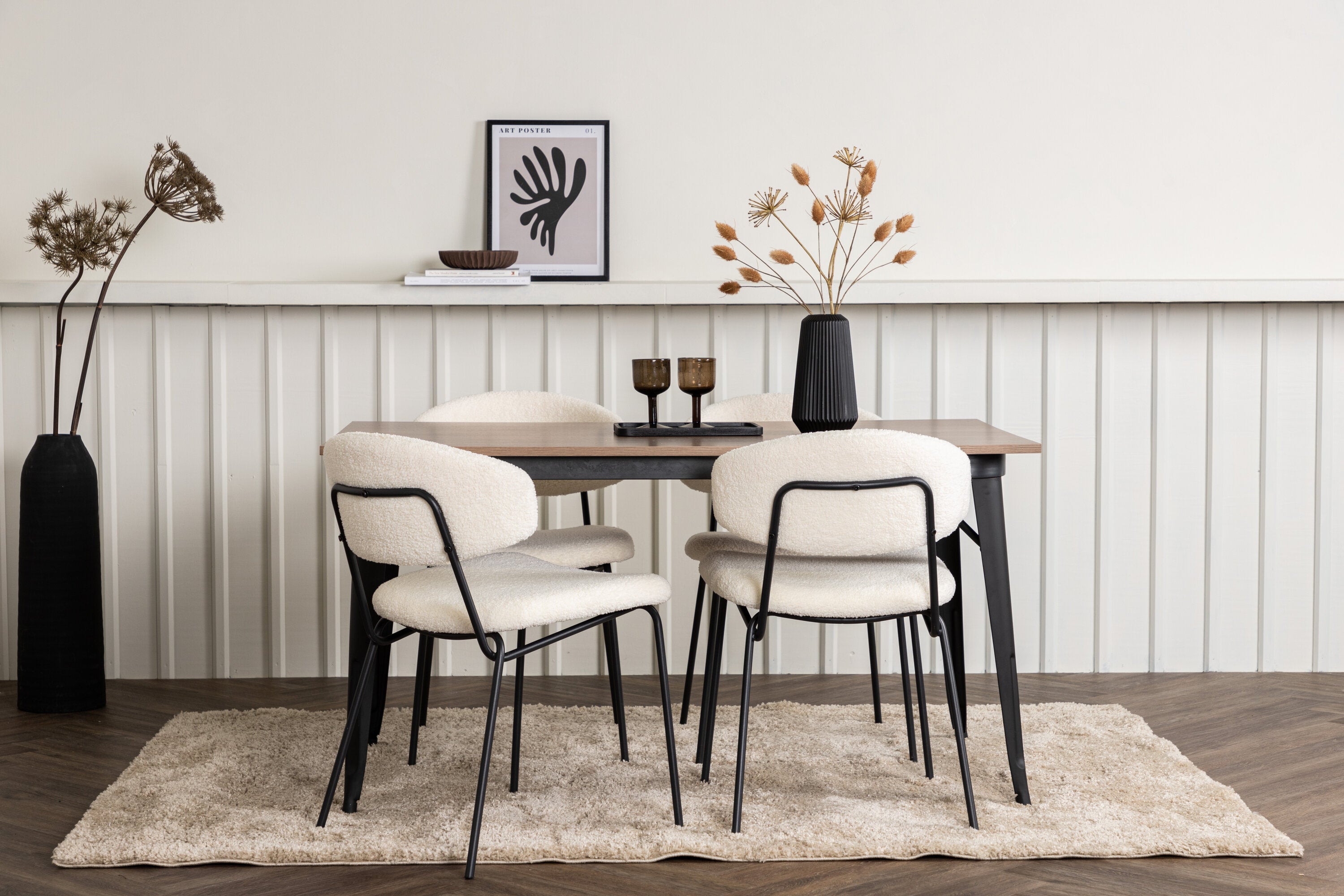 Jídelní stůl Tempe - Černá / Ořech MDF +Chico Jídelní židle - Černá / Bílá Boucle _4