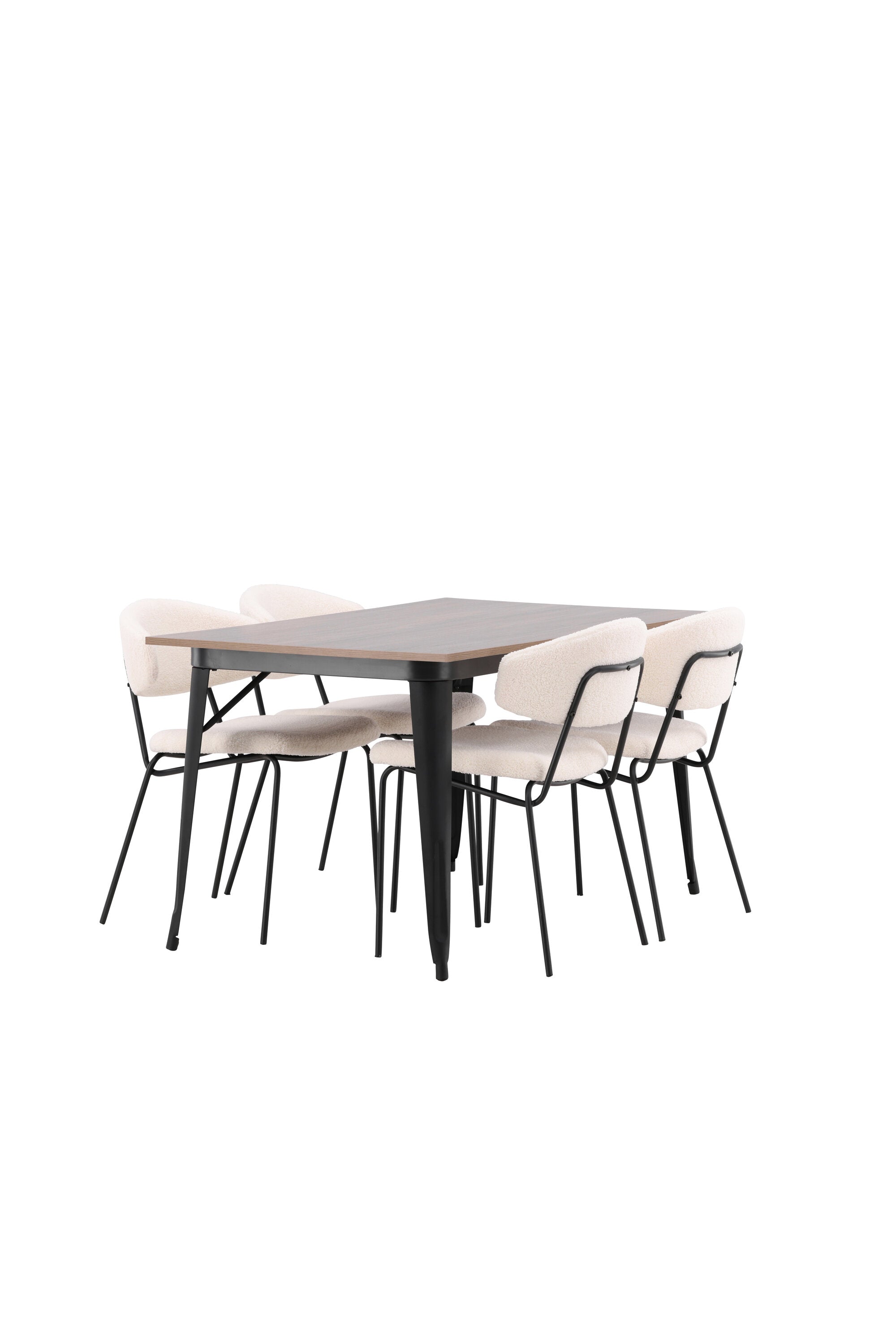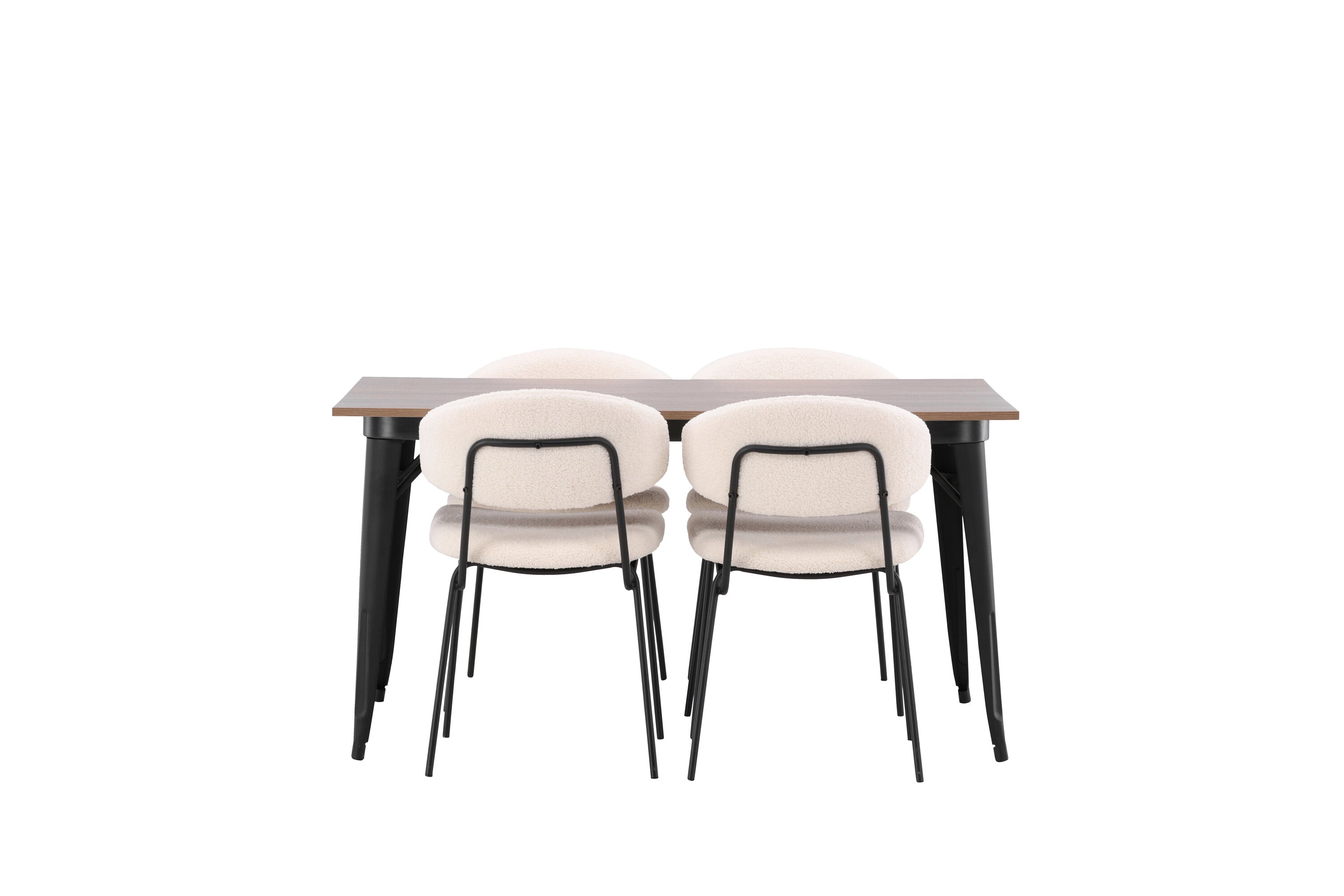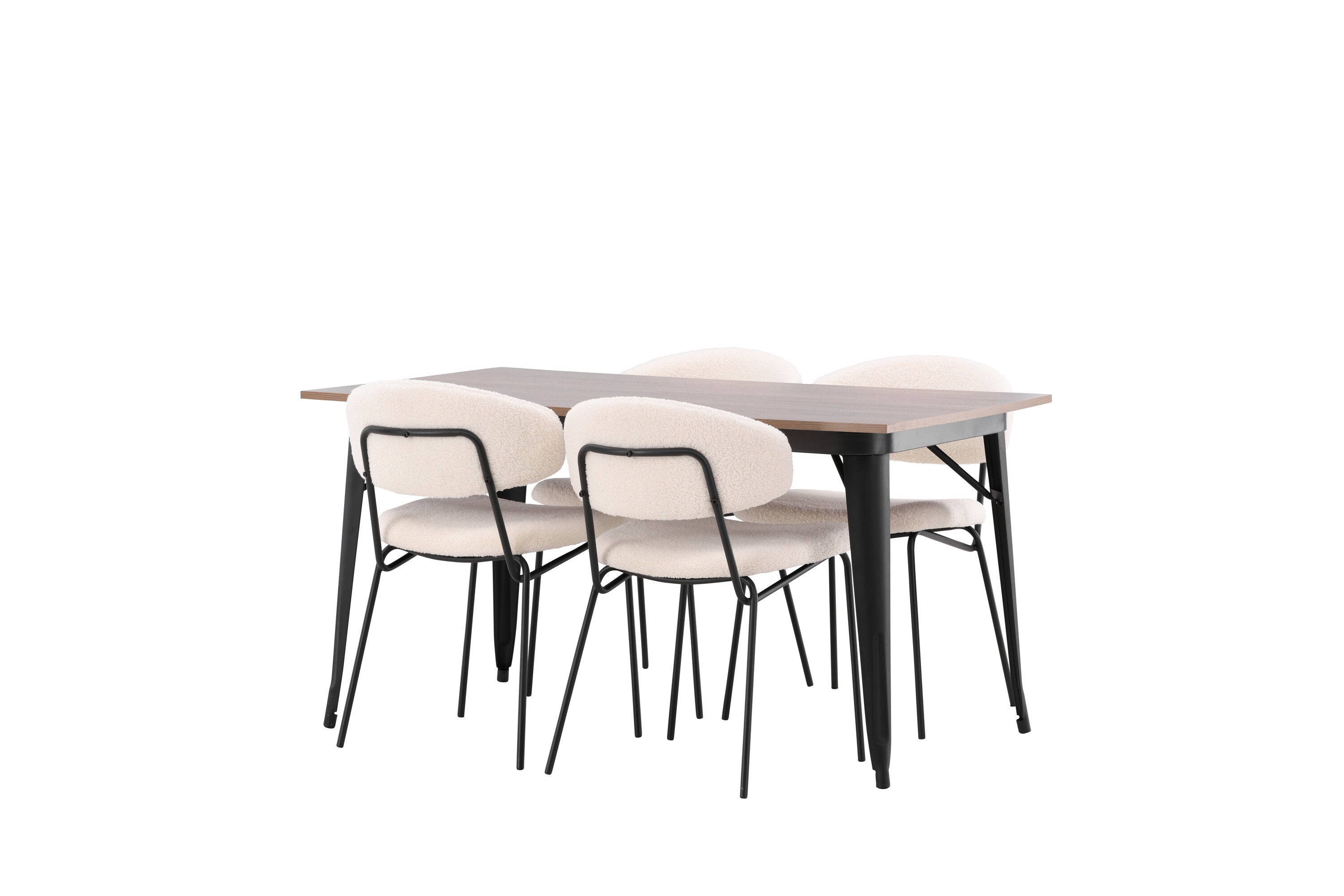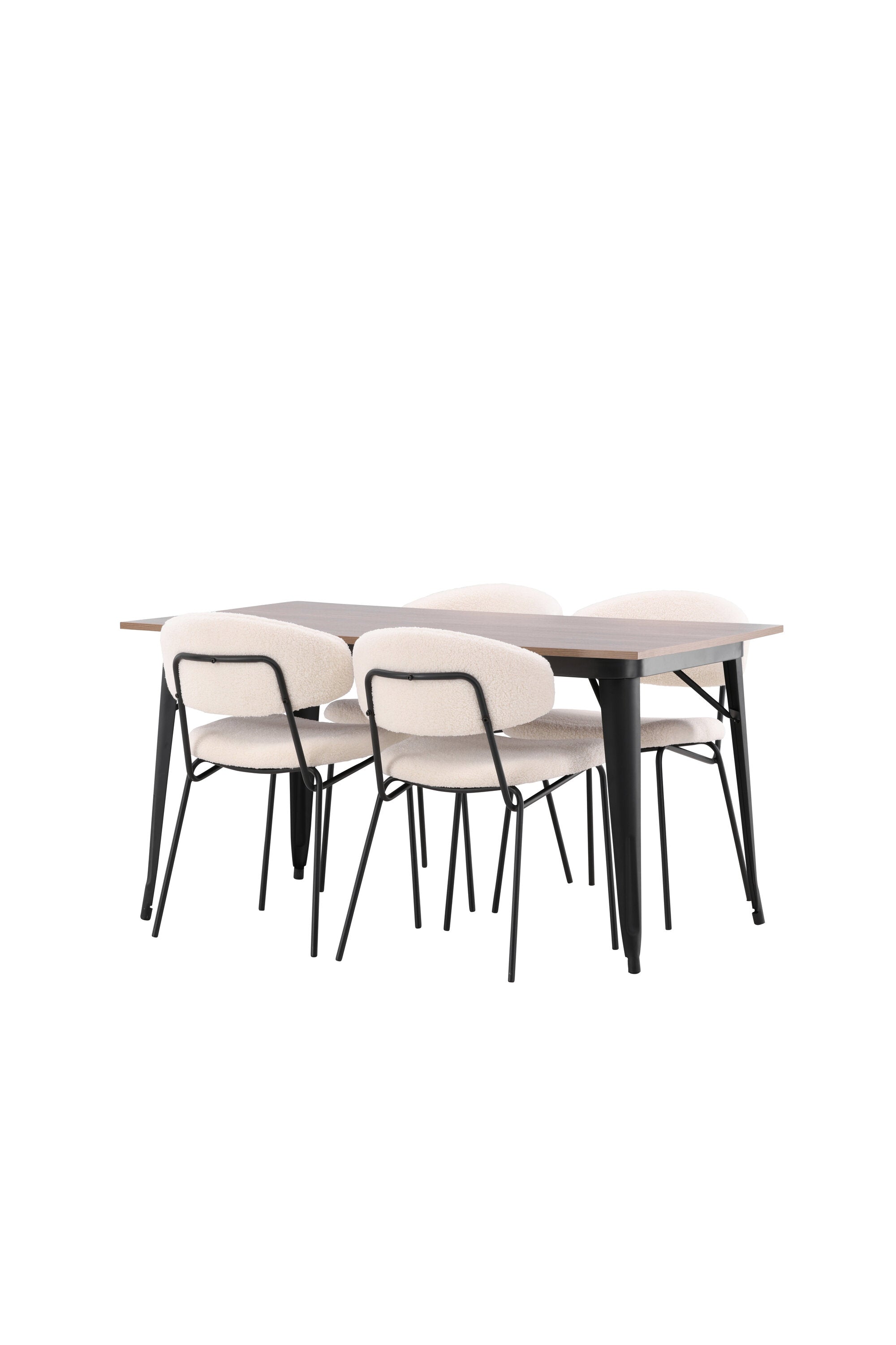 Jídelní stůl Tempe - Černá / Ořech MDF +Chico Jídelní židle - Černá / Bílá Boucle _4