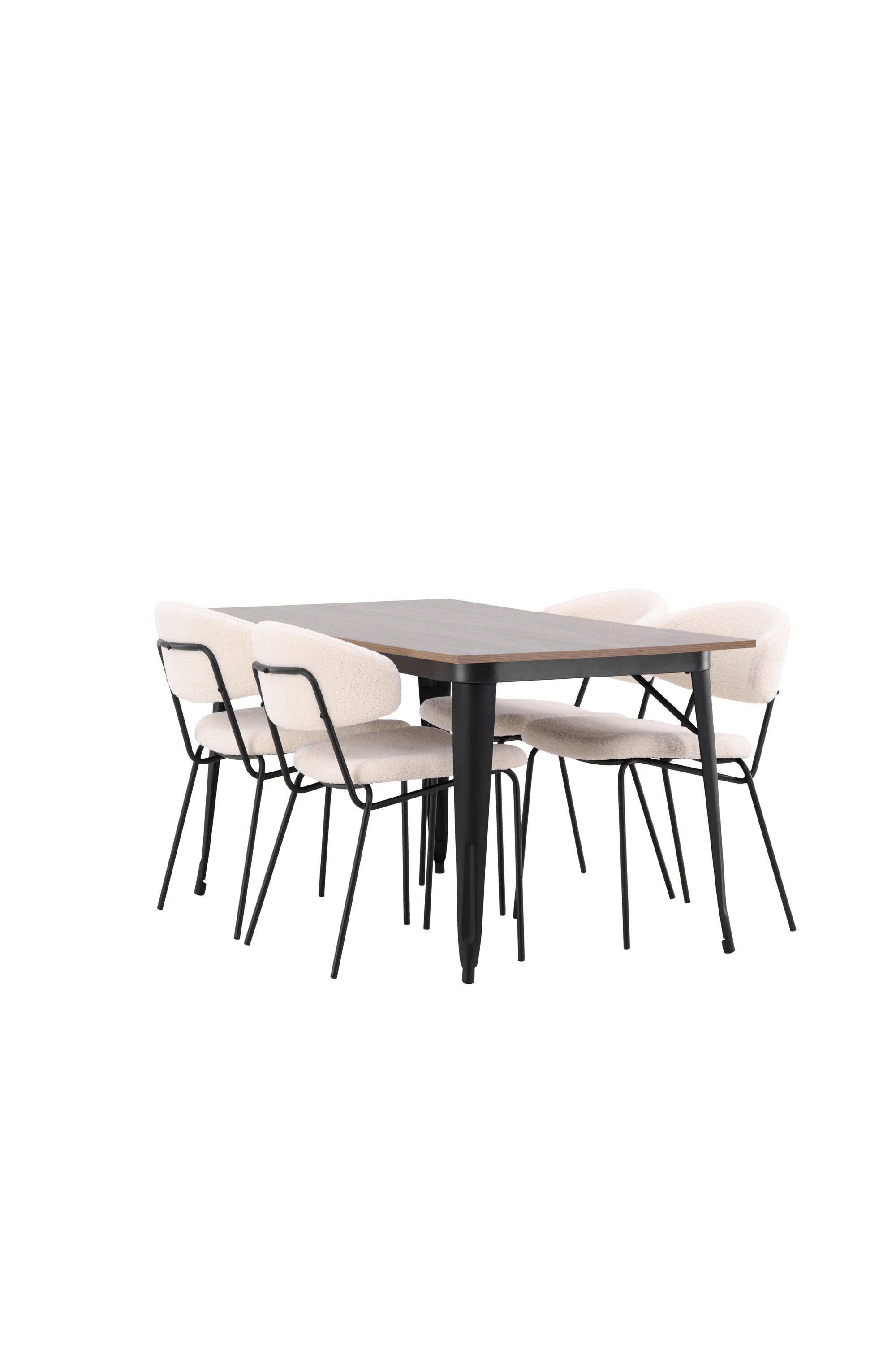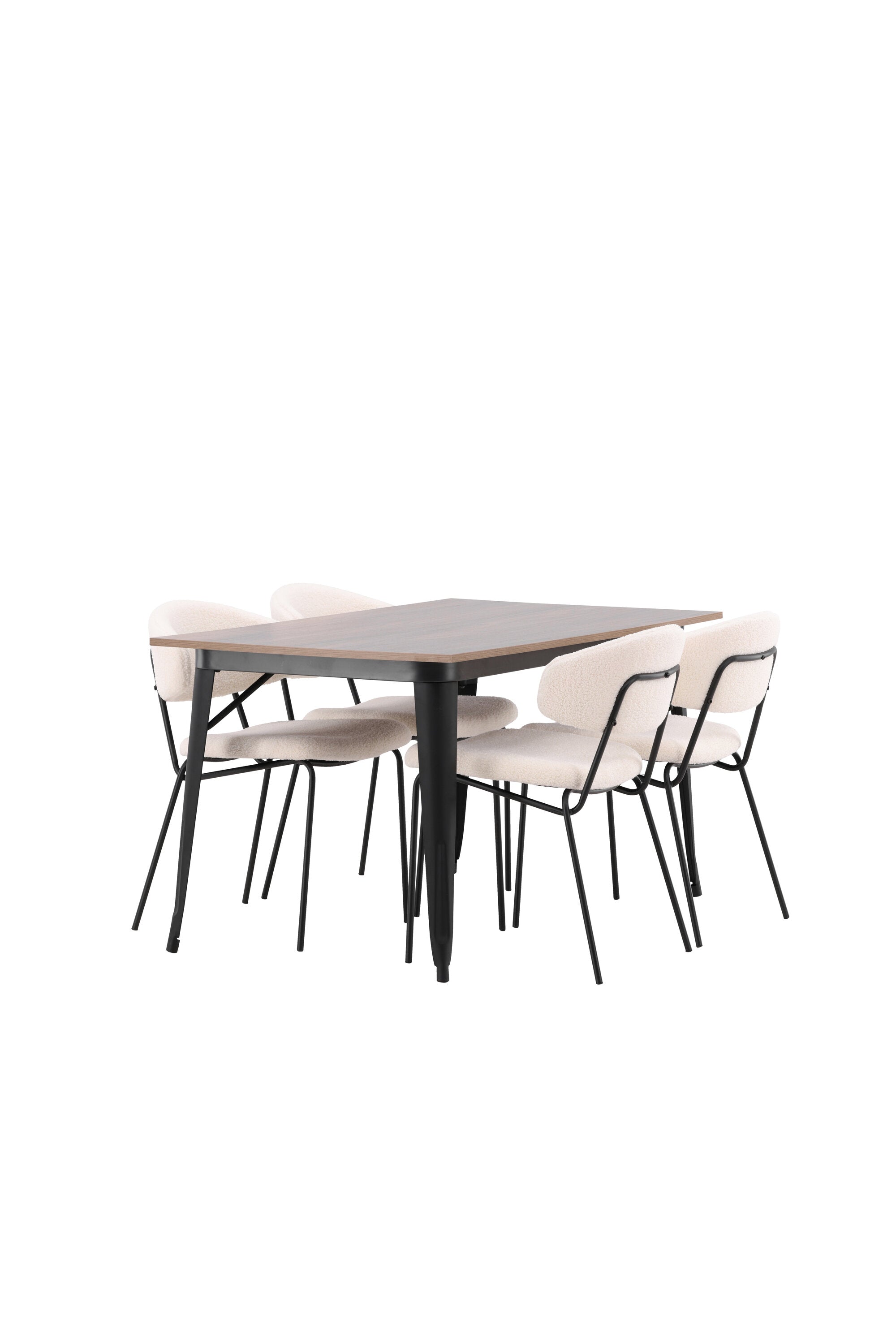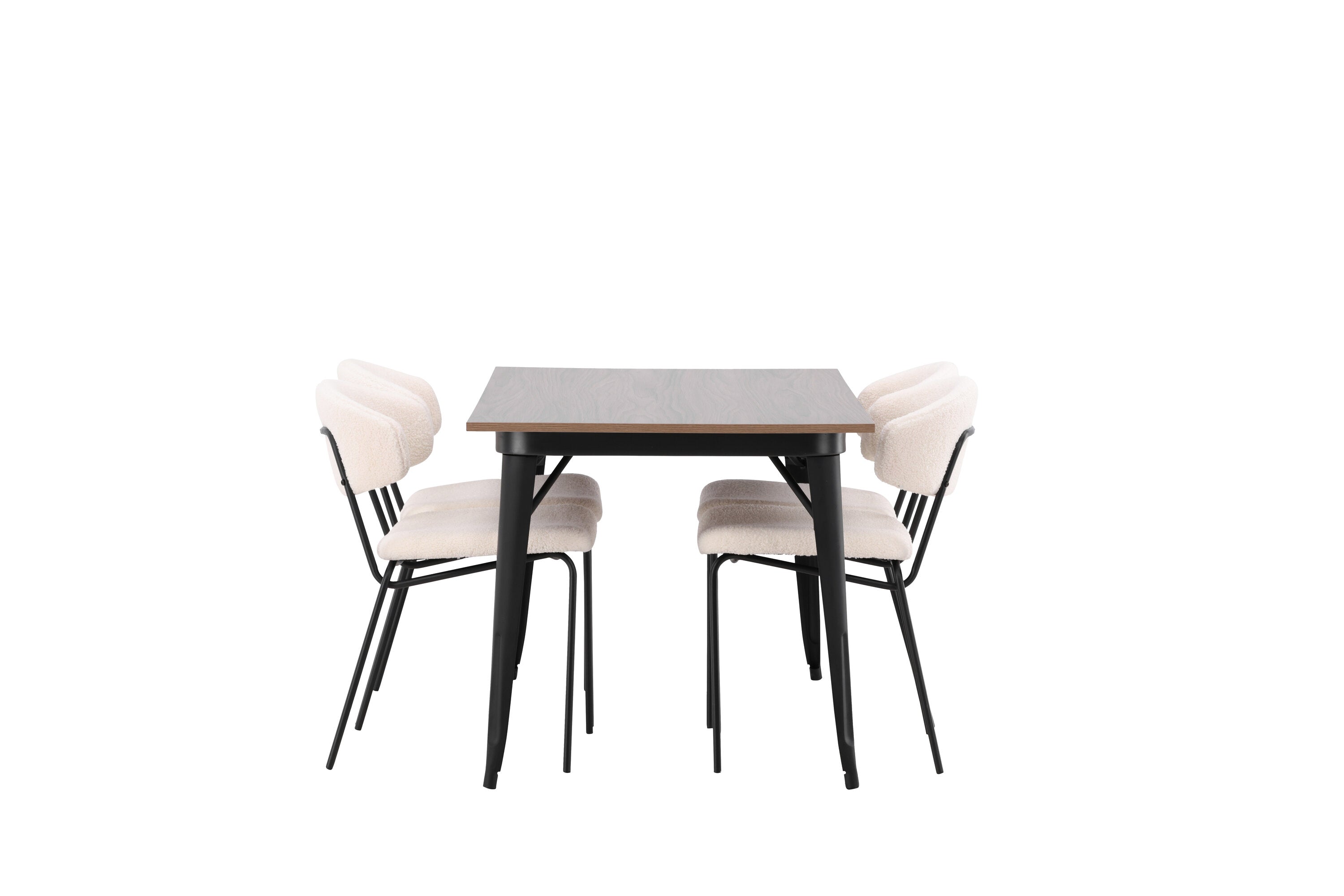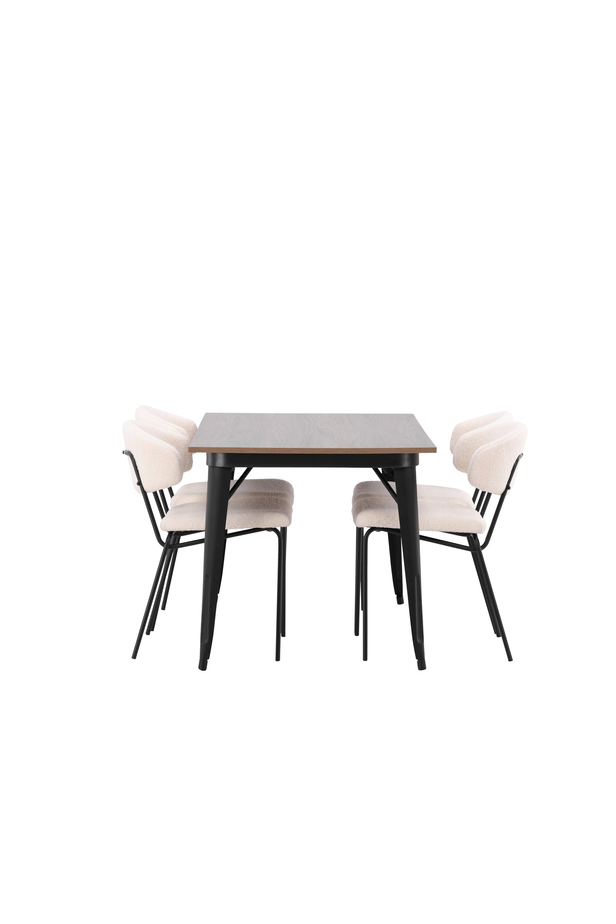 Jídelní stůl Tempe - Černá / Ořech MDF +Chico Jídelní židle - Černá / Bílá Boucle _4