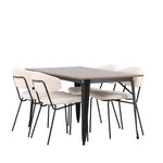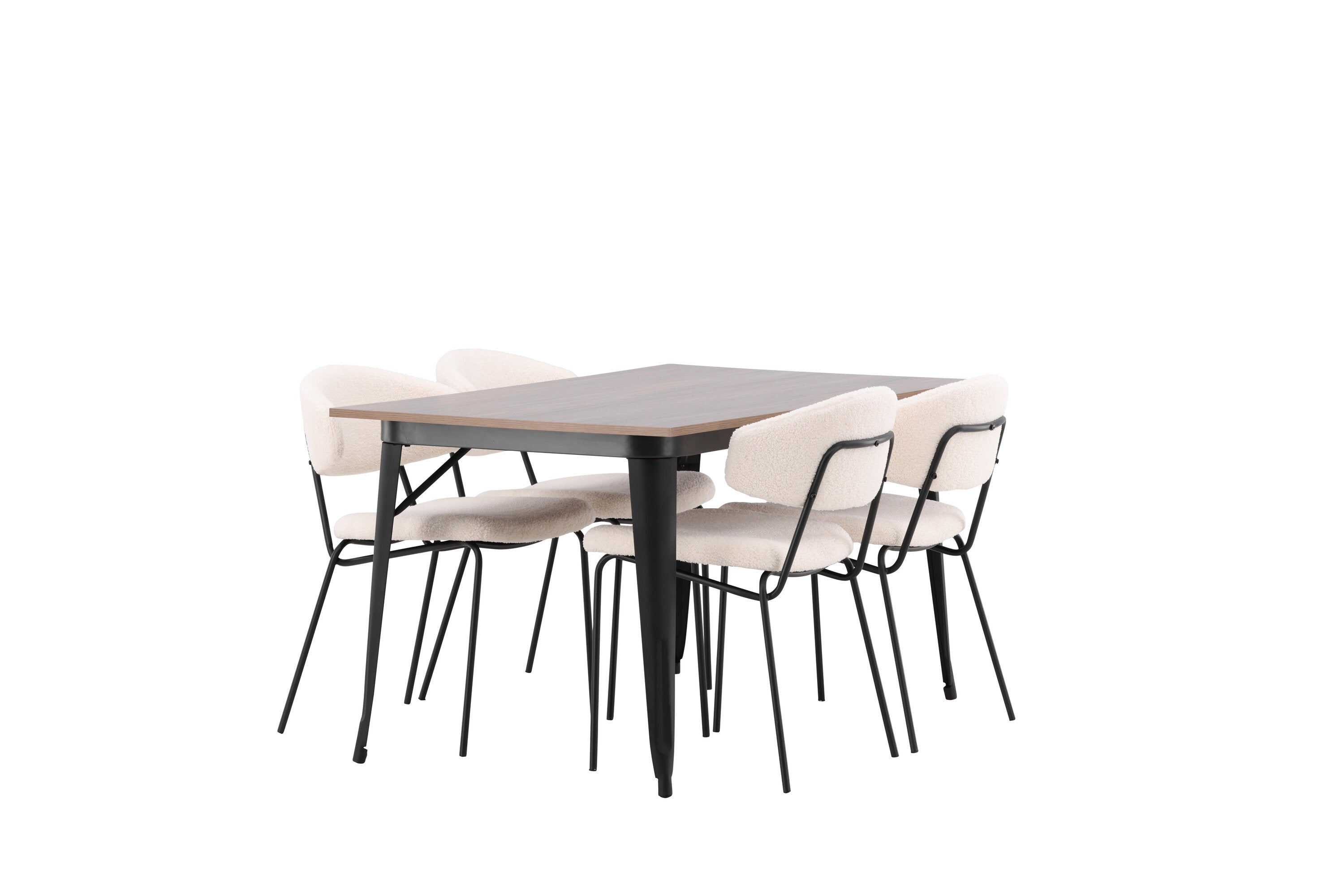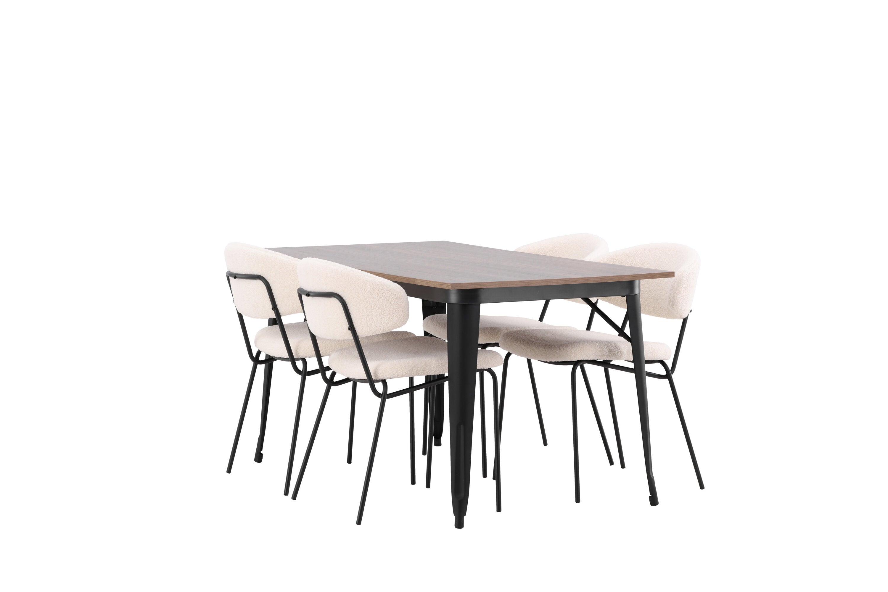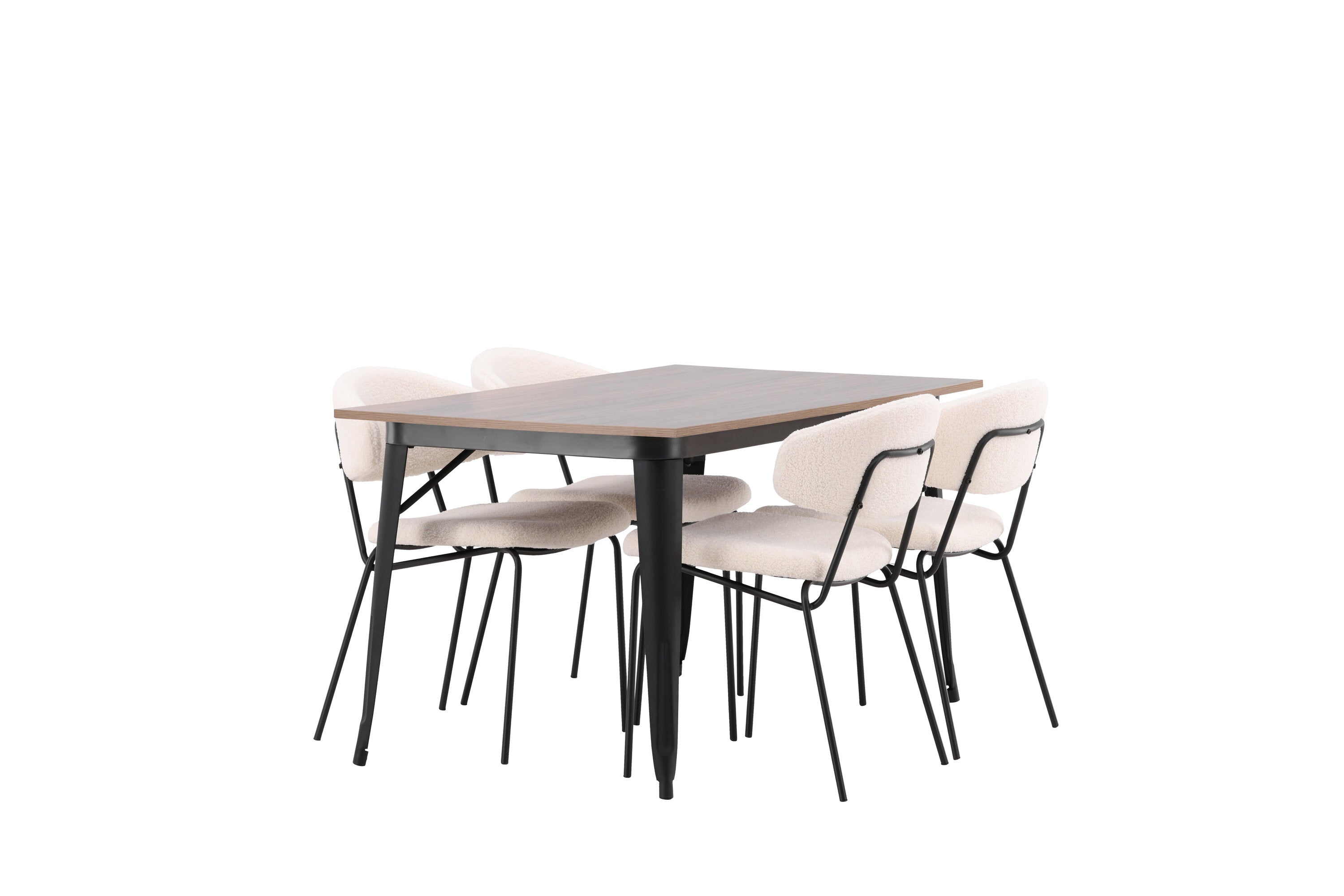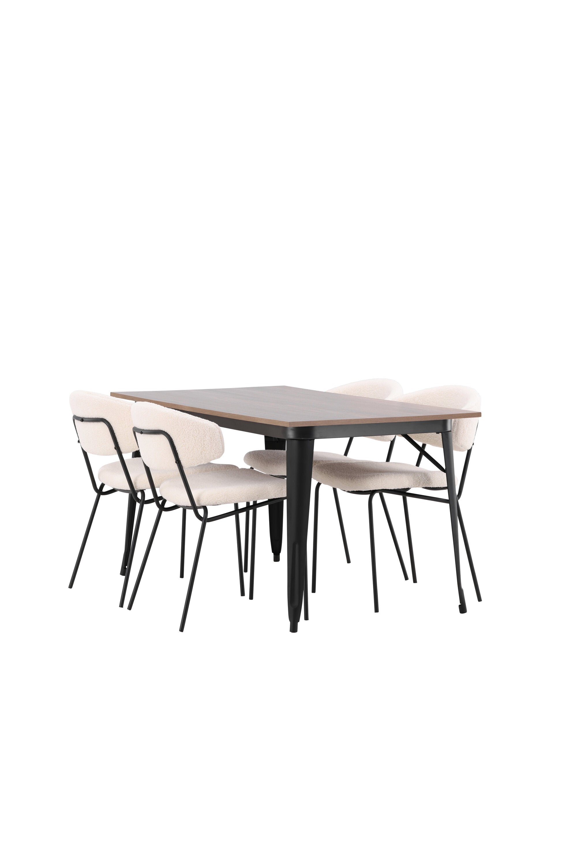 Jídelní stůl Tempe - Černá / Ořech MDF +Chico Jídelní židle - Černá / Bílá Boucle _4