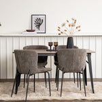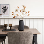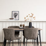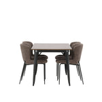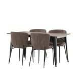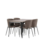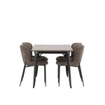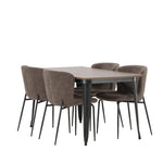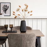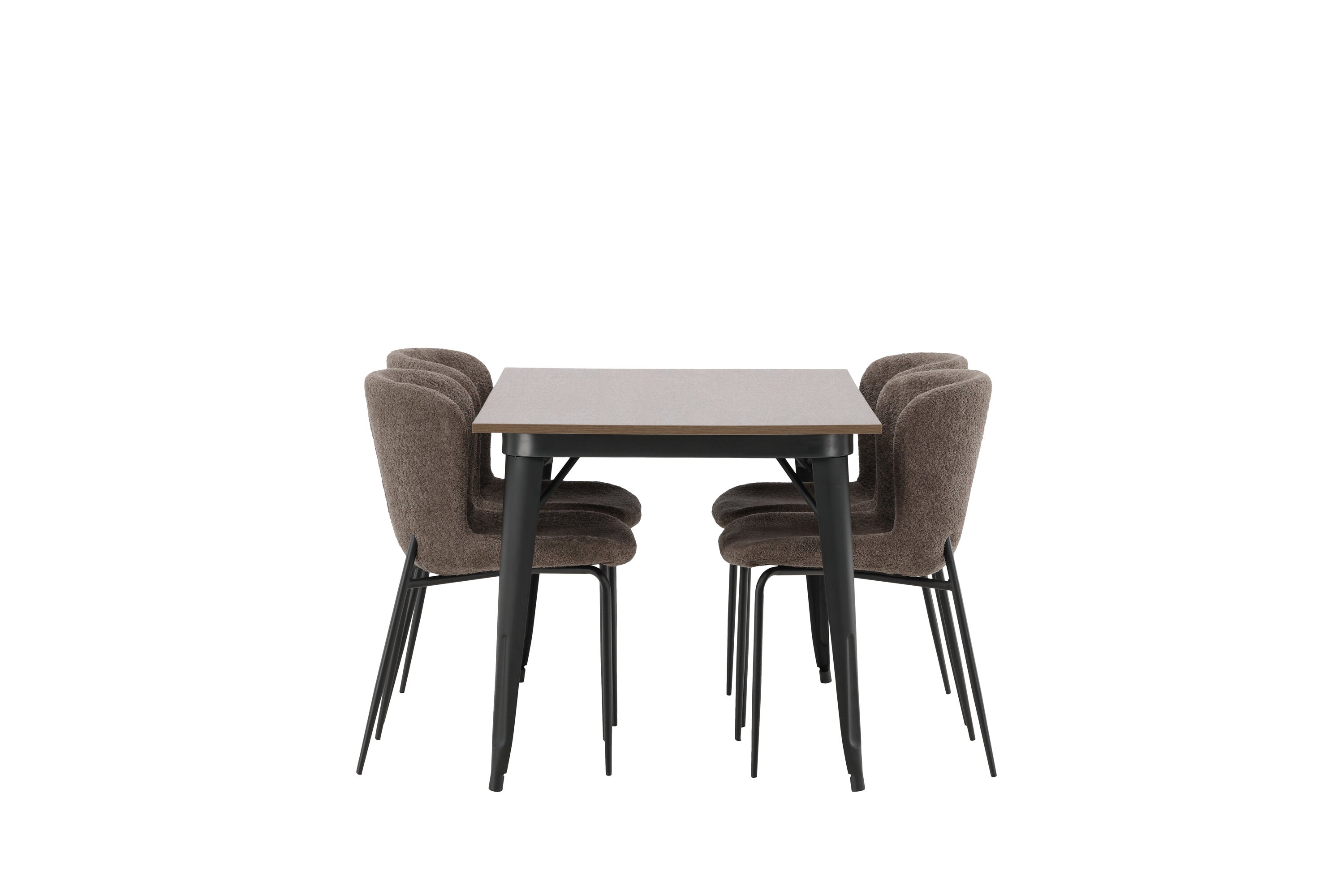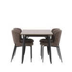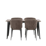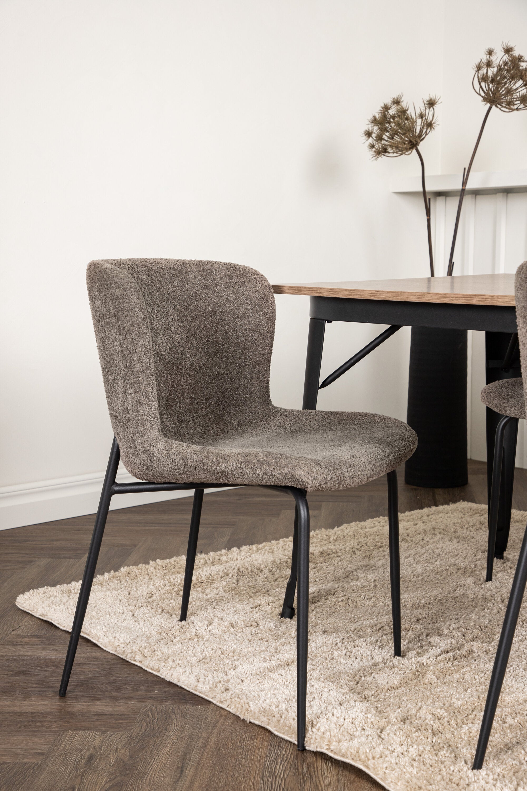 Stylový, moderní a odolný – jídelní sestava, která obstojí ve zkoušce času! Jídelní stůl ze série Tempe patří do kolekce Venture Home a má poutavý, skandinávský design. Vyrobeno ze čtvercové desky stolu z černé MDF a nohou z černého kovu. Zde v dokonalé kombinaci s našimi pohodlnými jídelními židlemi ze série Modesto. Židle je celočalouněná béžovou bouclé látkou se stylovými úzkými nohami v černém kovu. Mírně zaoblená záda a čalouněný sedák poskytují extra pohodlí a rozšiřují příjemné jídlo kolem jídelního stolu. Mělo by to být příjemné sedět u dobrého jídla!