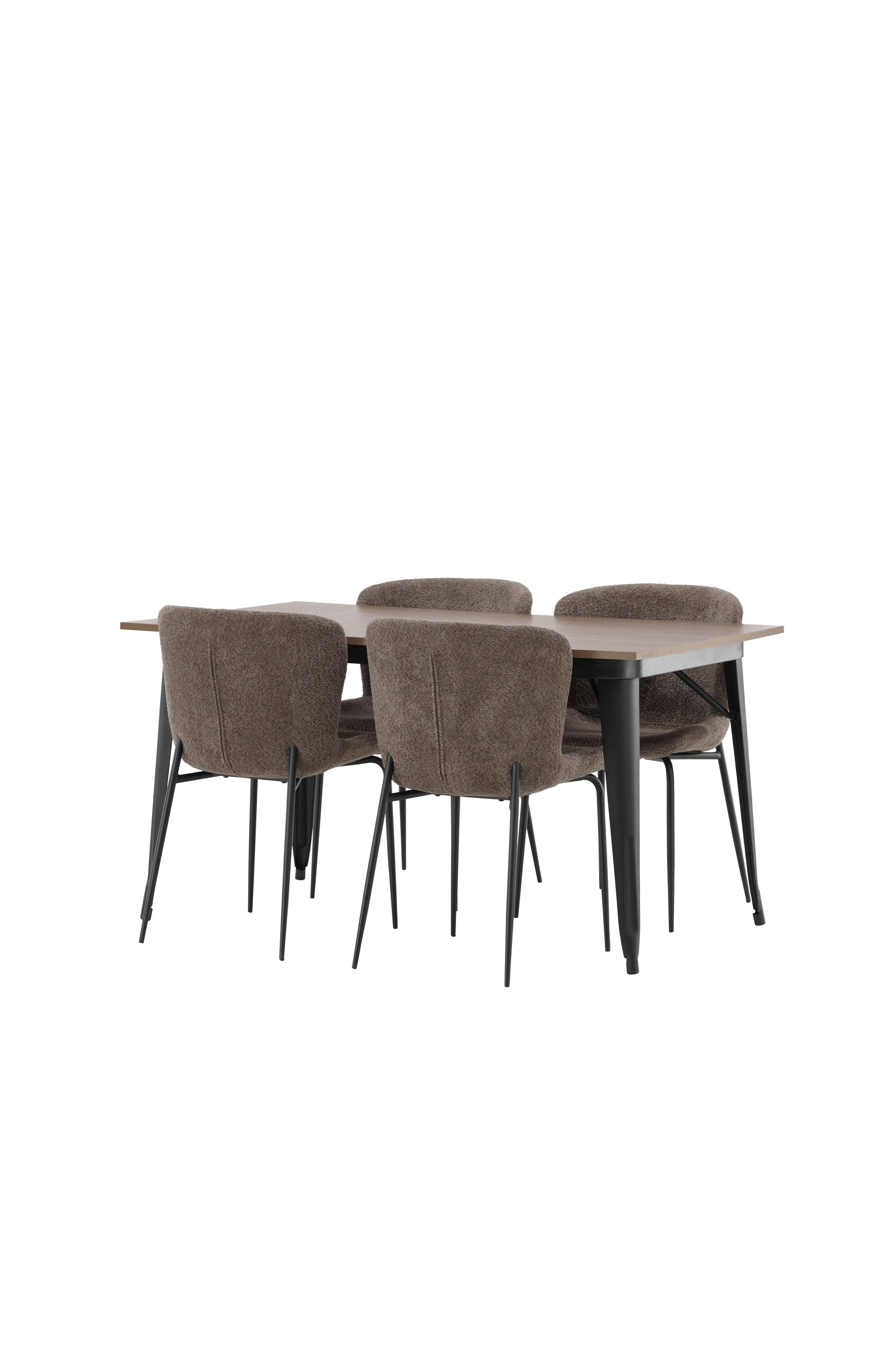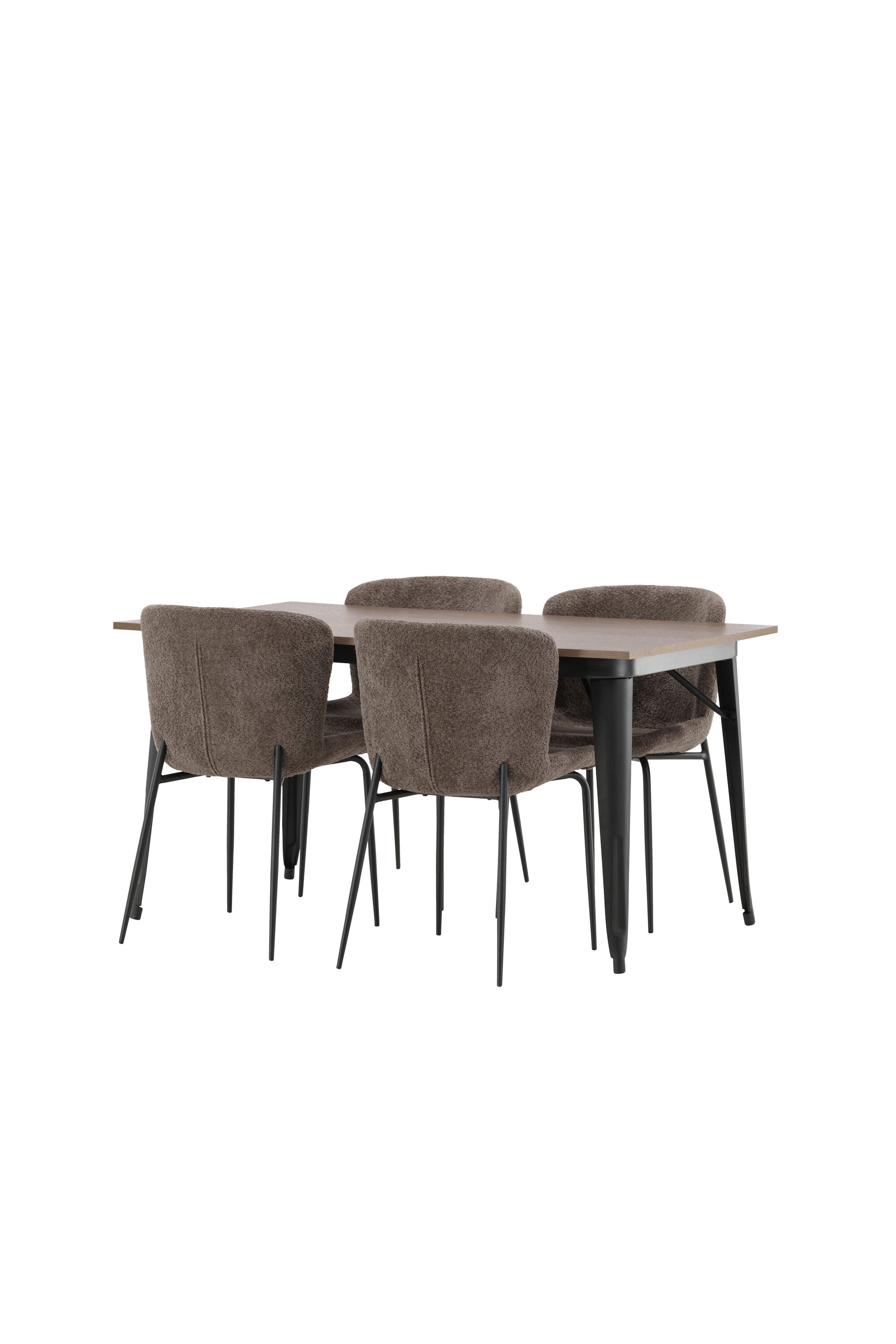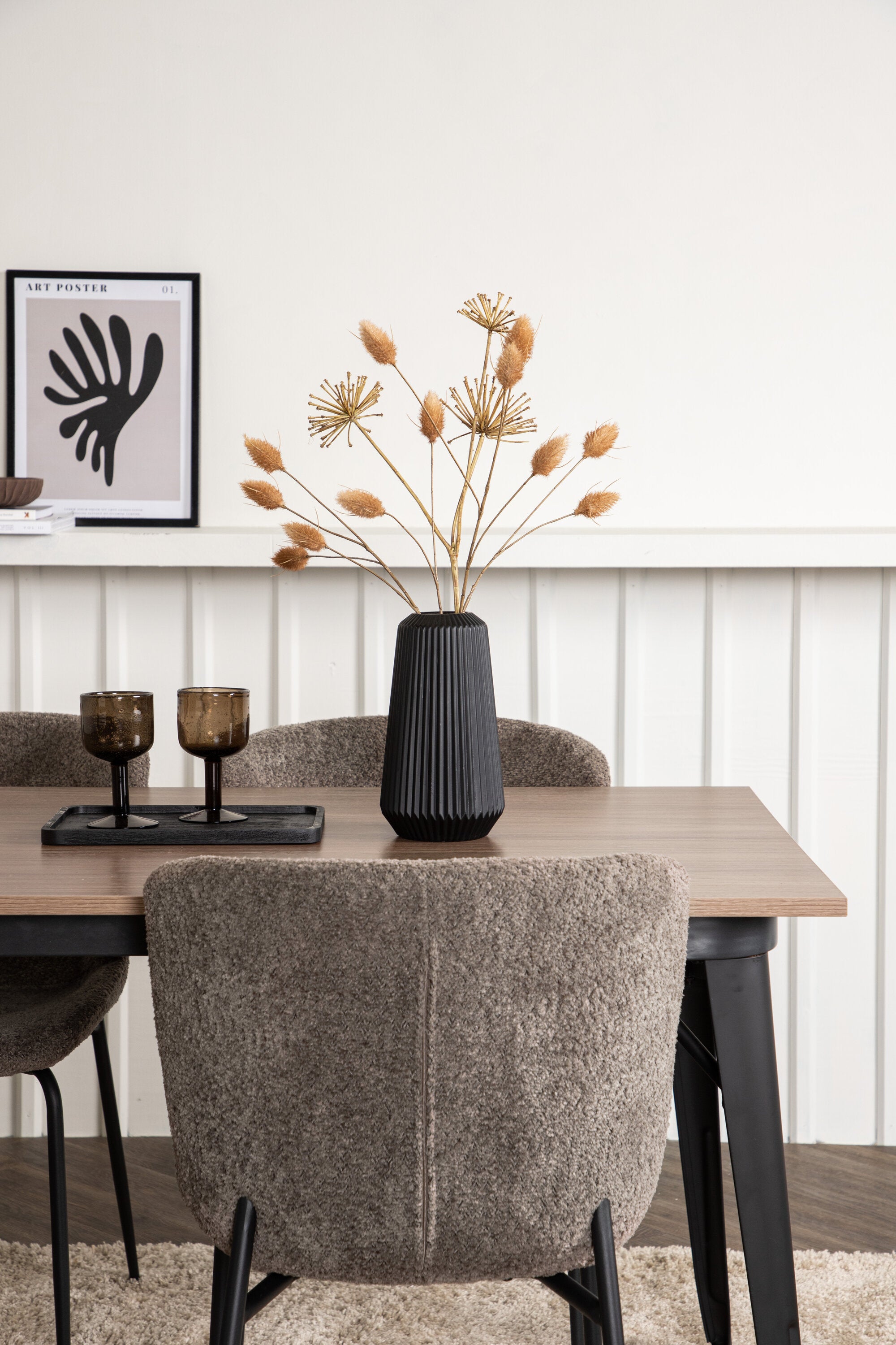 Jídelní stůl Tempe - Černá / Ořech MDF + Jídelní židle Modesto - Béžová / Béžová Boucle _4