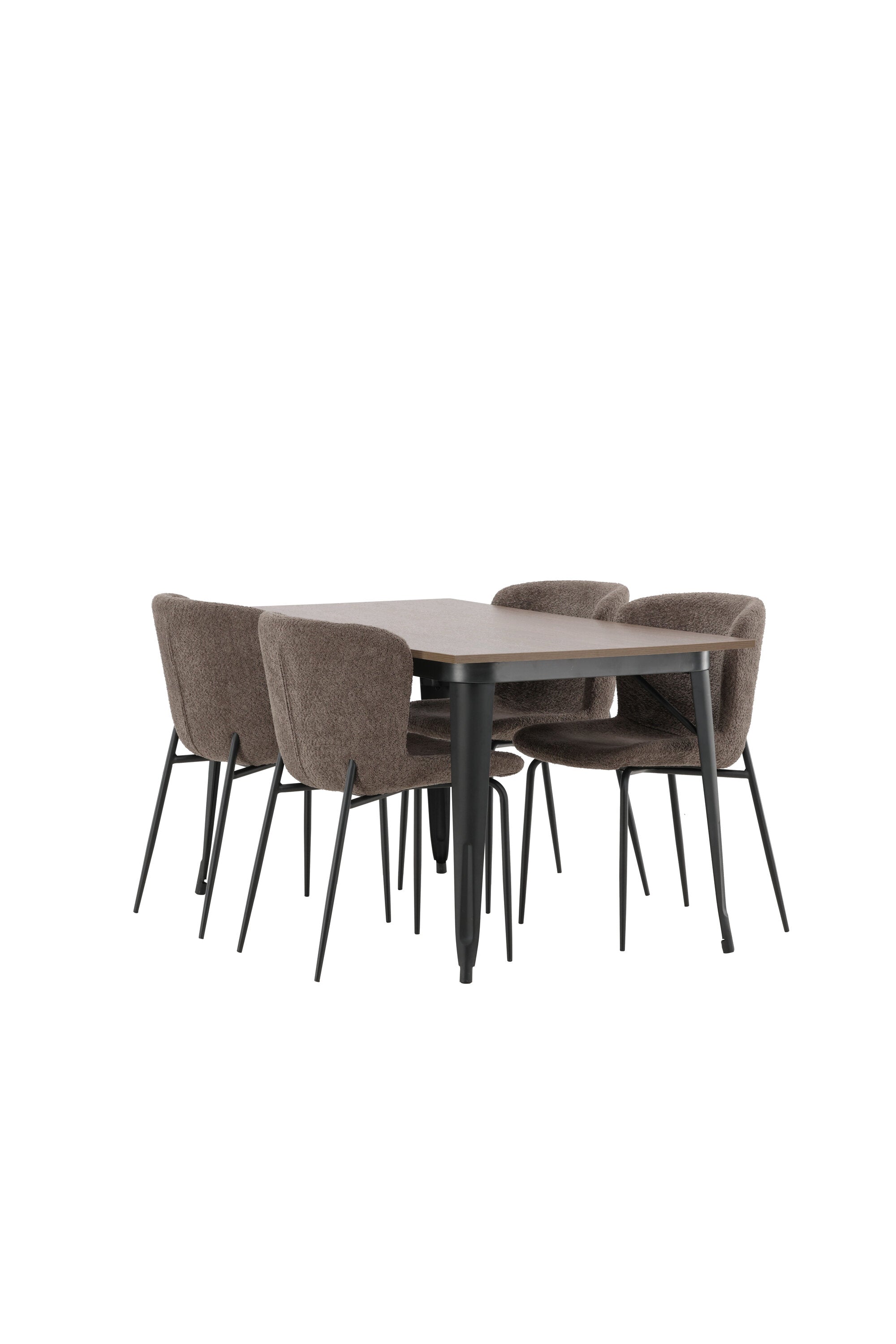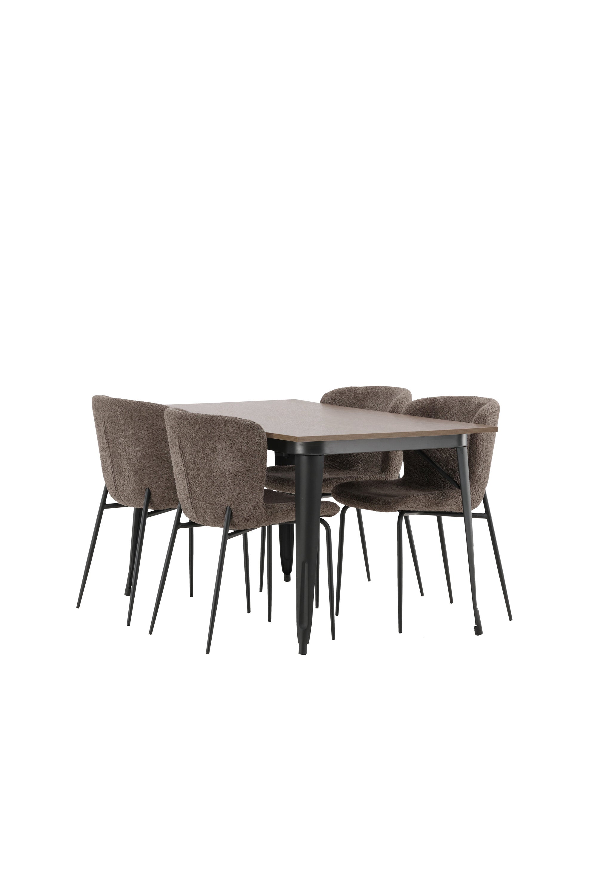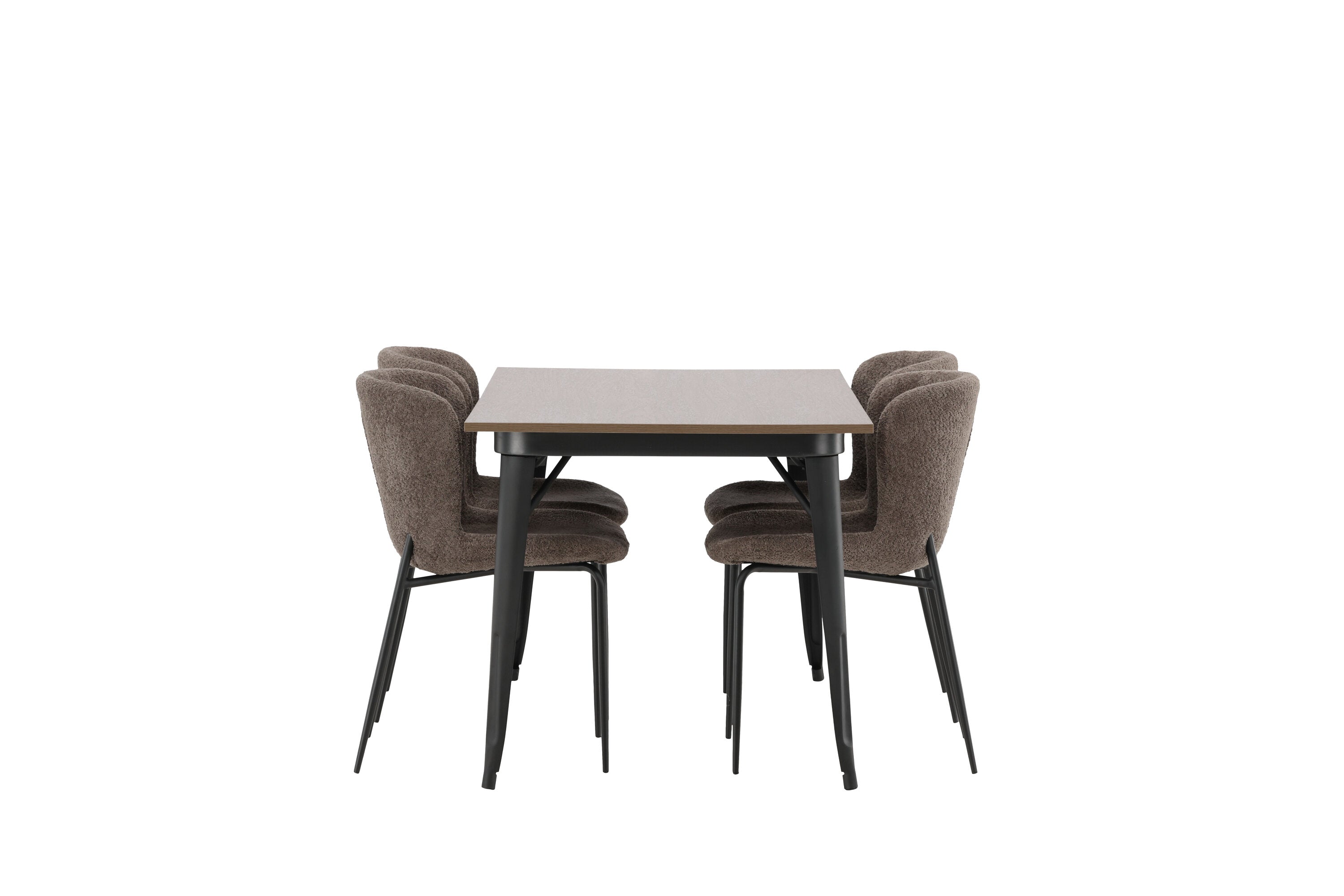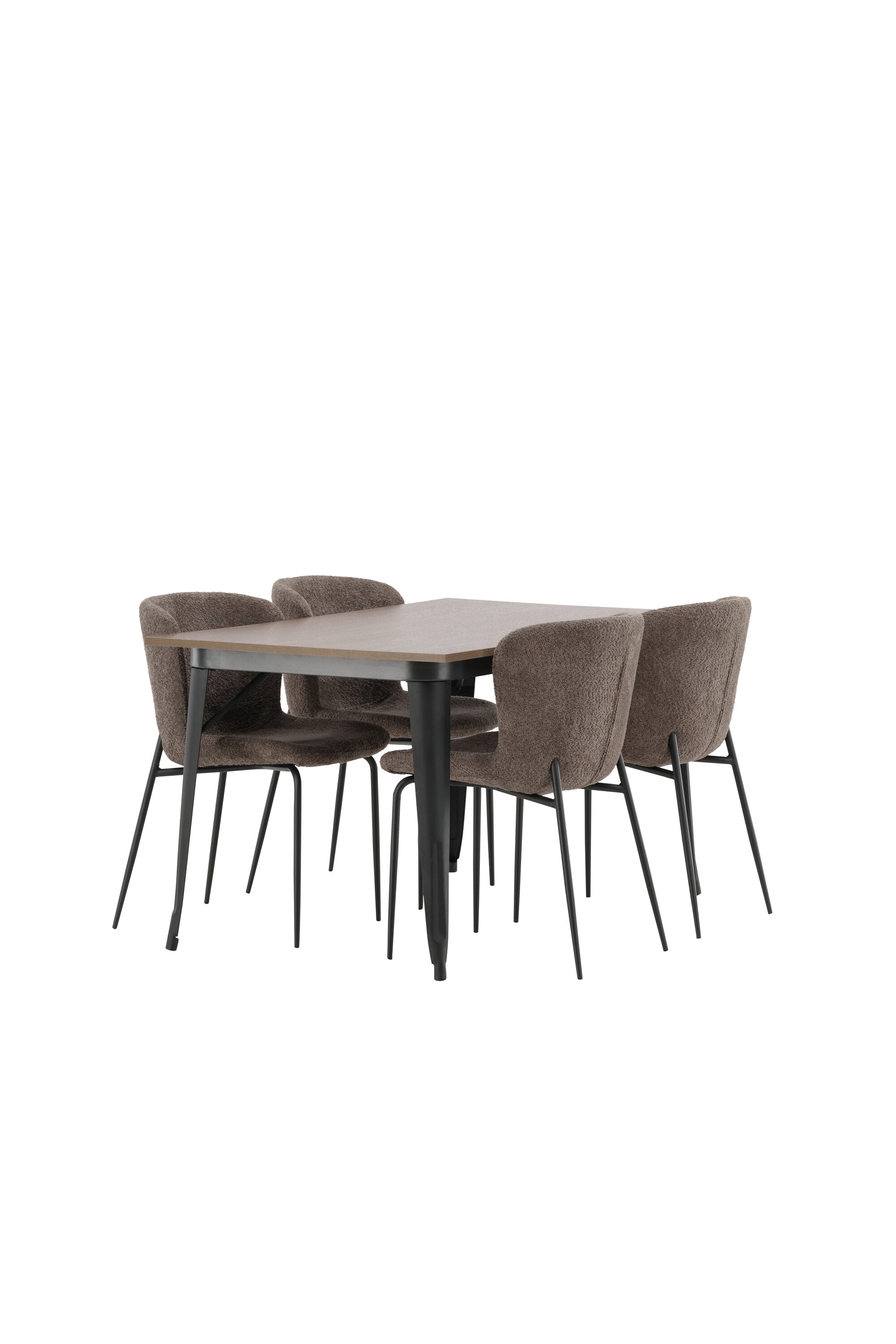 Jídelní stůl Tempe - Černá / Ořech MDF + Jídelní židle Modesto - Béžová / Béžová Boucle _4