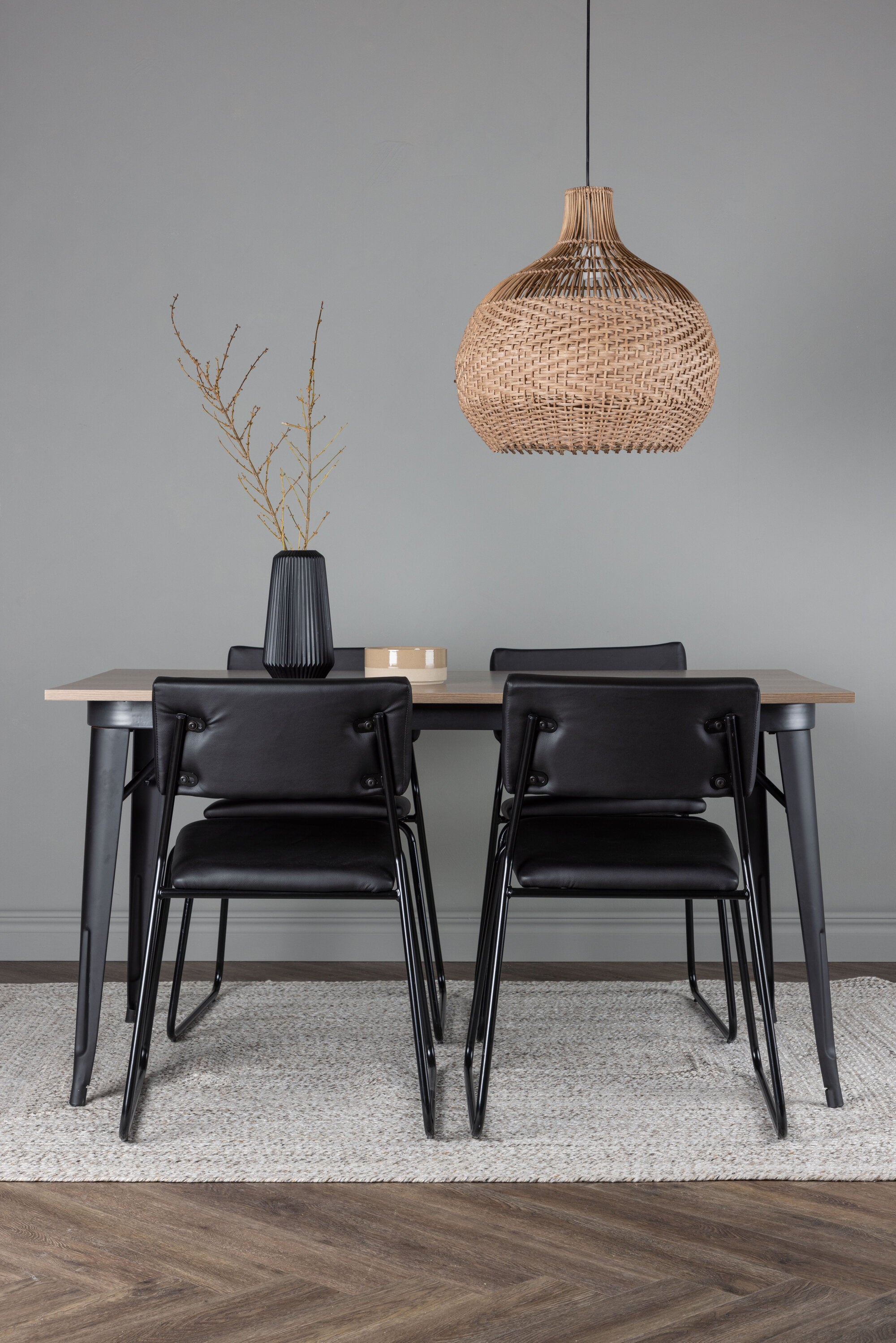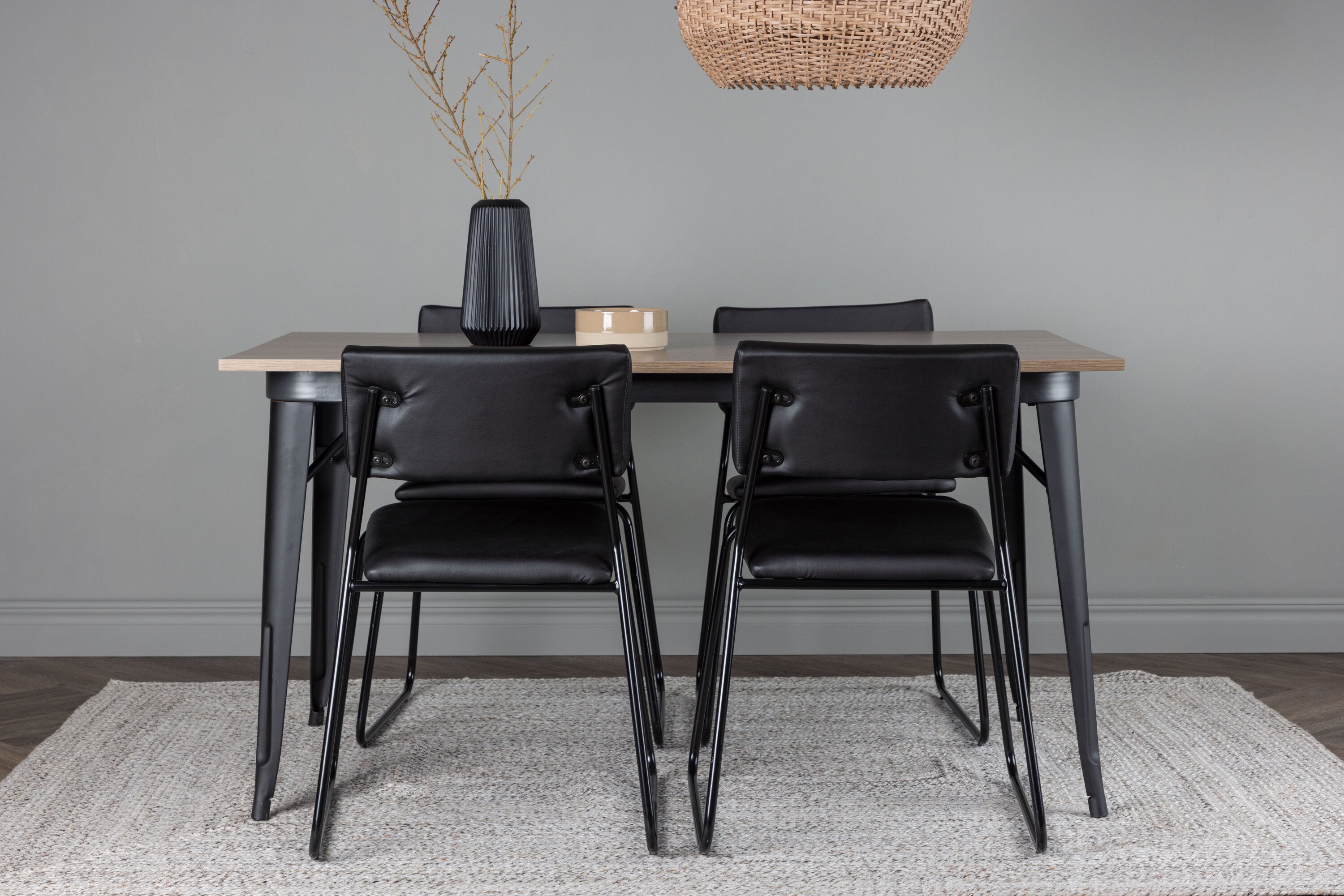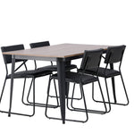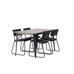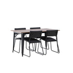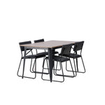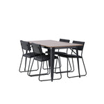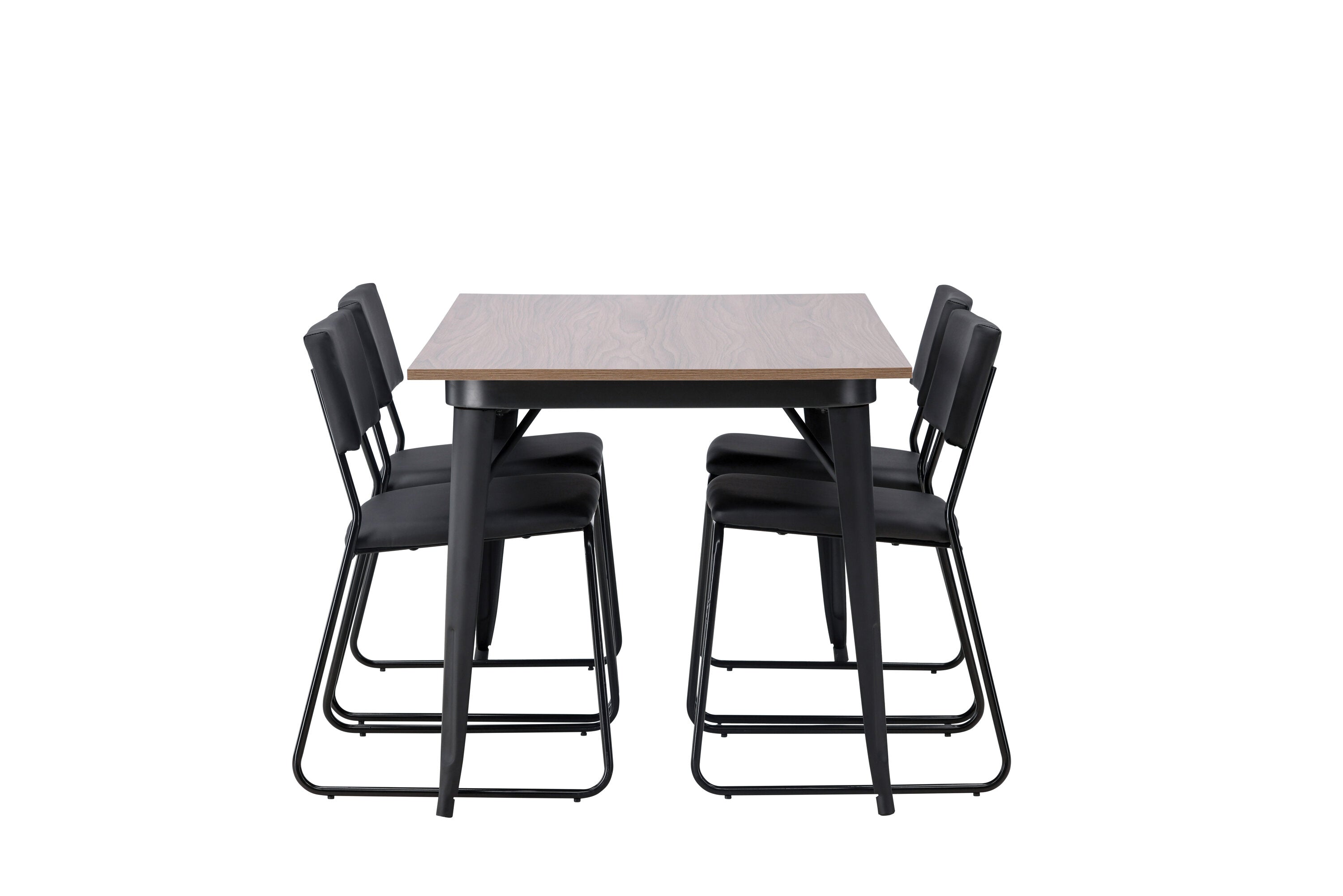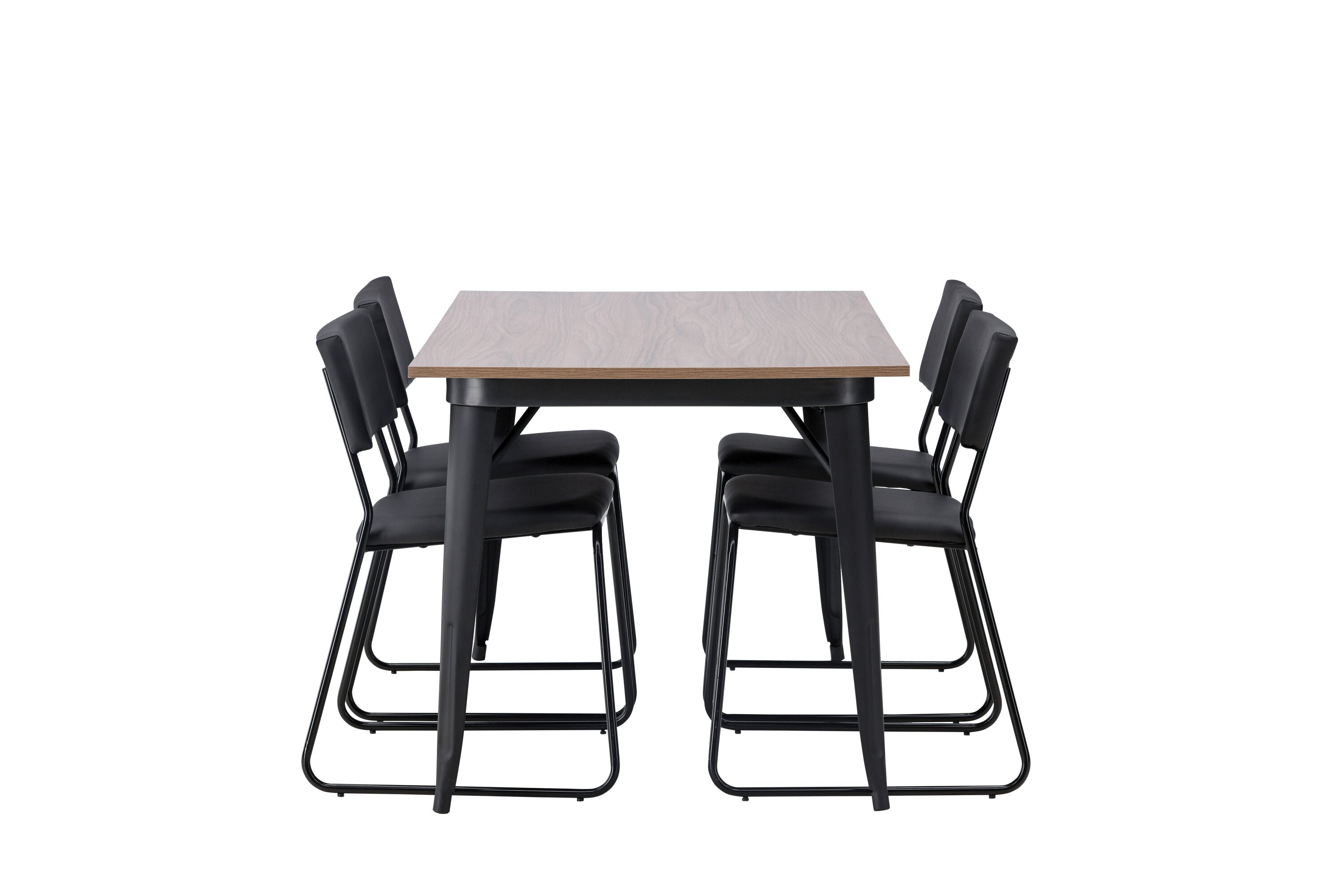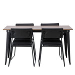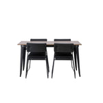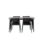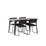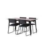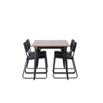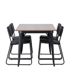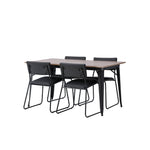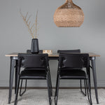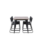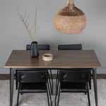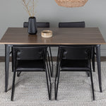 Okouzlující kombinace minimalistických tvarů a skandinávského designu! Jídelní stůl ze série Tempe má stylový, skandinávský design. Vyrobeno ze čtvercové desky stolu z MDF v barvě ořechu a nohou stolu z černého kovu. Zde společně s našimi černými jídelními židlemi ze série Kenth. Minimalistický, moderní design vytváří vzdušný pocit. Židle má opěradlo a sedák z černé polyuretanové kůže a polyesteru a ozdobné úzké nohy ze železa. Pozvěte své blízké na mnoho společenských chvil! Rozměry stolu: 140x80cm.