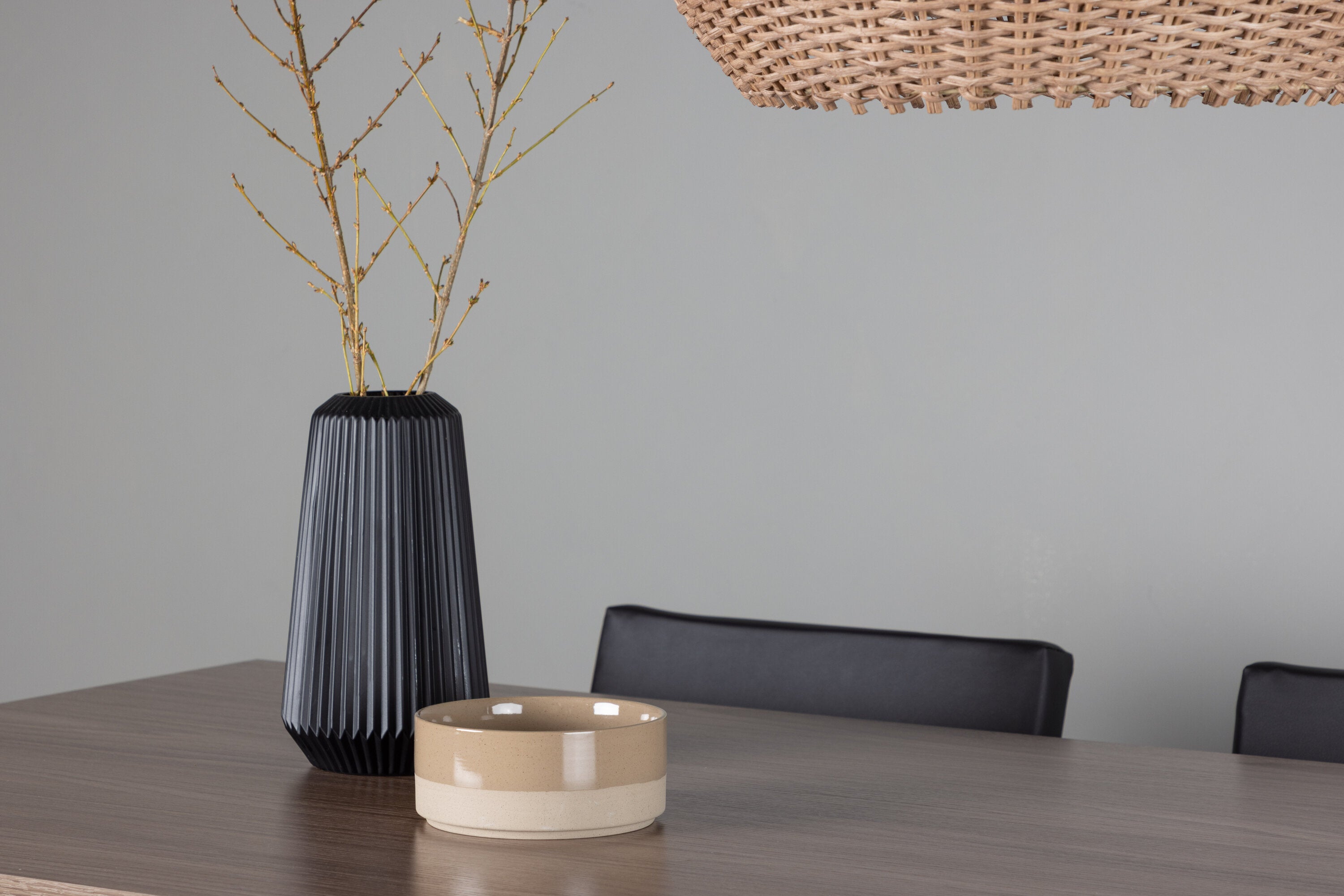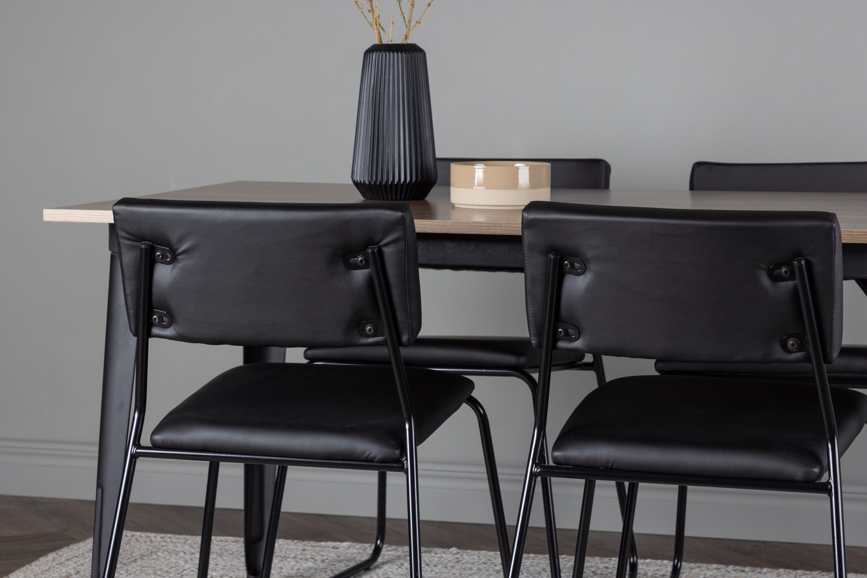 Jídelní stůl Tempe - Černá / Ořech MDF + Židle Kenth - Černá / Černá PU _4