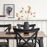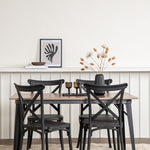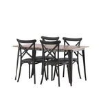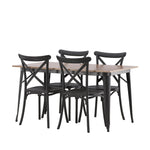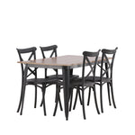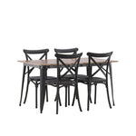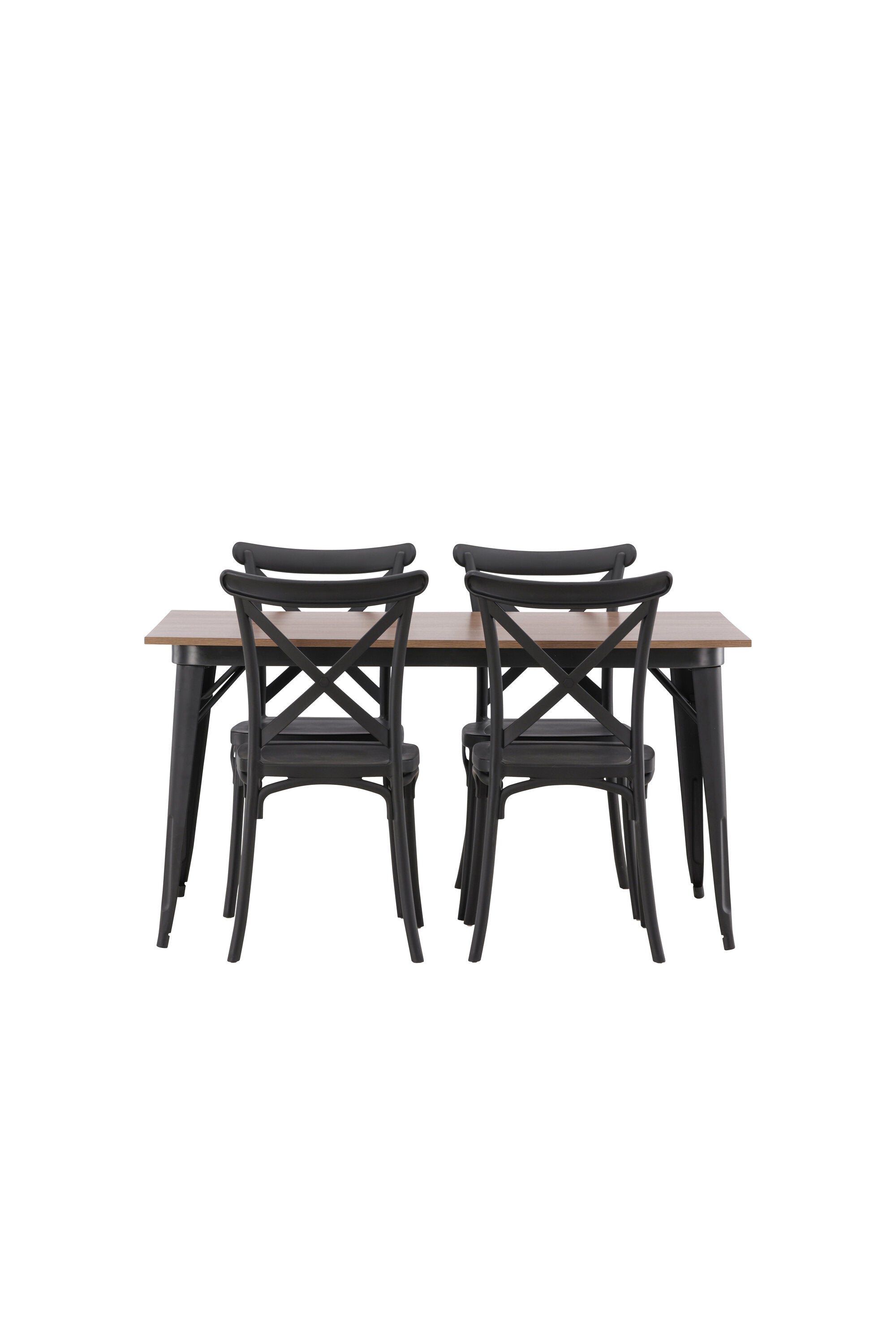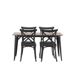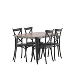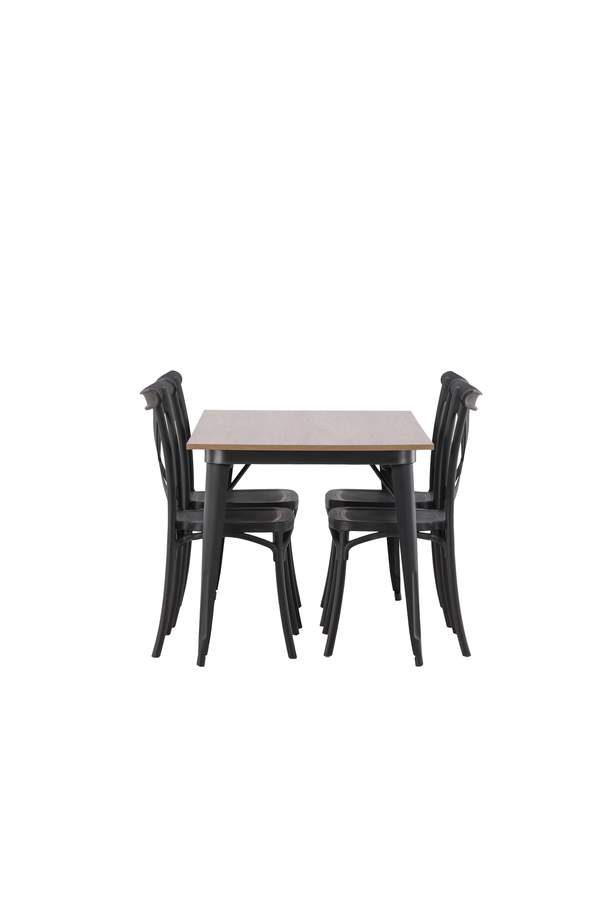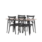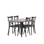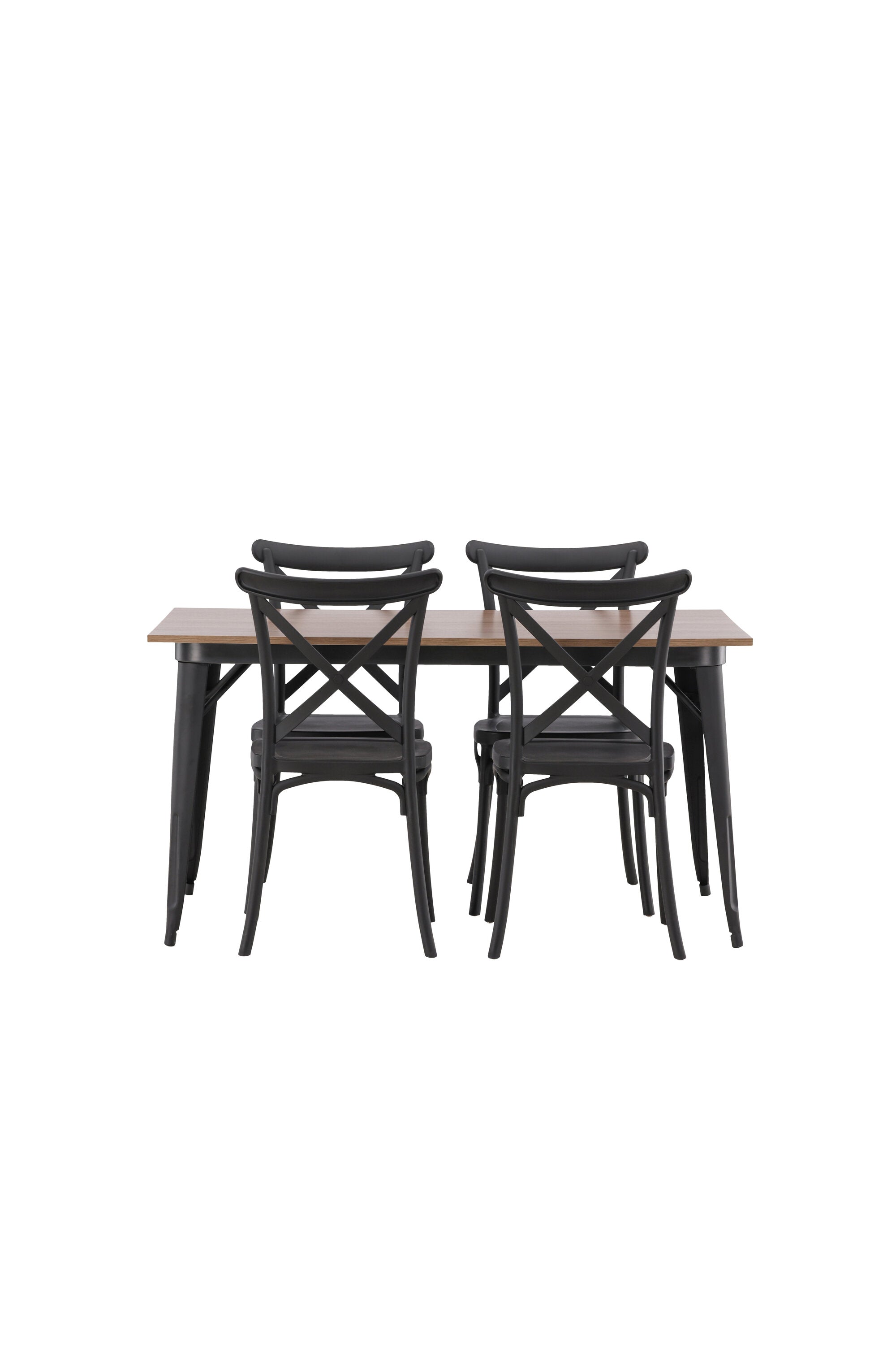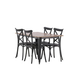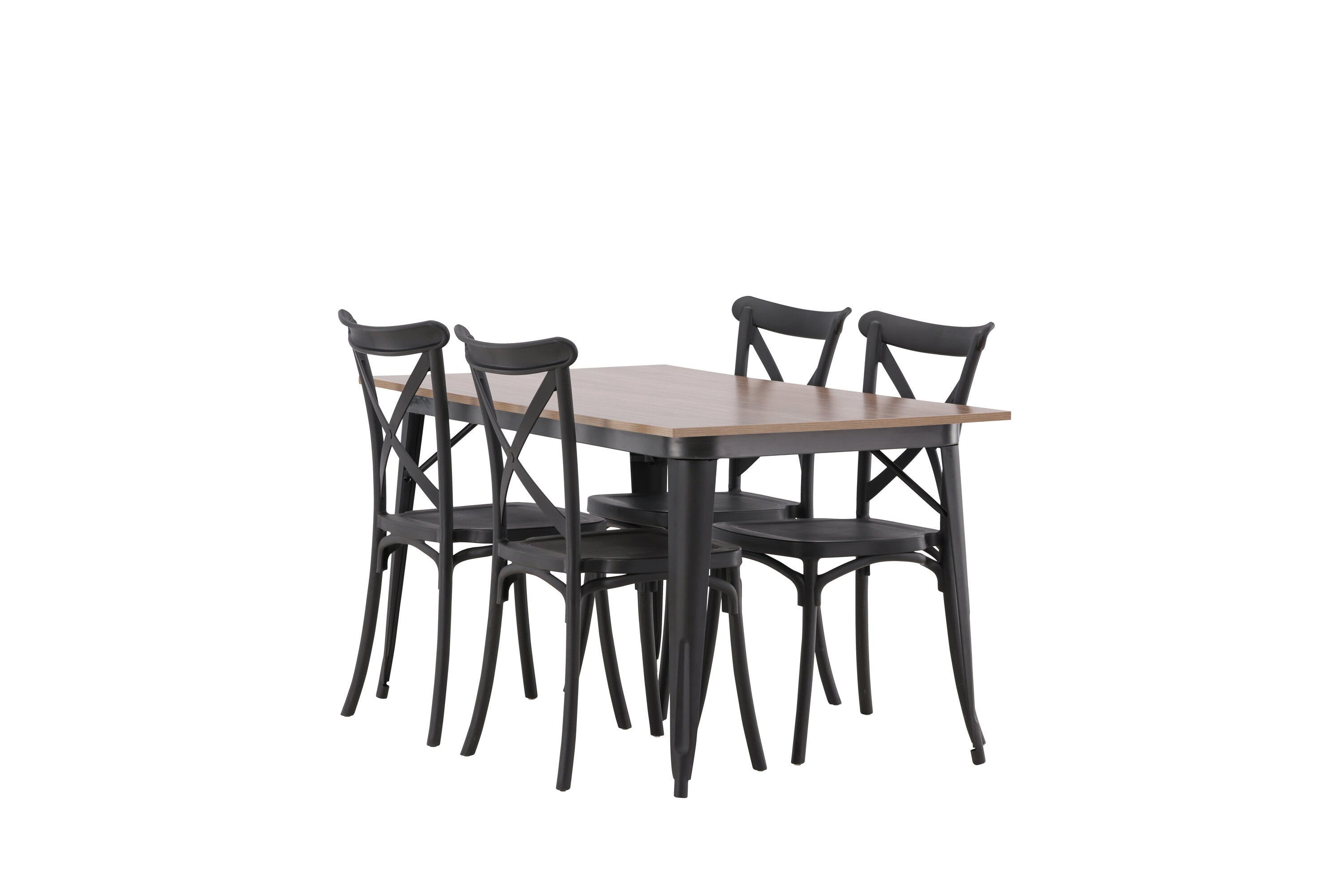 Jídelní skupina, která kombinuje klasický design a moderní formy! Jídelní stůl ze série Tempe patří do kolekce Venture Home a má poutavý, skandinávský design. Vyrobeno ze čtvercové desky stolu z černé MDF a nohou stolu z černého kovu. Zde společně s jídelními židlemi ze série Crosett. Židle mají nostalgický design s překříženým opěradlem a rovnými liniemi, důsledně vyrobeny z černého plastu. Zde získáte stylovou jídelní skupinu, kterou si vybavíte svůj domov!