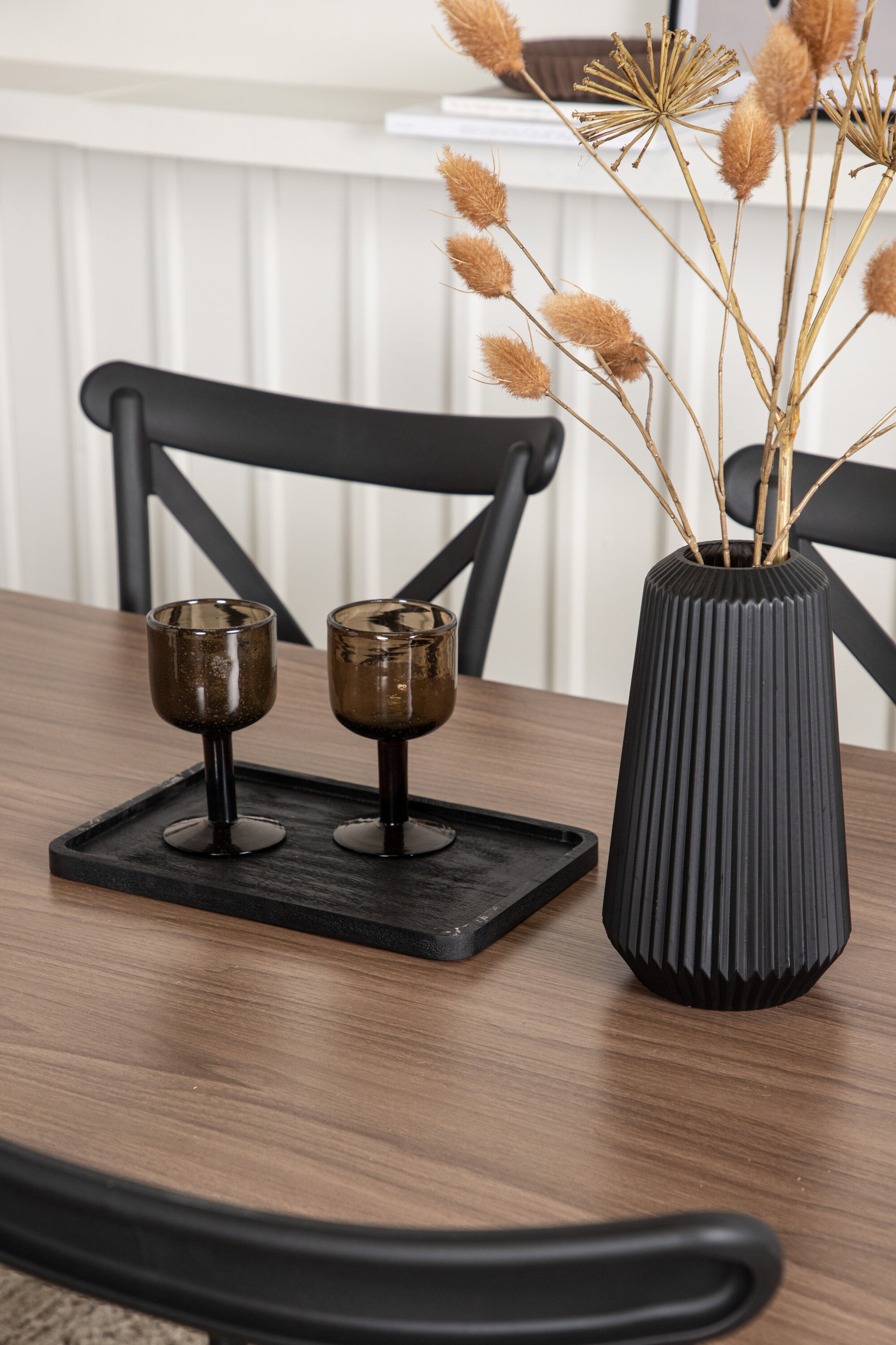 Jídelní stůl Tempe – černá / ořechová MDF + jídelní židle Crosett – matná černá / matná černá plast _4
