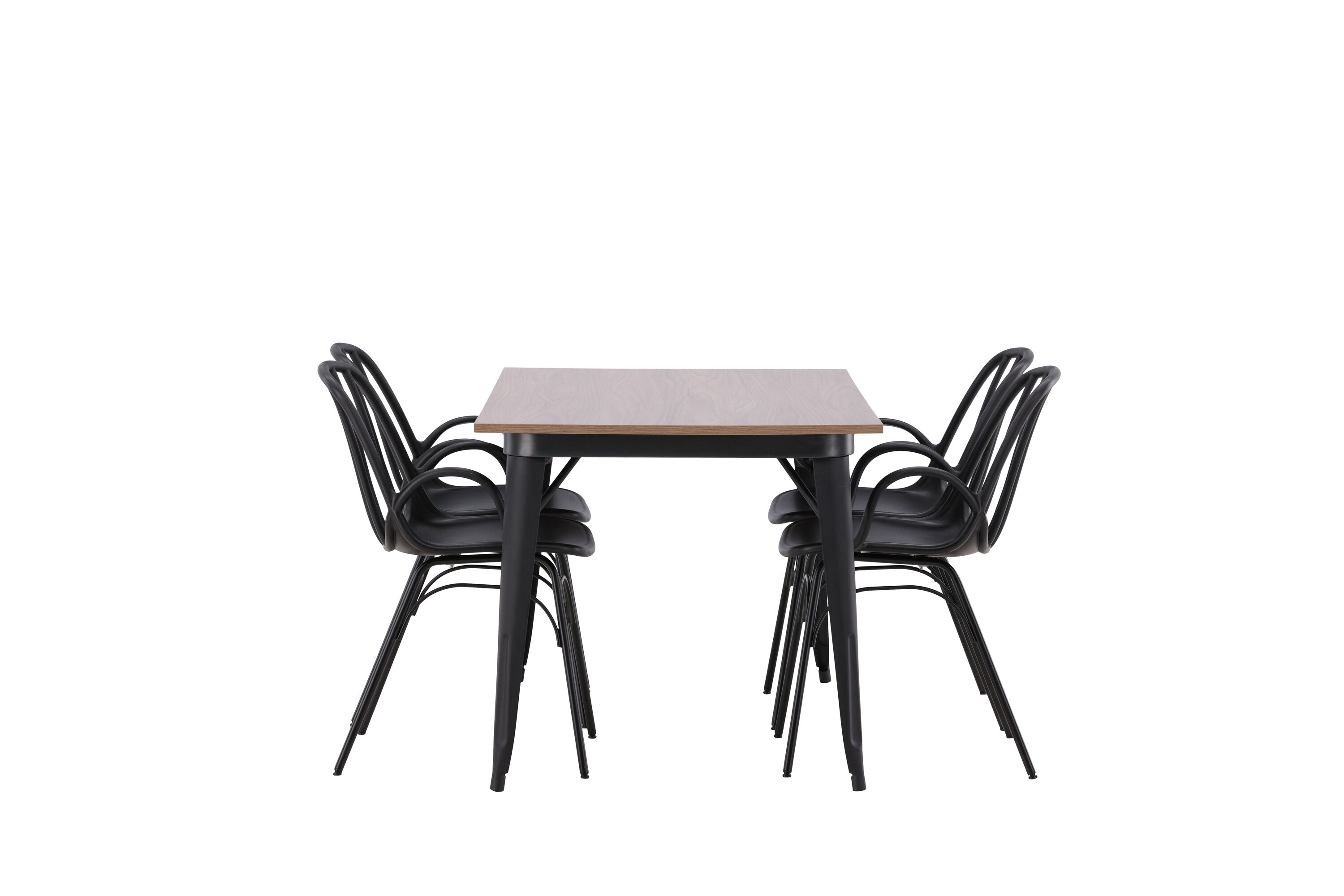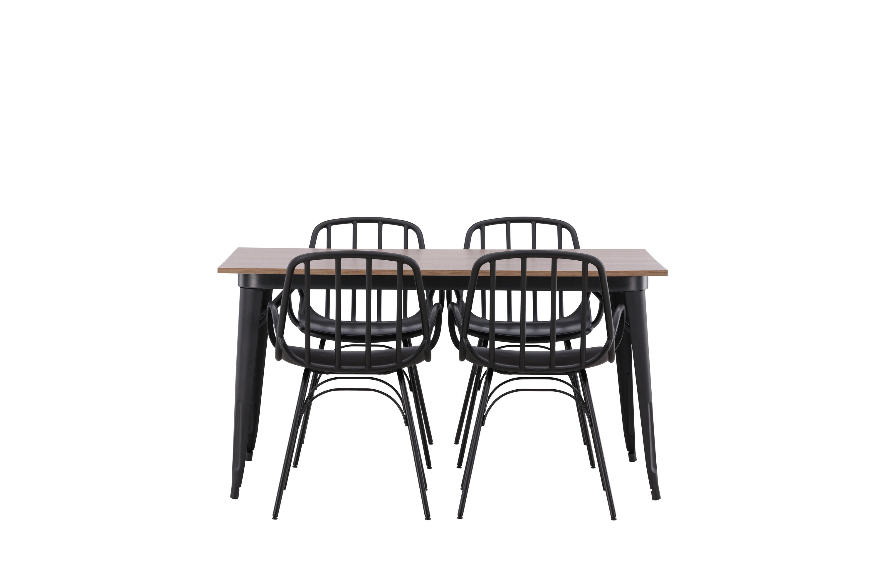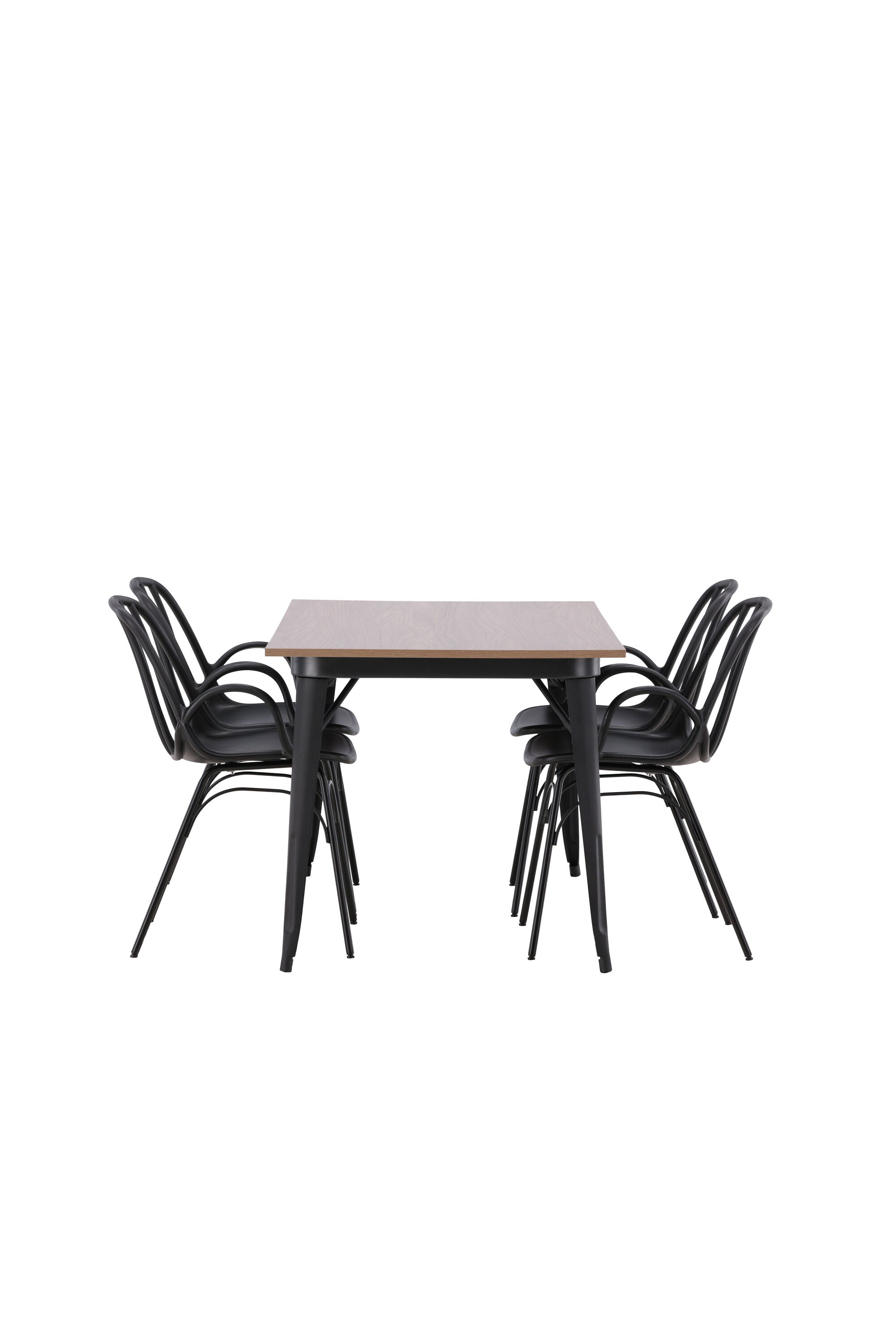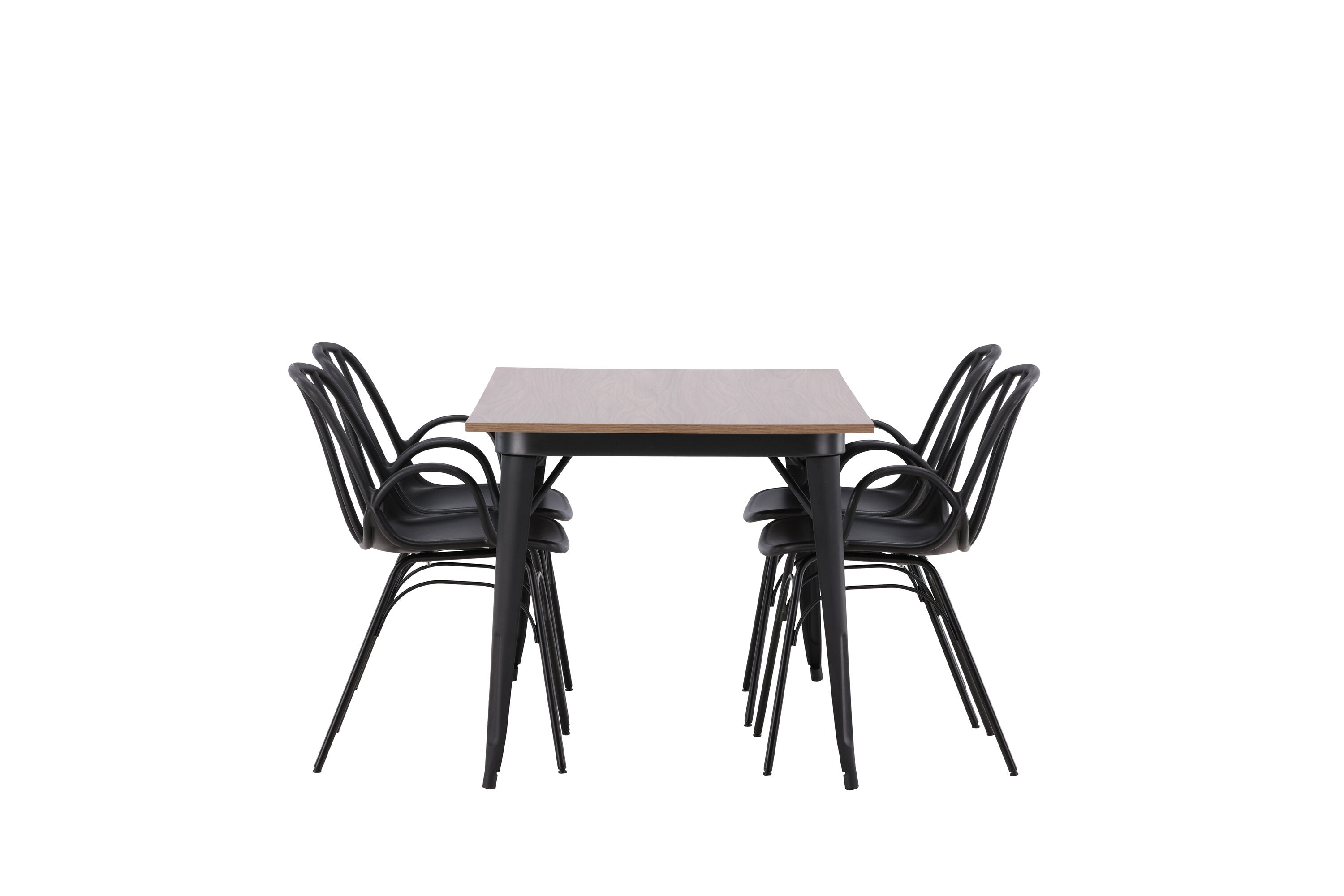 Jídelní stůl Tempe – černá / ořechová MDF + jídelní židle Dyrön – černý polypropylen _4
