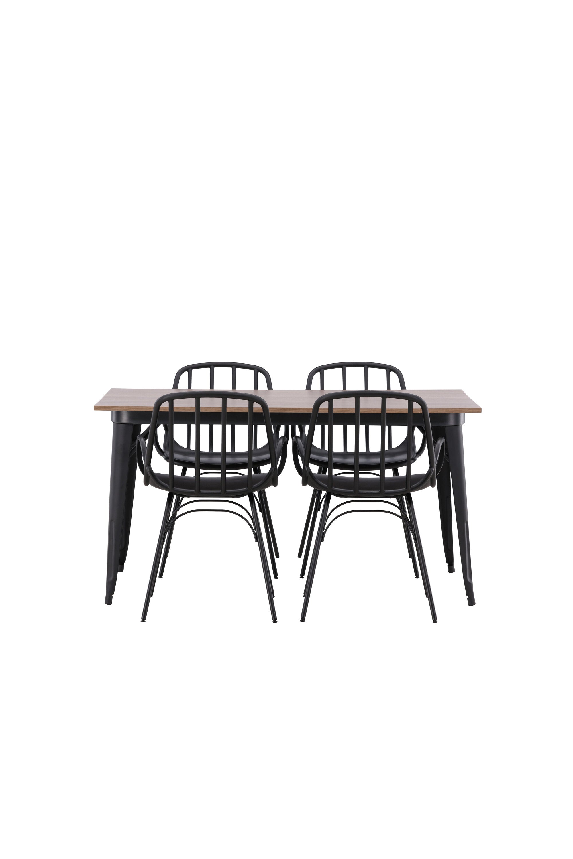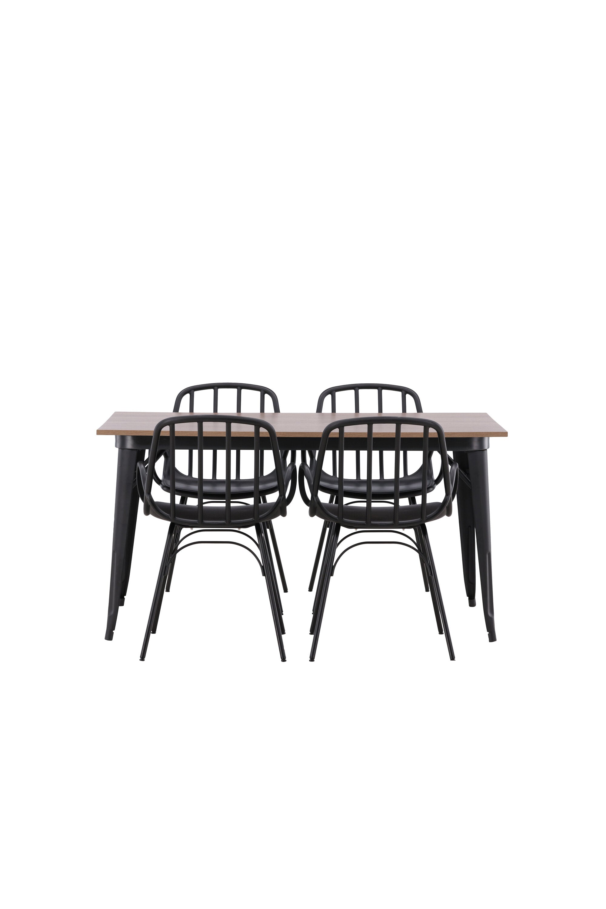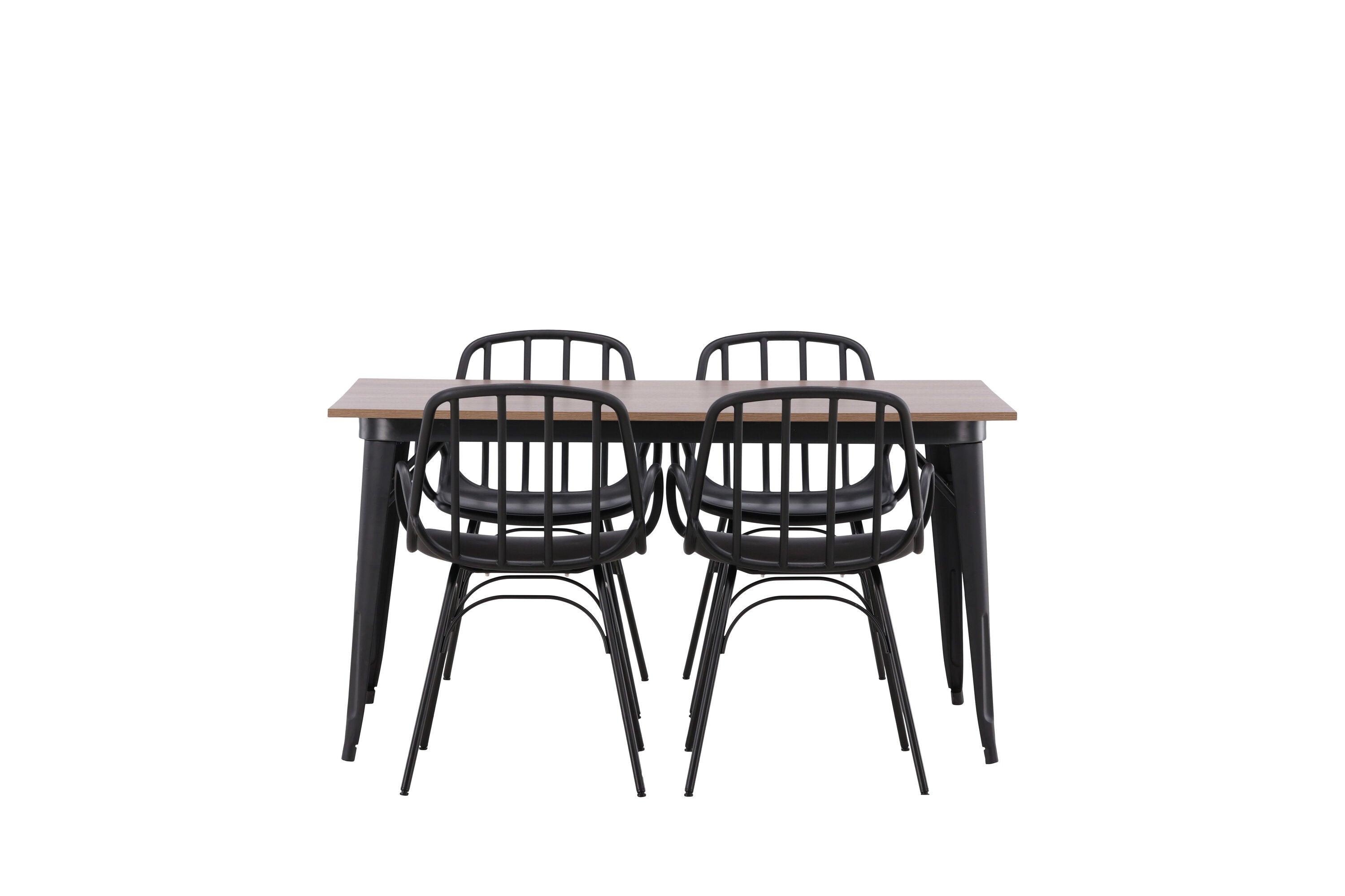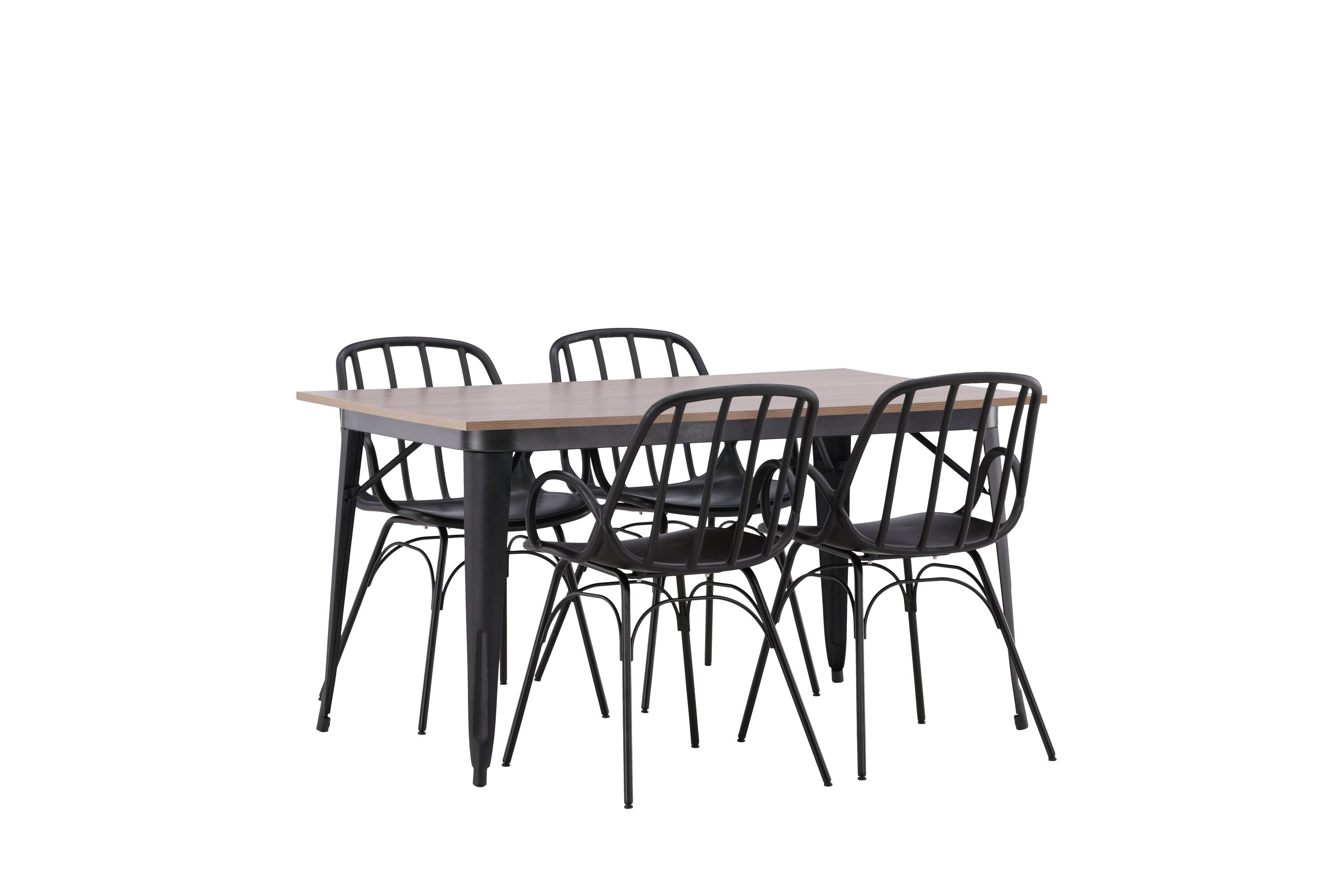Jídelní stůl Tempe – černá / ořechová MDF + jídelní židle Dyrön – černý polypropylen _4