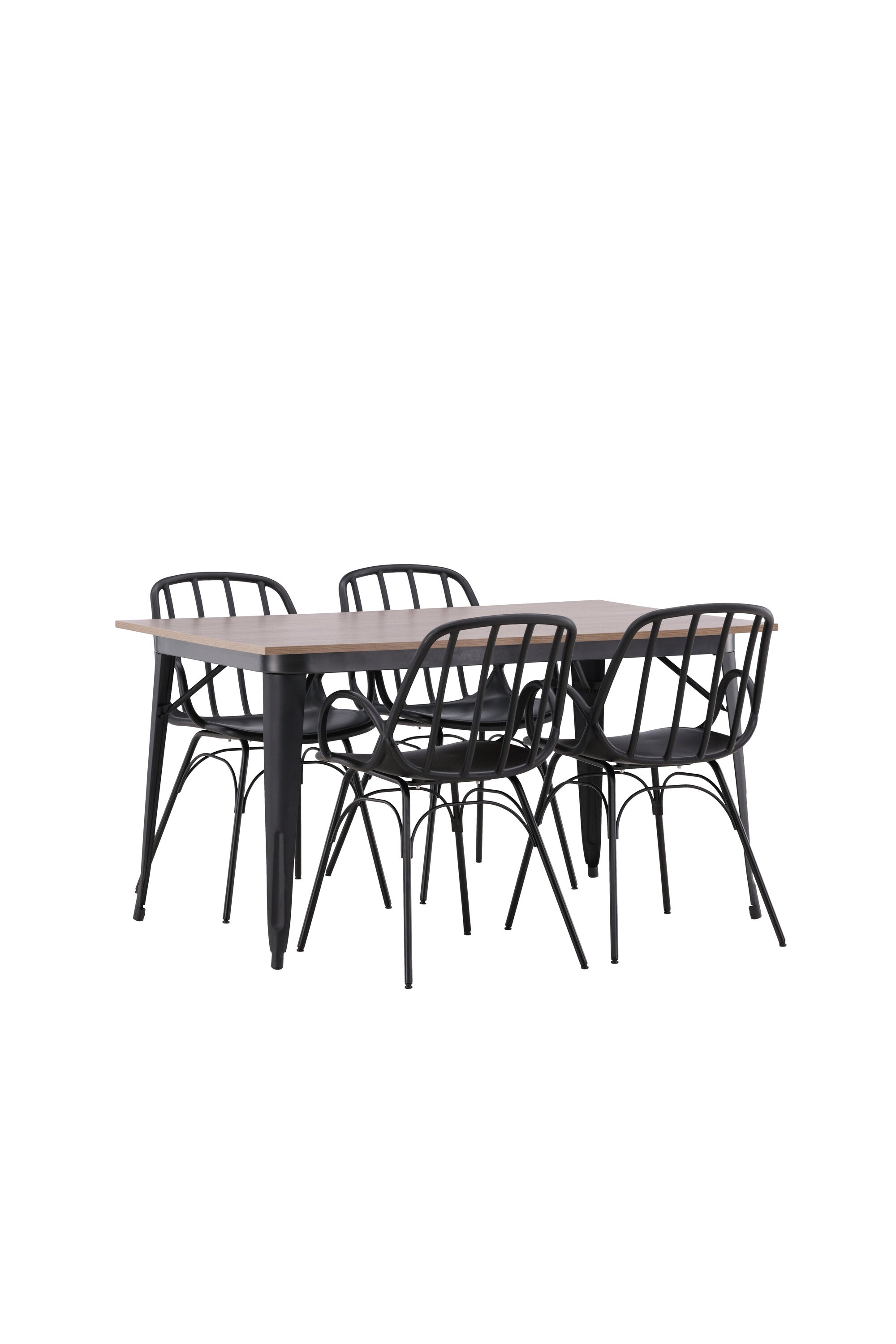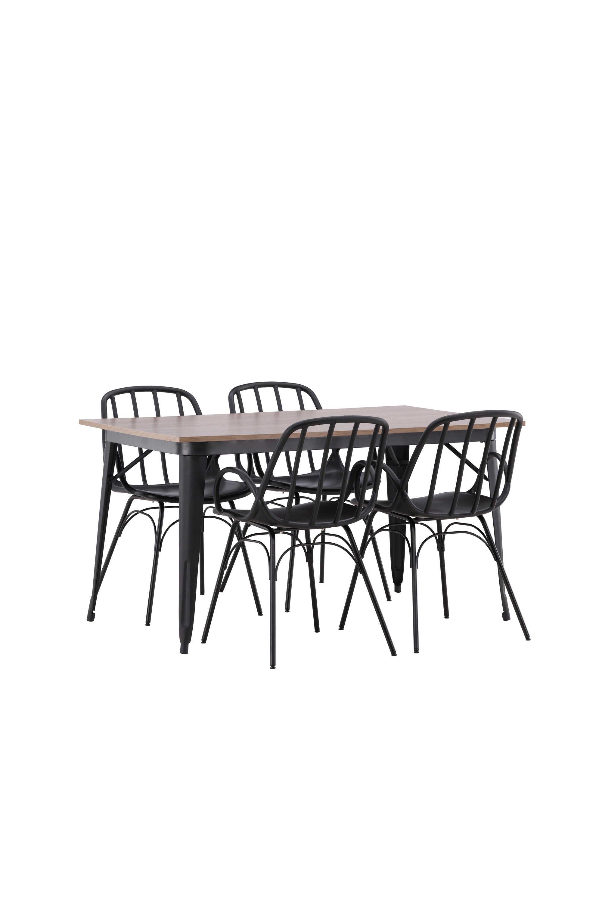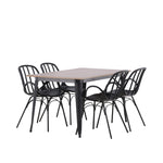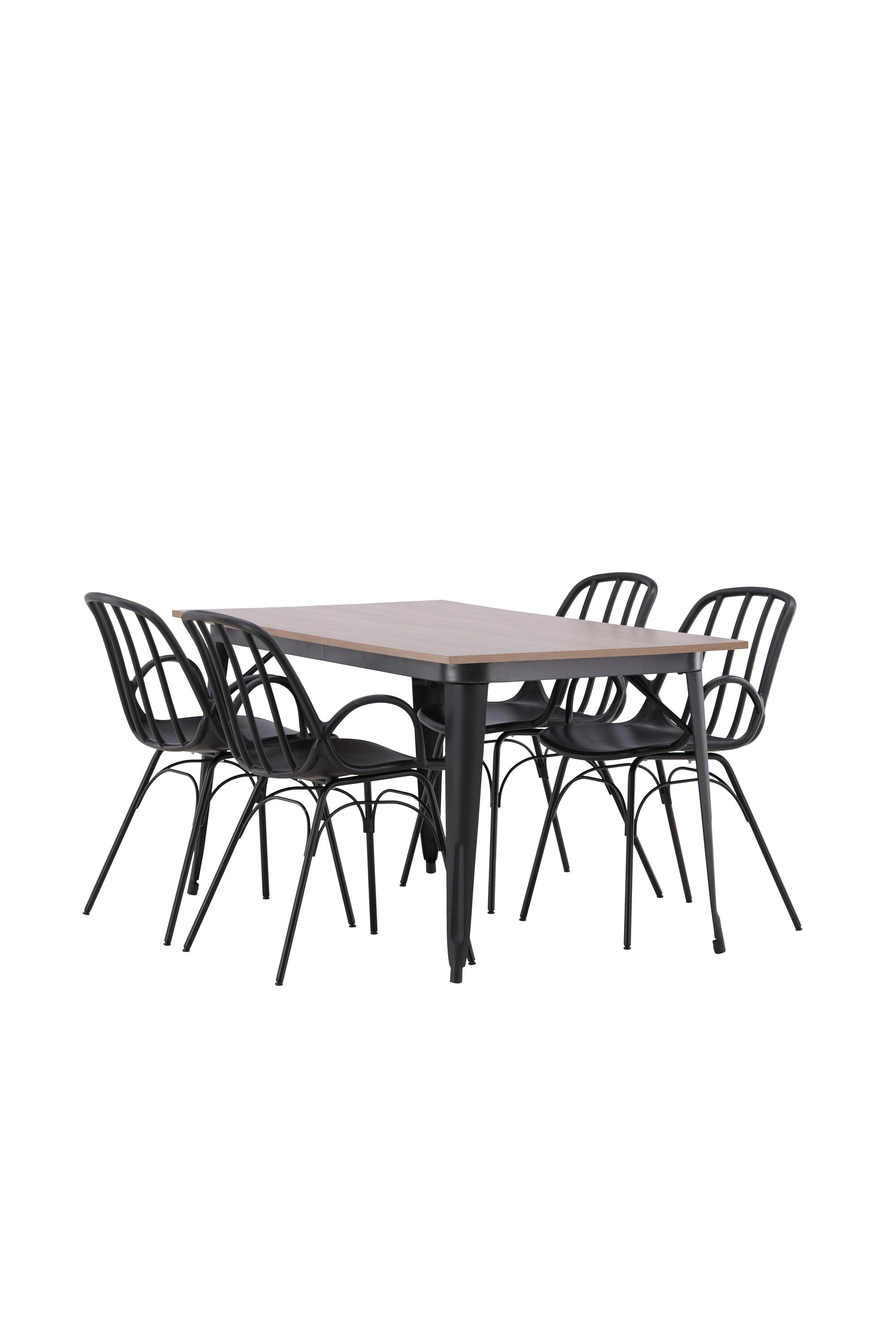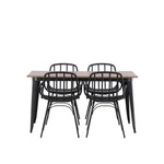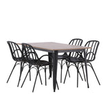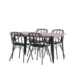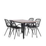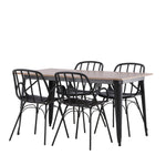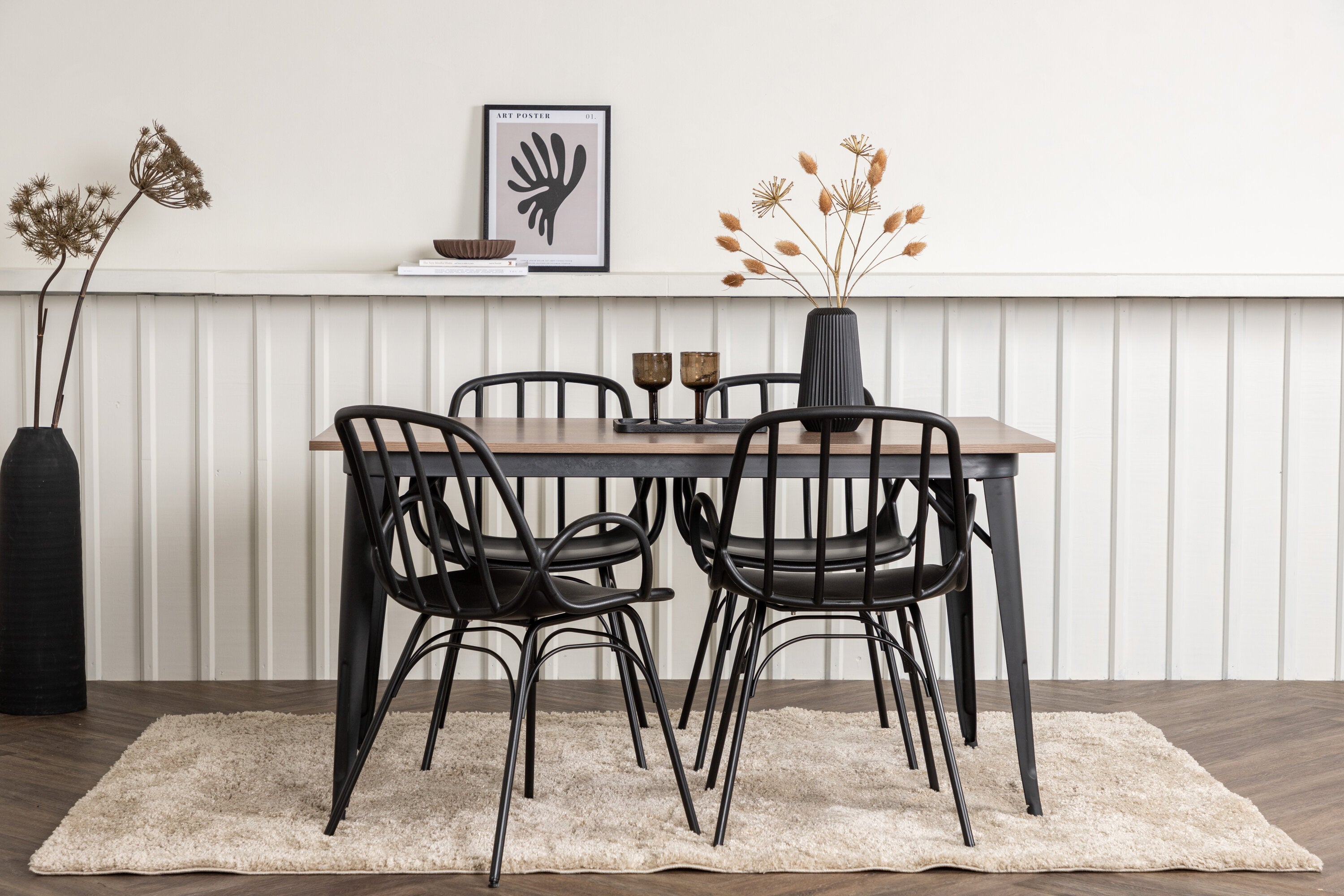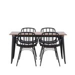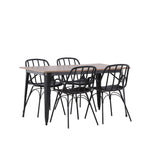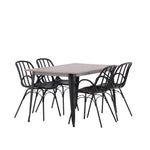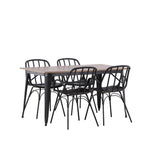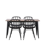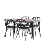 Jídelní skupina, která vyzařuje modernost a severský design! Jídelní stůl ze série Tempe je odolný vůči trendům a zároveň odolný. Vyrobeno z obdélníkové desky stolu z hnědé MDF a nohou stolu z černého kovu. Zde společně s našimi oblíbenými jídelními židlemi ze série Dyrön. Židle je stylová i praktická, vyrobena z černého plastu a oceli. Sedák má integrované područky a žebrovaný design v mírně zaoblené zadní části. Vybavte srdce domova přívětivě a vytvořte příjemnou atmosféru!