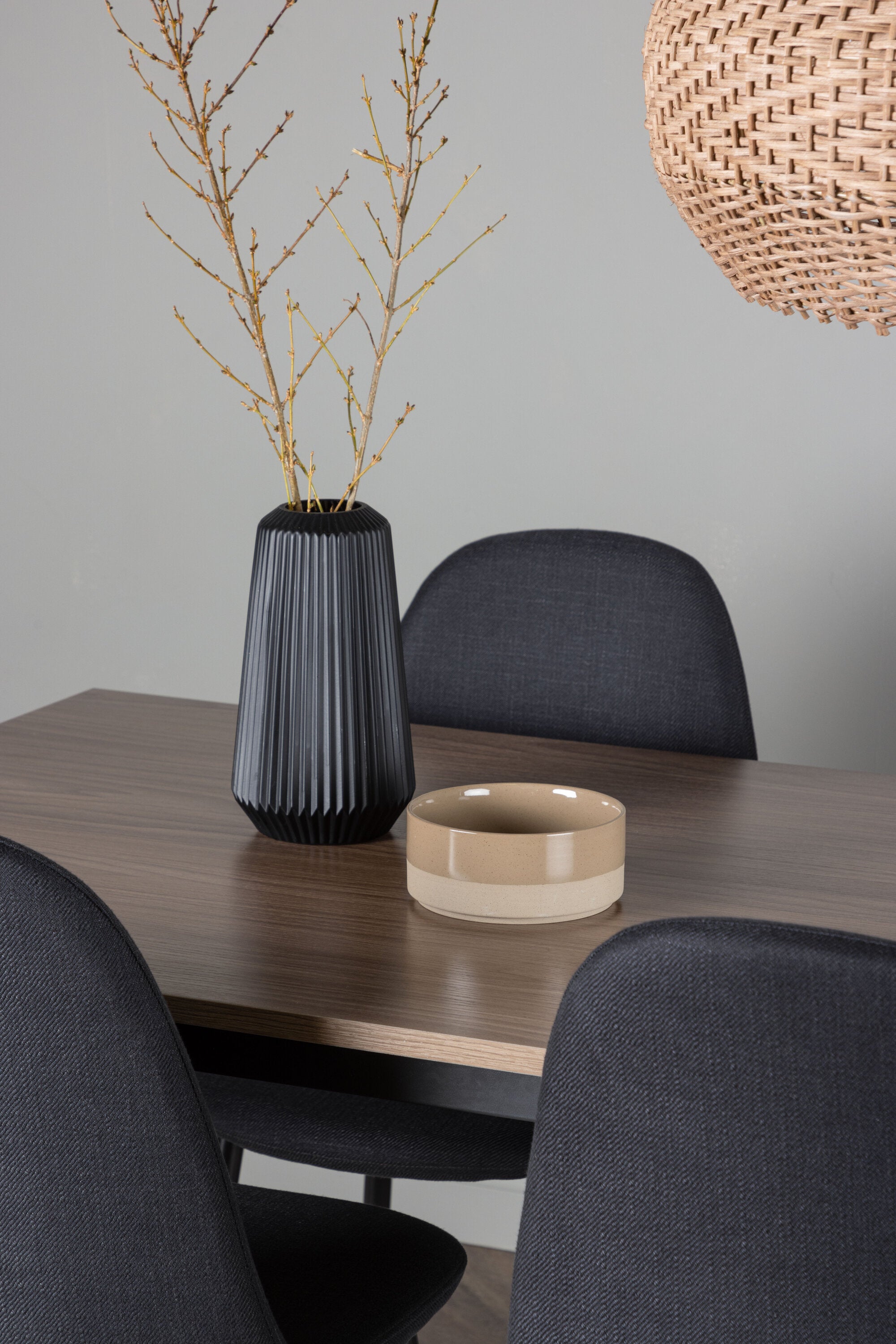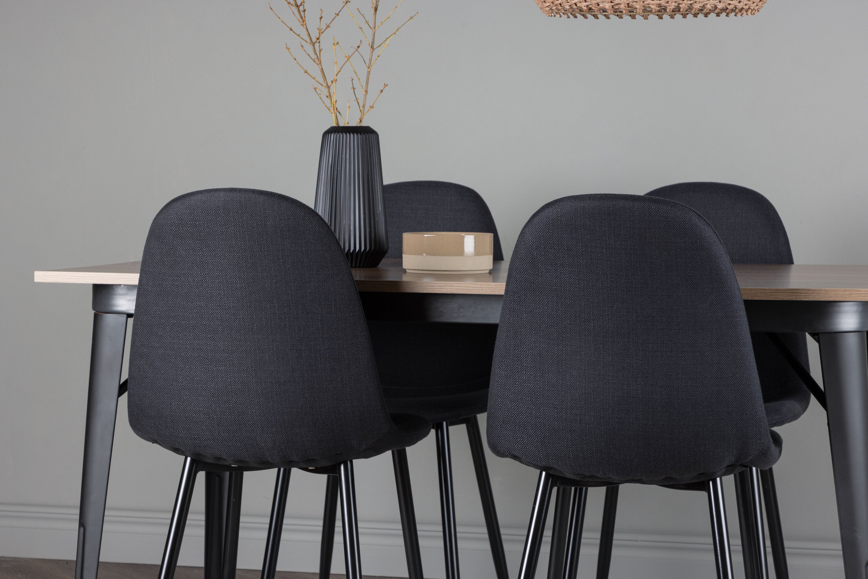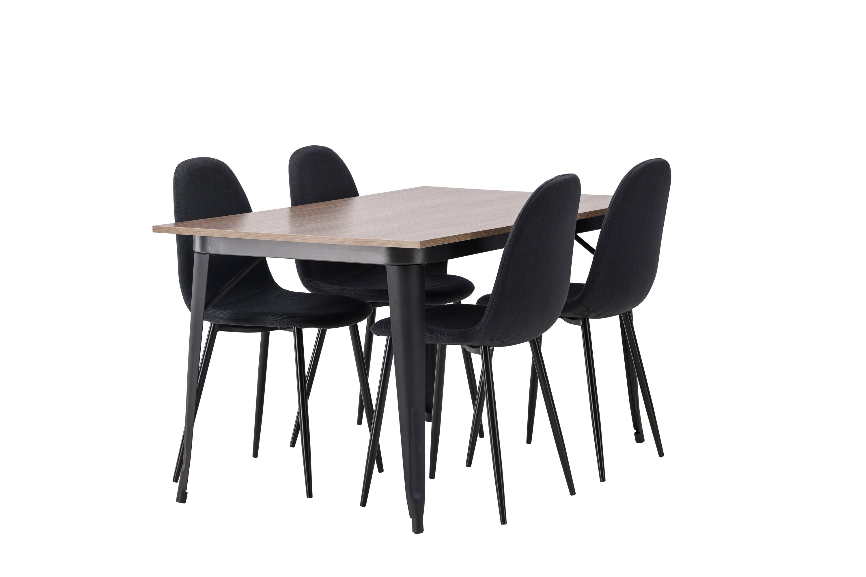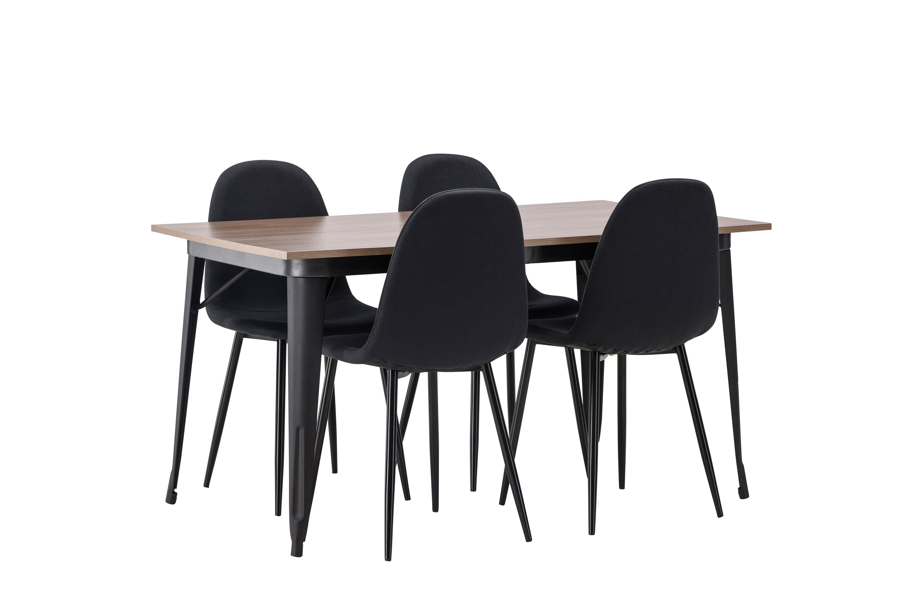 Jídelní stůl Tempe – černá / ořechová MDF + jídelní židle Polar – černé nohy – černá látka _4