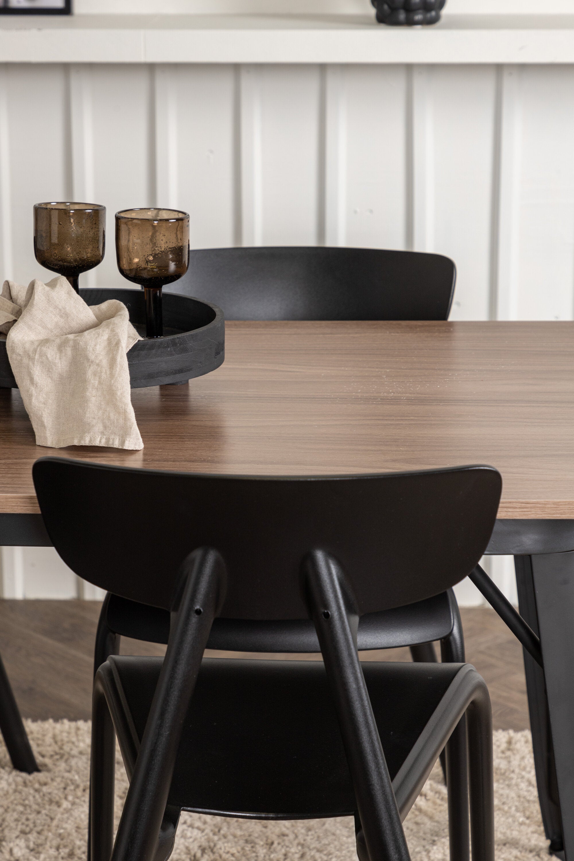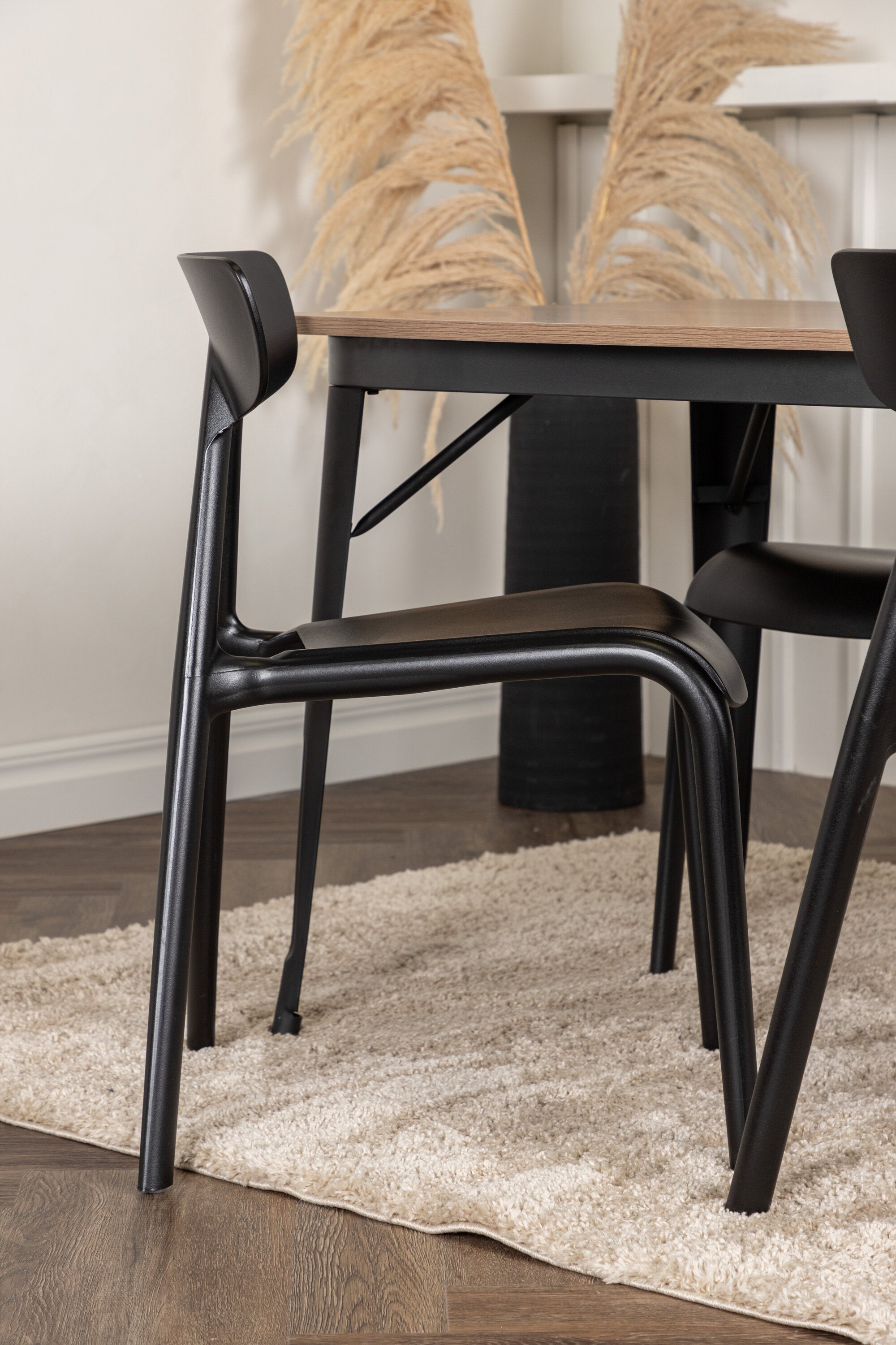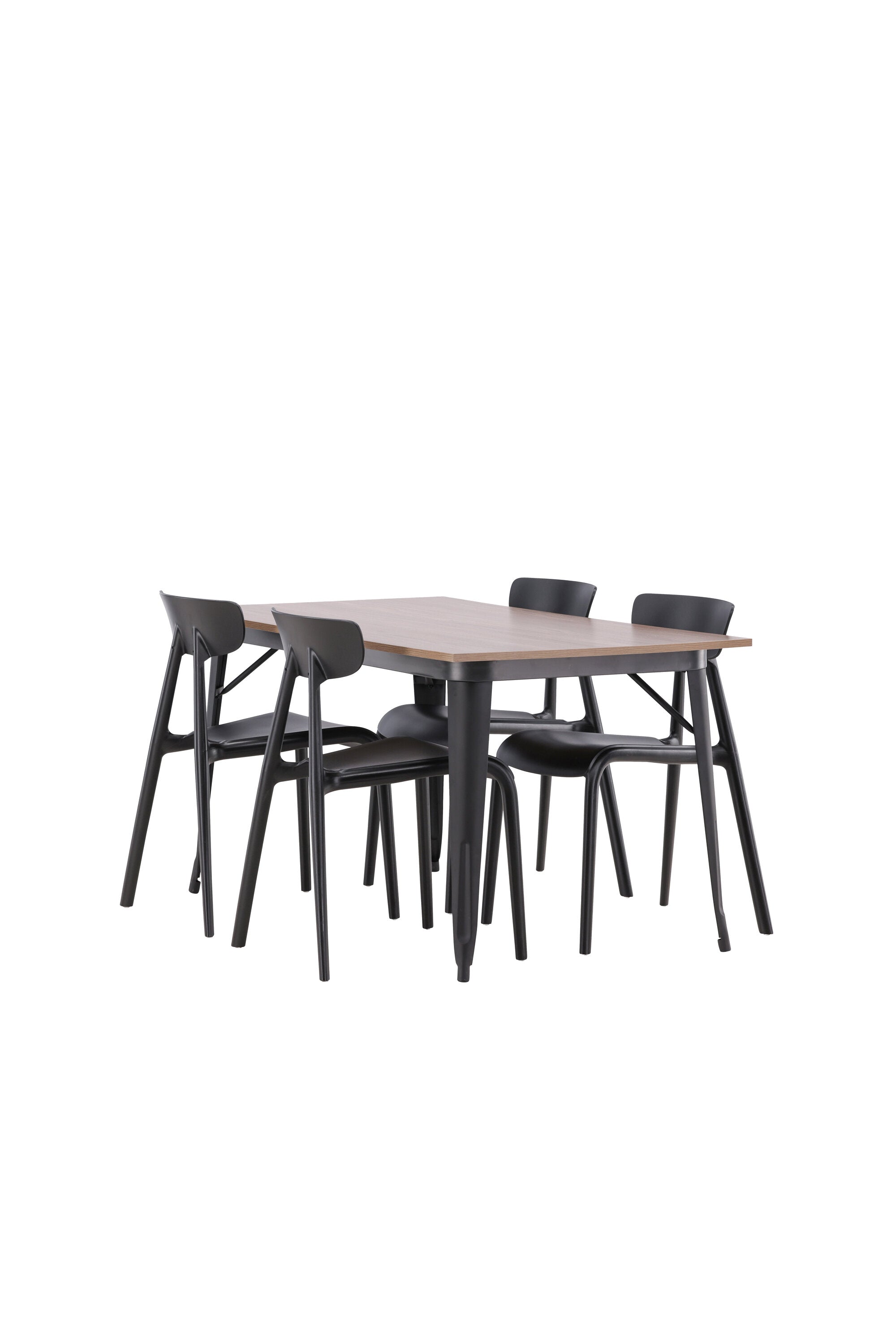 Jídelní stůl Tempe – černá / ořechová MDF + jídelní židle Ursholmen – černý polypropylen _4
