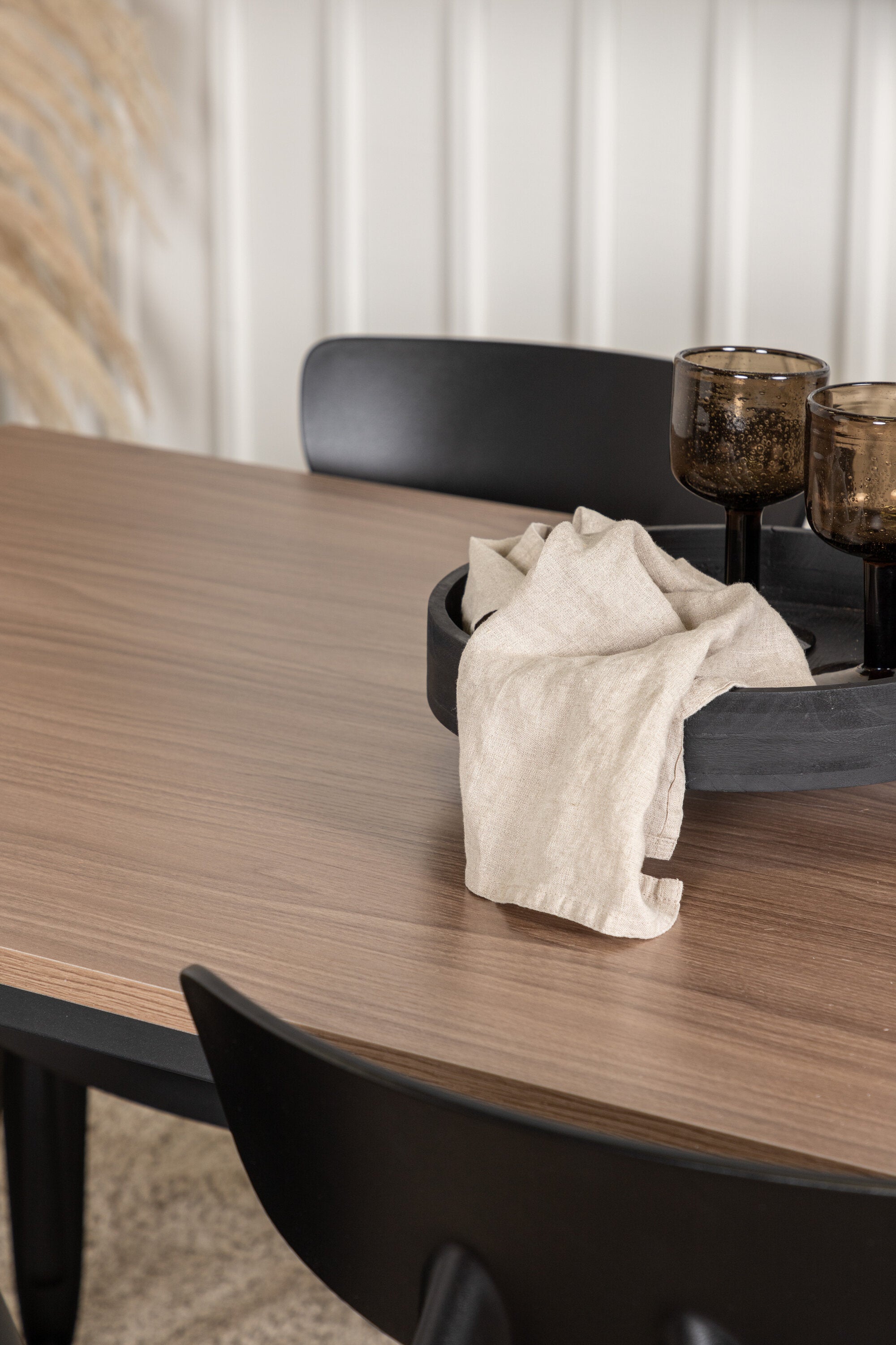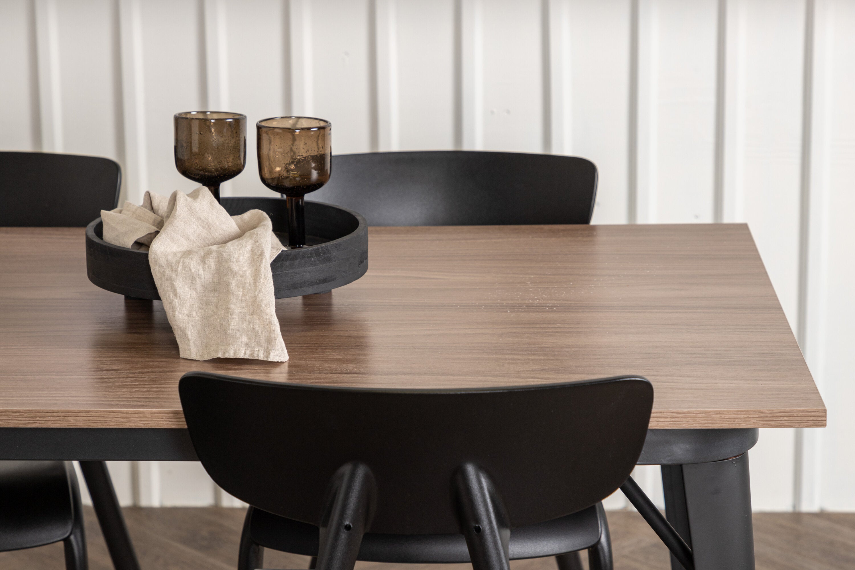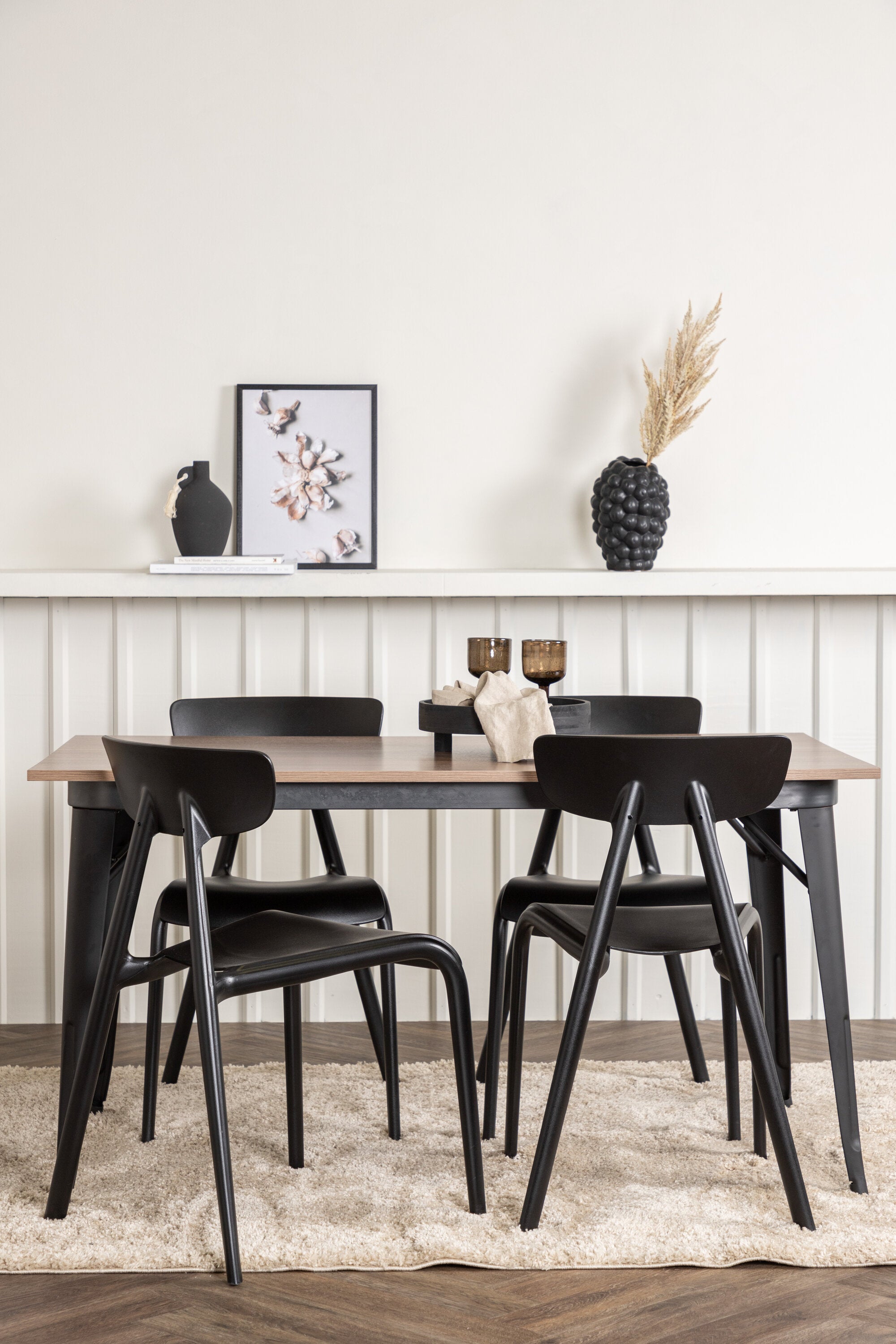 Jídelní stůl Tempe – černá / ořechová MDF + jídelní židle Ursholmen – černý polypropylen _4