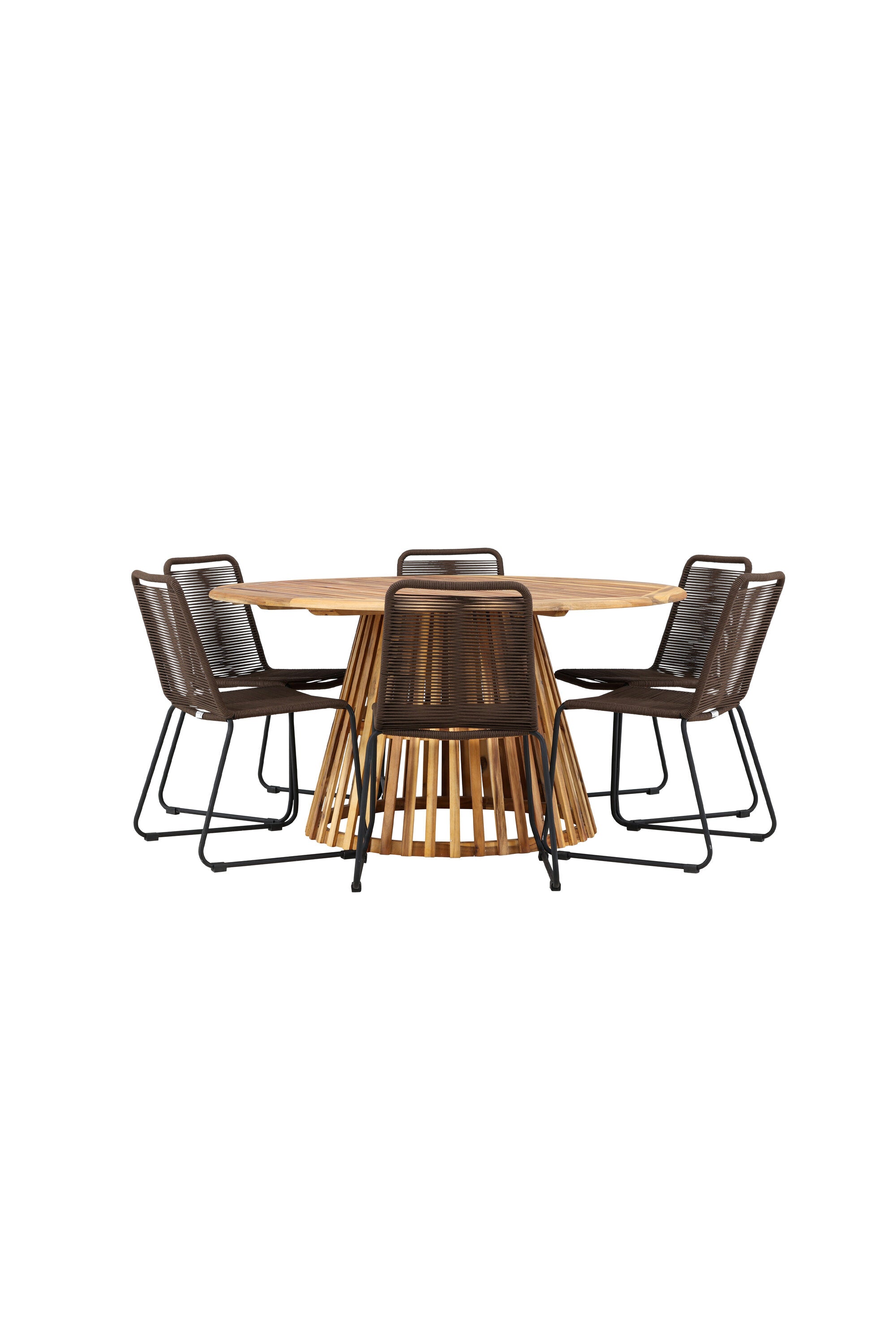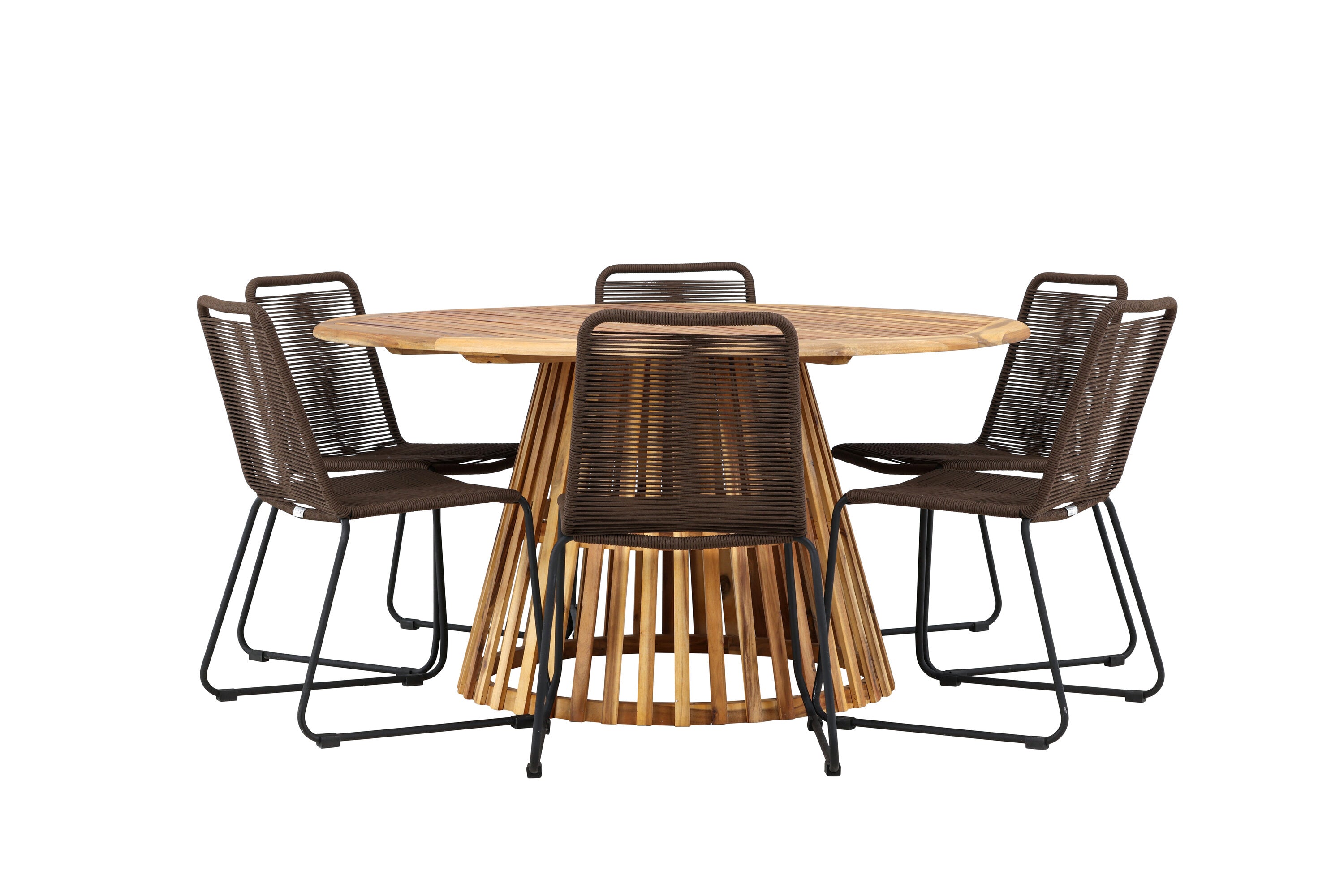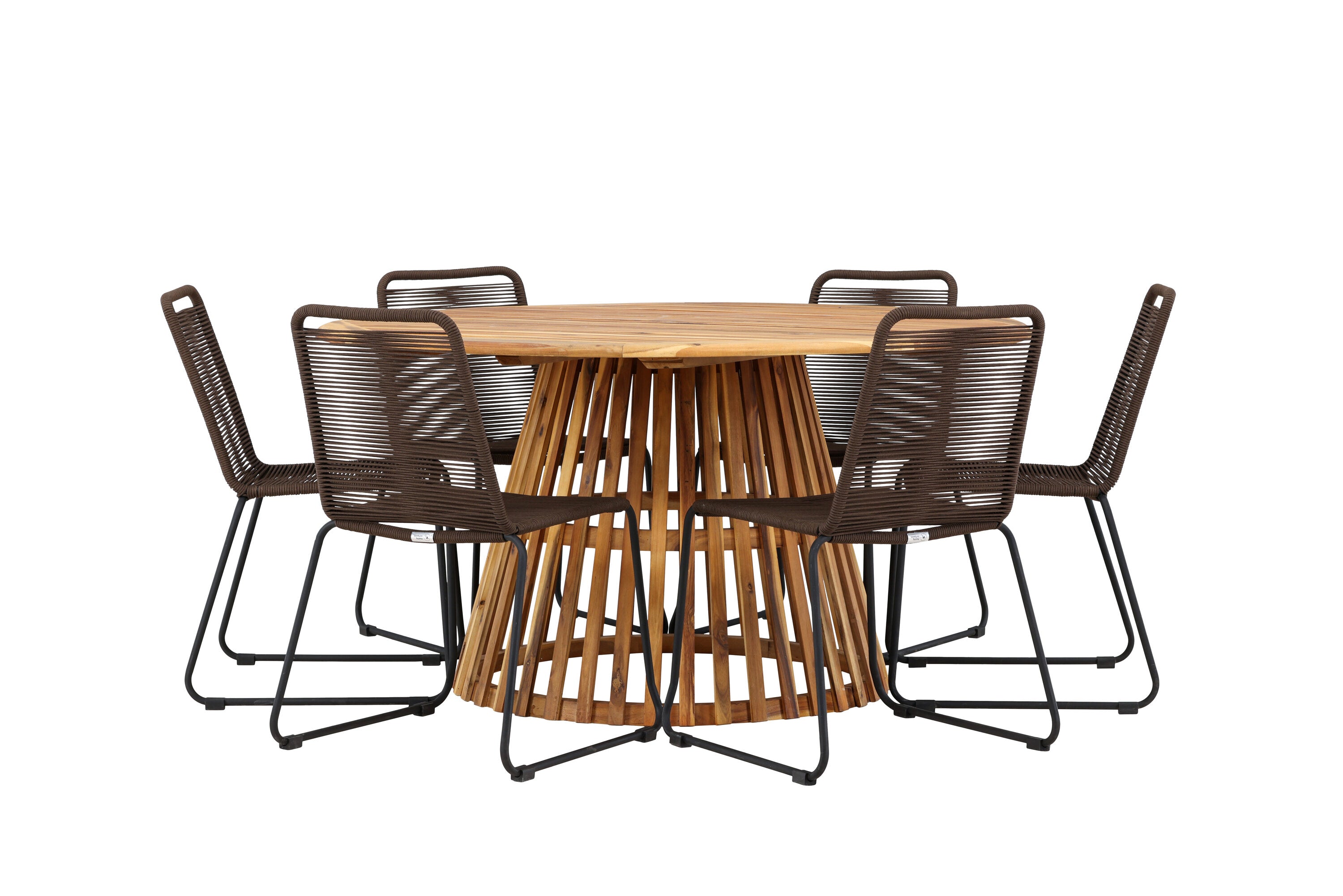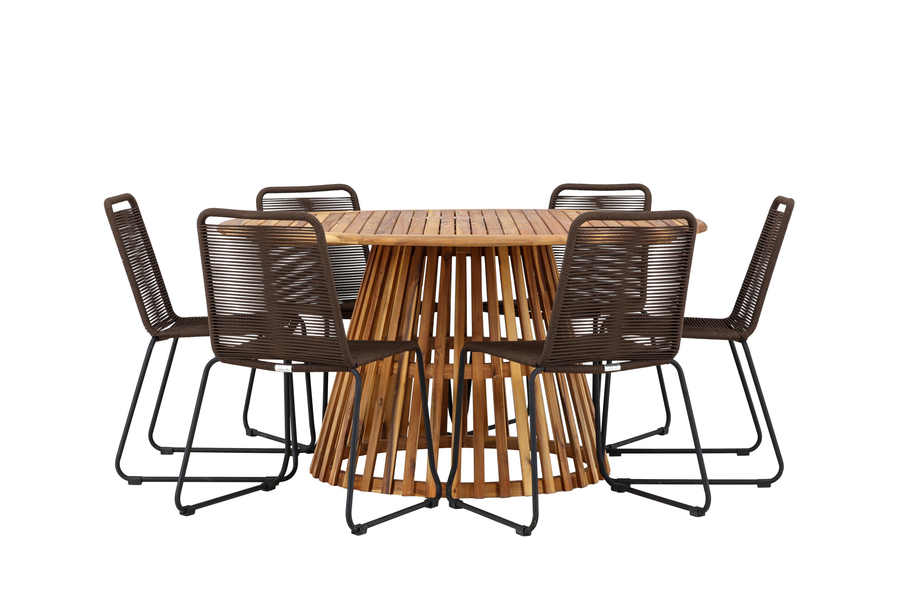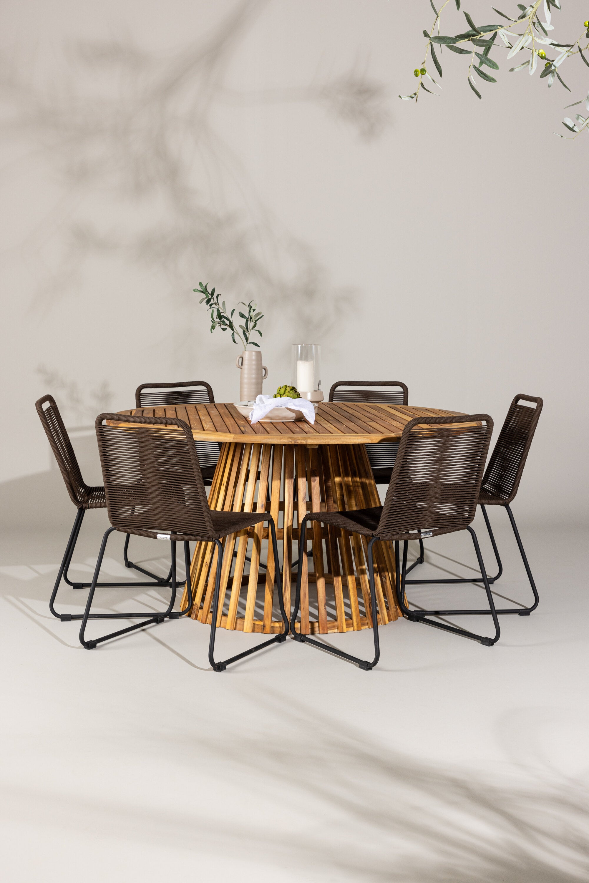 Tato jídelní souprava je dodávána se šesti pohodlnými židlemi, které jsou ideální pro klidné jídlo a venkovní společenské setkání. S jídelním setem Tucumán a Lindos můžete vytvořit příjemné a stylové venkovní prostředí, kde se vaše rodina a hosté budou moci naplno vyřádit.