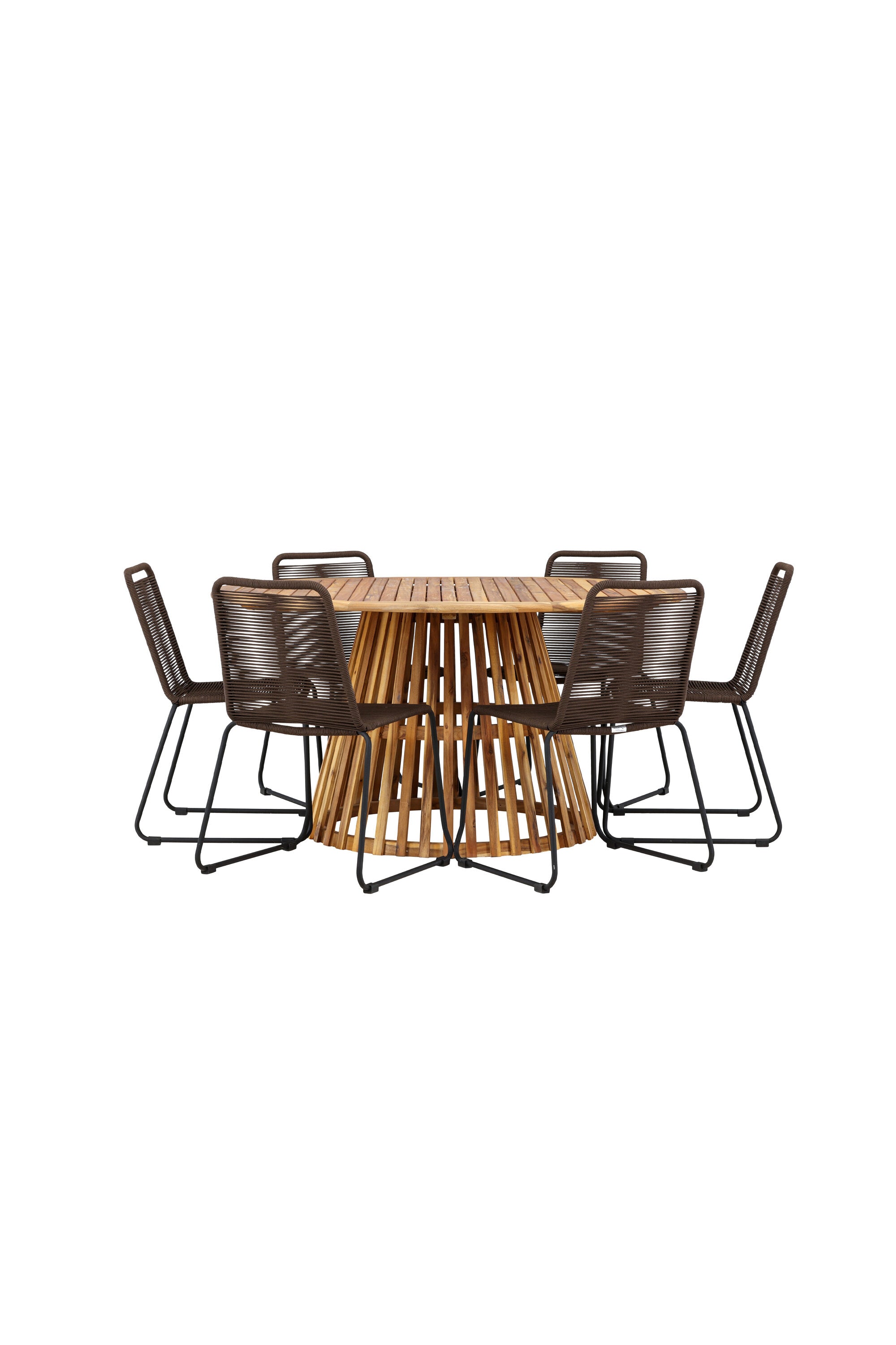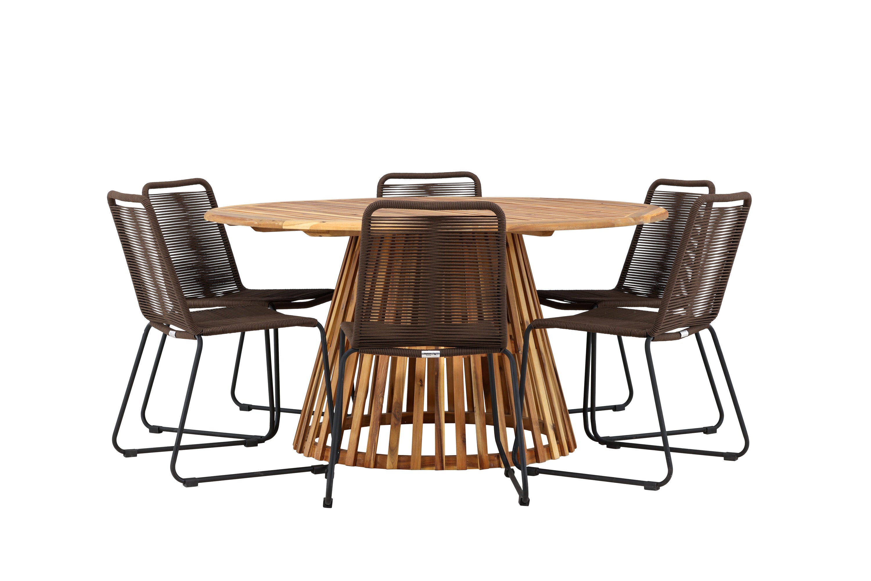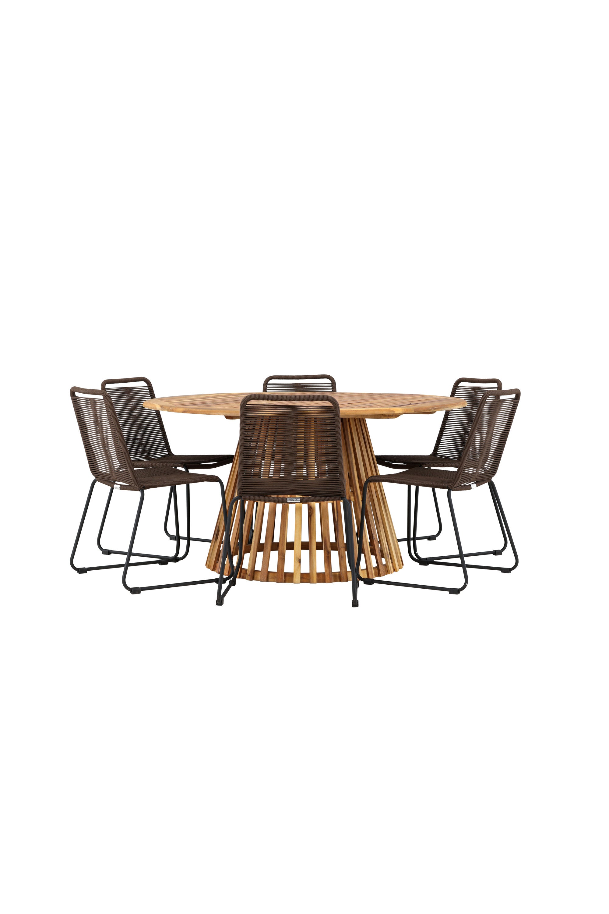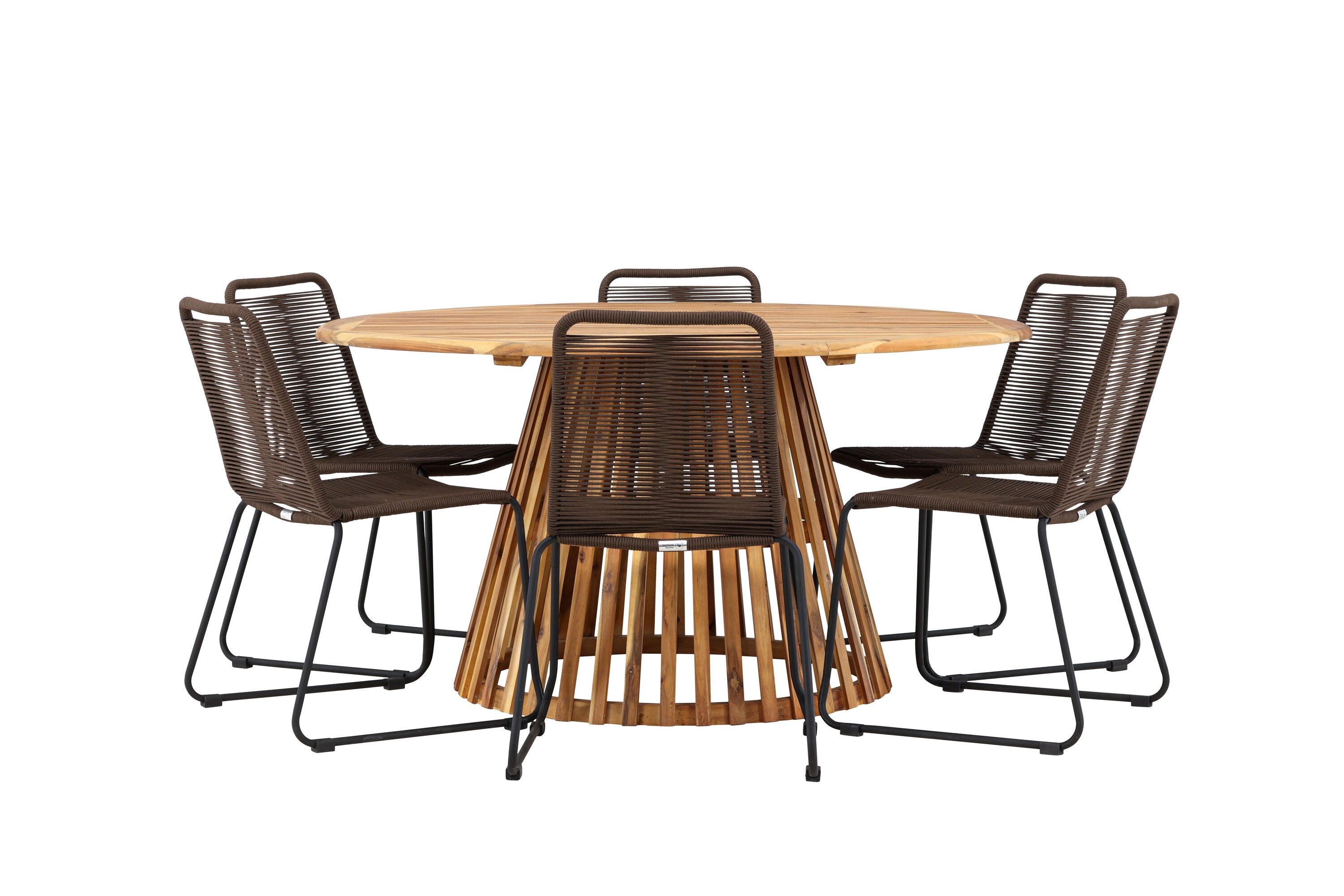 Tato jídelní souprava je dodávána se šesti pohodlnými židlemi, které jsou ideální pro klidné jídlo a venkovní společenské setkání. S jídelním setem Tucumán a Lindos můžete vytvořit příjemné a stylové venkovní prostředí, kde se vaše rodina a hosté budou moci naplno vyřádit.