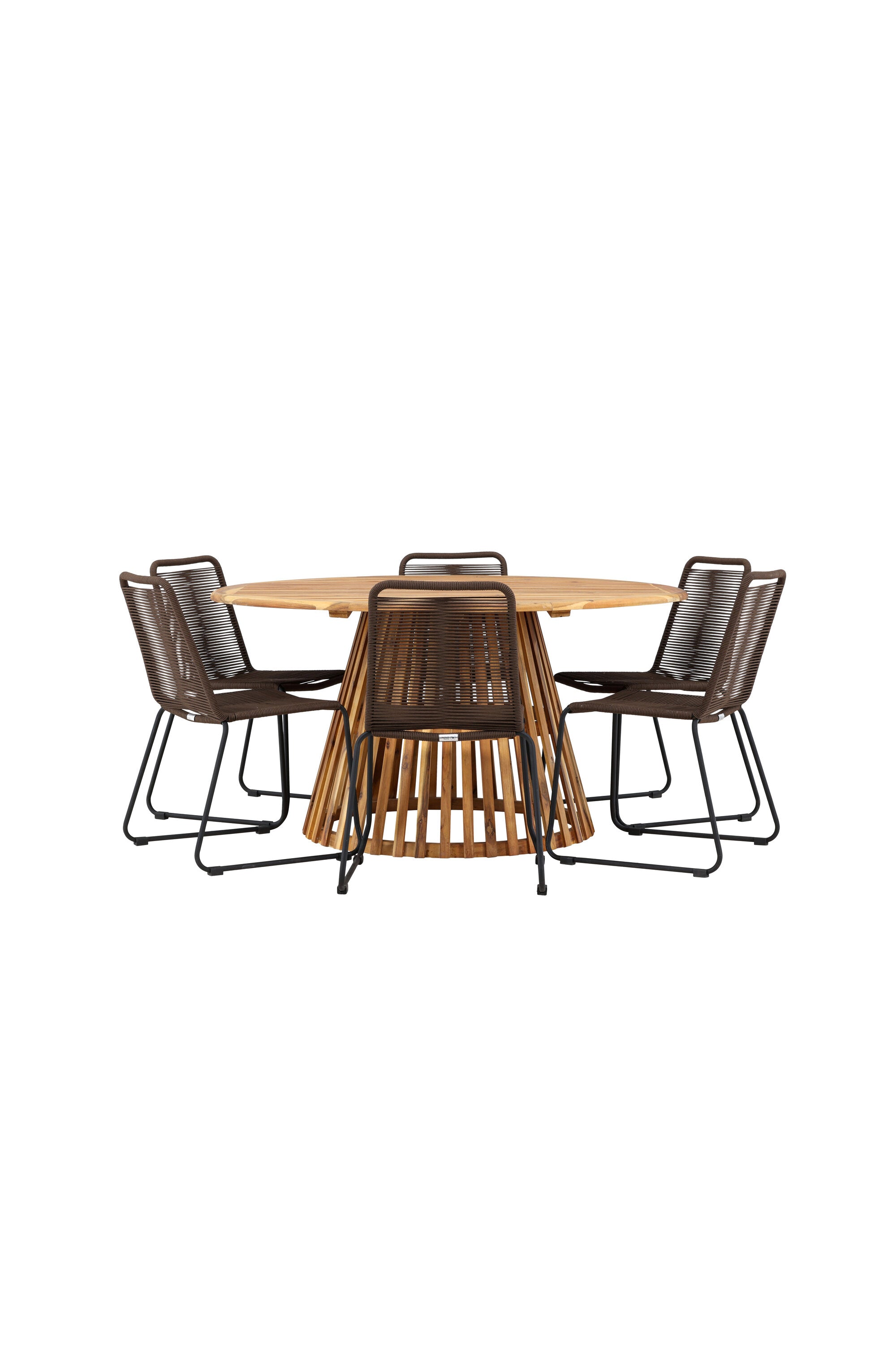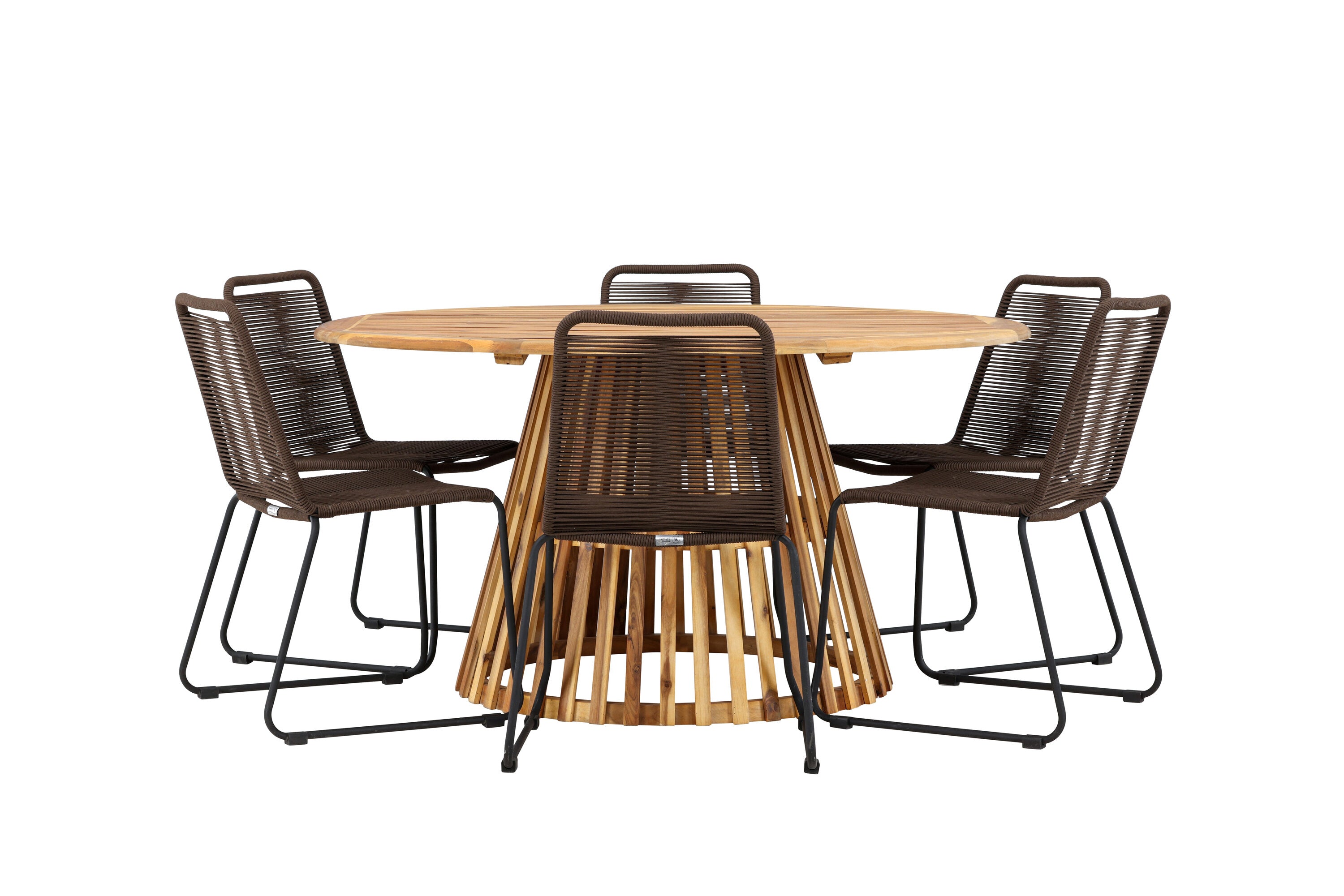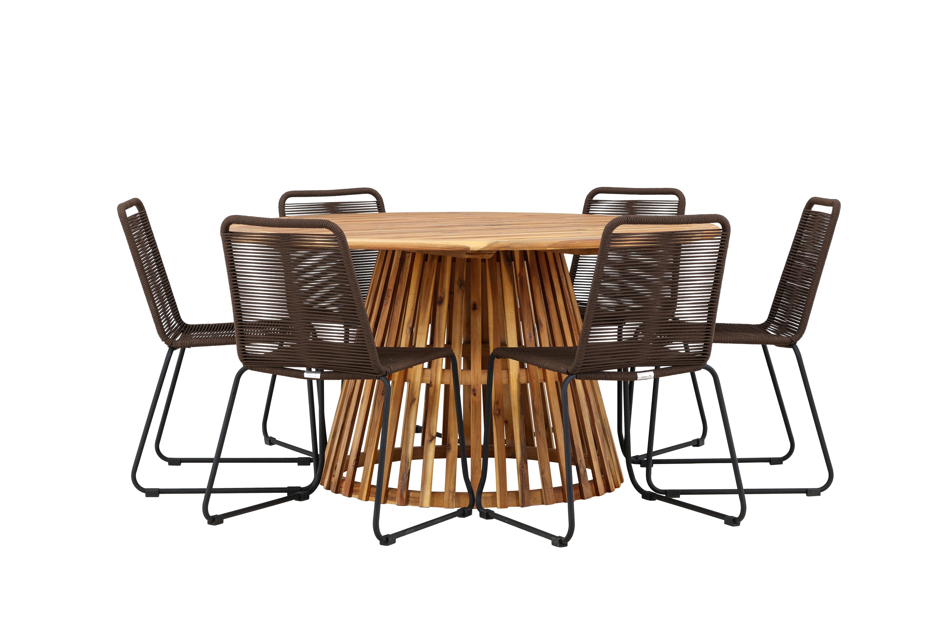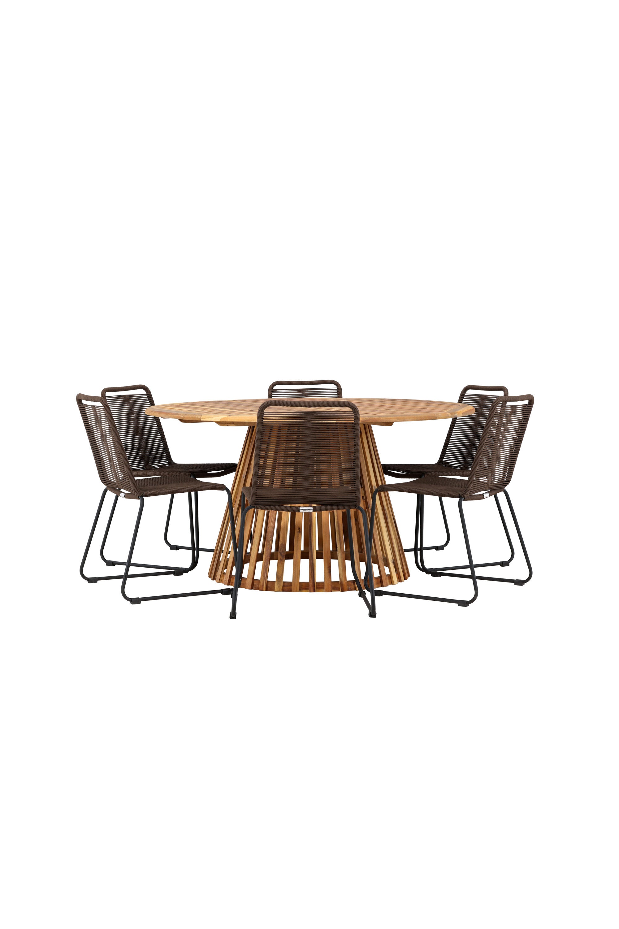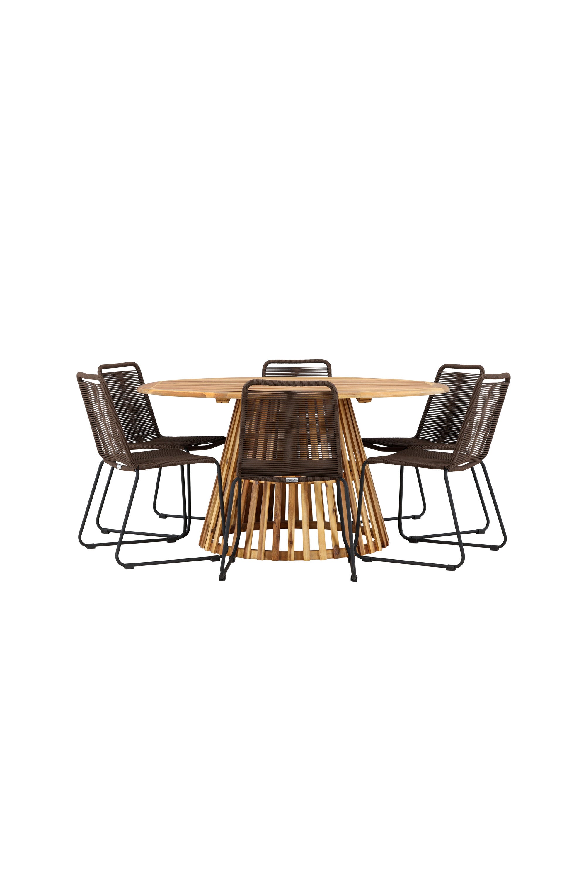 Tato jídelní souprava je dodávána se šesti pohodlnými židlemi, které jsou ideální pro klidné jídlo a venkovní společenské setkání. S jídelním setem Tucumán a Lindos můžete vytvořit příjemné a stylové venkovní prostředí, kde se vaše rodina a hosté budou moci naplno vyřádit.