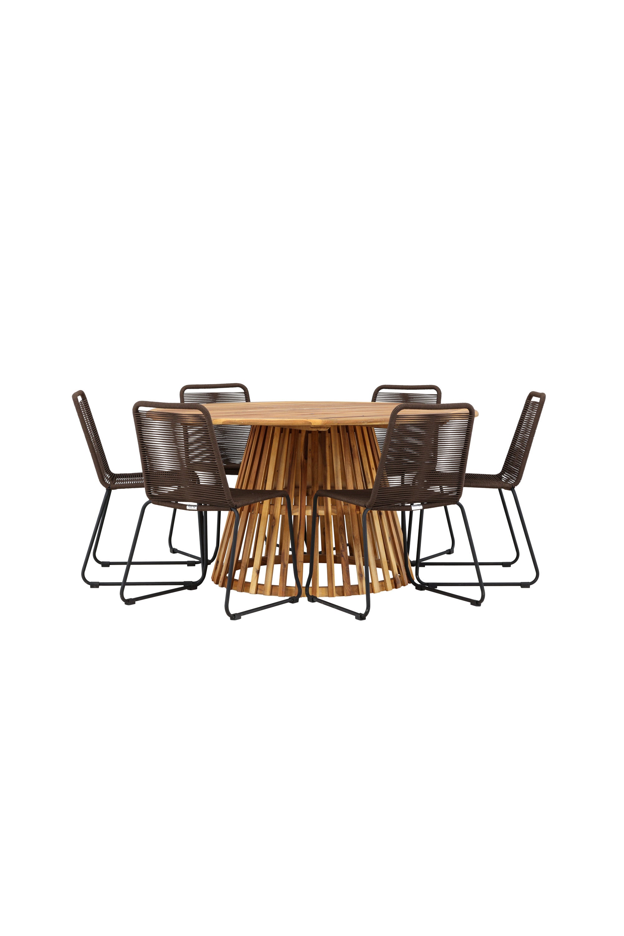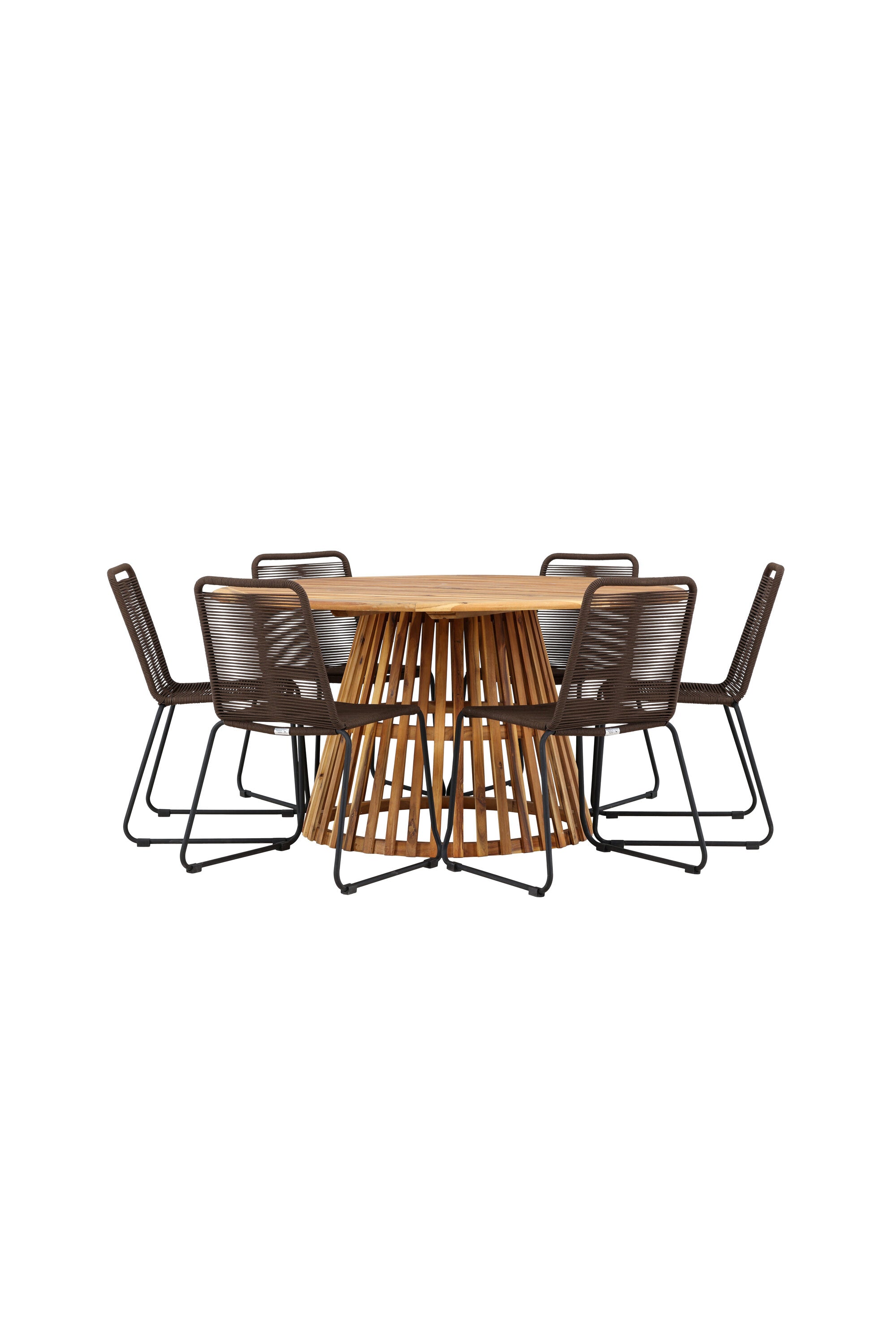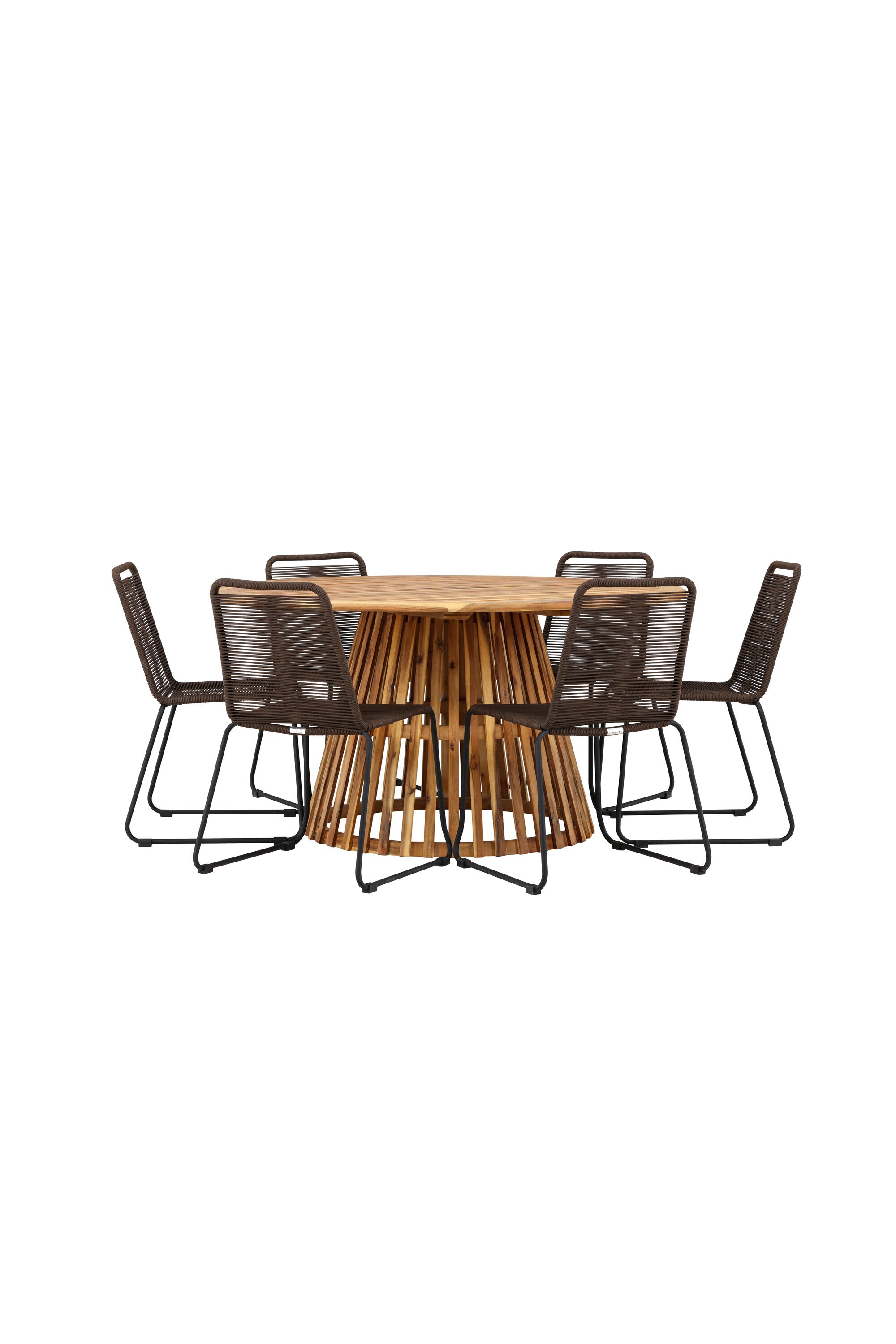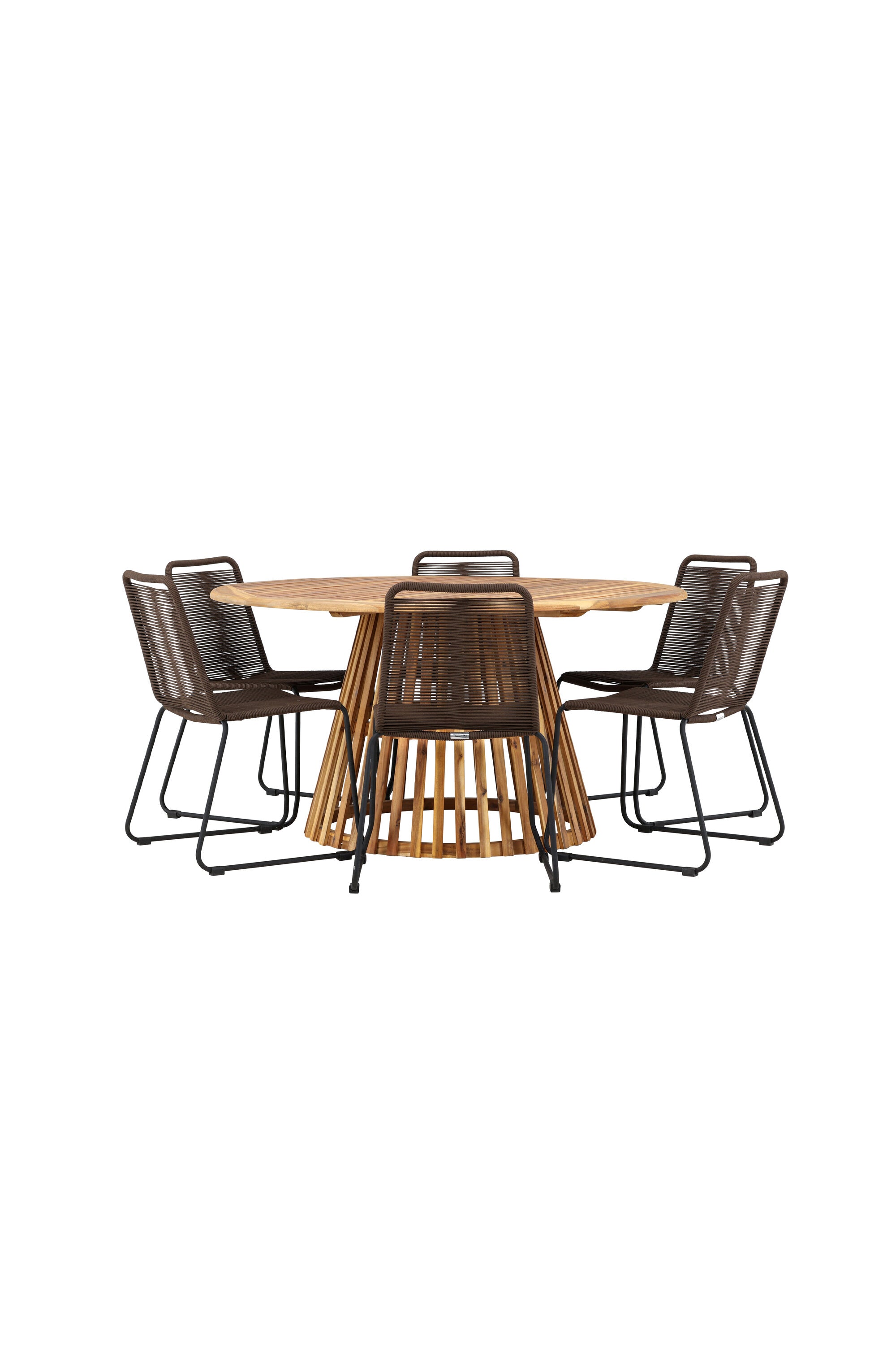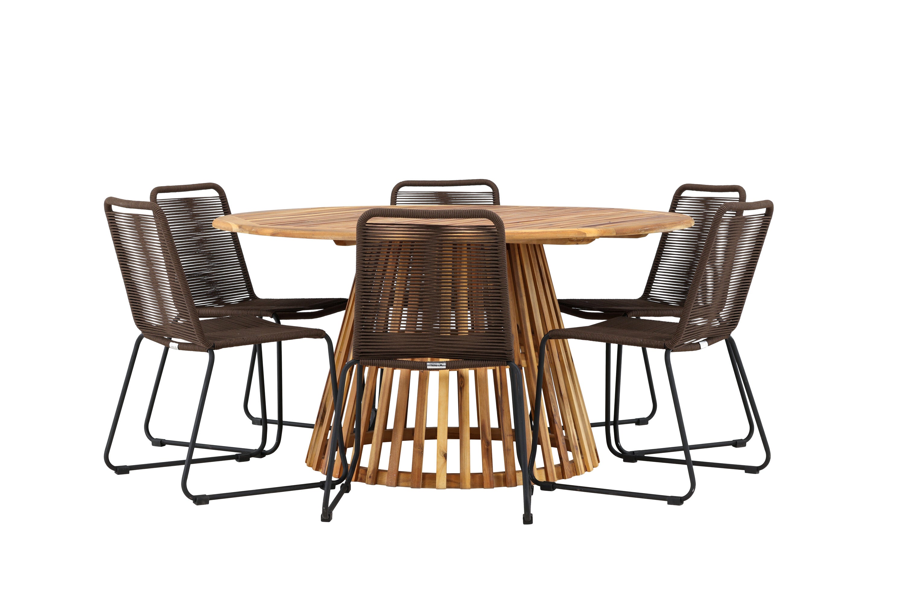 Tato jídelní souprava je dodávána se šesti pohodlnými židlemi, které jsou ideální pro klidné jídlo a venkovní společenské setkání. S jídelním setem Tucumán a Lindos můžete vytvořit příjemné a stylové venkovní prostředí, kde se vaše rodina a hosté budou moci naplno vyřádit.