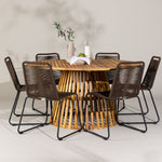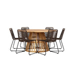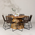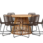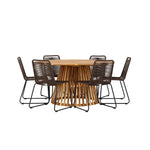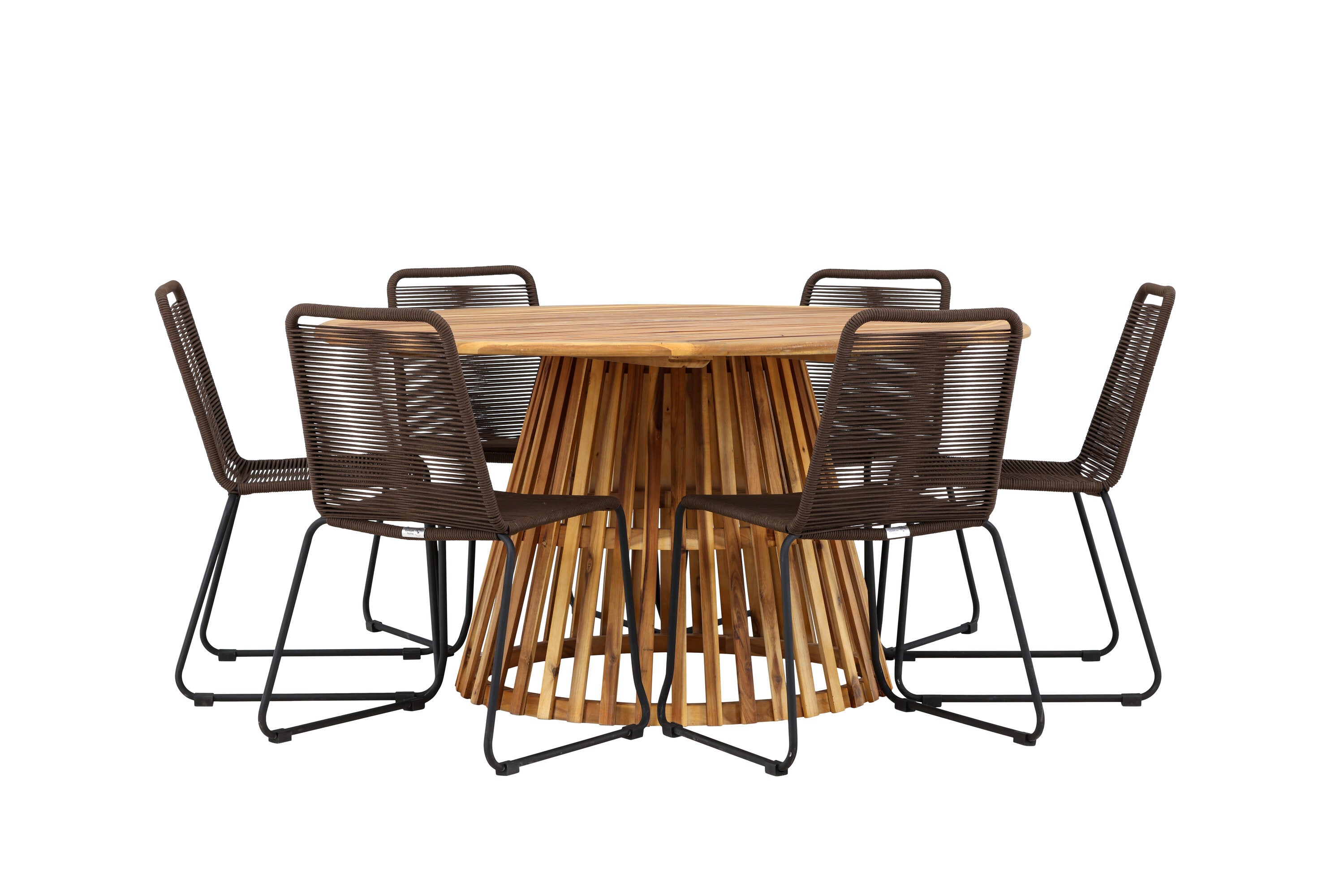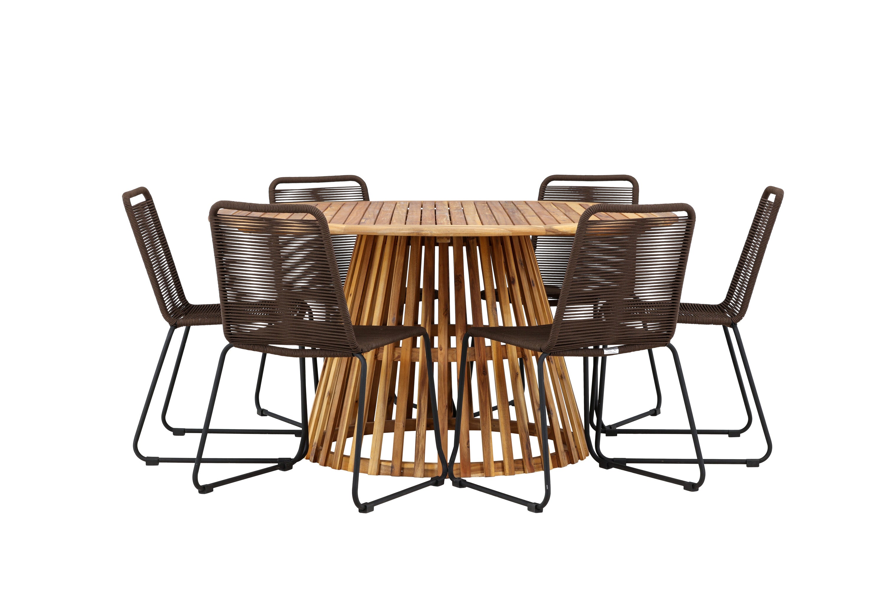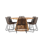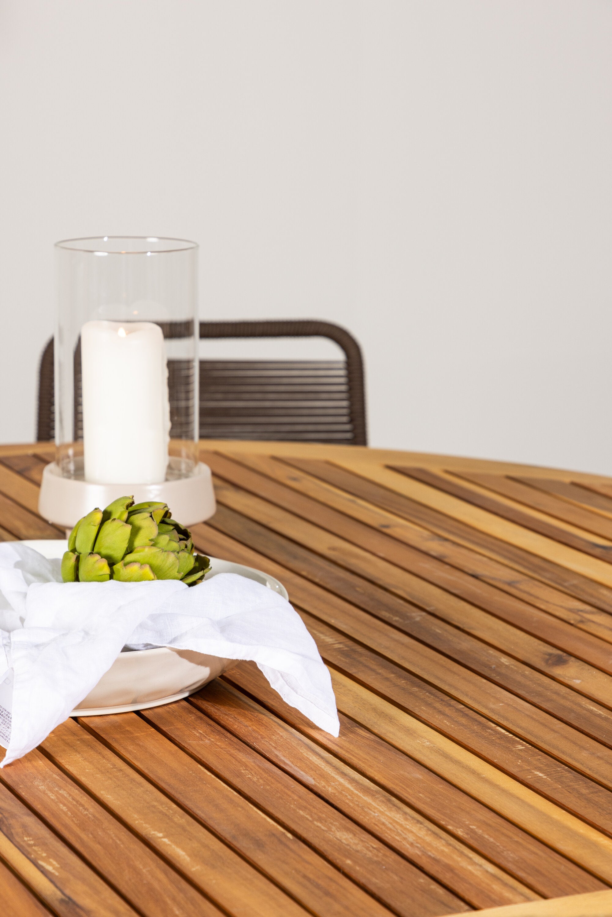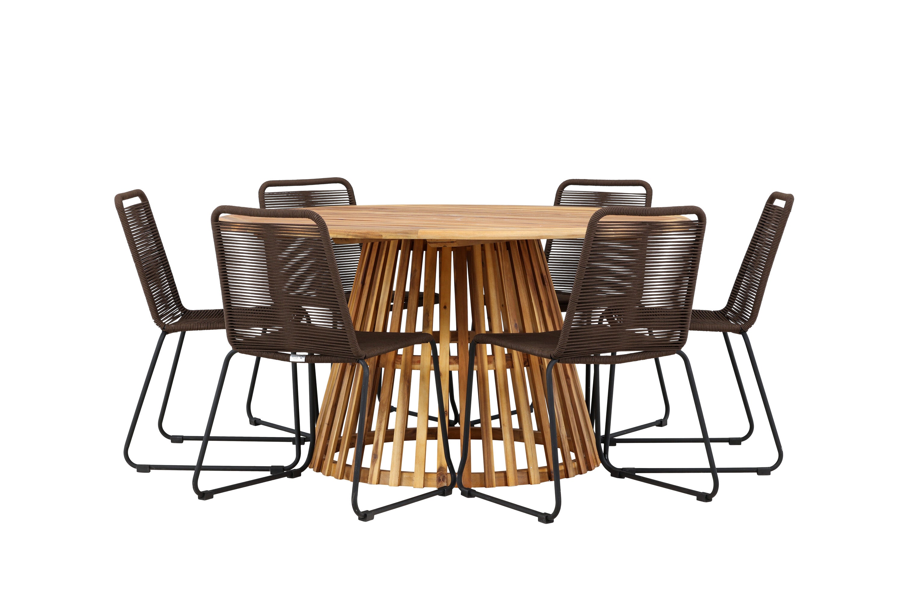 Jídelní stůl Tucumán - Akácie ø120 +Lindos Jídelní židle Aluminium - Černá / _6