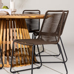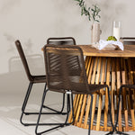 Židle Lindos jsou vyrobeny z hliníku, díky čemuž mají pevnou konstrukci vhodnou pro venkovní použití. Elegantní černá barva židlí dodává vašemu venkovnímu jídelnímu prostoru sofistikovaný nádech a stylově doplňuje přírodní barvu dřeva stolu.