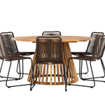 Objevte perfektní jídelní set pro váš venkovní prostor s naším elegantním stolem Tucumán a stylovými židlemi Lindos. Stůl Tucumán s impozantním průměrem 120 cm nabízí dostatek prostoru pro rodinné večeře a příjemná posezení pod širým nebem.