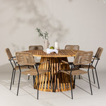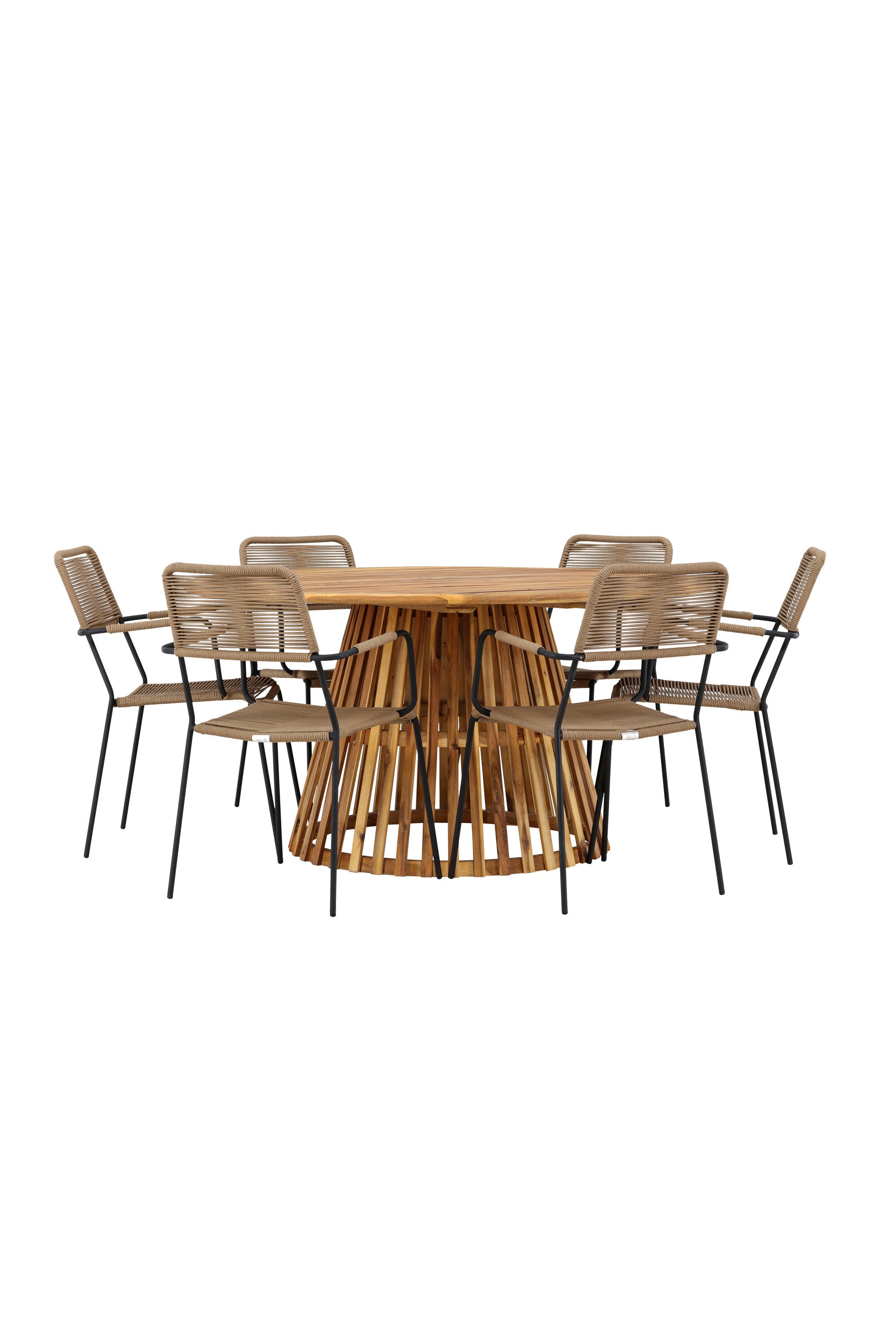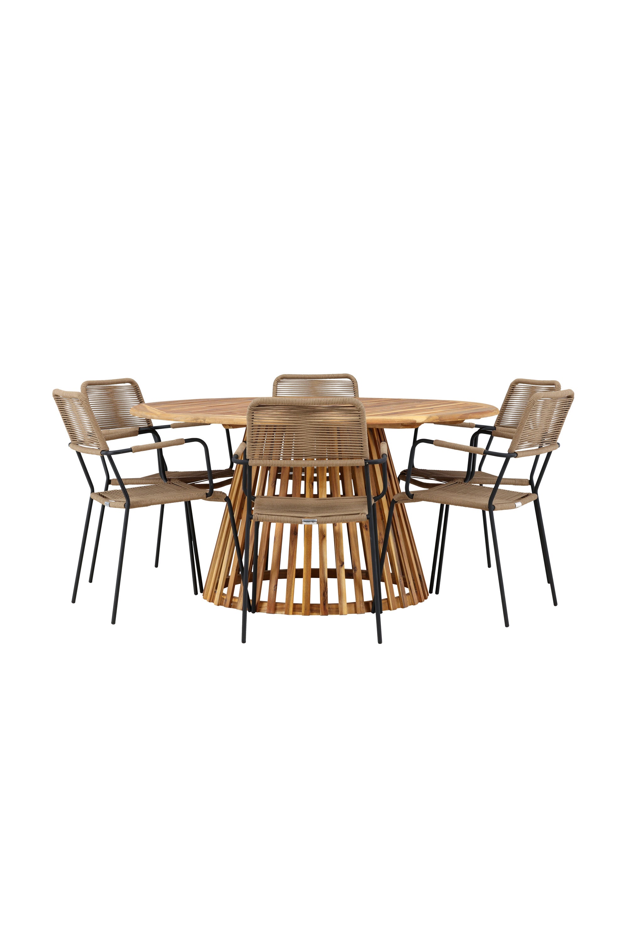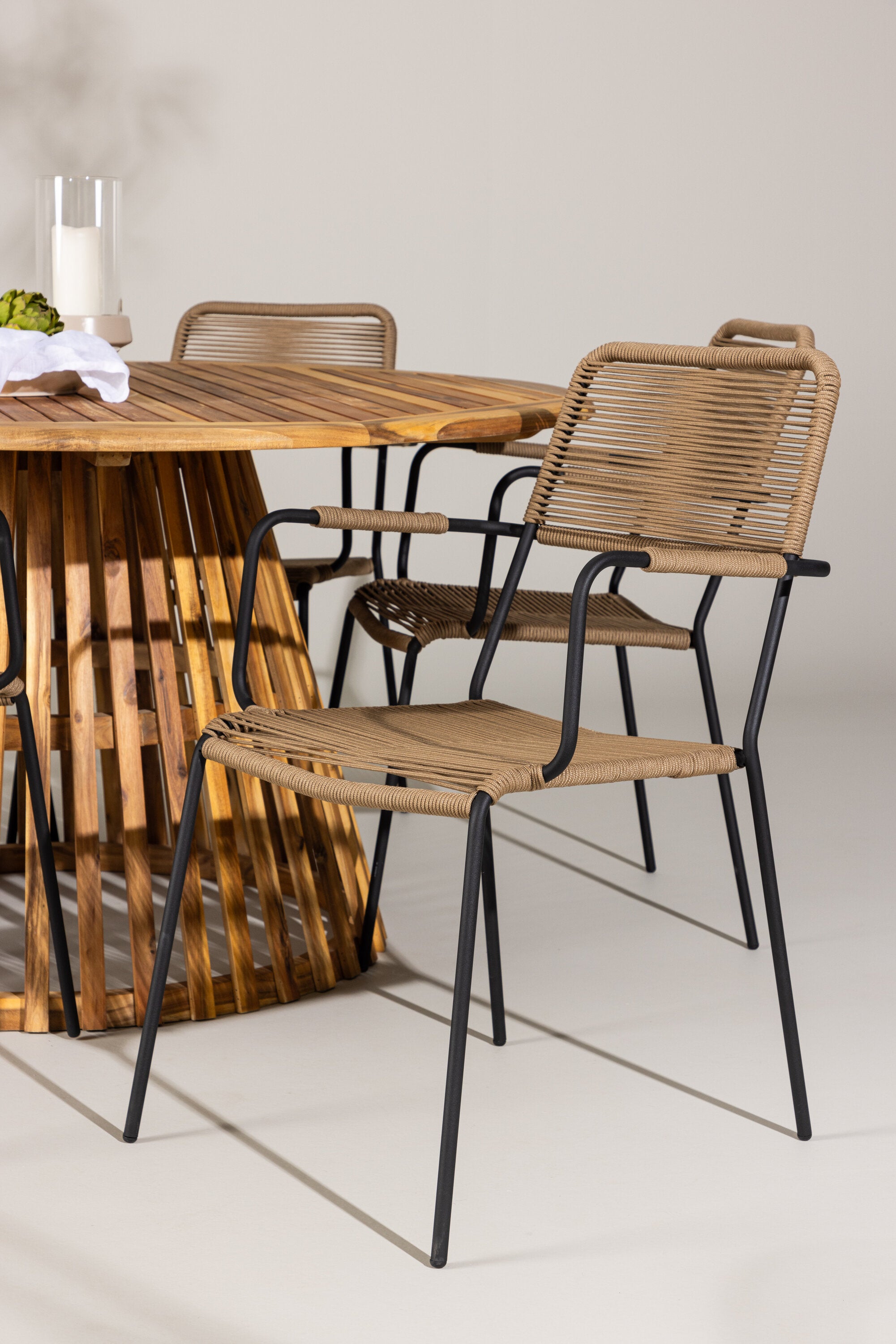 Objevte perfektní jídelní set pro váš venkovní prostor s naším elegantním stolem Tucumán a stylovými židlemi Lindos. Stůl Tucumán s impozantním průměrem 120 cm nabízí dostatek prostoru pro rodinné večeře a příjemná setkání pod širým nebem.
