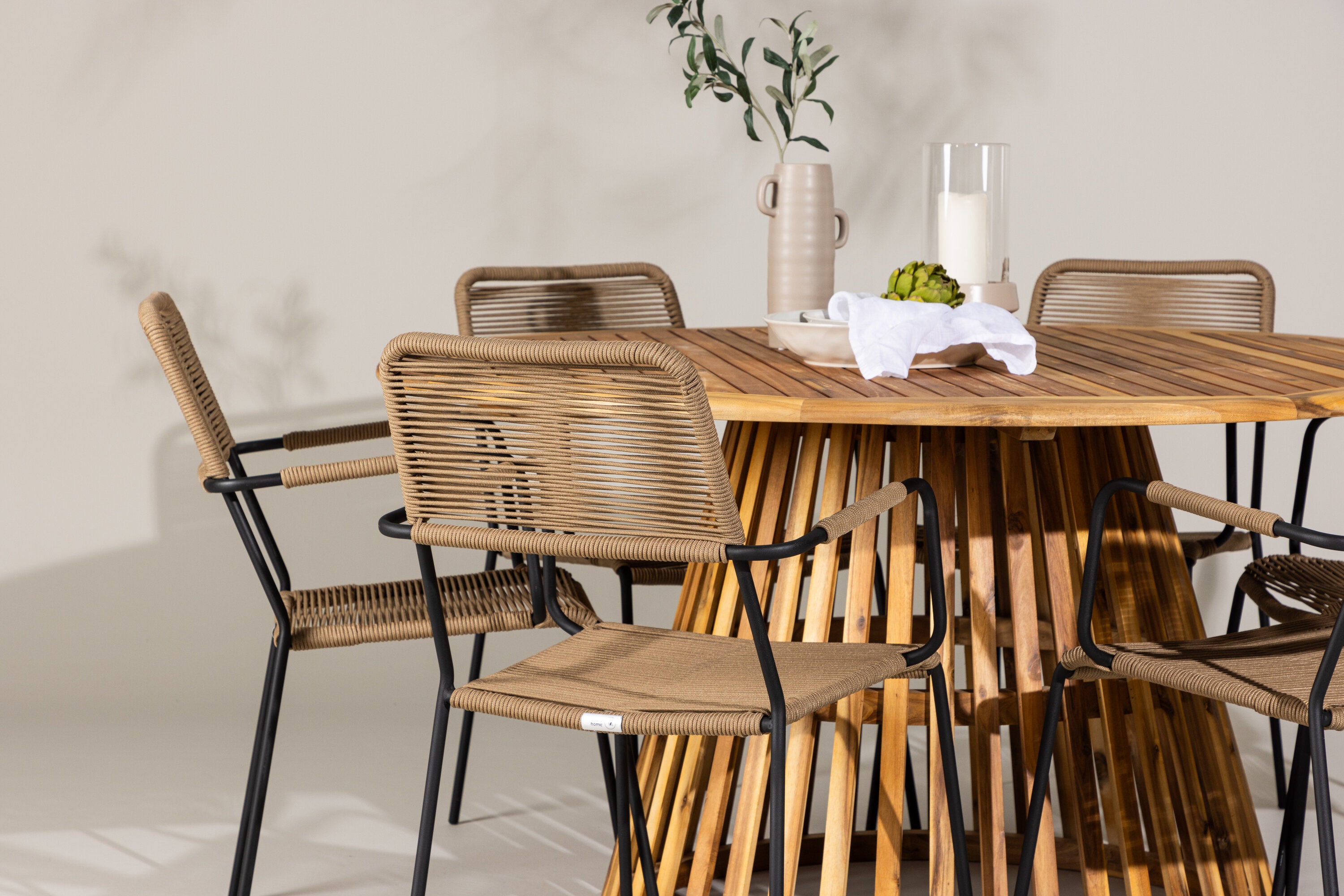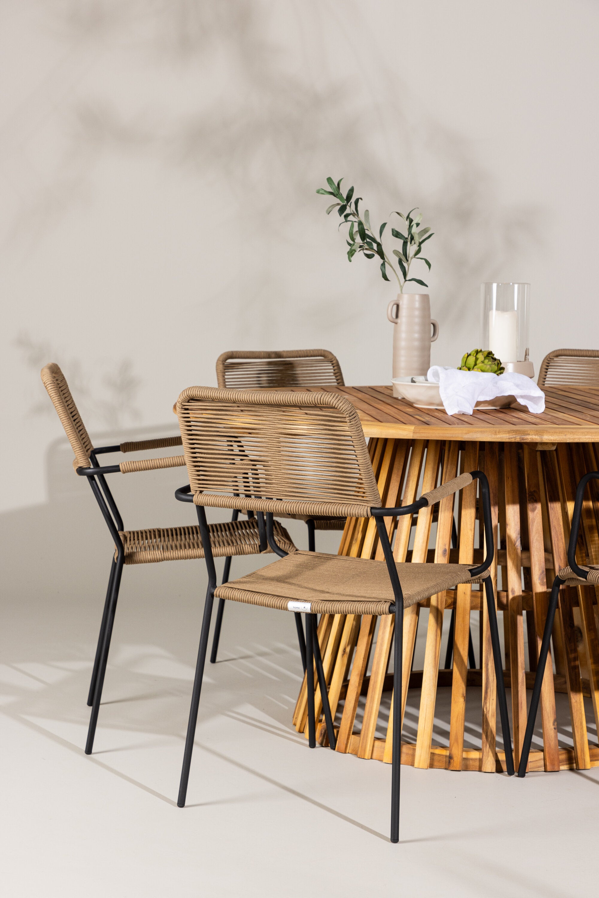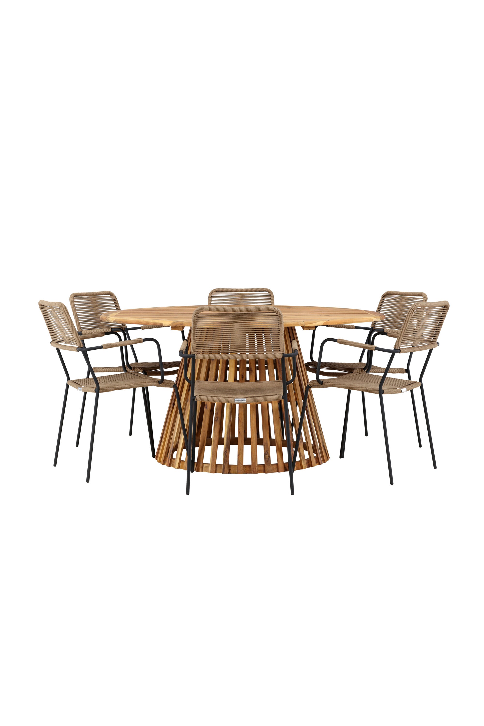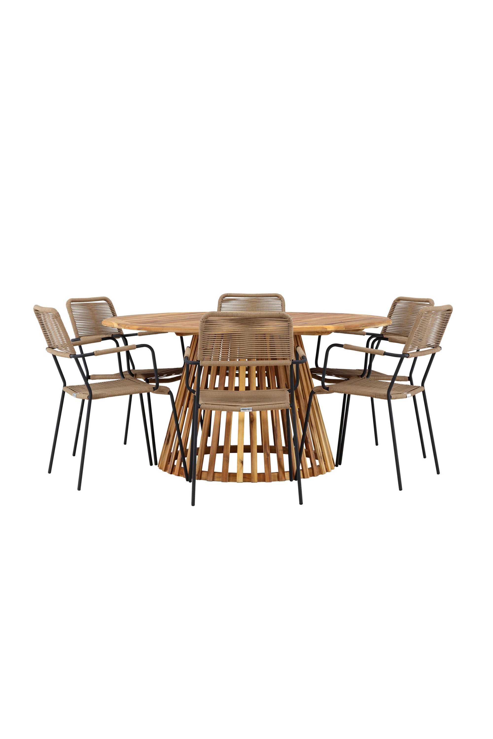 Objevte perfektní jídelní set pro váš venkovní prostor s naším elegantním stolem Tucumán a stylovými židlemi Lindos. Stůl Tucumán s impozantním průměrem 120 cm nabízí dostatek prostoru pro rodinné večeře a příjemná setkání pod širým nebem.