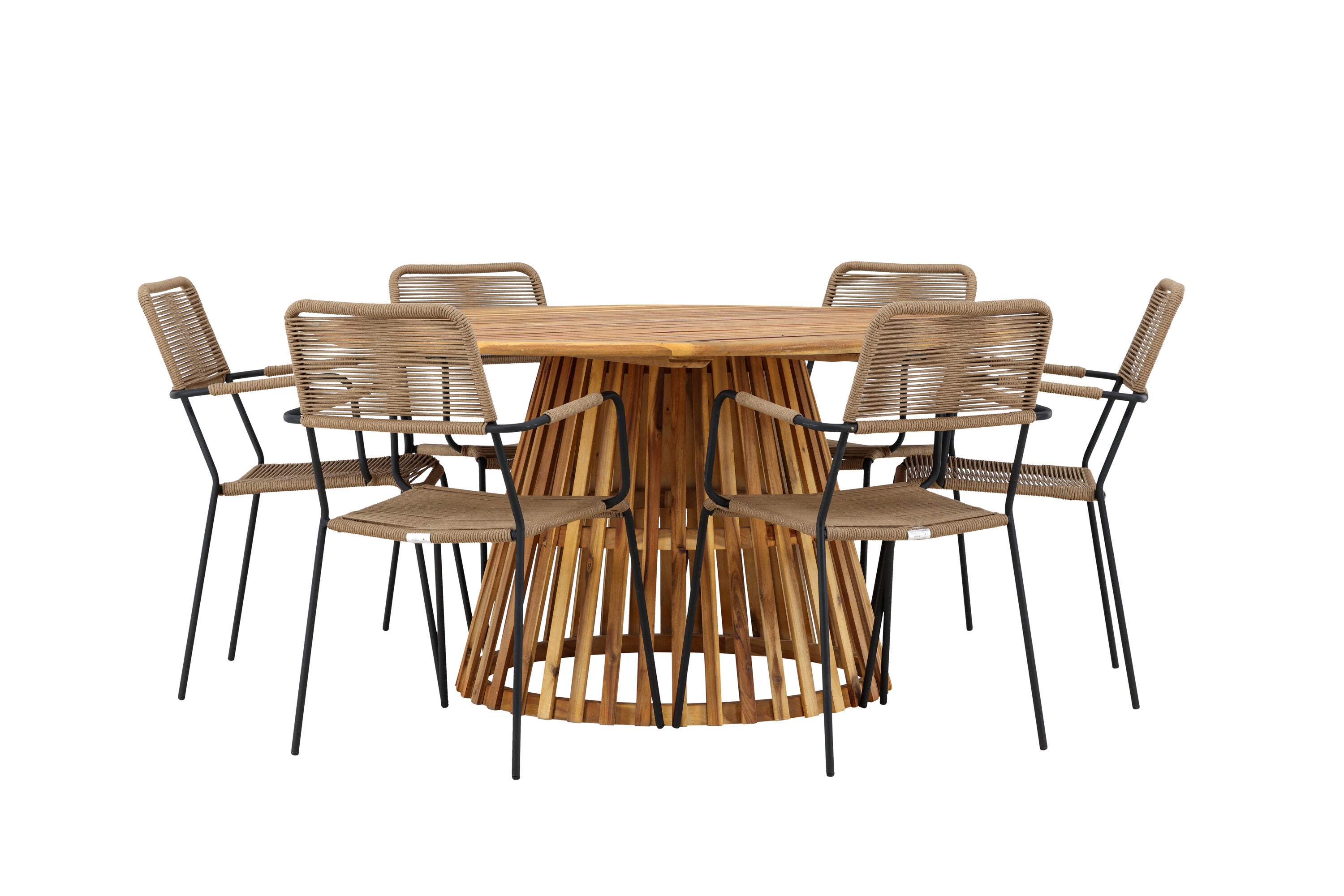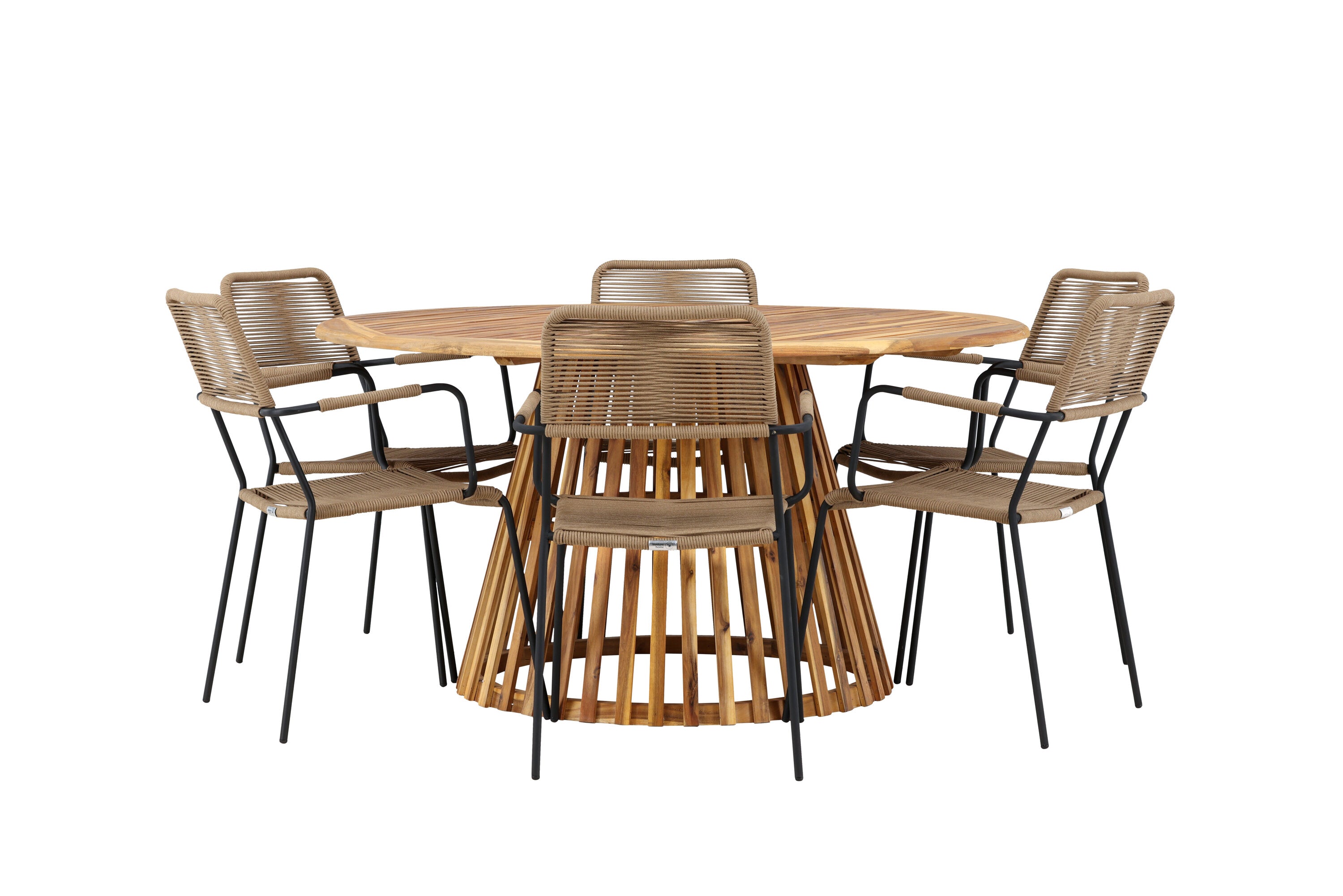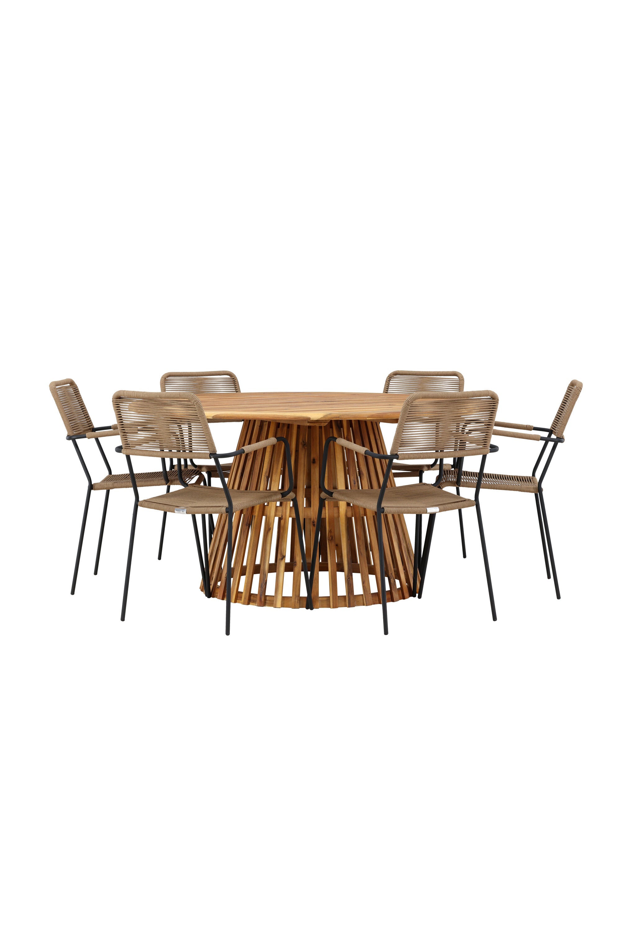 Jídelní stůl Tucumán - Akácie ø120 +Lindos - Křeslo - Černá Alu / Latte Latte _6