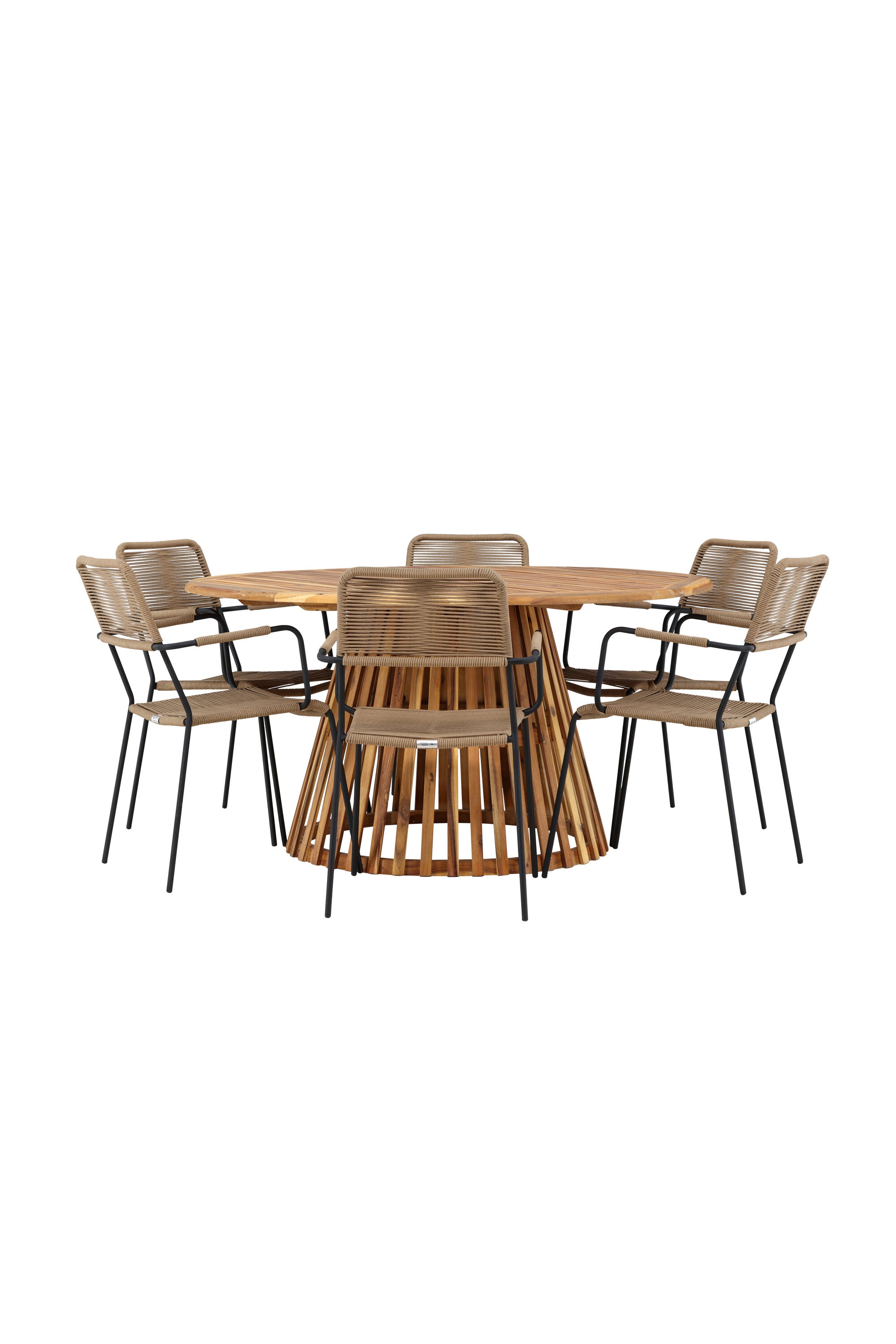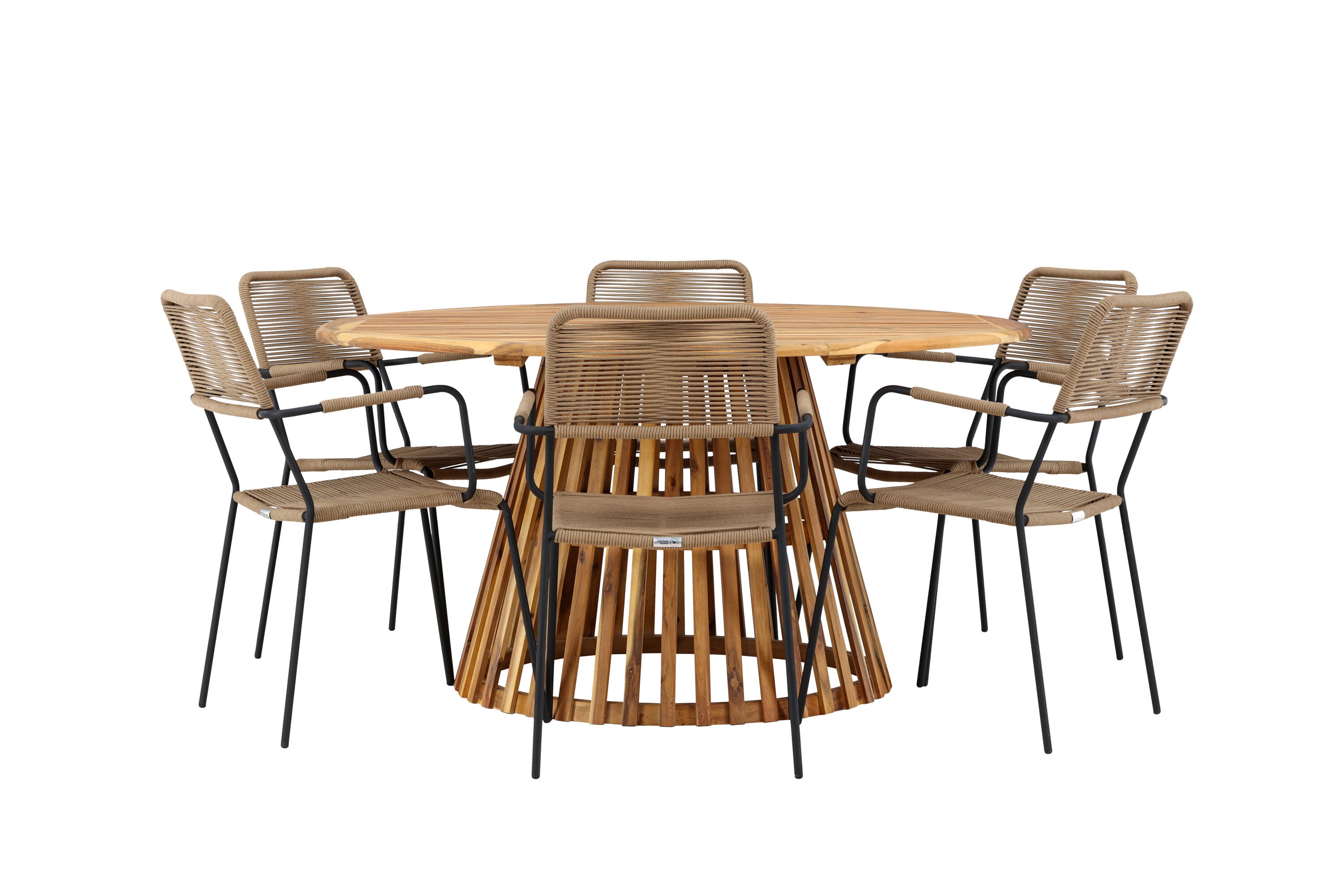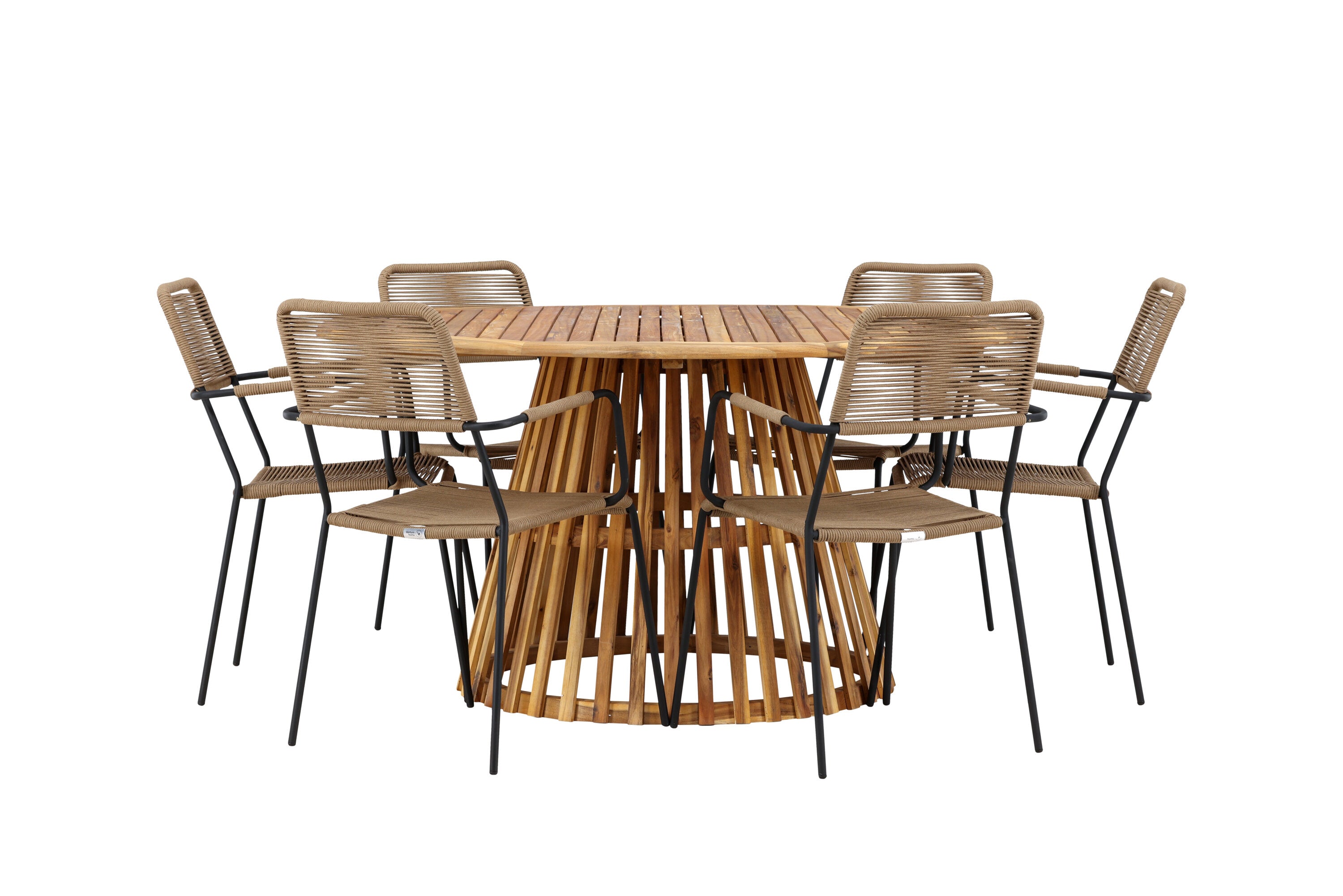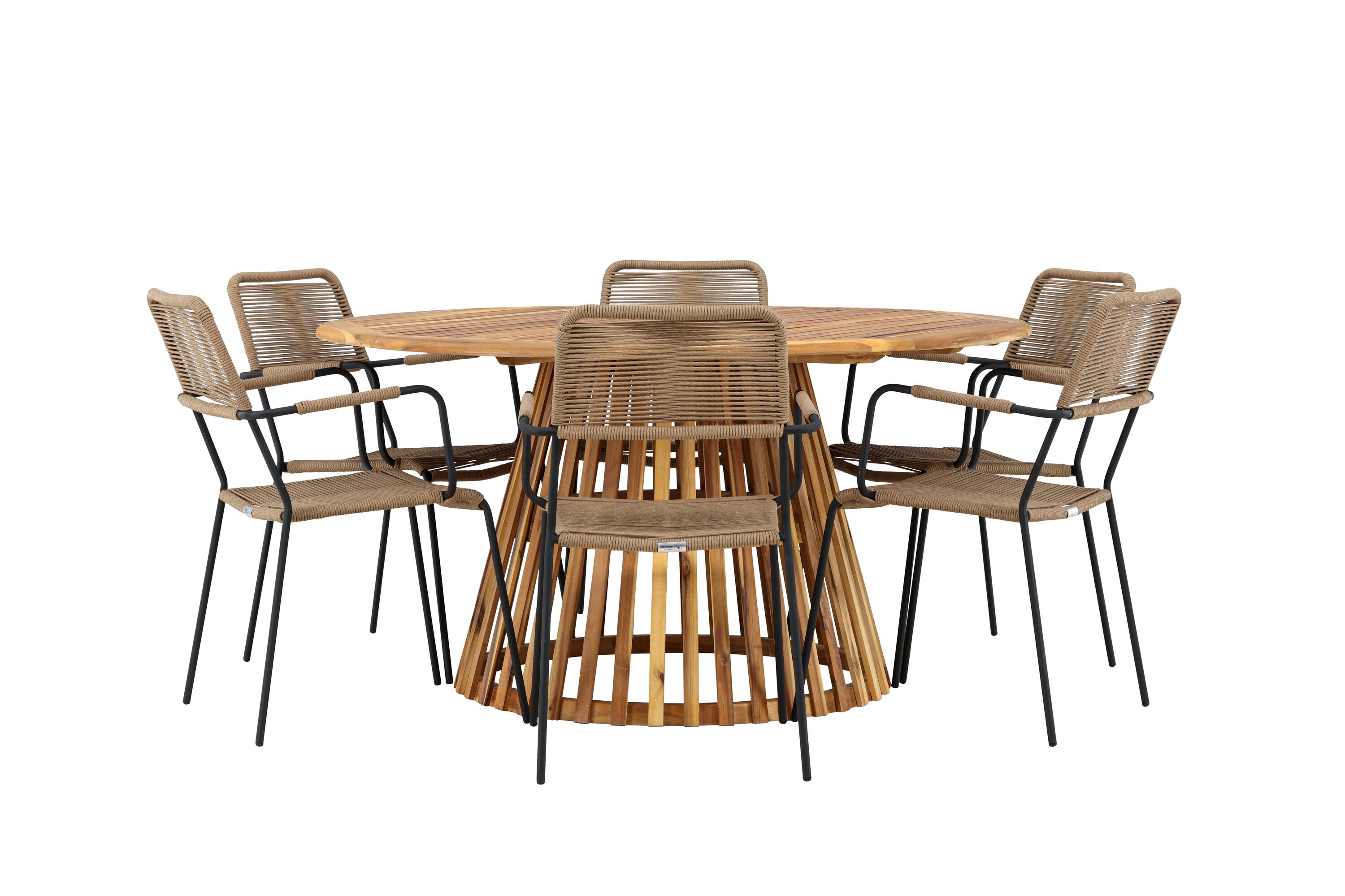 Jídelní stůl Tucumán - Akácie ø120 +Lindos - Křeslo - Černá Alu / Latte Latte _6