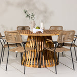 Tento jídelní set je dodáván se šesti pohodlnými židlemi, které jsou ideální pro relaxační jídla a příjemné venkovní posezení. S jídelním setem Tucumán a Lindos můžete vytvořit příjemné a stylové venkovní prostředí, kde se vaše rodina a hosté budou moci naplno vyřádit.