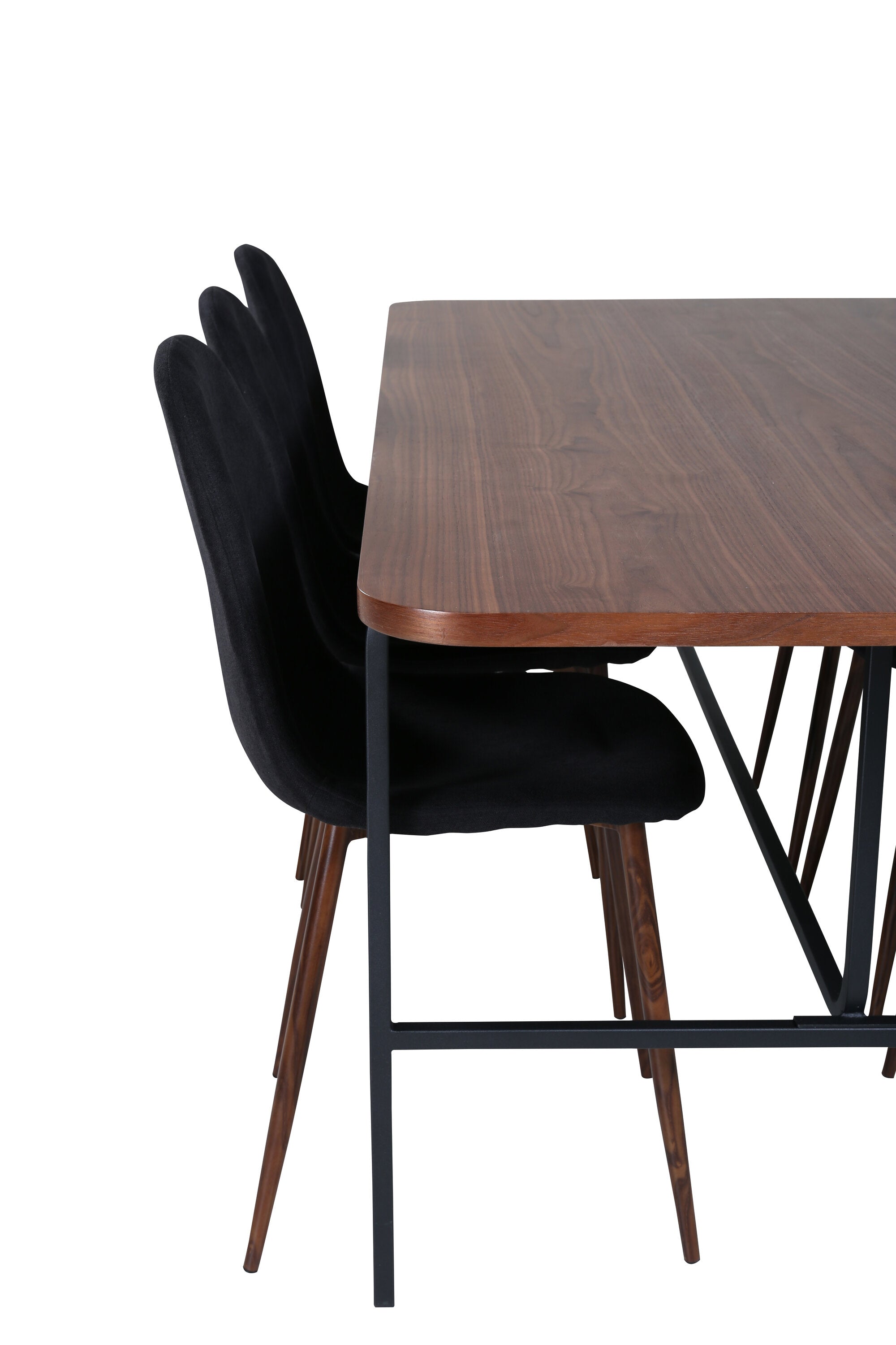 Jídelní stůl Uno, černá ořechová dýha+polární jídelní židle, ořechové nohy, černá látka_6