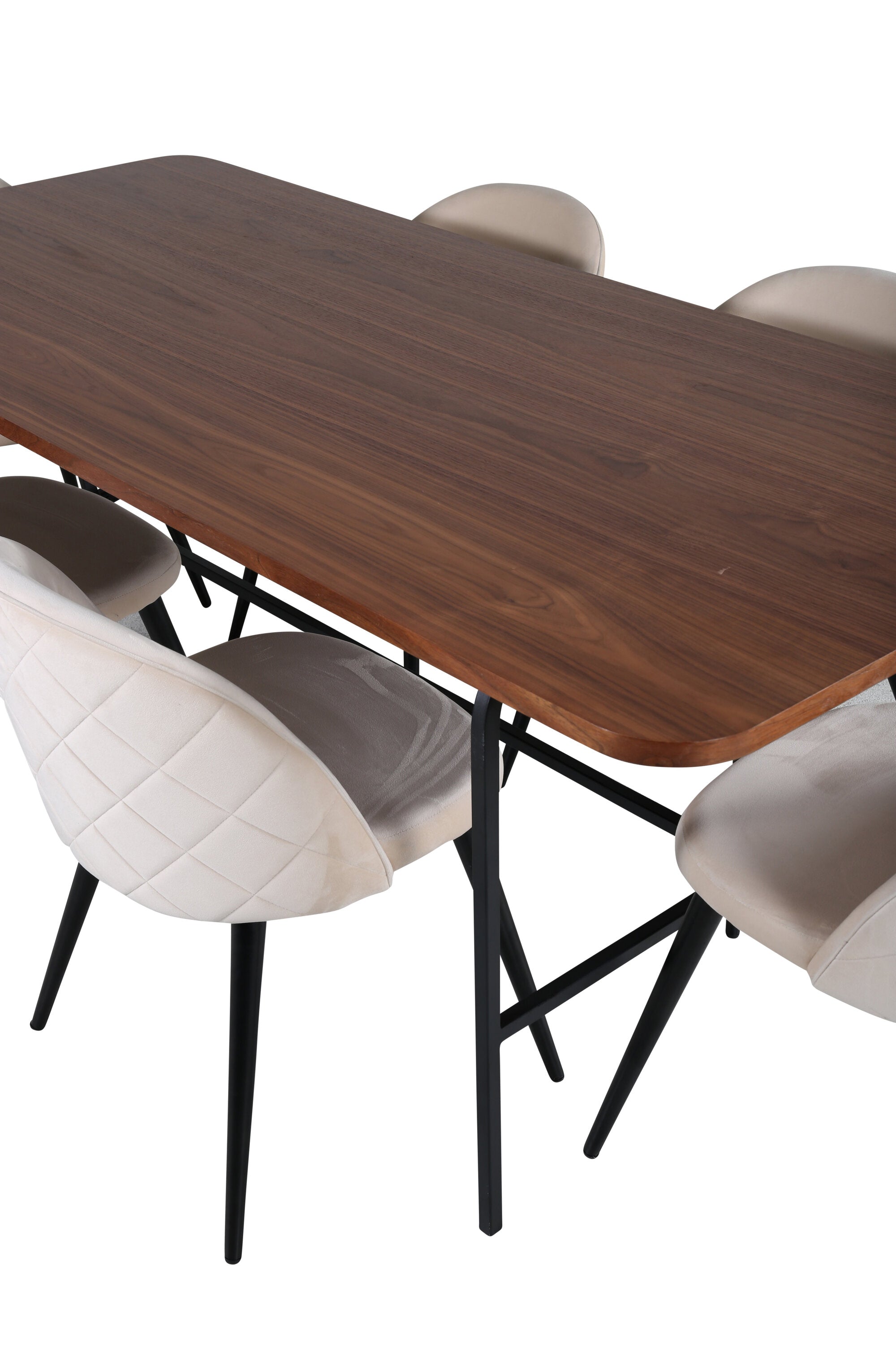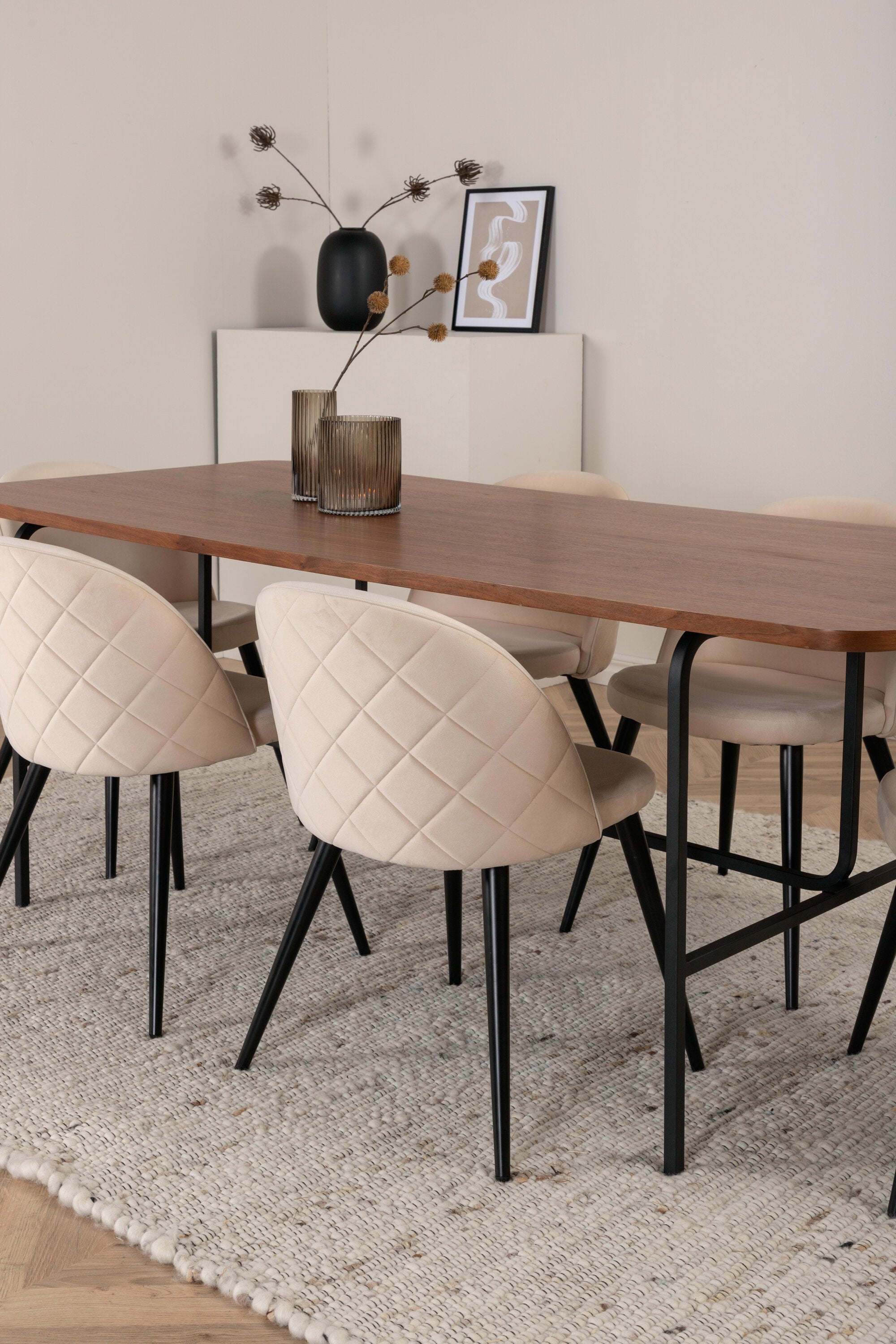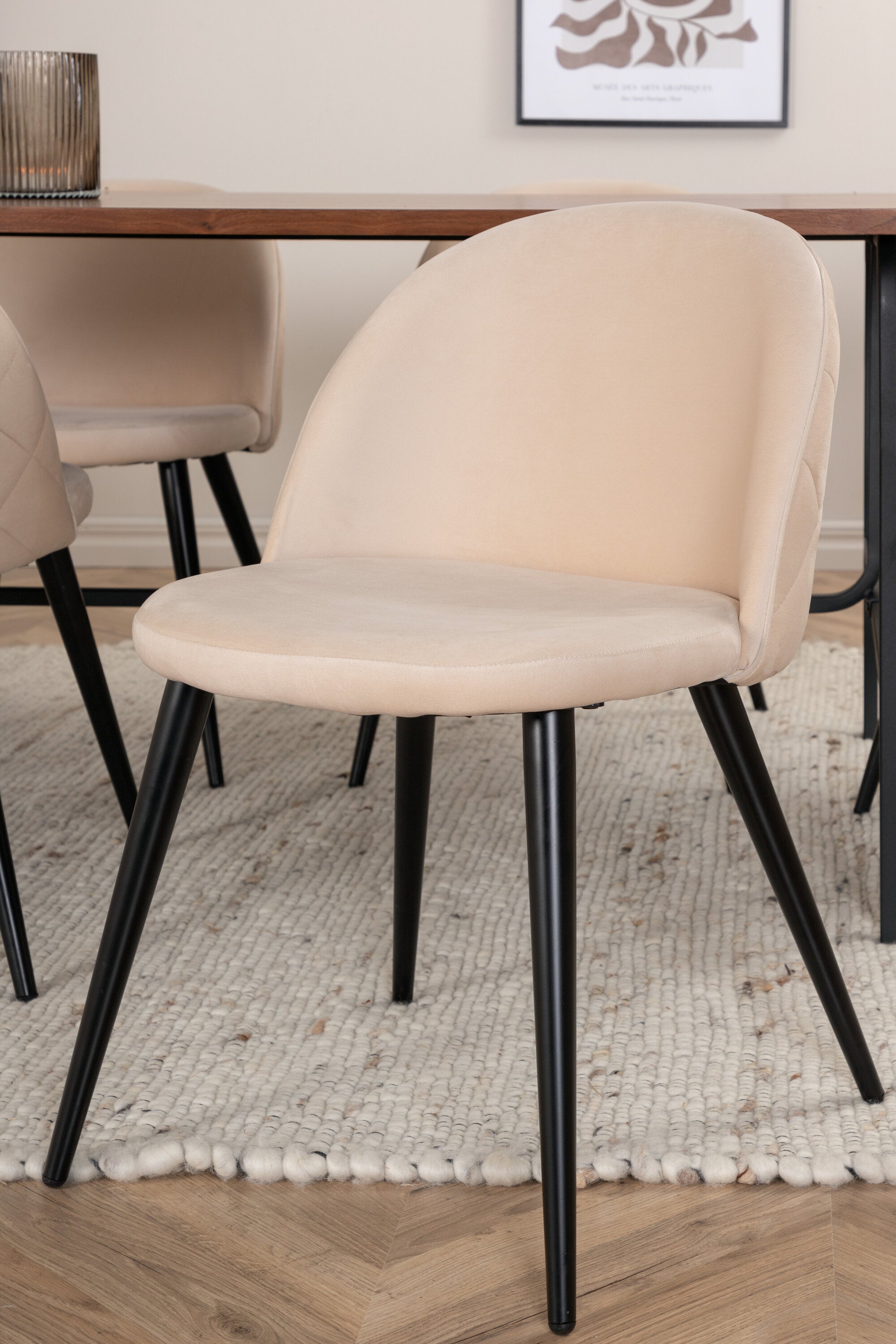 Jídelní stůl Uno - Černá / Ořechová dýha+Sametové stehy Židle - Černá / Béžová Velvet_6