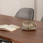 Jídelní stůl Uno - černá / ořechová dýha + židle Emma - černá / černá a světle šedá Černý samet vzadu Šedý samet vpředu_6