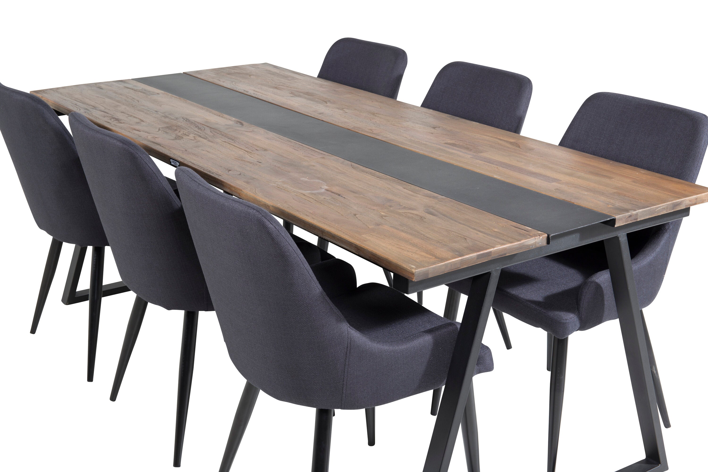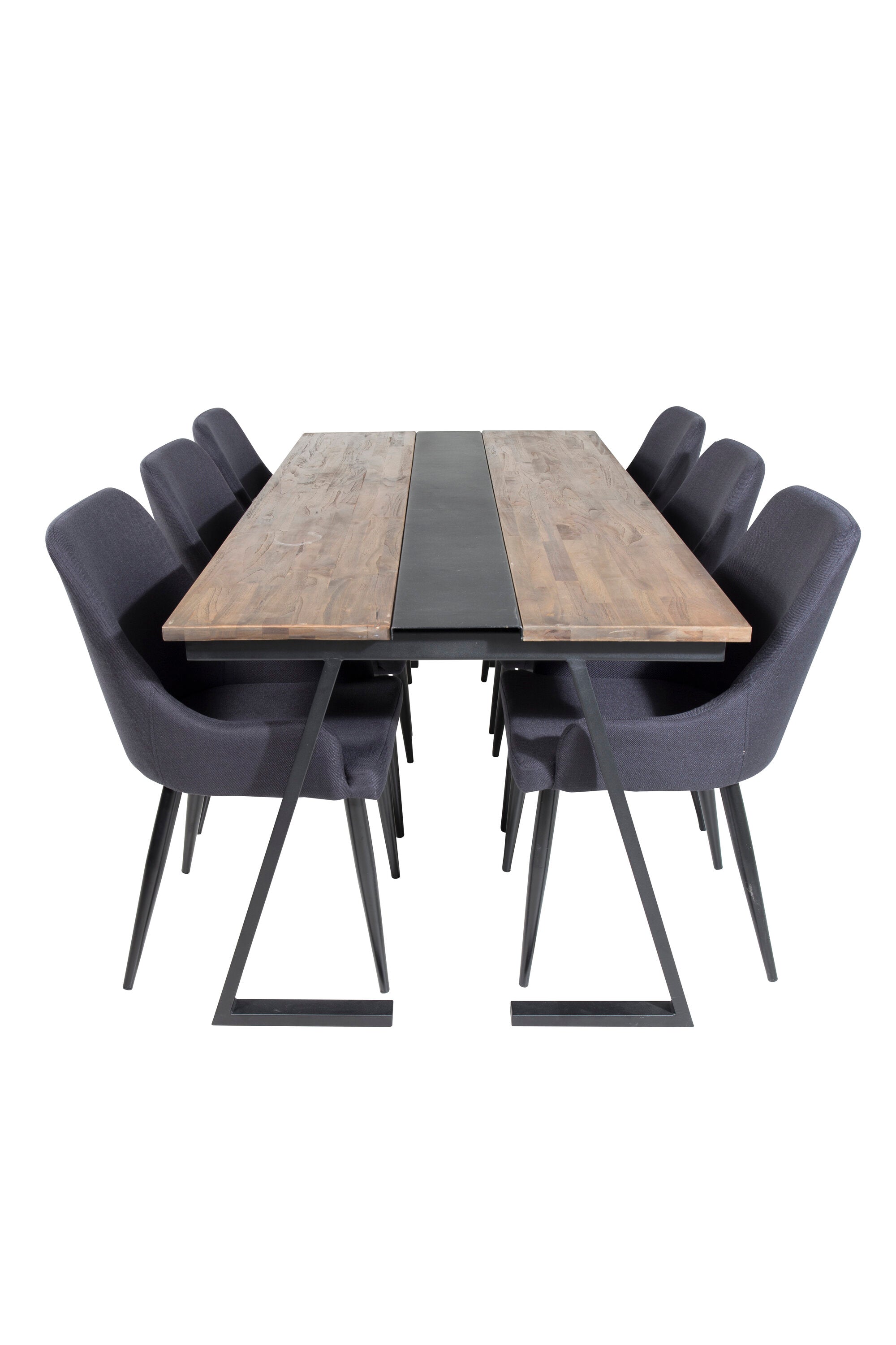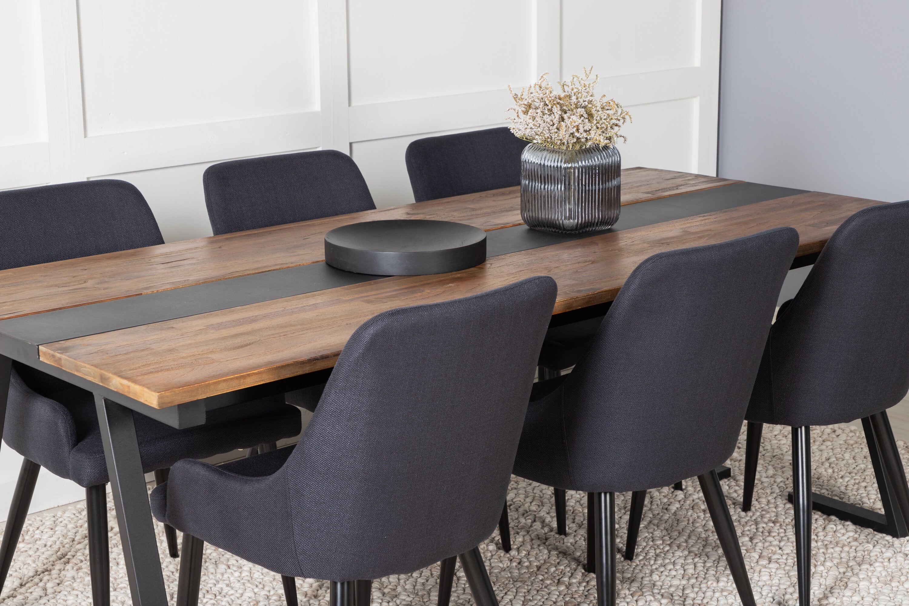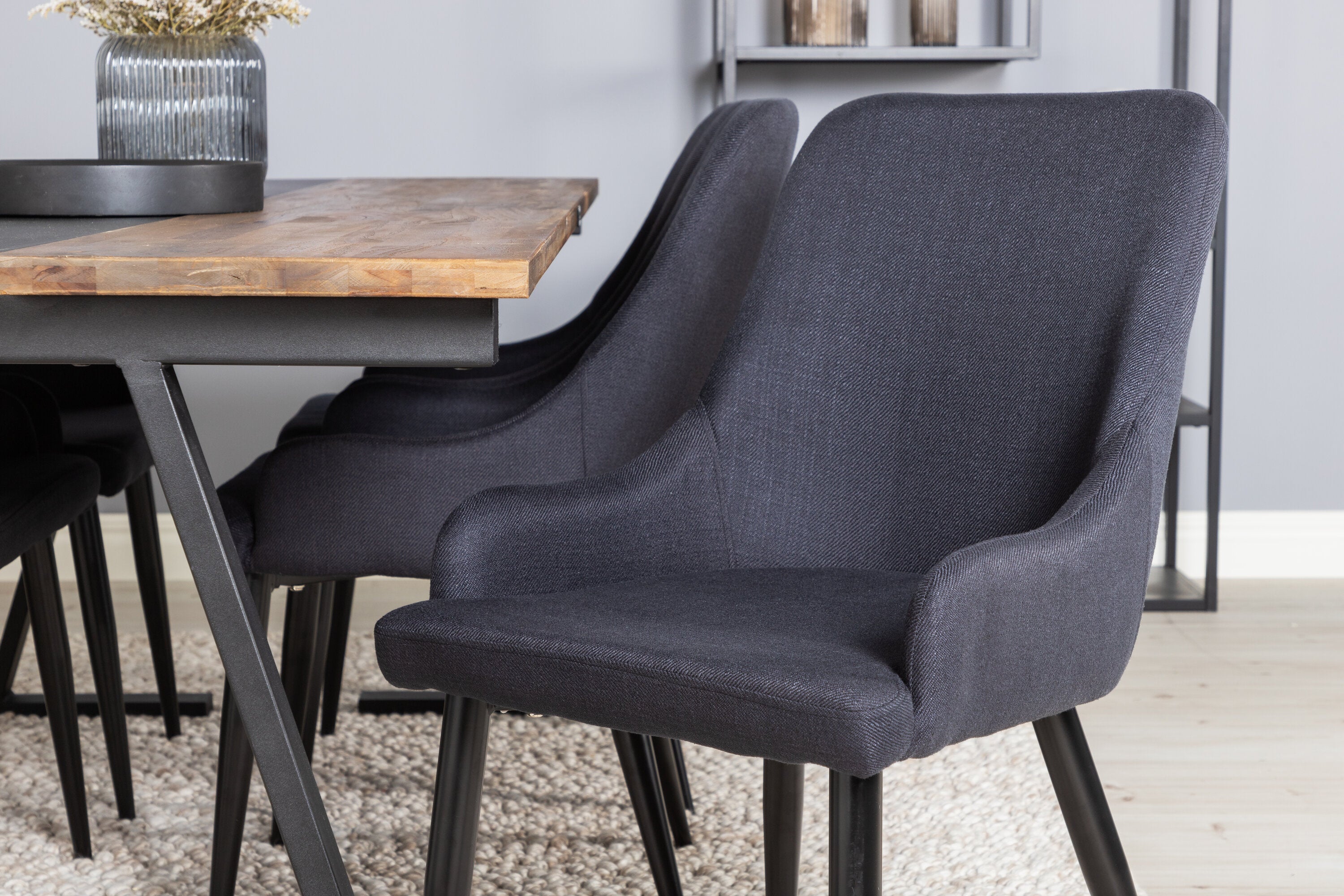 Jídelní stůl v Jakartě. 200*90*H75 - Tmavý týk / Černá+Plaza Jídelní židle - Černé nohy - Black Fabric_6