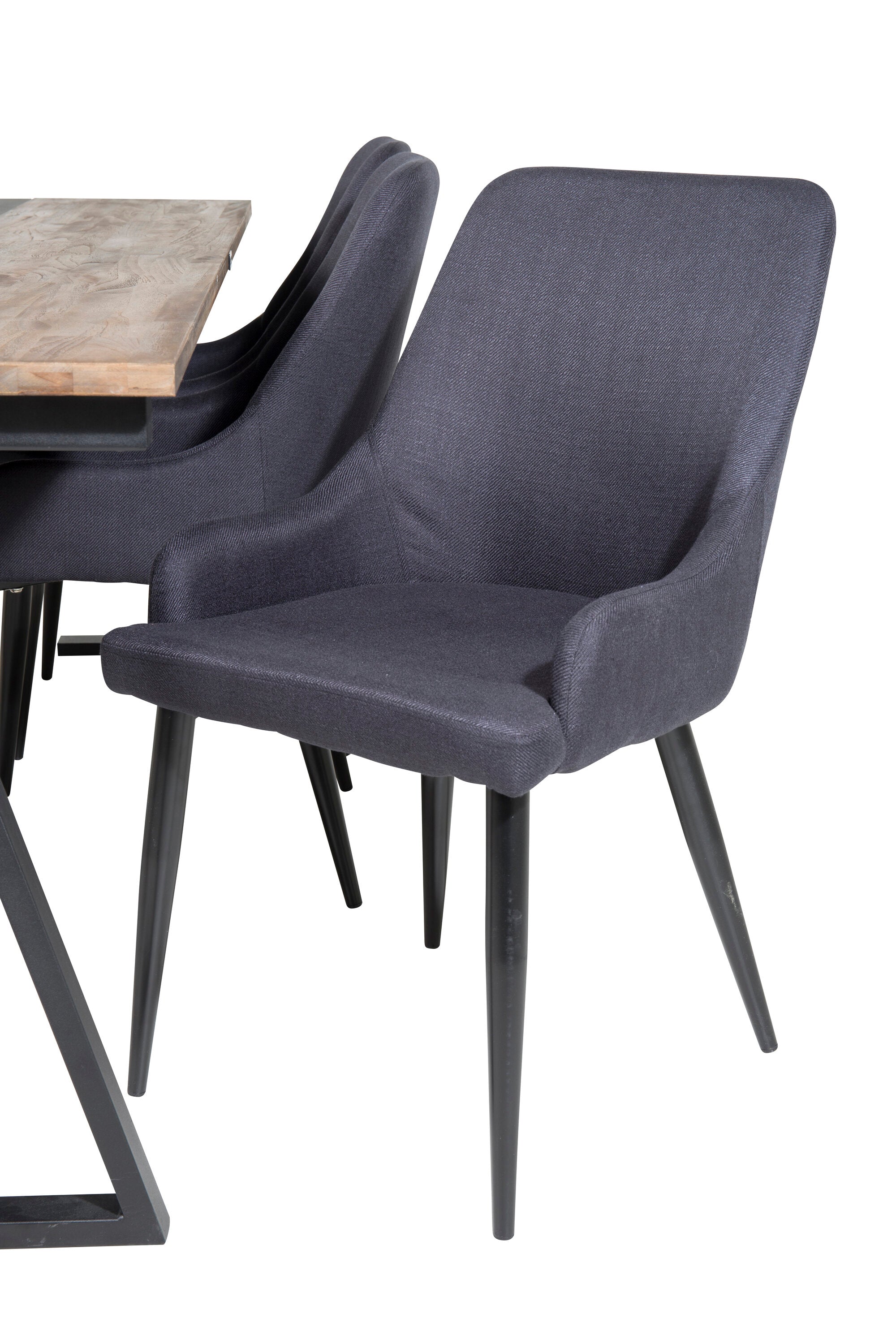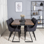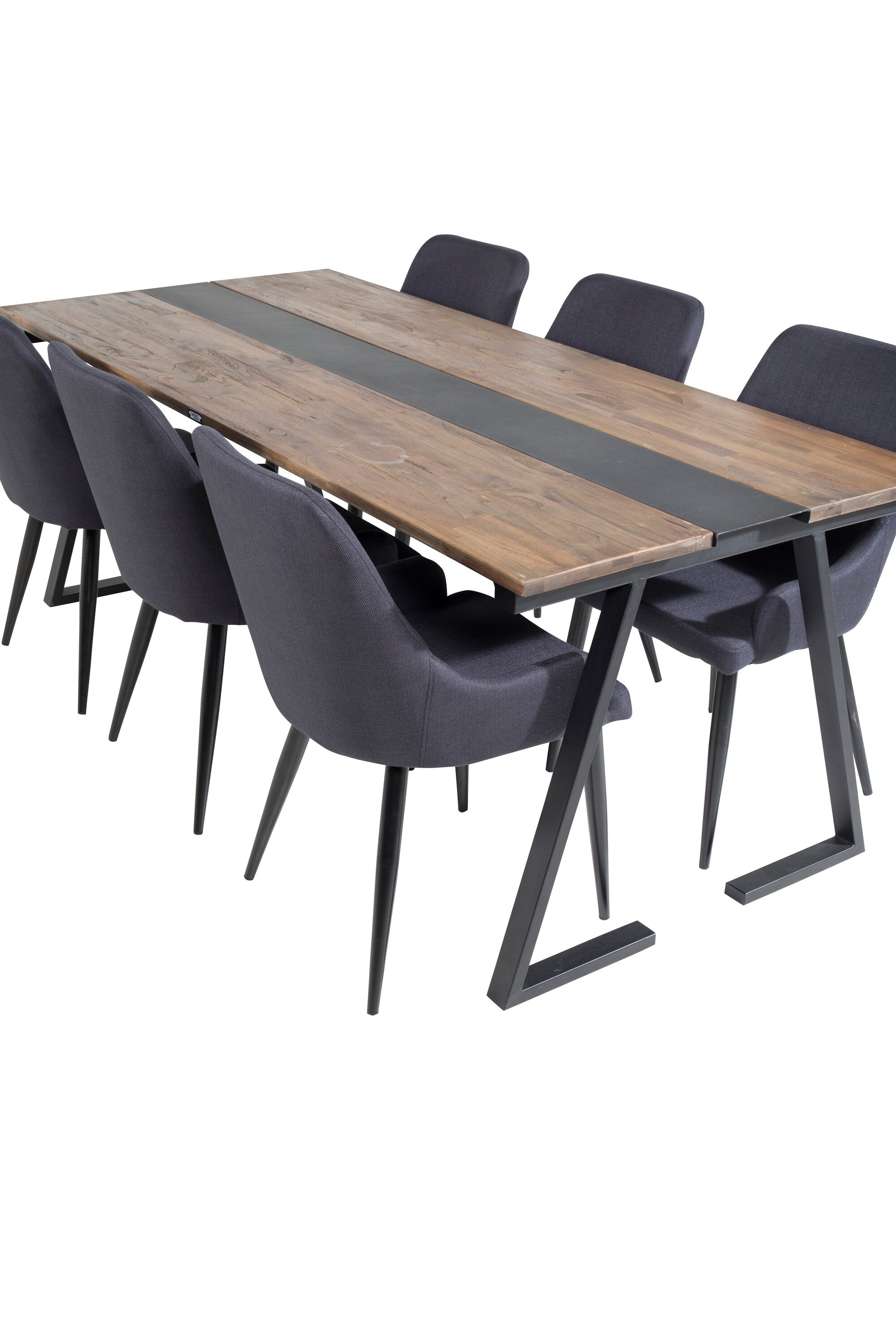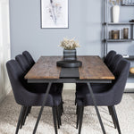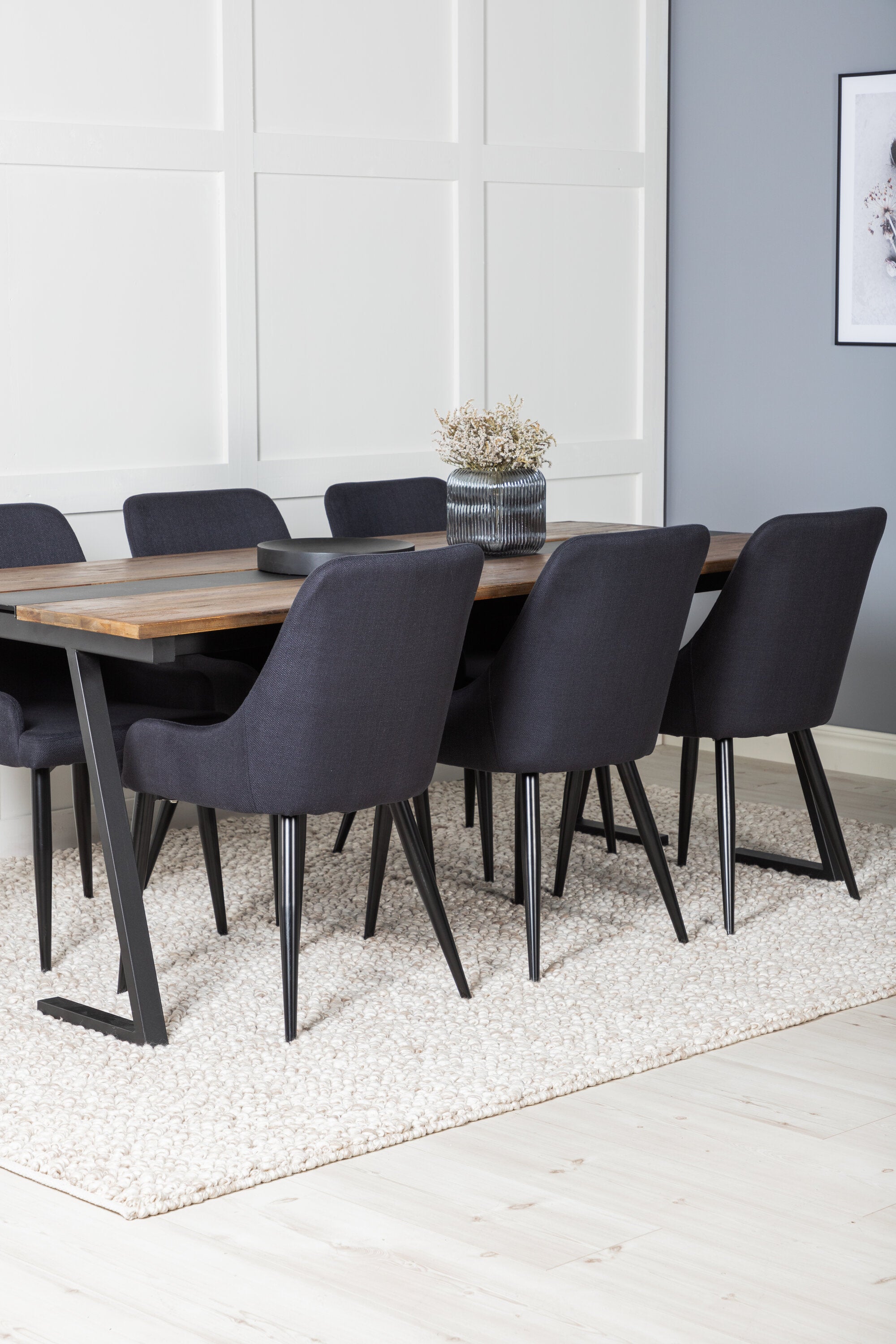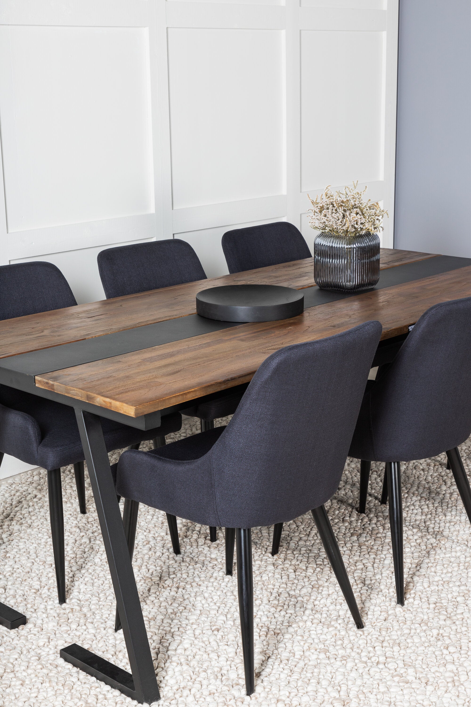 Jídelní stůl v Jakartě. 200*90*H75 - Tmavý týk / Černá+Plaza Jídelní židle - Černé nohy - Black Fabric_6