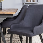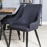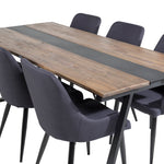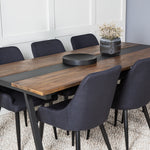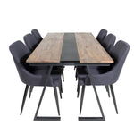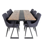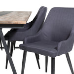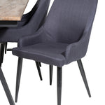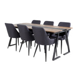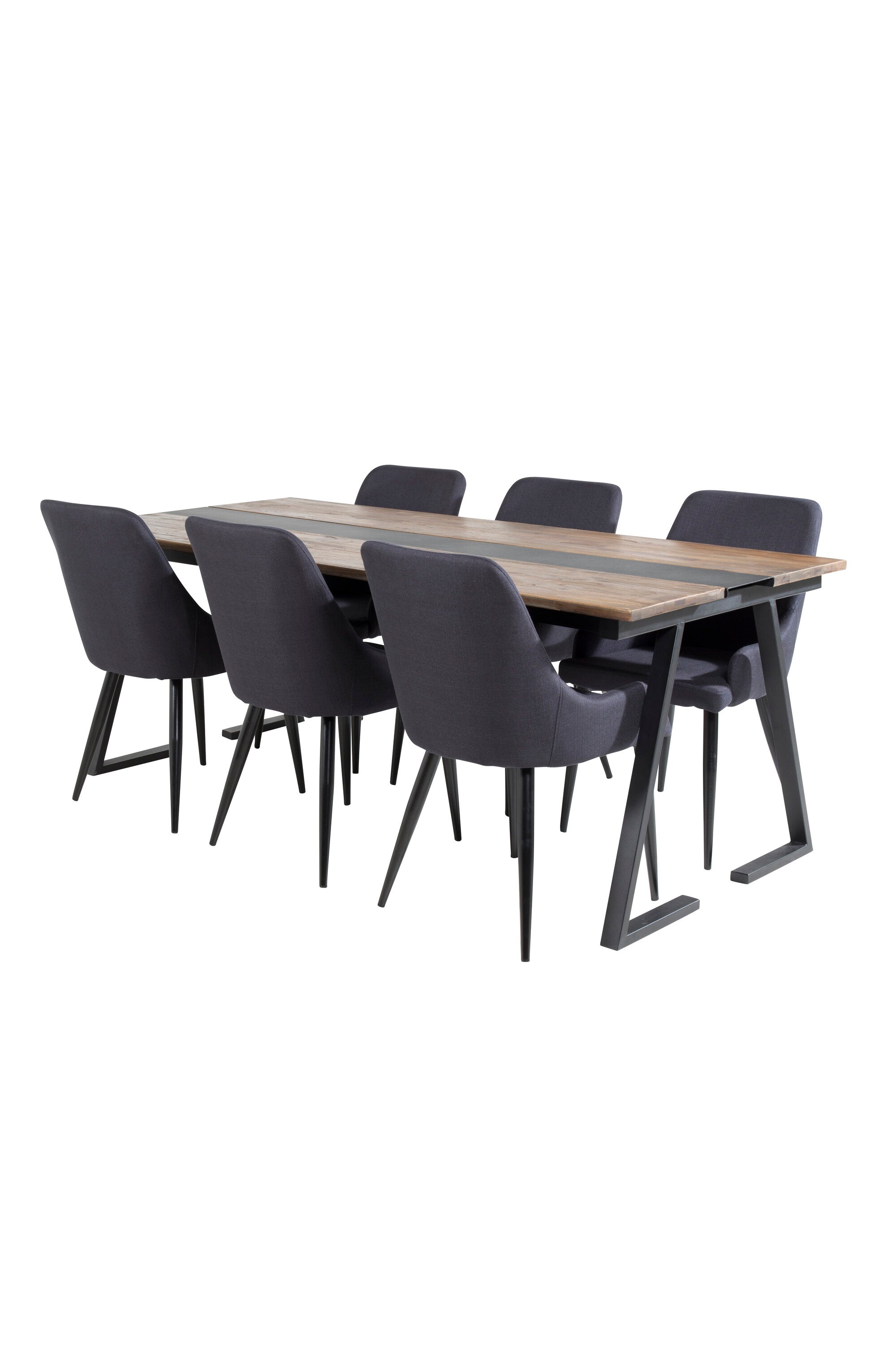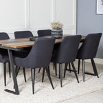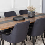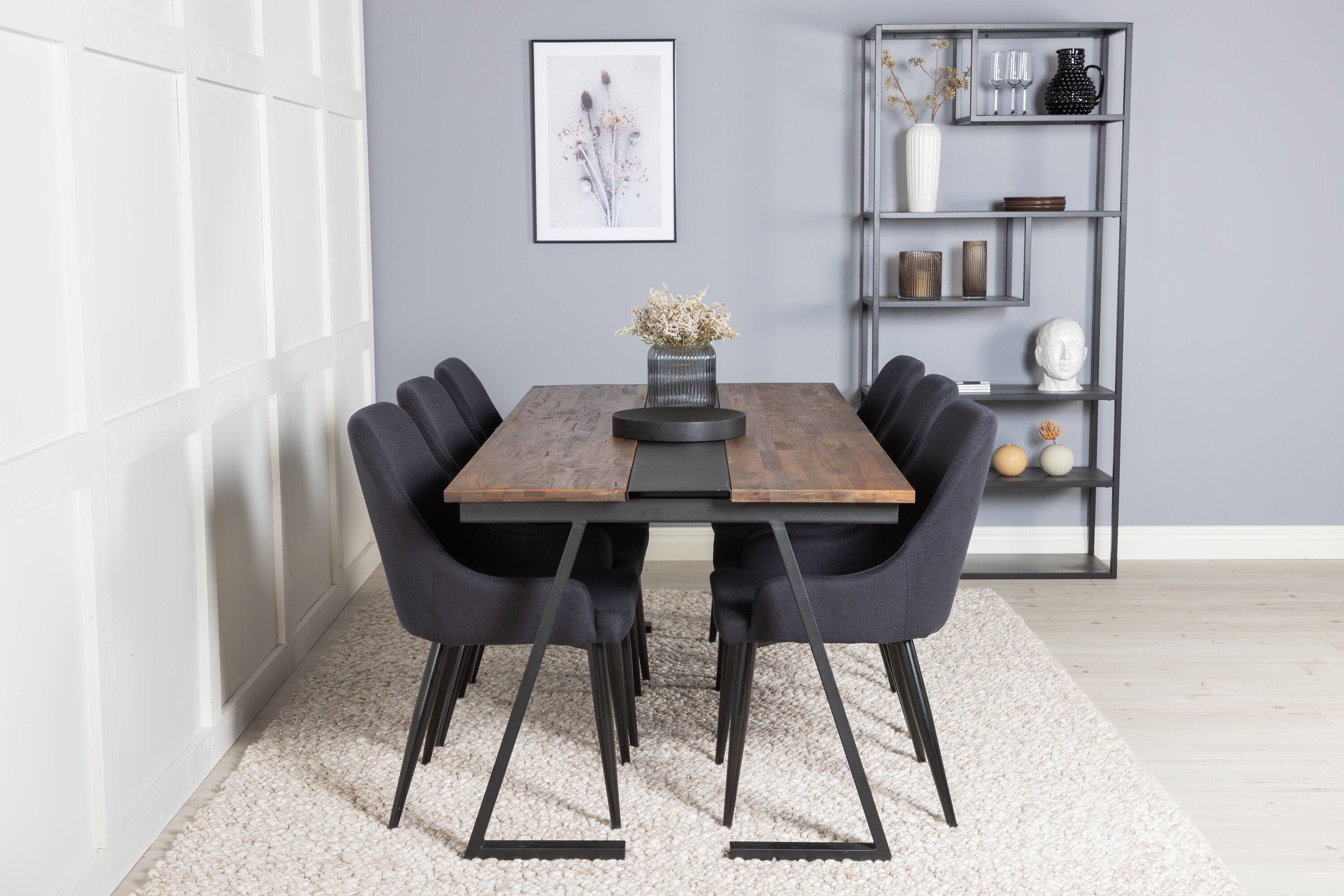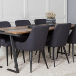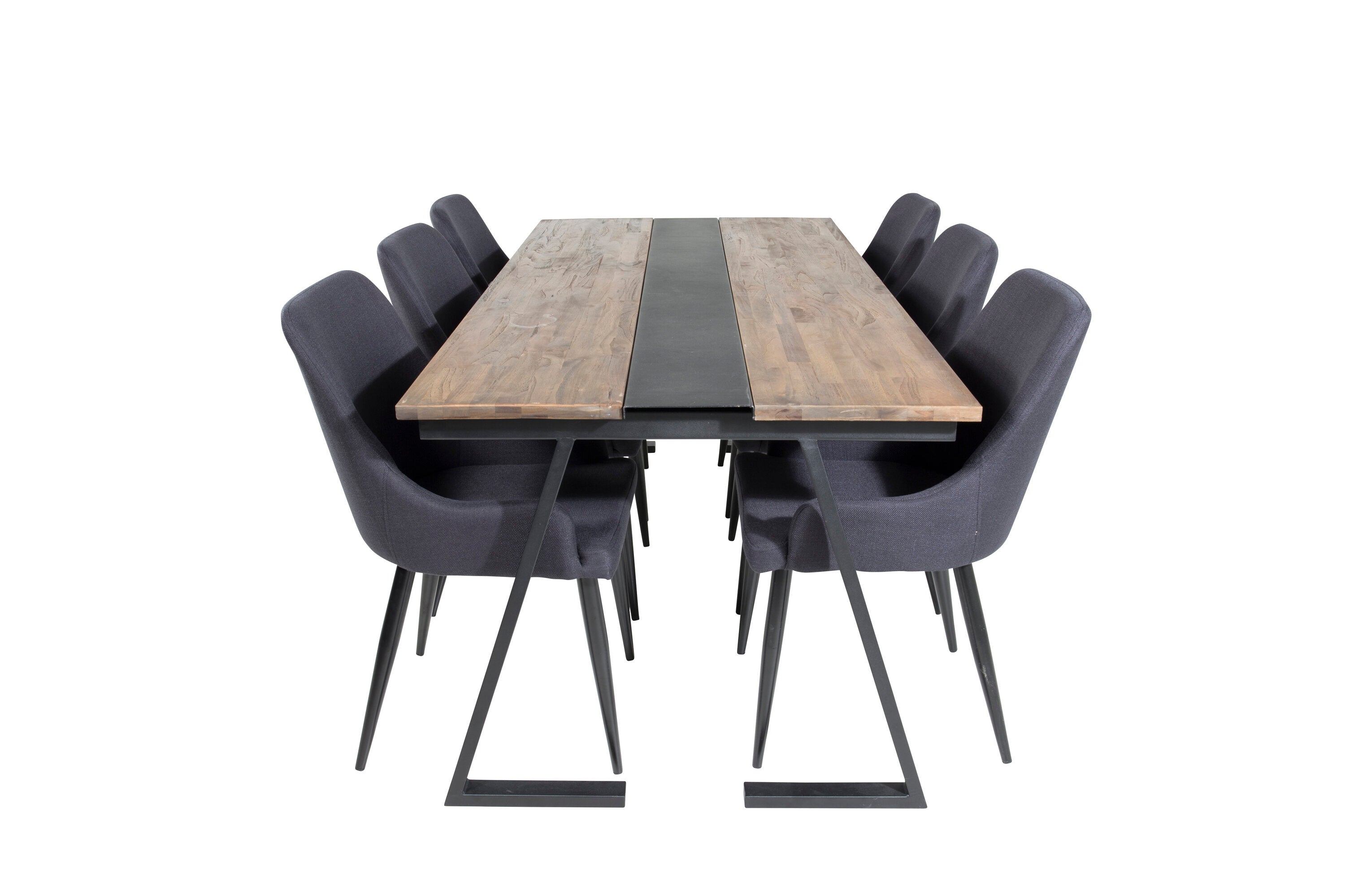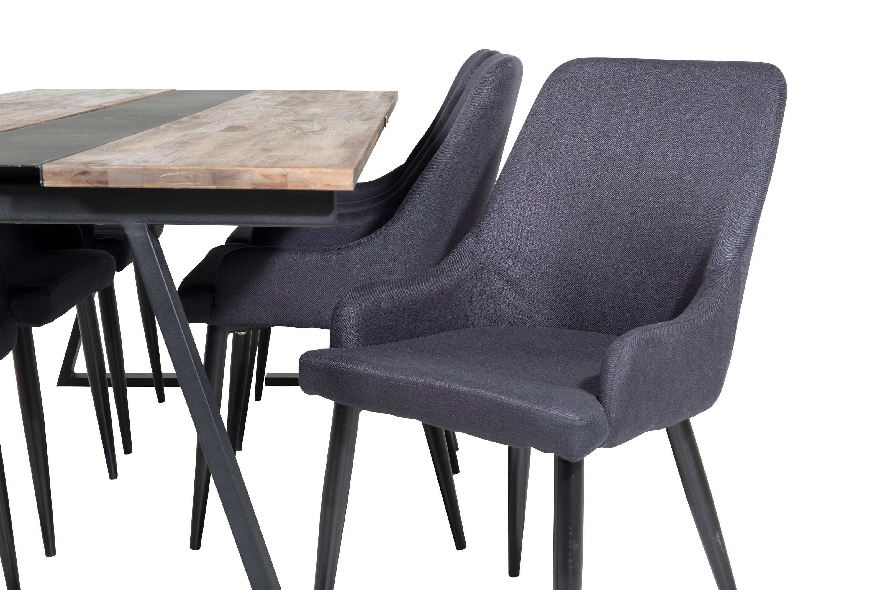 Jídelní stůl v Jakartě. 200*90*H75 - Tmavý týk / Černá+Plaza Jídelní židle - Černé nohy - Black Fabric_6