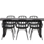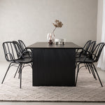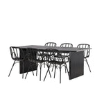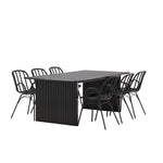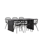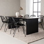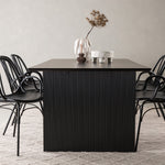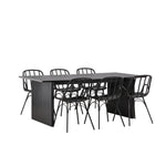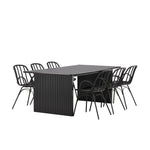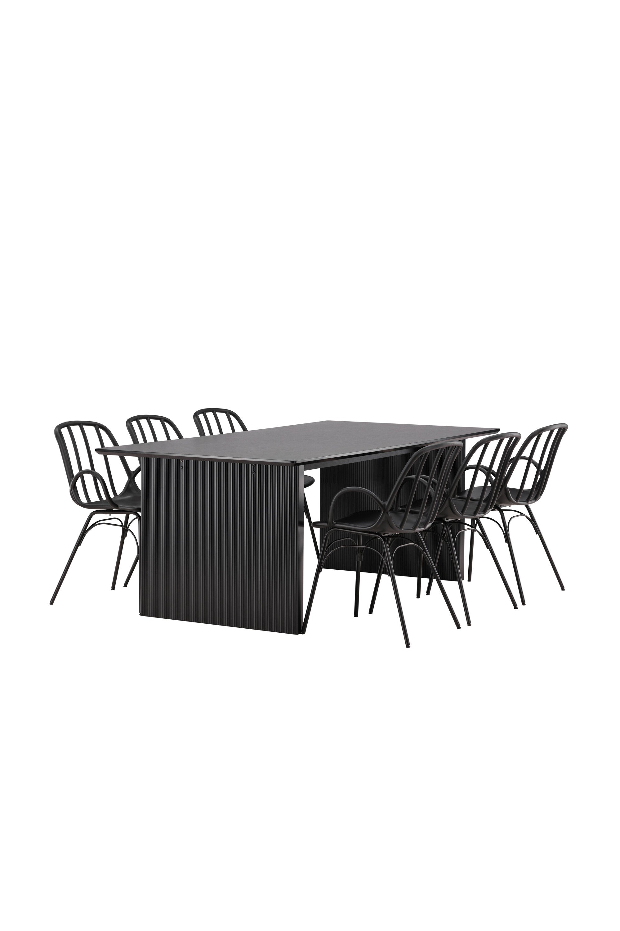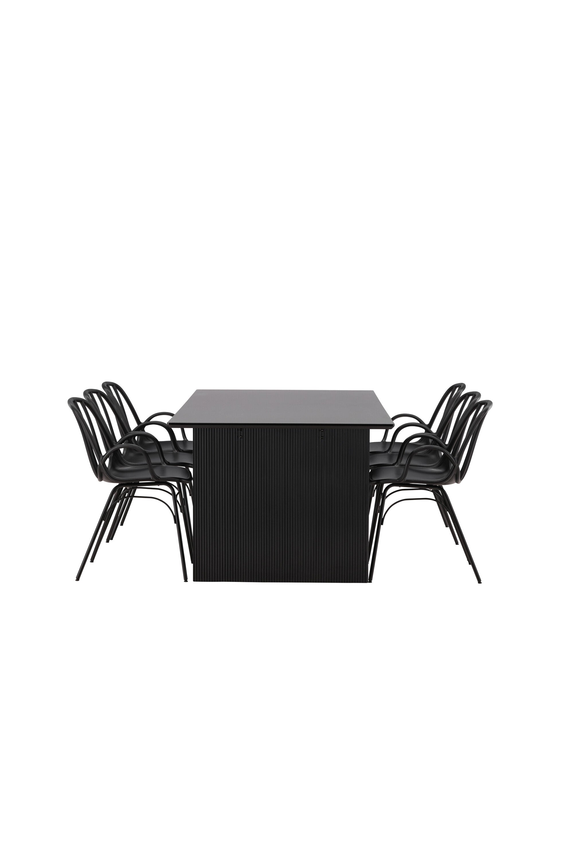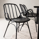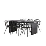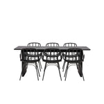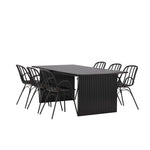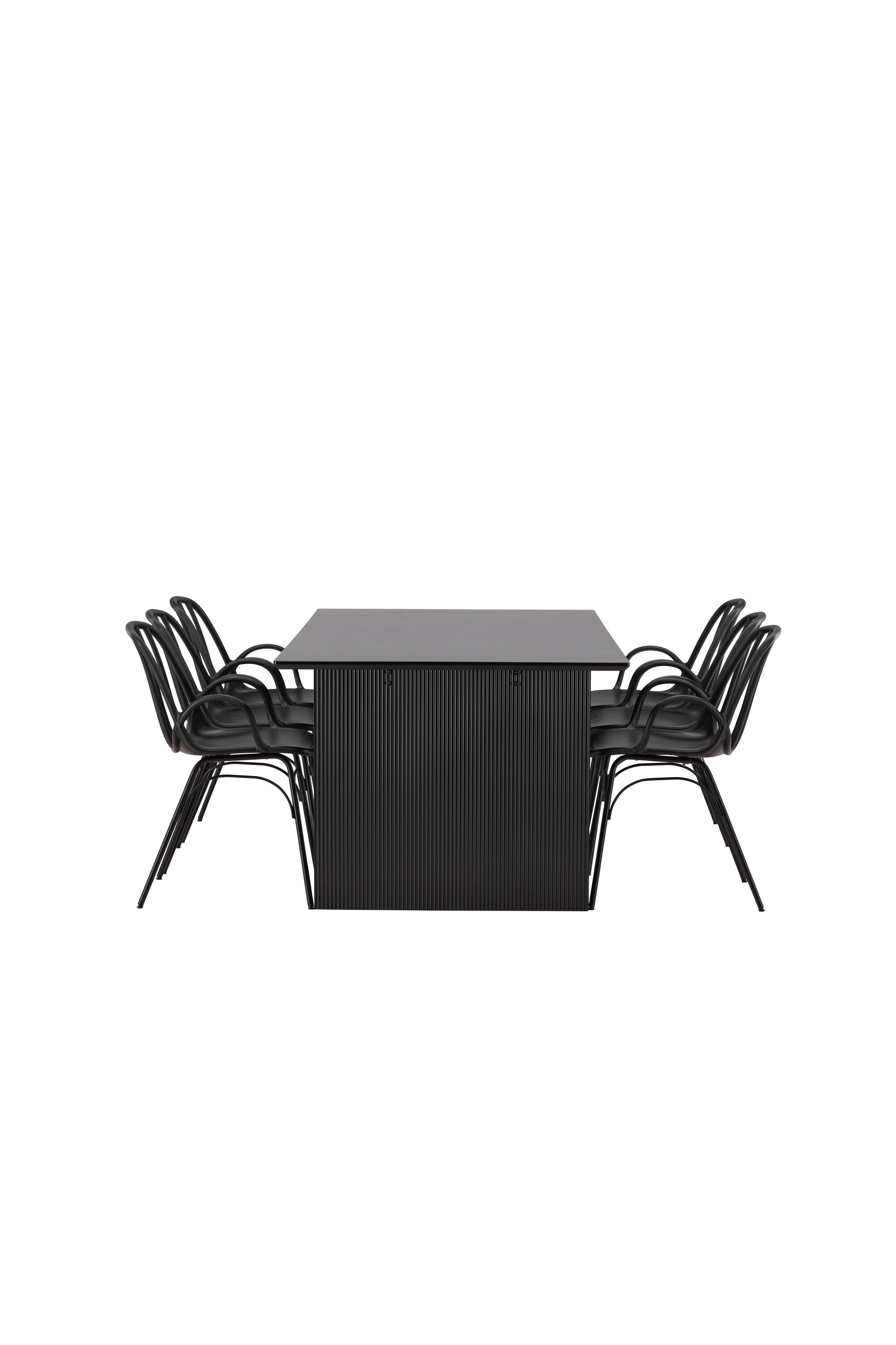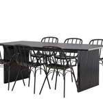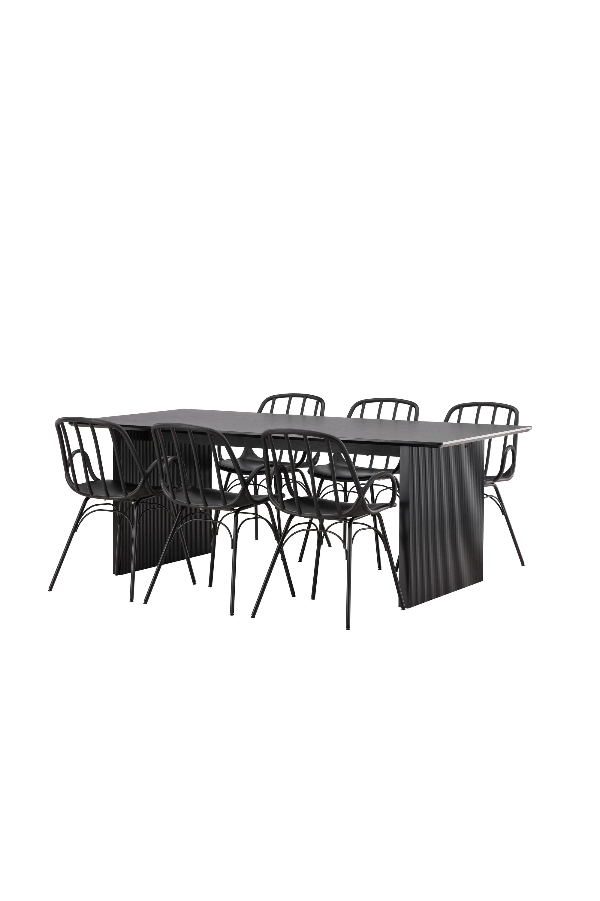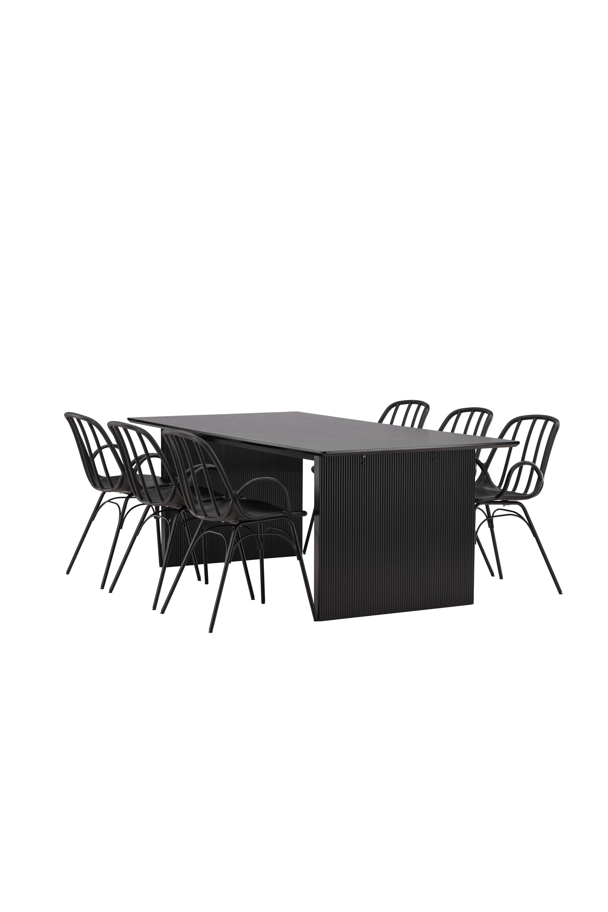 Černá jídelní skupina, která obstojí ve zkoušce času! Jídelní stoly Vail mají rovné severské tvary a jsou vyrobeny z odolné černé MDF - stylové i praktické. Deska stolu je tenká v obdélníkovém provedení a balancuje na dvou pevných dřevěných deskách, které tvoří podvozek. Zde v dokonalém souladu s našimi moderními jídelními židlemi ze série Dyrön. Židle je stylová i praktická, vyrobena z černého plastu a oceli. Židle má integrované područky a žebrovaný design v mírně zaoblené zadní části. Pozvěte své blízké na několik společenských chvil!
