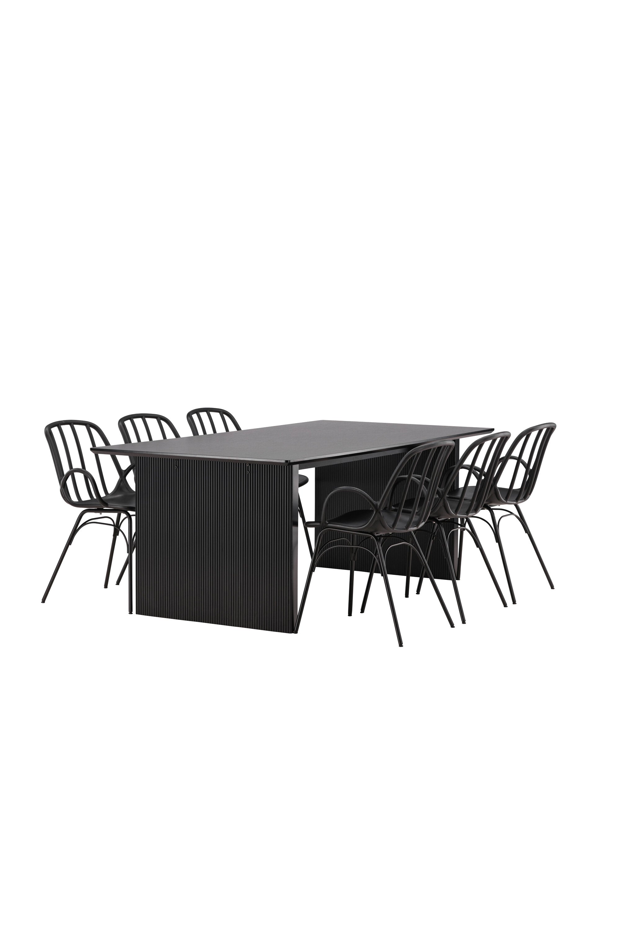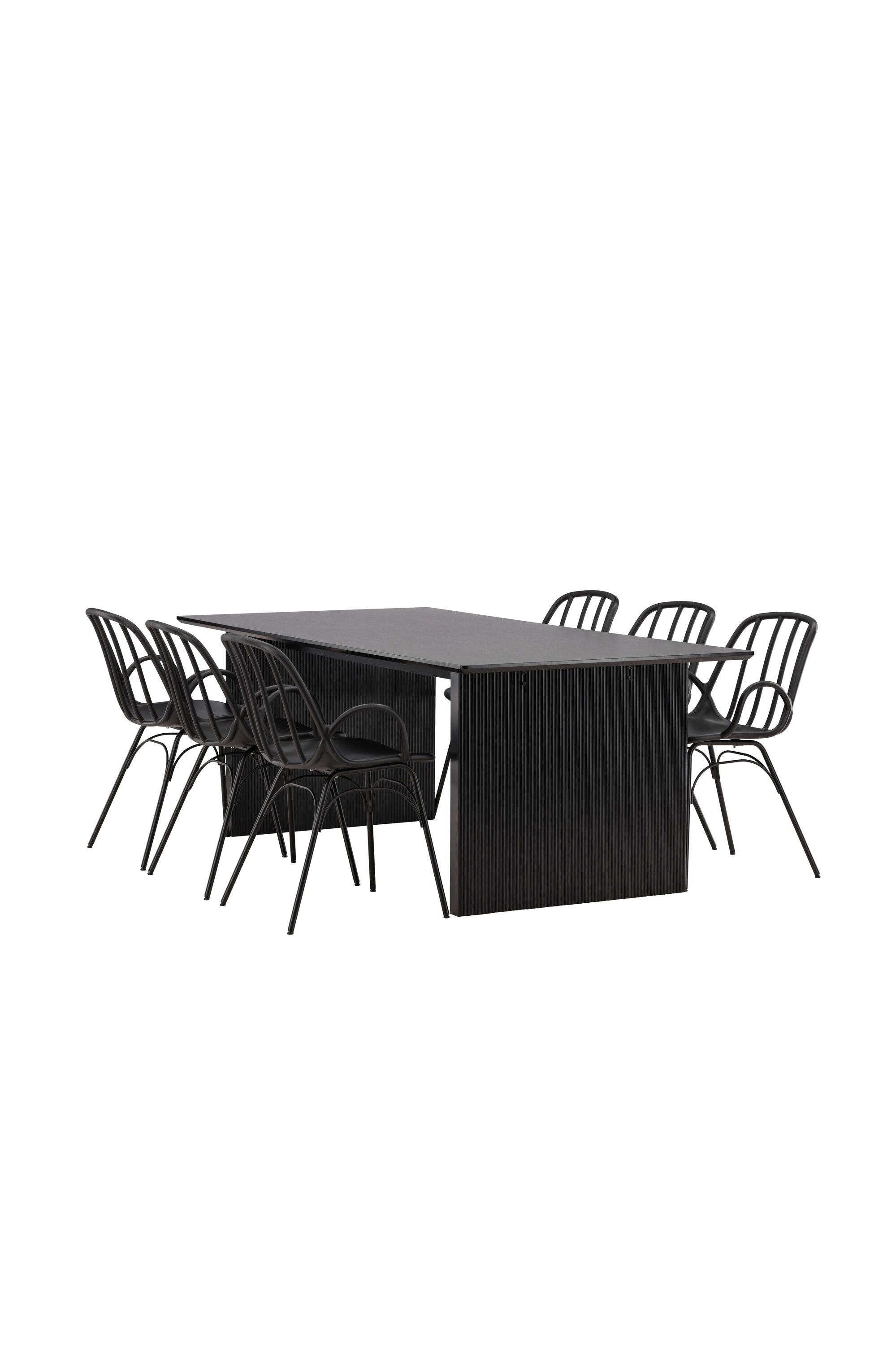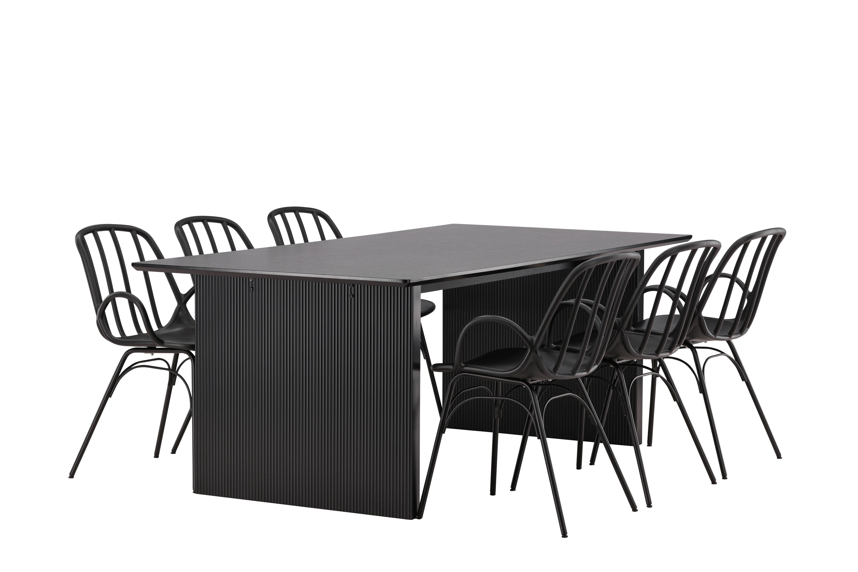 Jídelní stůl Vail – černá / kouřová černá MDF + Dyrön jídelní židle – černý polypropylen _6