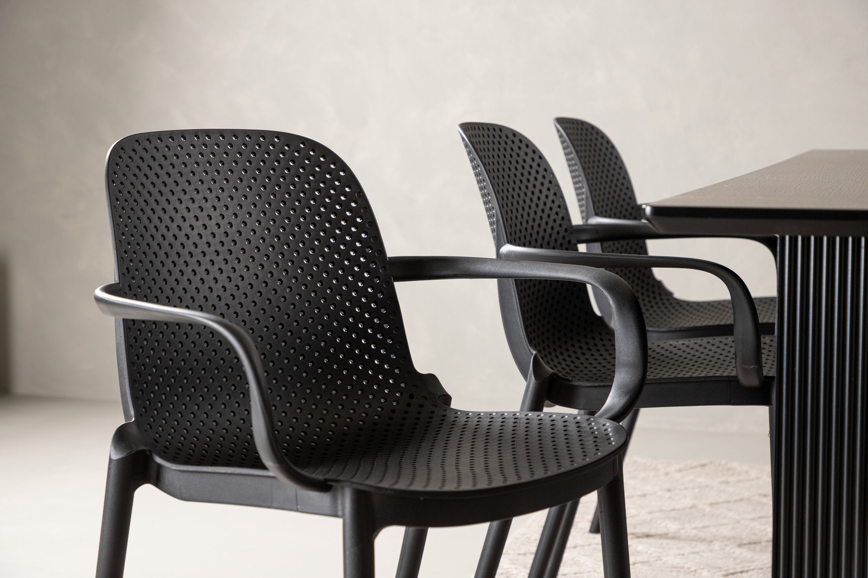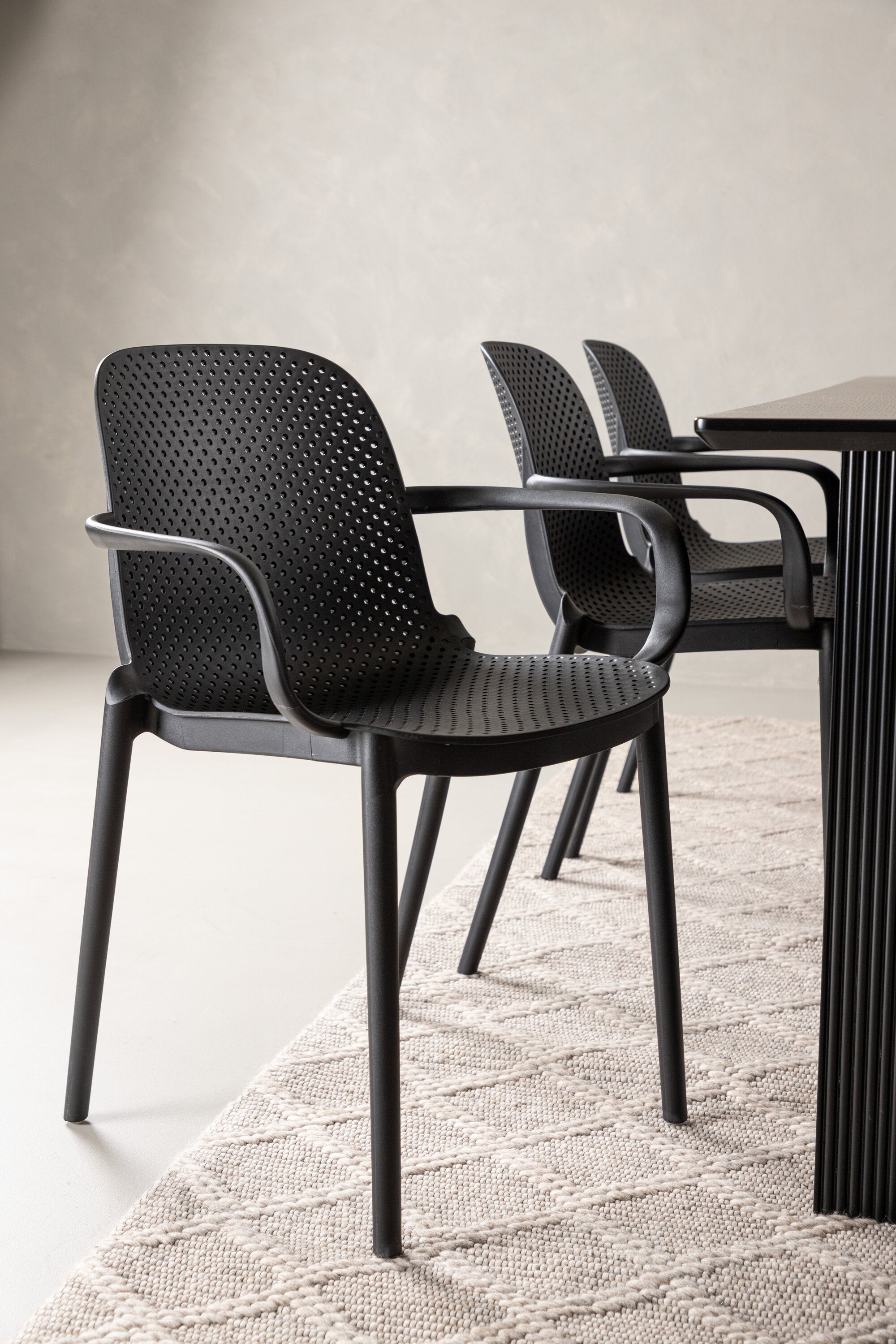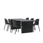 Jídelní stůl Vail – černá / kouřová černá MDF + jídelní židle Baltimore – černá / černý plast _6