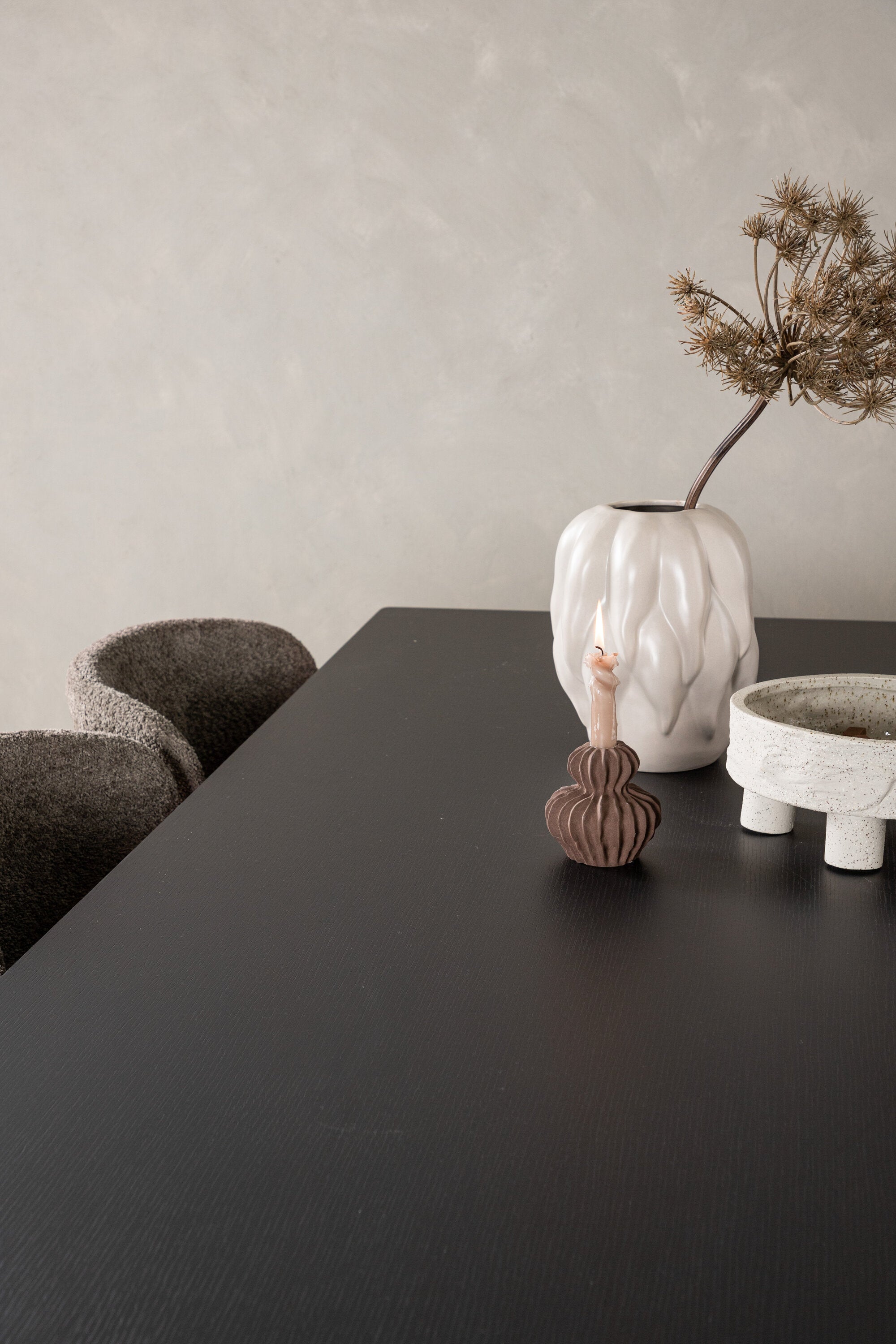 Jídelní stůl Vail - černá / kouřová černá MDF + jídelní židle Modesto - béžová / béžová Boucle _6