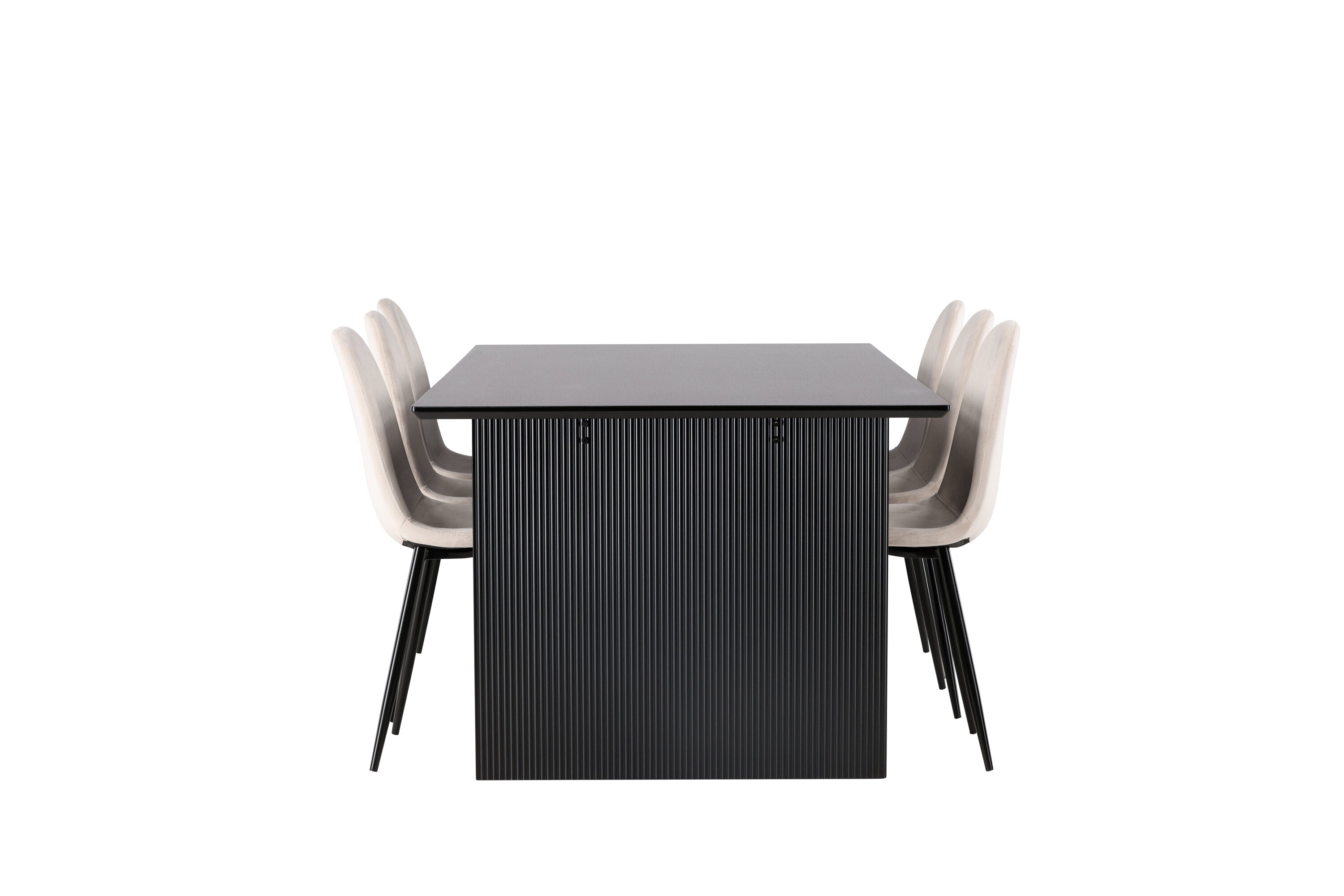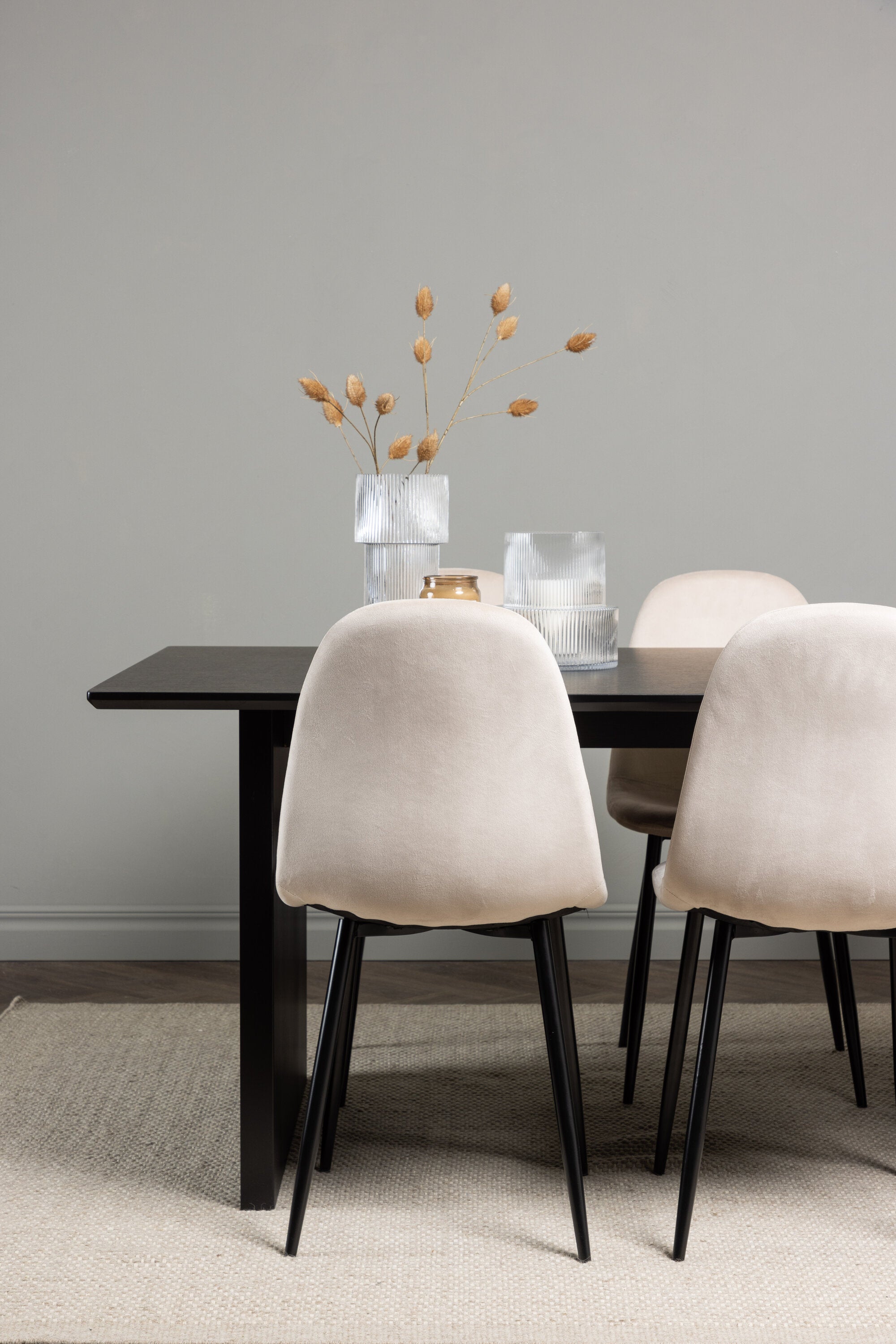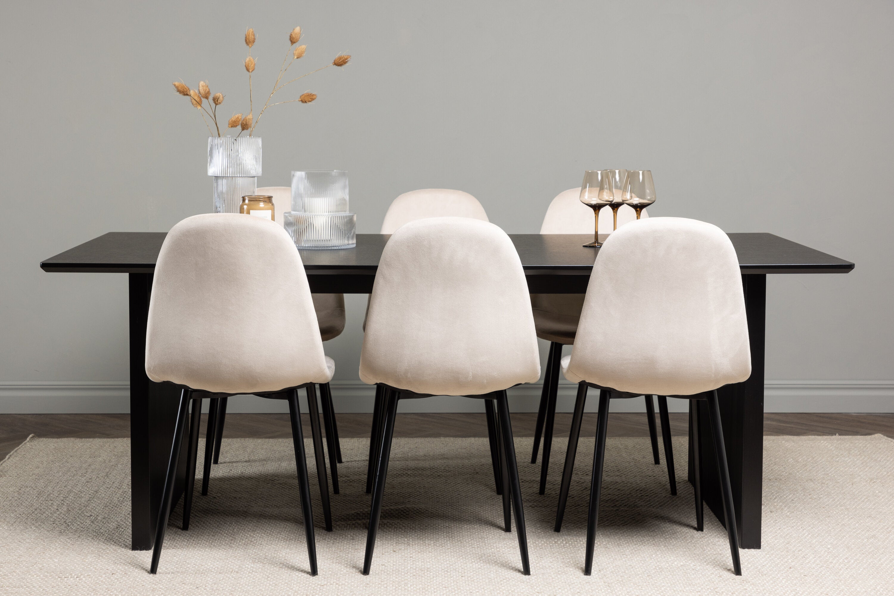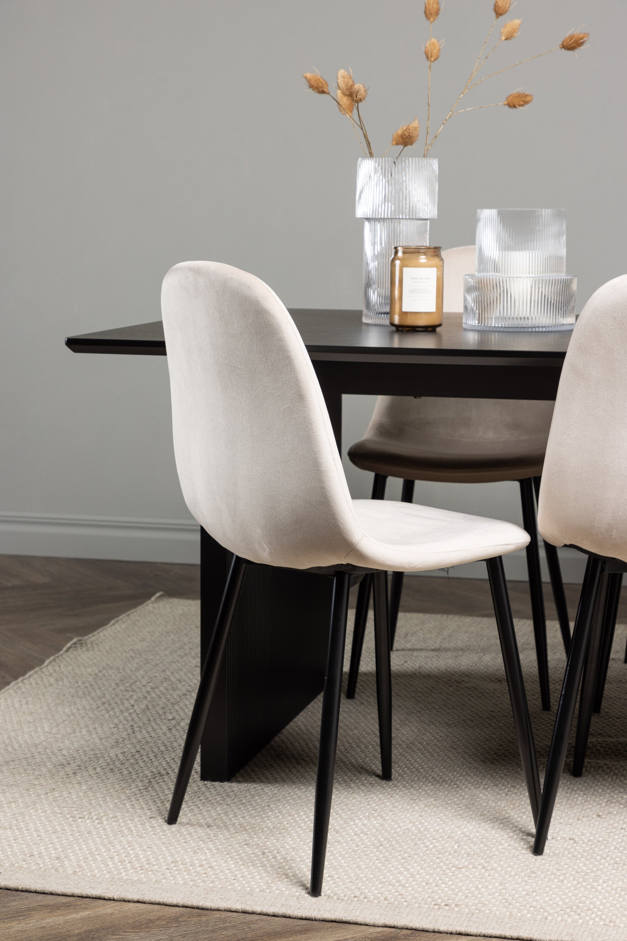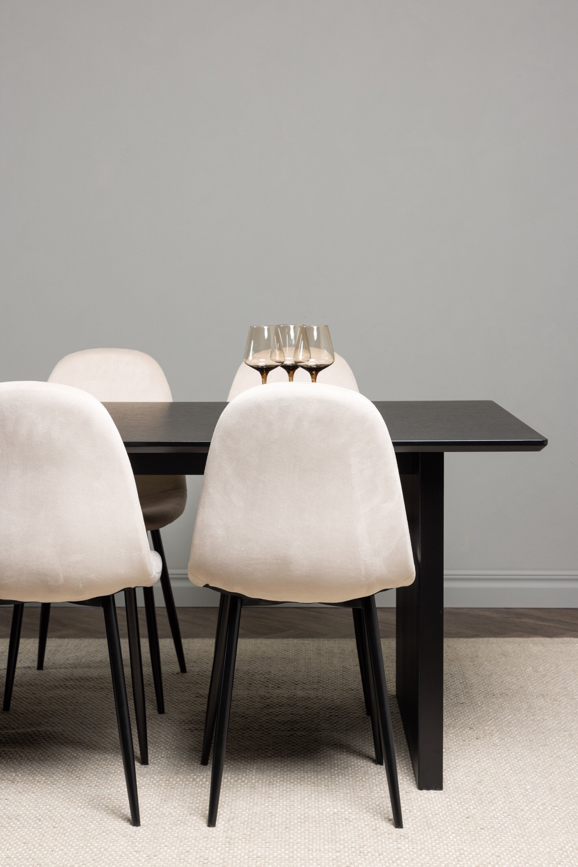 Jídelní stůl Vail - černá / kouřová černá MDF + jídelní židle Polar - černé nohy / béžový samet _6