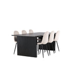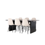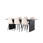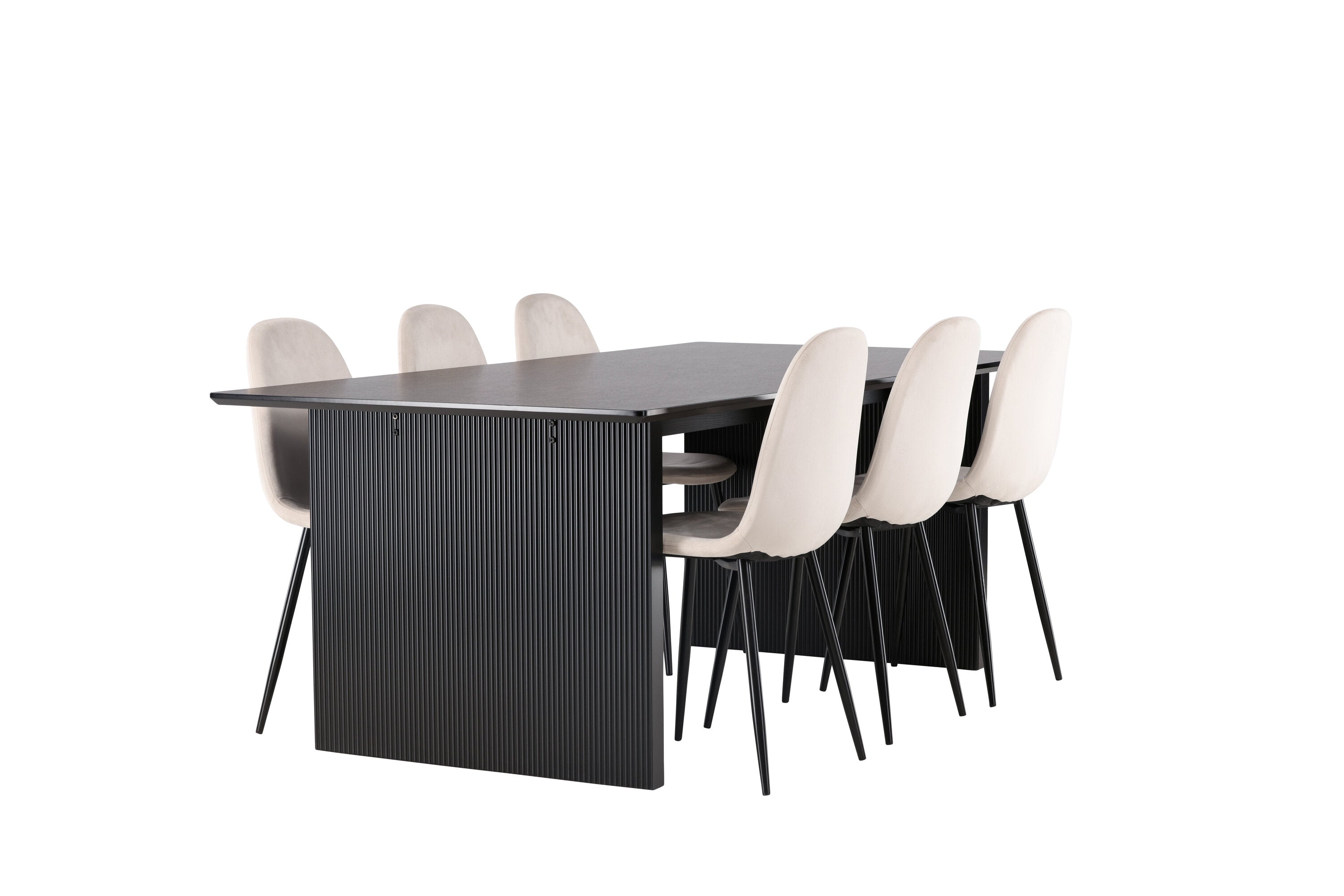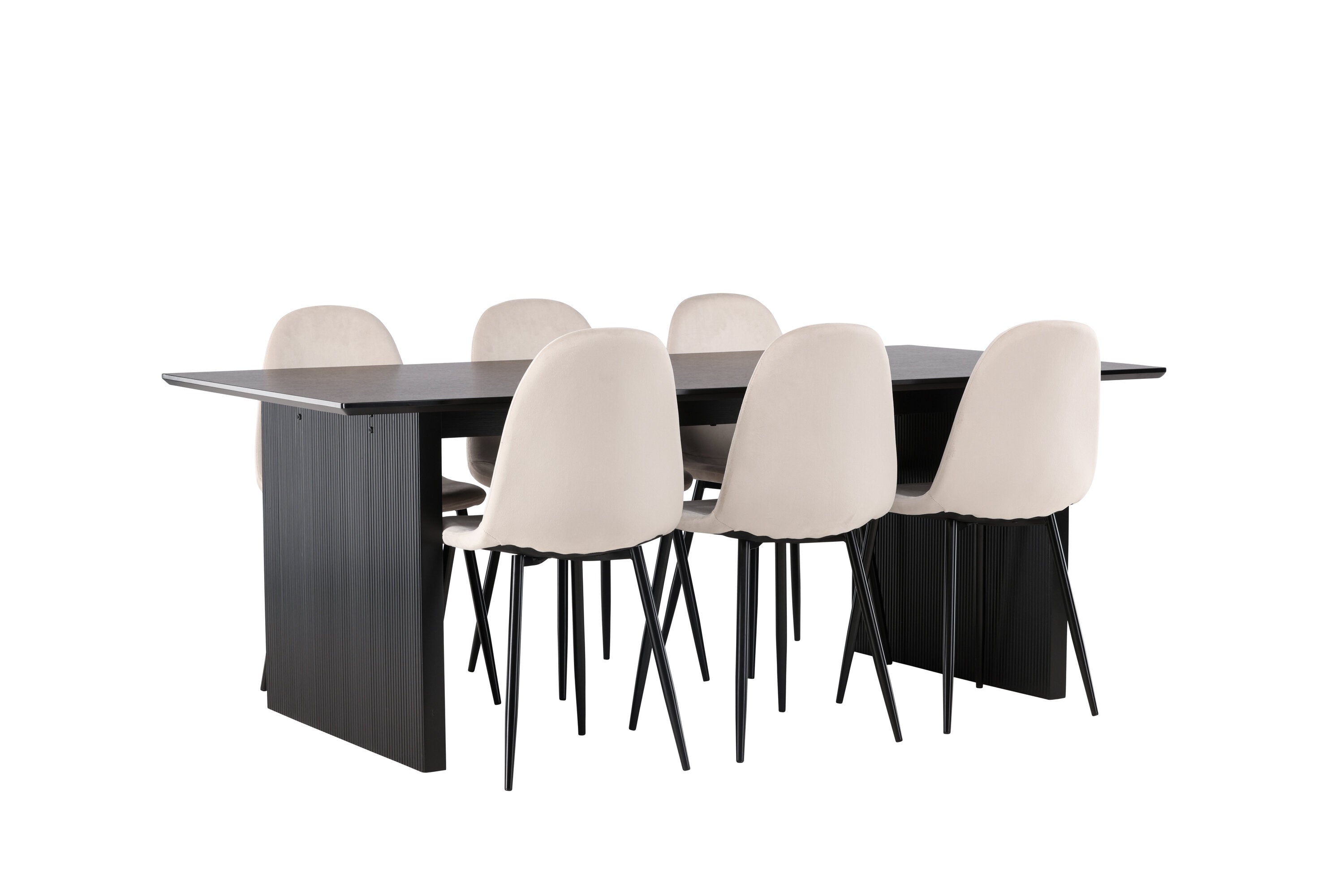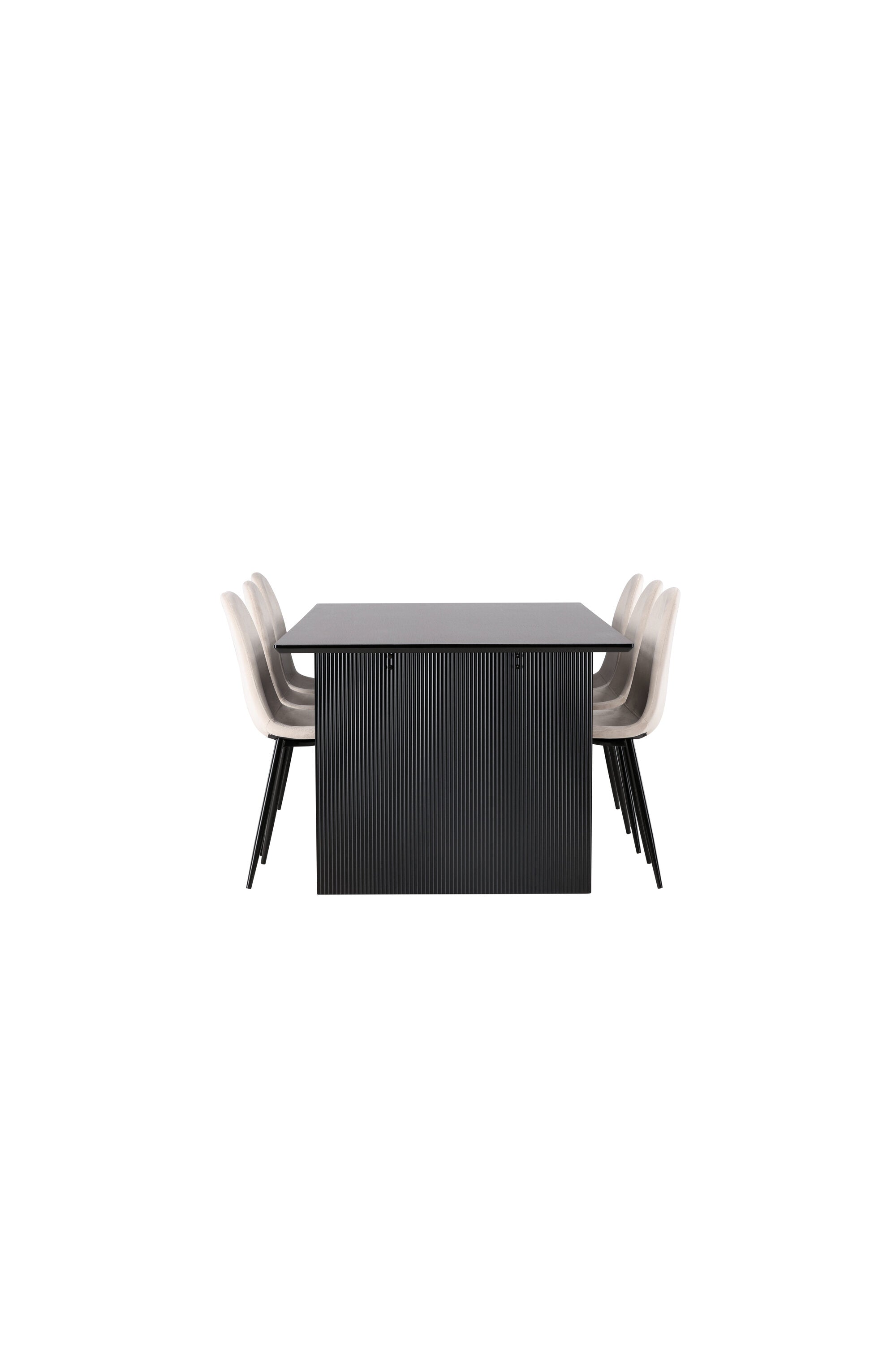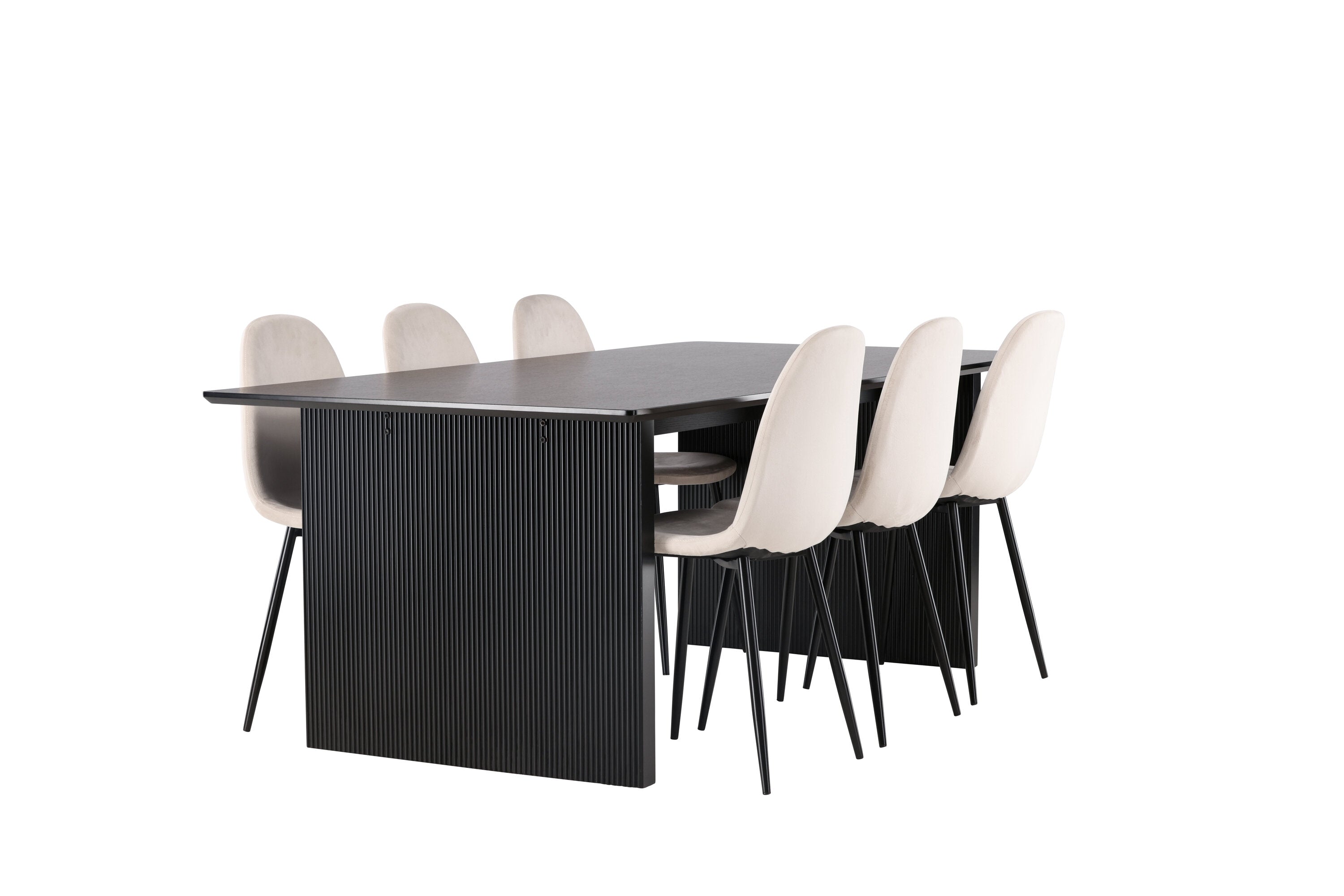 Jídelní stůl Vail - černá / kouřová černá MDF + jídelní židle Polar - černé nohy / béžový samet _6